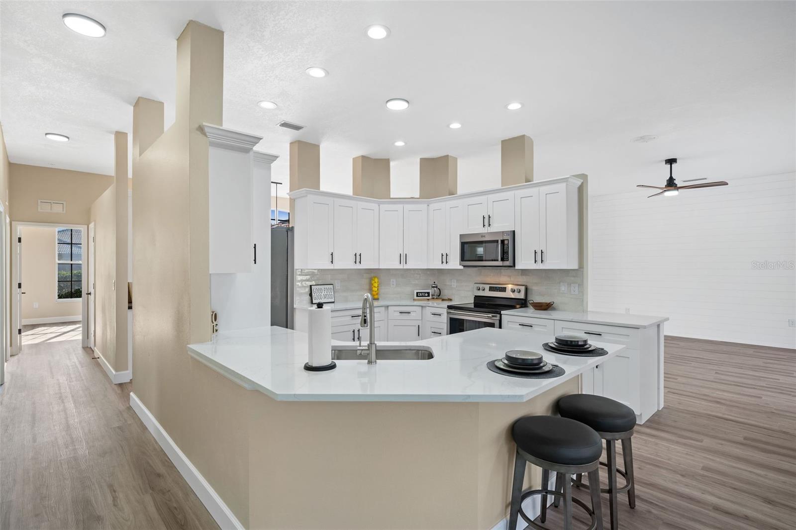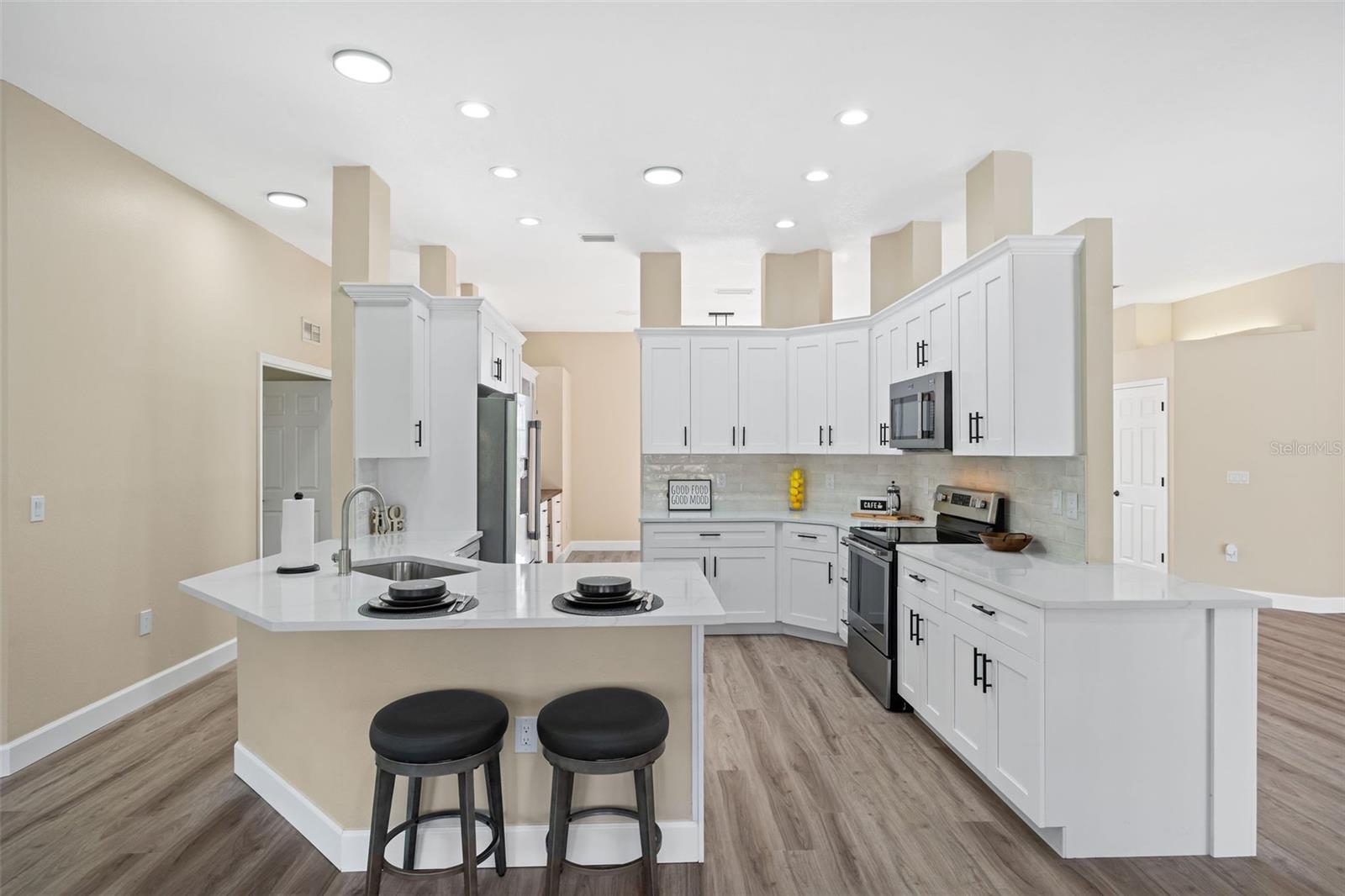 NO CDD, LOW HOA, FULLY RENOVATED POOL HOME WITH STUNNING VIEWSWelcome to your dream POOL home! Nestled in the highly desirable Chestnut Creek Community, this COMPLETELY RENOVATED 4-bedroom, 2 full bath, 2 half bath masterpiece offers an exceptional blend of luxury and comfort. Step inside to discover a top-to-bottom remodel featuring BRAND NEW LUXURY PLANK, exquisitely tiled bathrooms, and a FULLY RENOVATED KITCHEN WITH STAINLESS-STEEL APPLIANCE, with gleaming quartz countertops. The spacious 2600 sq feet floor plan includes a pool bath, perfect for your outdoor entertaining by the sparkling pool. The modern upgrades continue with a brand-new electric panel (2024), a newer tile roof (2018), and upgraded dual AC system (2022), newer irrigation and lanai screens, ensuring peace of mind for years to come. Whether you're basking in the Florida sun by the pool or indulging in the scenic water view, this home offers a perfect blend of tranquility and modern comfort. The home is situated on an expansive corner lot with picturesque pond views, providing a serene and private retreat. A spacious, air-conditioned 2-car garage and prime location make this home a true gem. Don't miss out on this rare opportunity to own a piece of paradise in Chestnut Creek. Beyond the confines of your private oasis, discover the convenience of location. Within minutes, you can find yourself at the pristine Gulf beaches, exploring the charm of Downtown Venice, or immersing yourself in the vibrant atmosphere of Downtown Wellen Park. Sports enthusiasts will appreciate the proximity to the Atlanta Braves Stadium, while shopping, restaurants, and medical facilities are all within easy reach. The appeal extends to the proximity of top-rated schools, making this residence not just a home but an investment in a lifestyle. All these benefits come with exceptionally low HOA fees and NO CDD fees in a community known for its beautiful scenery and tranquil ambiance. Schedule your private showing today and prepare to be enchanted! Buyer/buyer agent to verify all information.