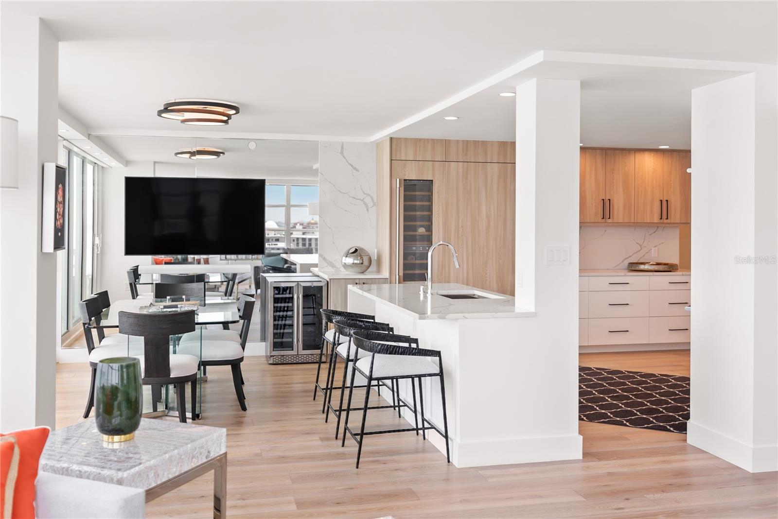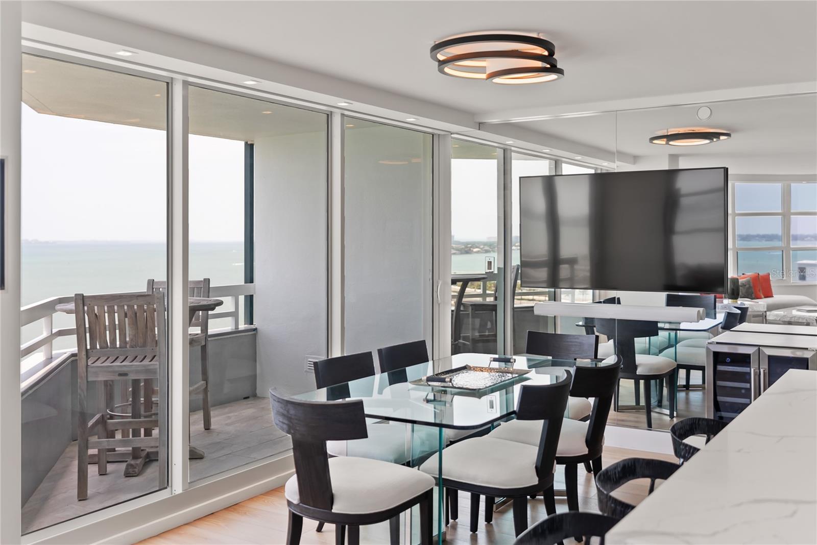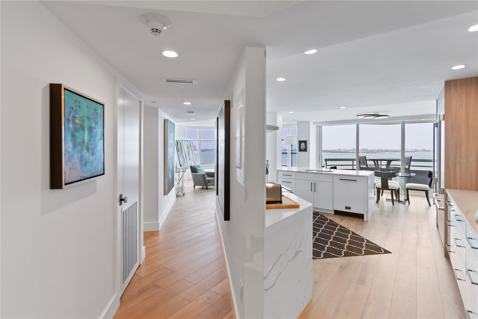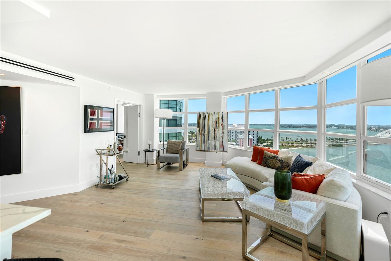 Step into the most luxurious waterfront condo that awaits you in this stunning two bedroom, two-bath condo in the heart of Sarasota! Enjoy breathtaking views of the Bay of Sarasota and The Gulf of America from one of two of your private balconies. This stunning 100% completely renovated 5 stack VanGogh located on the 17th floor will leave you breathless. You will not believe your eyes when you see the attention to detail built into this stunning condo. Floor to ceiling mirrors in entryway accentuate the grand view as you enter the condo. Seller did a complete demolition of all interior drywall, ceiling tiles, all interior AC ductwork, plumbing, flooring and electrical. Installed all new plumbing, electrical, AC ductwork and / outdoor lighting. All new indoor lighting design and hardware throughout. The gorgeous all new wood flooring is in main areas and bedrooms, with all new tile in the bathrooms and patios. Raised the ceilings for maximum grand feeling and the stunning views. Both bathrooms completely remodeled with top of the line marble, quartz and waterworks hardware. Extended the width of the hall to open up laundry area with a stackable washer and dryer as well as a tankless water heater. Installed all new hurricane doors at both patios. Custom doors and hardware throughout. Brand new cabinetry along with custom closet cabinetry in primary suite. Installation of a completely new and hard wired AV system for Sound, TV, lighting & shades for the entire house. Hard wired the WiFi Sonos system through out the entire condo. And wait until you see this extraordinary kitchen, it is a culinary dream... brand new top of the line Fulgor Italian appliances! Waterfall quartz island countertop and quartz backsplash. Full size counter depth refrigerator, wine cellar, and 2 freezers. Microwave, convection combo, built in coffee maker, induction range top, oven & dishwasher. Smart home features include Ring and Nest. When you are ready to retire for the evening you simply use the remote powered shade system by Creston for all windows. Entry into 888 Boulevard of the Arts has a 24 hour guarded gate station. Just steps outside the condo you will find access to kayaks and/or boats. You can also enjoy the resort style heated pool along with pickleball, tennis courts and fitness room. Assigned underground parking (this unit has the best spot in the building) as well as 2 EV charging stations up on the top deck. You are close to all the key spots that beautiful Sarasota has to offer: Lido Beach, Siesta Key, Anna Maria Island, Long Boat Key and St Armands Circle. Sarasota offers exquisite restaurants, shopping, theaters and many cultural activities including Asolo Theater, Van Wezel Performing Arts Center and John Ringling Museum. You don't want to miss this extraordinary condo with the most precise attention to detail at every turn. This unit is truly perfection.