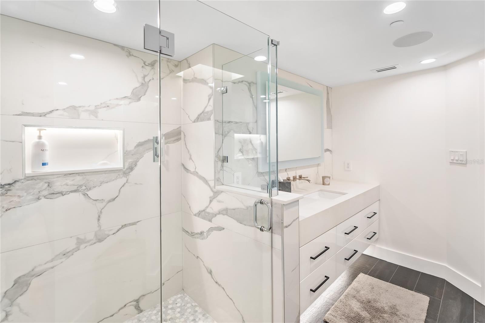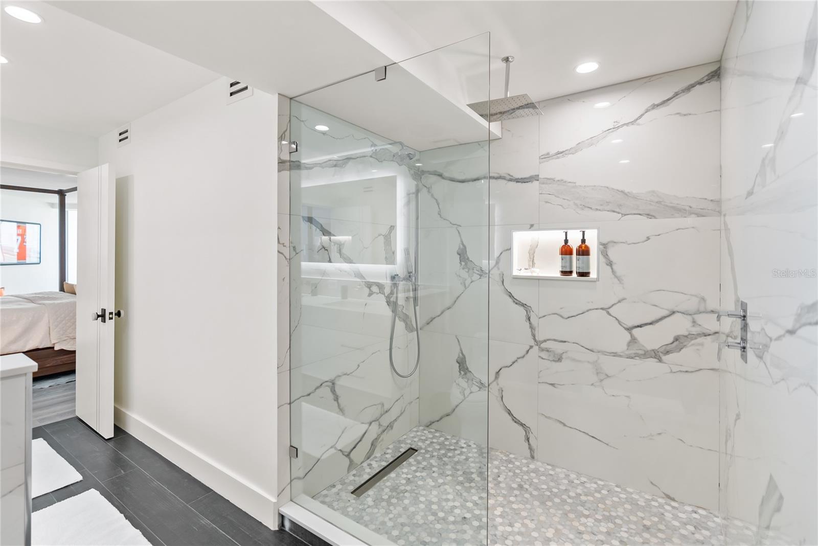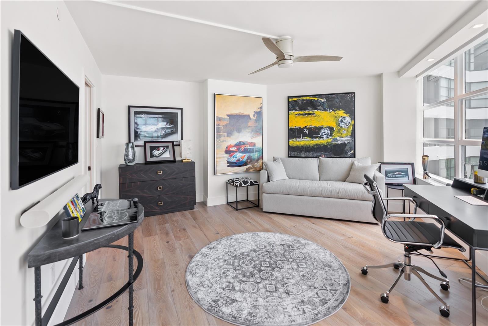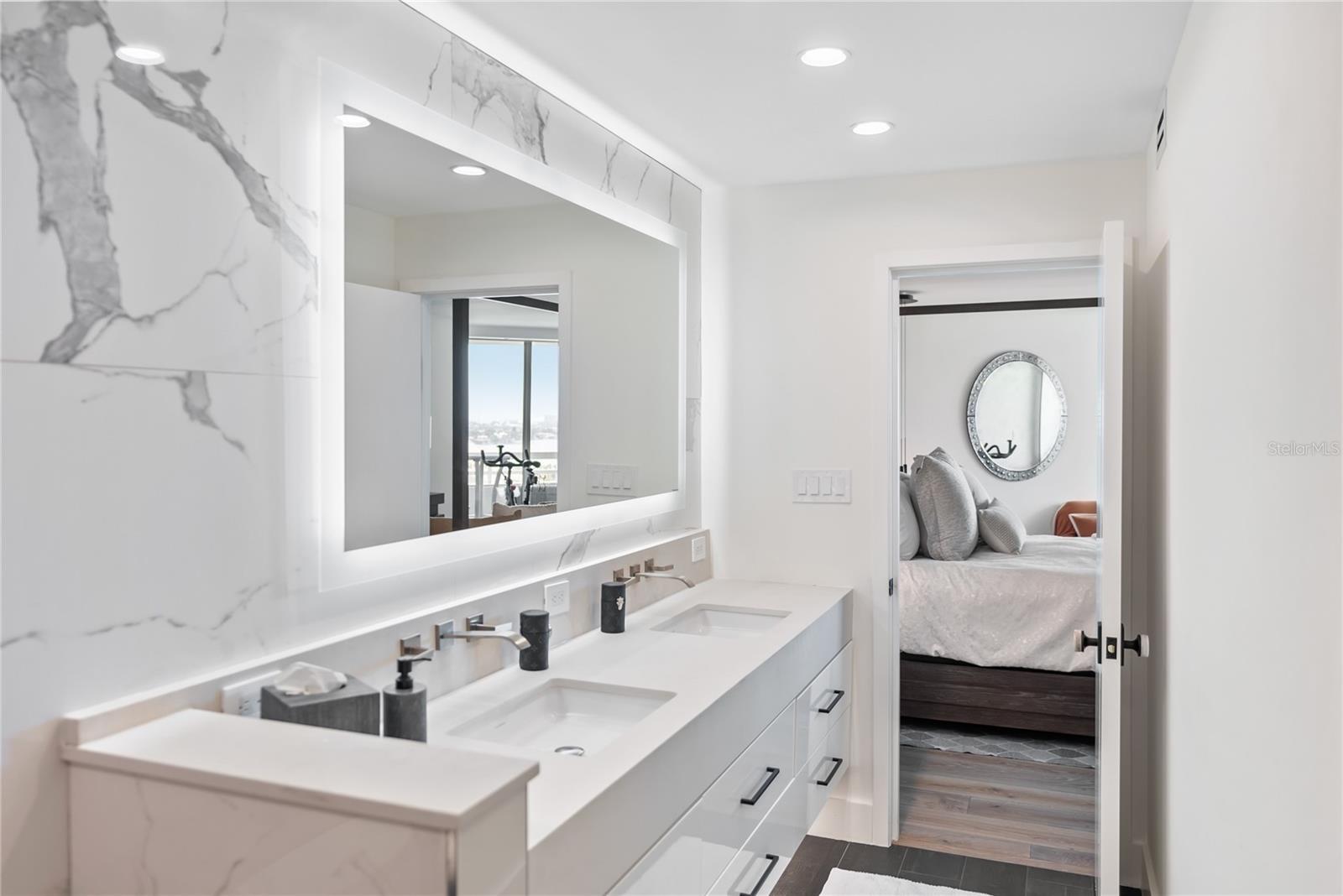 Step into the most luxurious waterfront condo that awaits you in this stunning two bedroom, two-bath condo in the heart of Sarasota! Enjoy breathtaking views of the Bay of Sarasota and The Gulf of America from one of two of your private balconies. This stunning 100% completely renovated 5 stack VanGogh located on the 17th floor will leave you breathless. You will not believe your eyes when you see the attention to detail built into this stunning condo. Floor to ceiling mirrors in entryway accentuate the grand view as you enter the condo. Seller did a complete demolition of all interior drywall, ceiling tiles, all interior AC ductwork, plumbing, flooring and electrical. Installed all new plumbing, electrical, AC ductwork and / outdoor lighting. All new indoor lighting design and hardware throughout. The gorgeous all new wood flooring is in main areas and bedrooms, with all new tile in the bathrooms and patios. Raised the ceilings for maximum grand feeling and the stunning views. Both bathrooms completely remodeled with top of the line marble, quartz and waterworks hardware. Extended the width of the hall to open up laundry area with a stackable washer and dryer as well as a tankless water heater. Installed all new hurricane doors at both patios. Custom doors and hardware throughout. Brand new cabinetry along with custom closet cabinetry in primary suite. Installation of a completely new and hard wired AV system for Sound, TV, lighting & shades for the entire house. Hard wired the WiFi Sonos system through out the entire condo. And wait until you see this extraordinary kitchen, it is a culinary dream... brand new top of the line Fulgor Italian appliances! Waterfall quartz island countertop and quartz backsplash. Full size counter depth refrigerator, wine cellar, and 2 freezers. Microwave, convection combo, built in coffee maker, induction range top, oven & dishwasher. Smart home features include Ring and Nest. When you are ready to retire for the evening you simply use the remote powered shade system by Creston for all windows. Entry into 888 Boulevard of the Arts has a 24 hour guarded gate station. Just steps outside the condo you will find access to kayaks and/or boats. You can also enjoy the resort style heated pool along with pickleball, tennis courts and fitness room. Assigned underground parking (this unit has the best spot in the building) as well as 2 EV charging stations up on the top deck. You are close to all the key spots that beautiful Sarasota has to offer: Lido Beach, Siesta Key, Anna Maria Island, Long Boat Key and St Armands Circle. Sarasota offers exquisite restaurants, shopping, theaters and many cultural activities including Asolo Theater, Van Wezel Performing Arts Center and John Ringling Museum. You don't want to miss this extraordinary condo with the most precise attention to detail at every turn. This unit is truly perfection.