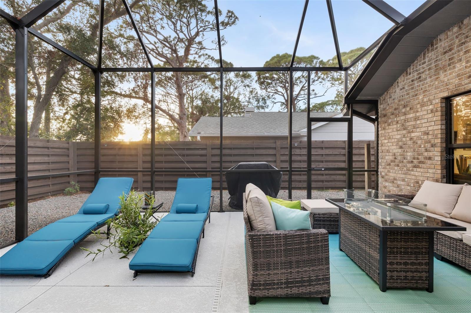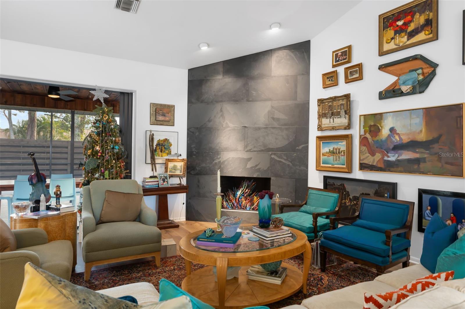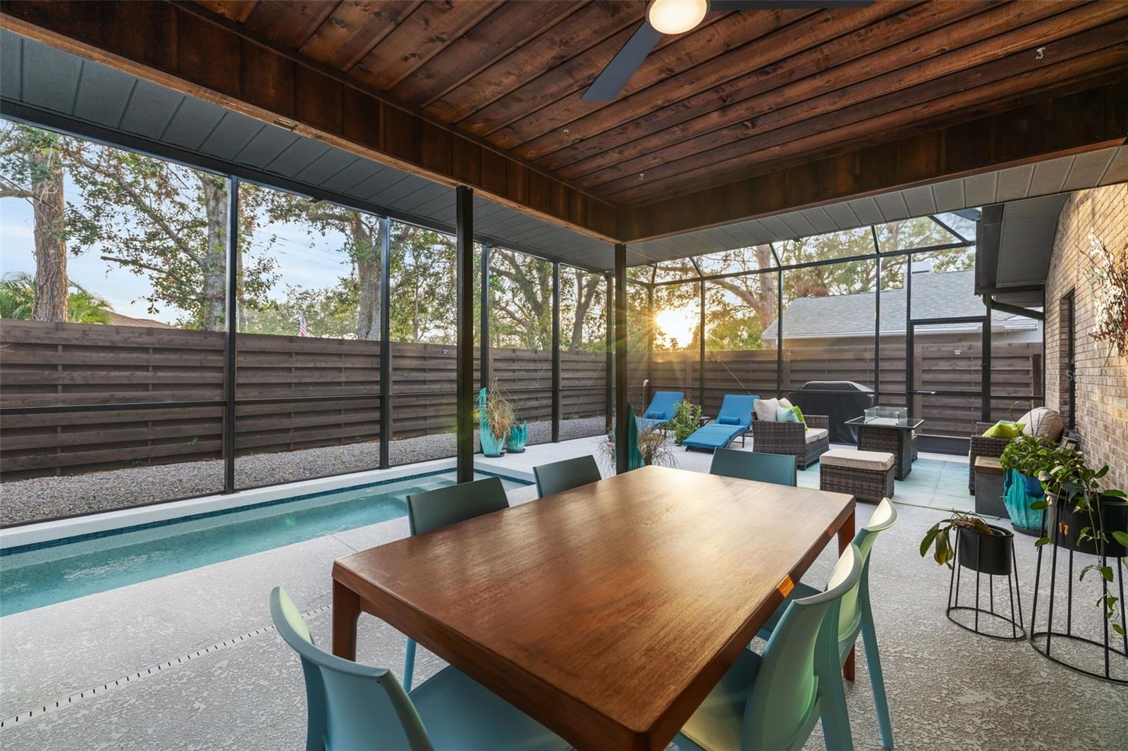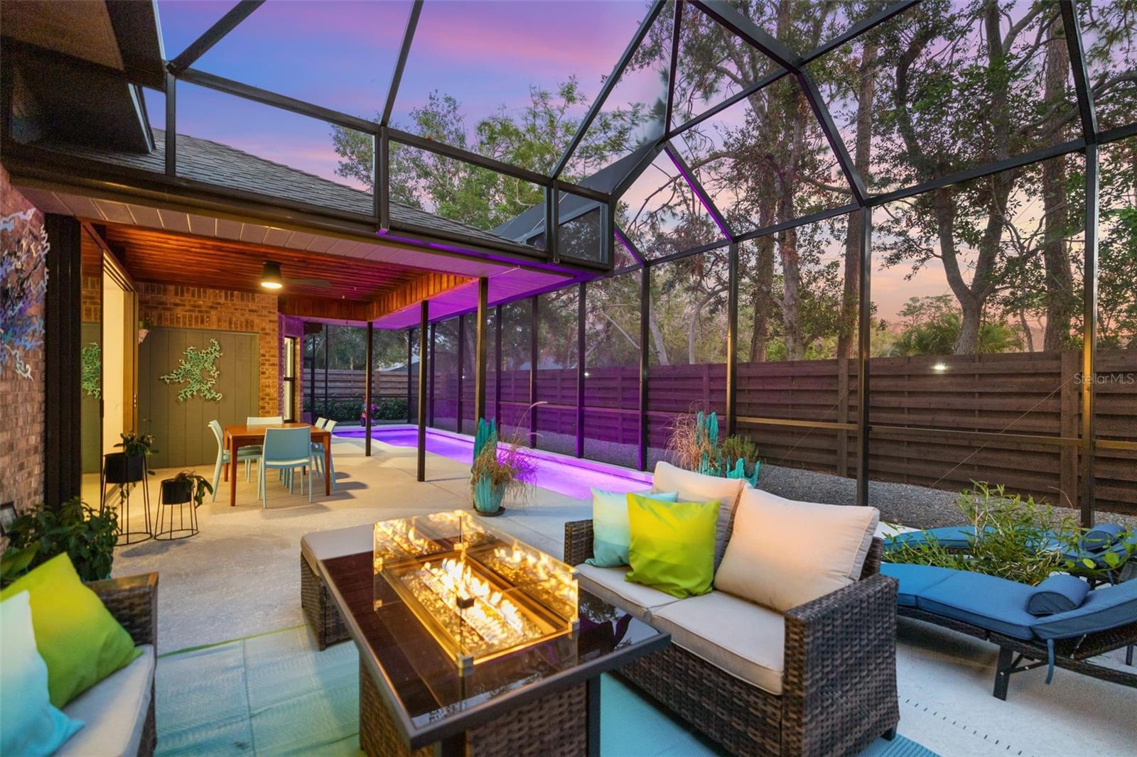 This rare brick-faced residence has been thoughtfully revitalized by the owners to offer modern luxury and timeless appeal. In a sought-after neighborhood, this exceptional three-bedroom, two-bath home combines quality craftsmanship with contemporary features to create a one-of-a-kind living experience. Step inside to discover a spacious and inviting layout, featuring whole-house Aquasana water purification system, and new impact windows and sliders that bring in abundant natural light. Both bathrooms have been tastefully and elegantly updated with soft close cabinetry, Kraus faucets, quartz countertops, and Oxygenics showerheads. Featured as well throughout the home are Italian-designed Iotty smart light glass-fronted light switches, programmable, with their neat soft LED halos. The convenience-inspired kitchen has been updated with top-of-the-line Bosch smart appliances, including a four-door refrigerator, five-burner gas stove top and dishwasher. The new cupboard style pantry offers stylish practicality with its pull out wood shelves. The kitchen also features a wall-mounted oven and microwave. The countertop extends to create a bar-height breakfast bar underneath the overhang, itself a nod to the mid-century style. The adjacent laundry and butler's pantry has also been updated, offering new quartz countertops, Kraus faucet, reverse osmosis tap and new soft-close cabinetry. The owners also added countertop to ceiling shelving for extra storage. The open floor plan allows for casual and formal entertaining and dining, comfortably accommodating larger gatherings as well as intimate dinners. This home features new luxury vinyl plank flooring, blending ideally with the original brick planter in the foyer, another nod to the mid-century style. In the dining area is a stunning new Kelly Wearstler chandelier, and there is another in the laundry/butler's pantry. The living room, with its cathedral ceiling, gives that feeling of spaciousness, and the slate-fronted, wood-burning fireplace adds sophistication to the room. The home also features extensive art lighting to showcase your pieces. Outside, the home, the owners have created an oasis, a space for outdoor relaxing and entertaining. The NEW lap pool uses a salt filtration system, has a PebbleTec finish and multi-colored lighting, with a seating shelf that invites you to unwind in comfort. The extended lanai and new pool cage provide a seamless transition to the outdoors, ideal for enjoying the beautiful Florida weather year-round. For added convenience and energy efficiency, the home also features a new leased LPG tank that powers the water heater and Bosch stovetop, lowering utility costs. With its low-maintenance landscaping, modern amenities and thoughtful updates throughout, this home has it all and is waiting for you. Minutes to beaches and downtown by car, easy access also to I-75. The location of this striking property makes it easy to reach amenities such as golf courses, parks, tennis clubs and more!