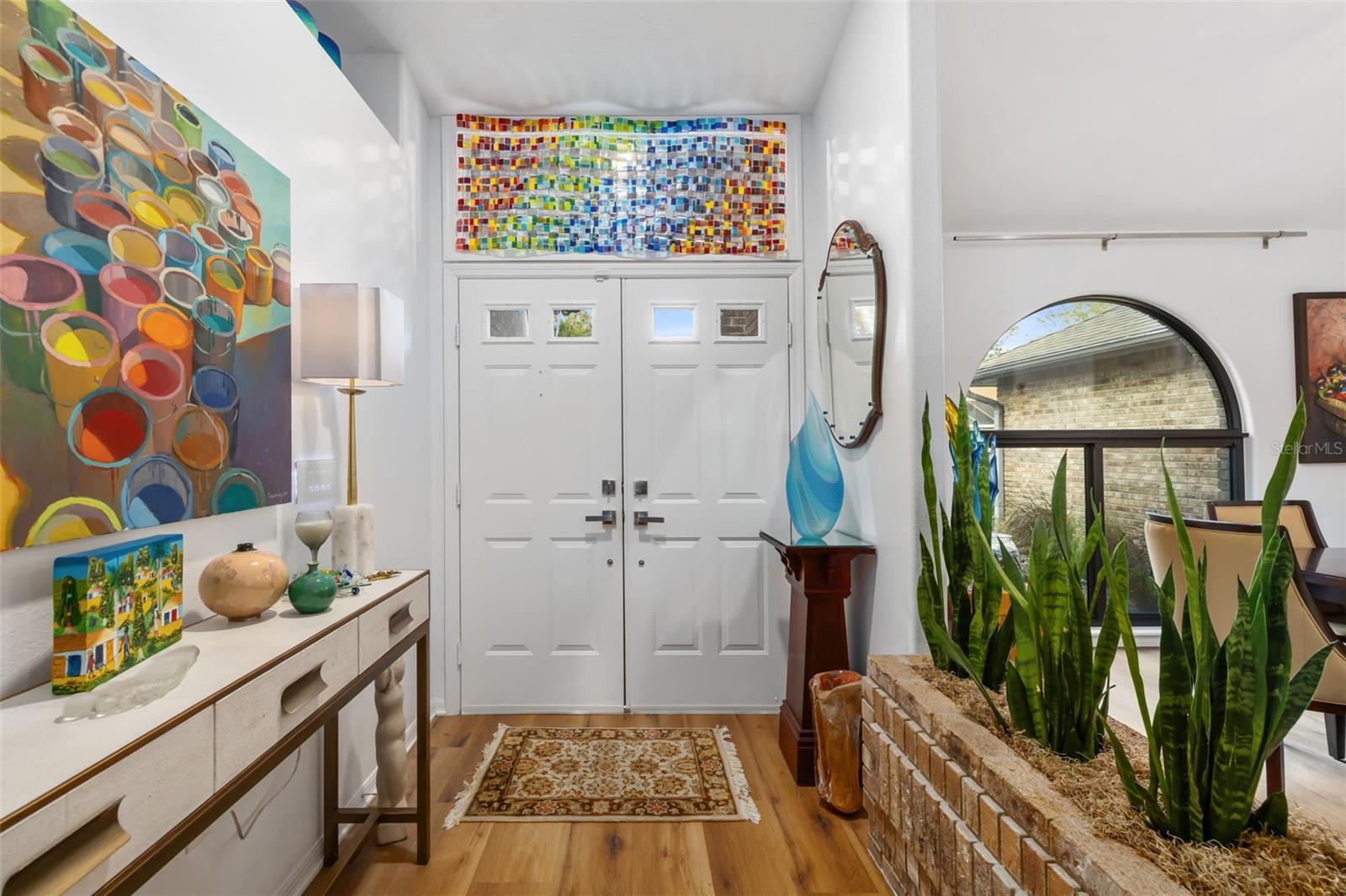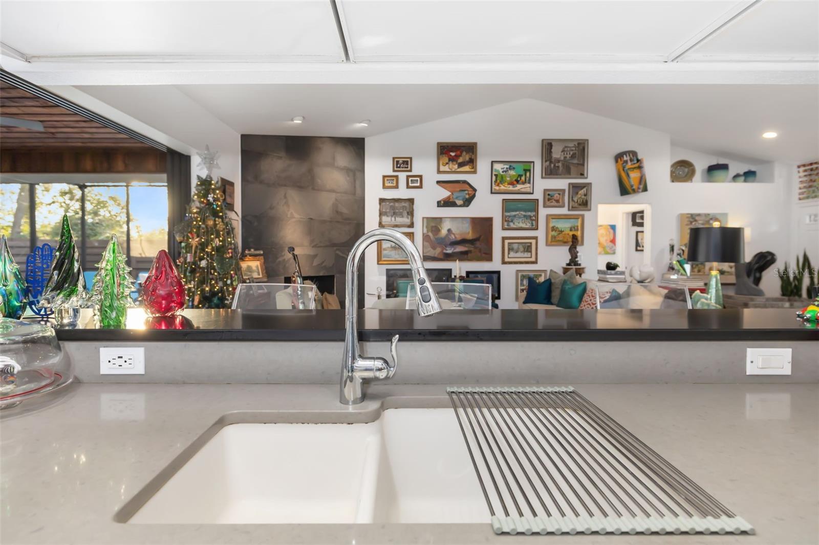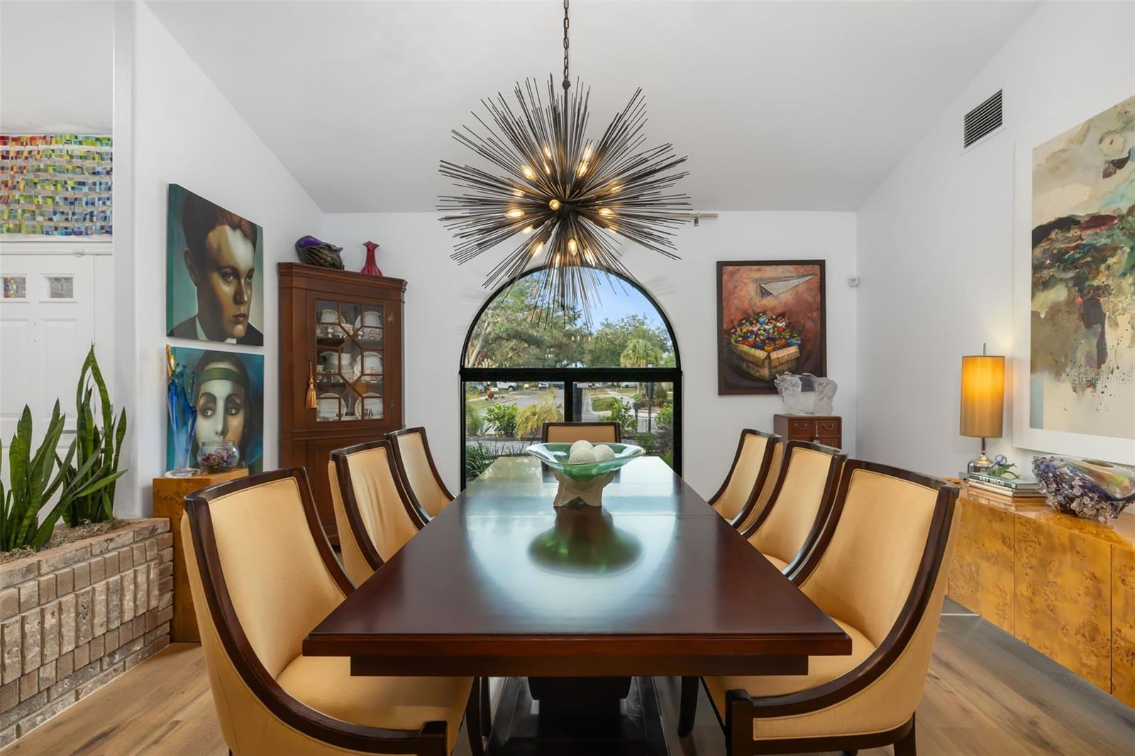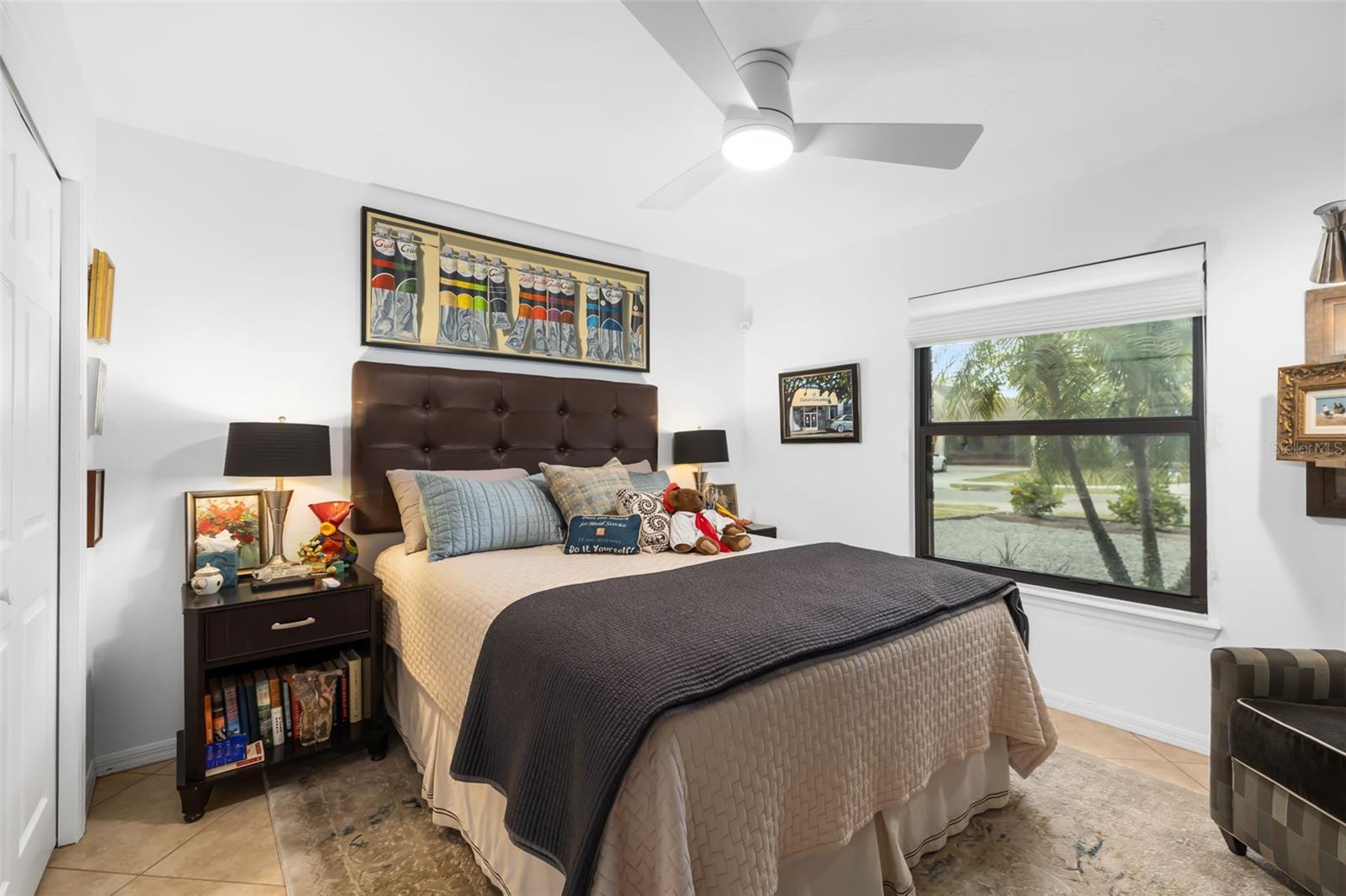 This rare brick-faced residence has been thoughtfully revitalized by the owners to offer modern luxury and timeless appeal. In a sought-after neighborhood, this exceptional three-bedroom, two-bath home combines quality craftsmanship with contemporary features to create a one-of-a-kind living experience. Step inside to discover a spacious and inviting layout, featuring whole-house Aquasana water purification system, and new impact windows and sliders that bring in abundant natural light. Both bathrooms have been tastefully and elegantly updated with soft close cabinetry, Kraus faucets, quartz countertops, and Oxygenics showerheads. Featured as well throughout the home are Italian-designed Iotty smart light glass-fronted light switches, programmable, with their neat soft LED halos. The convenience-inspired kitchen has been updated with top-of-the-line Bosch smart appliances, including a four-door refrigerator, five-burner gas stove top and dishwasher. The new cupboard style pantry offers stylish practicality with its pull out wood shelves. The kitchen also features a wall-mounted oven and microwave. The countertop extends to create a bar-height breakfast bar underneath the overhang, itself a nod to the mid-century style. The adjacent laundry and butler's pantry has also been updated, offering new quartz countertops, Kraus faucet, reverse osmosis tap and new soft-close cabinetry. The owners also added countertop to ceiling shelving for extra storage. The open floor plan allows for casual and formal entertaining and dining, comfortably accommodating larger gatherings as well as intimate dinners. This home features new luxury vinyl plank flooring, blending ideally with the original brick planter in the foyer, another nod to the mid-century style. In the dining area is a stunning new Kelly Wearstler chandelier, and there is another in the laundry/butler's pantry. The living room, with its cathedral ceiling, gives that feeling of spaciousness, and the slate-fronted, wood-burning fireplace adds sophistication to the room. The home also features extensive art lighting to showcase your pieces. Outside, the home, the owners have created an oasis, a space for outdoor relaxing and entertaining. The NEW lap pool uses a salt filtration system, has a PebbleTec finish and multi-colored lighting, with a seating shelf that invites you to unwind in comfort. The extended lanai and new pool cage provide a seamless transition to the outdoors, ideal for enjoying the beautiful Florida weather year-round. For added convenience and energy efficiency, the home also features a new leased LPG tank that powers the water heater and Bosch stovetop, lowering utility costs. With its low-maintenance landscaping, modern amenities and thoughtful updates throughout, this home has it all and is waiting for you. Minutes to beaches and downtown by car, easy access also to I-75. The location of this striking property makes it easy to reach amenities such as golf courses, parks, tennis clubs and more!