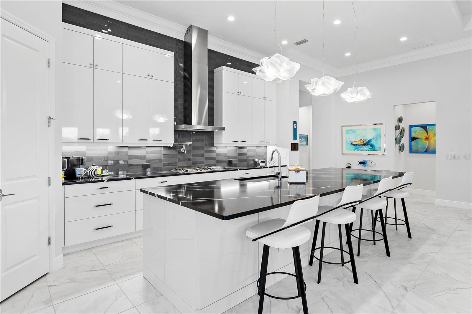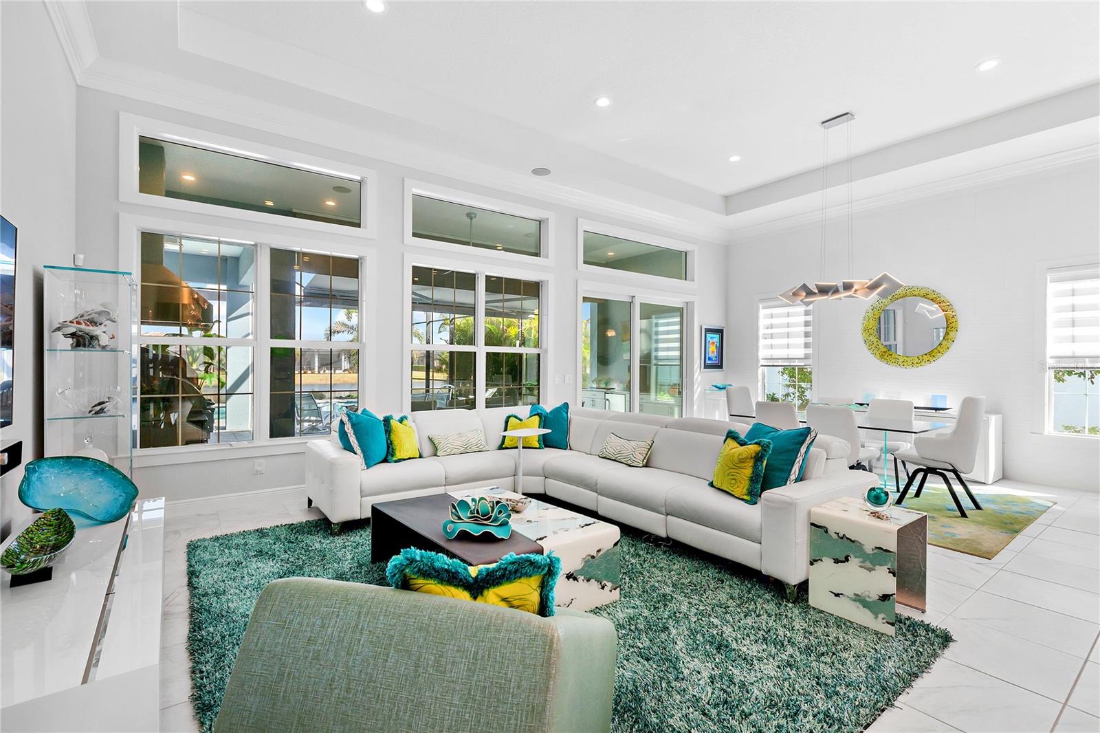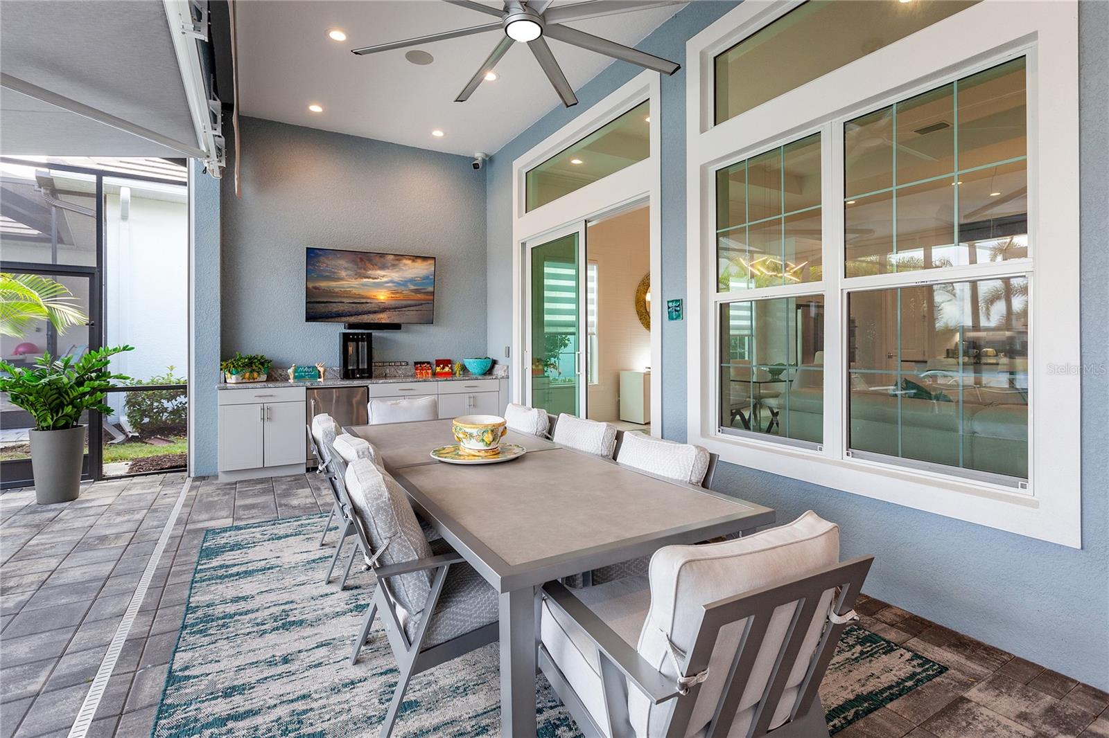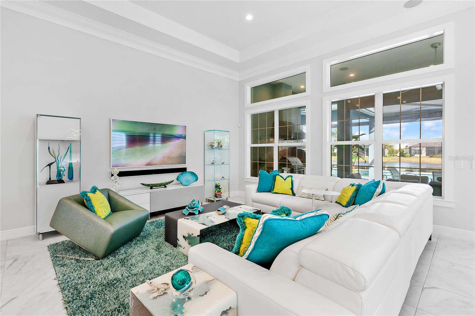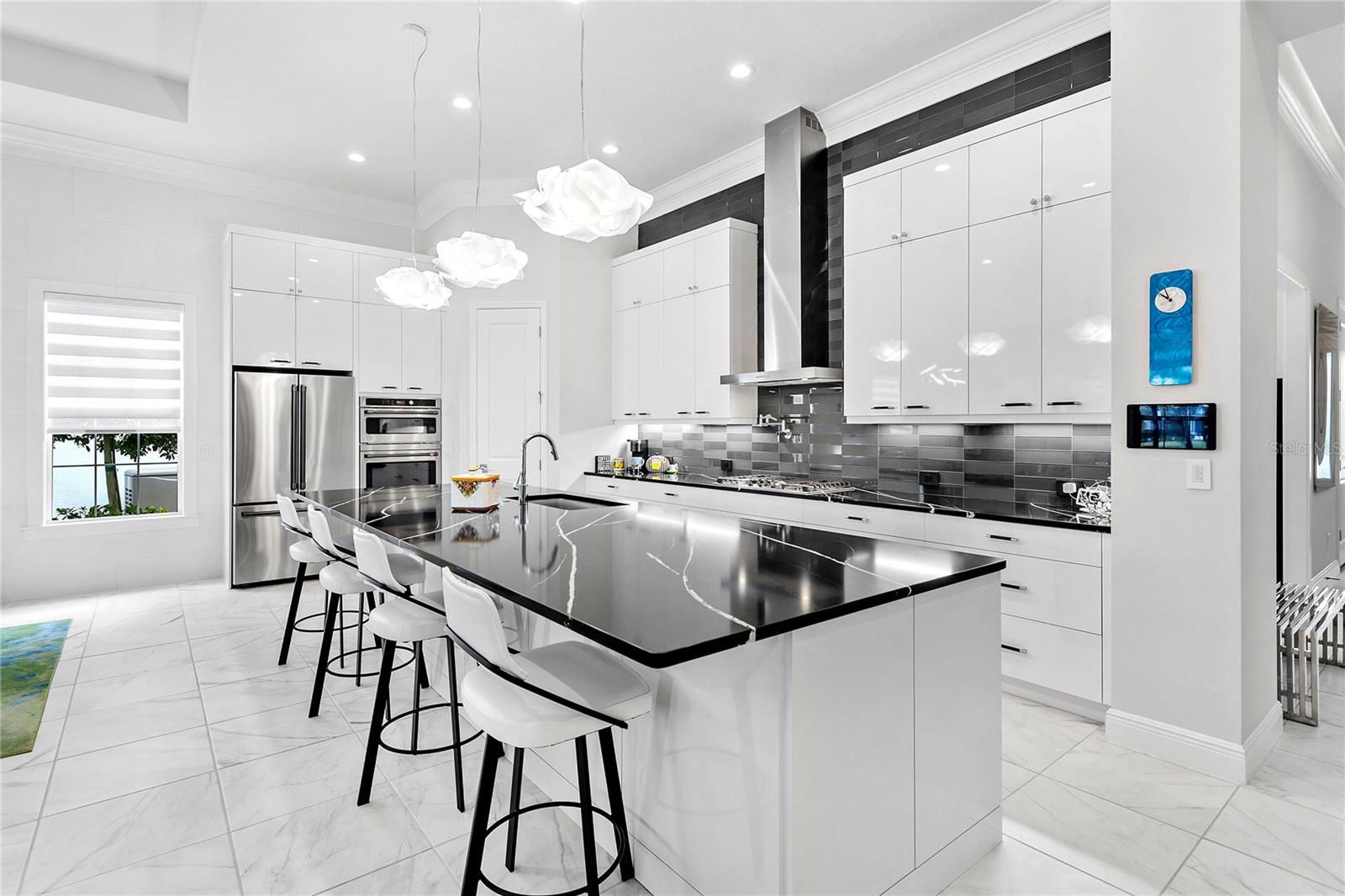 Luxury meets sophistication!! Designed for refined living and seamless entertaining, this expanded and customized Carlotta model by Neal Signature Homes is set within the gated enclave of Country Club East. Positioned on a premier lakefront homesite, the residence captures sweeping, uninterrupted views of a tranquil private lake and surrounding natural habitat. The outdoor living area is a private retreat, featuring a fully equipped summer kitchen with a grill and pizza oven, fireplace, projector screen, multiple televisions, and dedicated lounge zones--all oriented to overlook the winding waters of Lakewood Ranch. Every detail of this masterpiece has been meticulously curated, with over $200,000 in upgrades and aftermarket enhancements. The open and thoughtfully designed floor plan includes a 2-foot extension in the great room, dining room, primary bedroom, and a versatile club/bonus room, three bedrooms, and a chef's dream kitchen. The gourmet kitchen serves as the heart of the home, featuring a grand 13-foot extended Cambria designer island, sleek Italian-style cabinetry, top-of-the-line Caf appliances, and a custom-organized walk-in pantry. Seamlessly flowing into the great room and dining area, this space is perfect for entertaining while showcasing stunning lake vistas. The owner's retreat is a sanctuary of modern luxury, boasting a spa-inspired bathroom with split vanities, a Smart Moen shower system, and an oversized walk-in closet outfitted with custom built-ins. Two additional guest bedrooms, one includes a private en suite, ensuring comfort and privacy for visitors. Outdoor living reaches new heights on the extended lanai, a true resort-style escape. Enjoy a large heated swimming pool with multiple waterfalls, a panoramic screen overlooking the long winding lake, and a fully equipped outdoor kitchen with a grill, double burners, pizza oven, a separate serving buffet, retractable awning, an outdoor fireplace and three Storm Smart sun screens giving you rest and enjoyment. For unforgettable evenings, gather under the stars with the outdoor movie projection system featuring a 120-inch screen and additional speakers. This state-of-the-art smart home integrates Lutron lighting, security cameras, remote-controlled garage and door systems, Sonos sound system both indoors and out, EV charging station and motorized Hunter Douglas zebra blinds, TVs, and an iPad for easy controlling of this high tech home. Other upgrades include tray ceilings, crown moldings, extensive landscaping with modern outdoor lighting, multi-color changing pool lighting, and custom Closet Tech systems for optimal storage in all closets, the pantry, laundry room, and garages. Additional highlights include all impact windows and doors, designer light fixtures and ceiling fans, porcelain tile flooring throughout, a spacious laundry room with ample storage cabinets, a dedicated folding area, and custom organizers. Indulge in the lifestyle you've been dreaming of in the marvelous home. Residents of Country Club East enjoy a resort lifestyle with access to The Retreat an amenity center offering a resort-style pool, fitness facility, social spaces, an outdoor kitchen, nature trails for biking and walking. Optional memberships available at the LWR Golf and Country Club: golf, fitness and social. Conveniently located near shopping and restaurants, dining, cultural venues and renowned beaches.