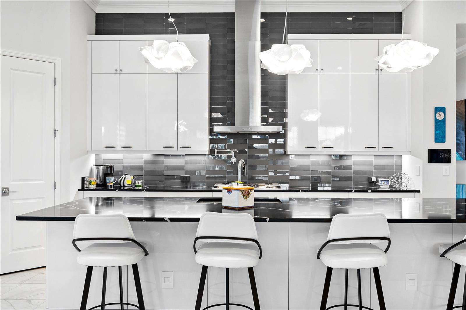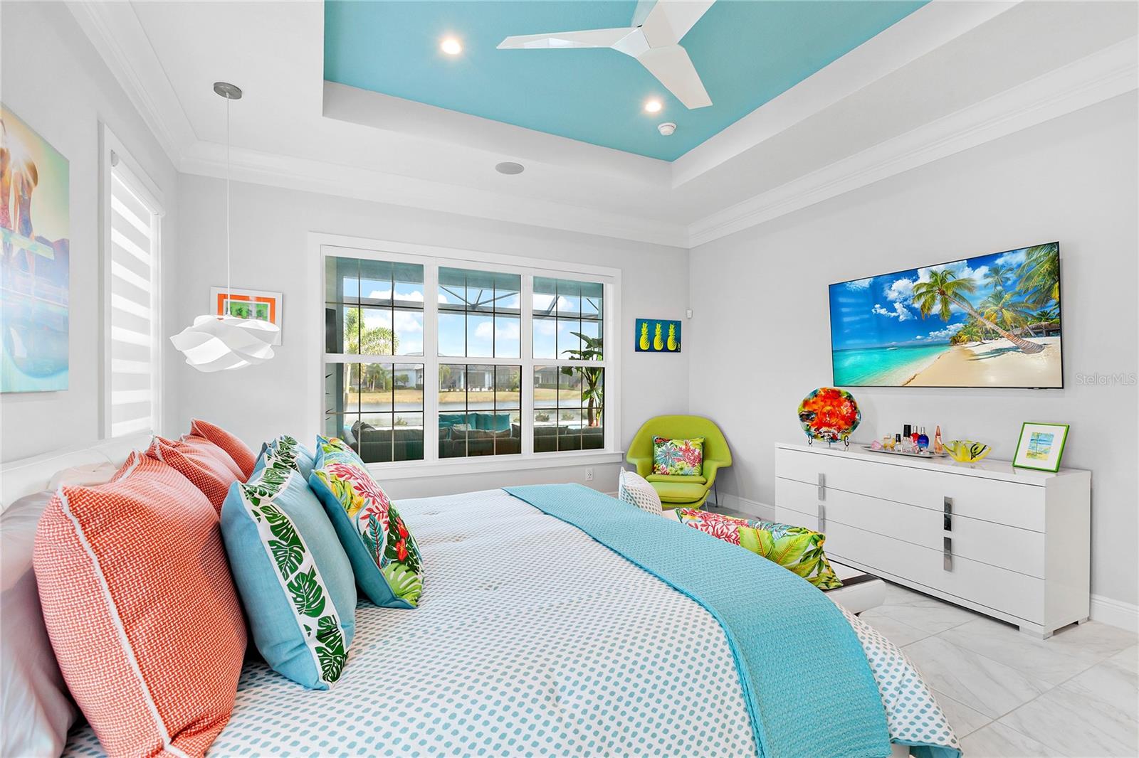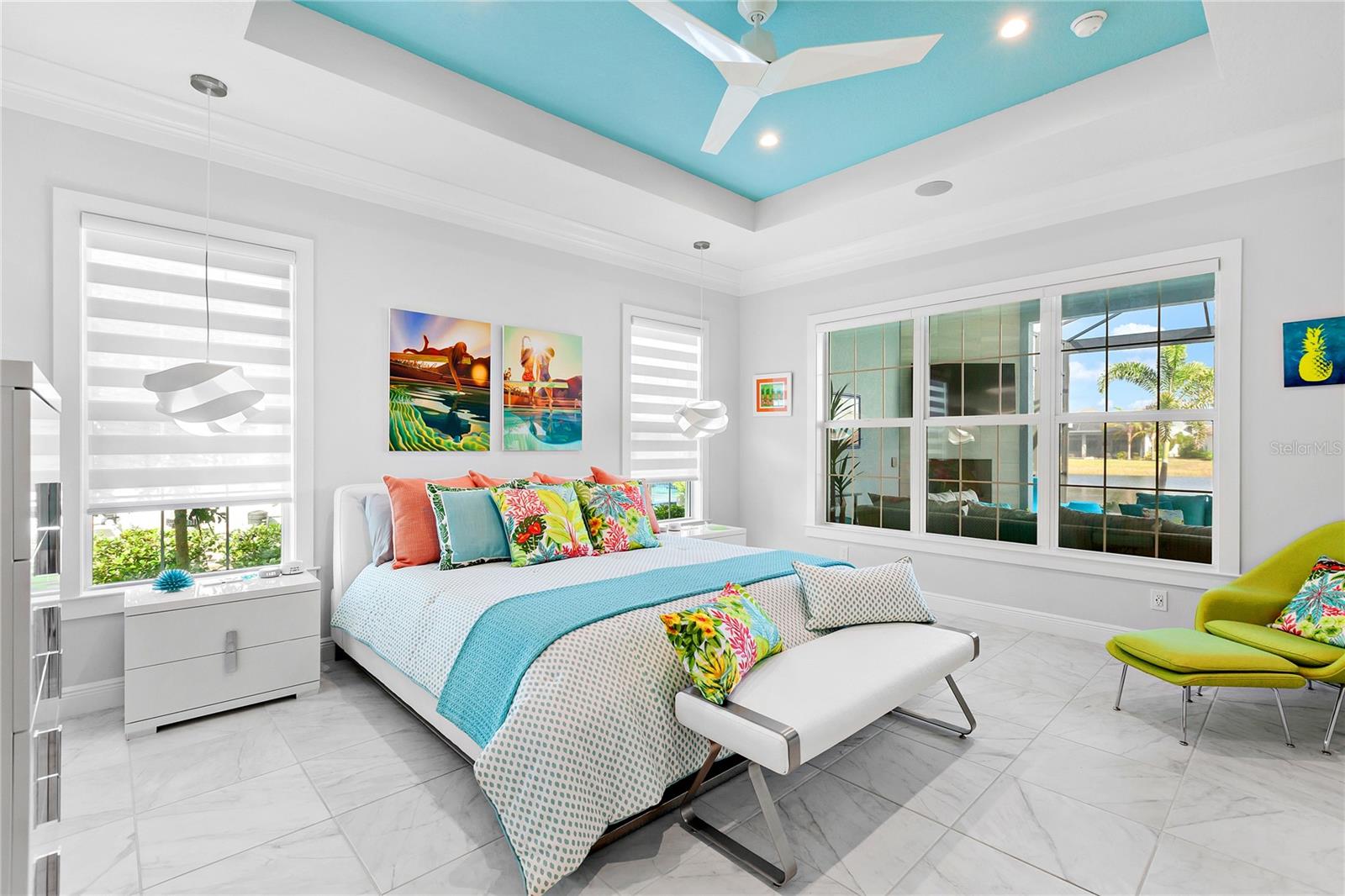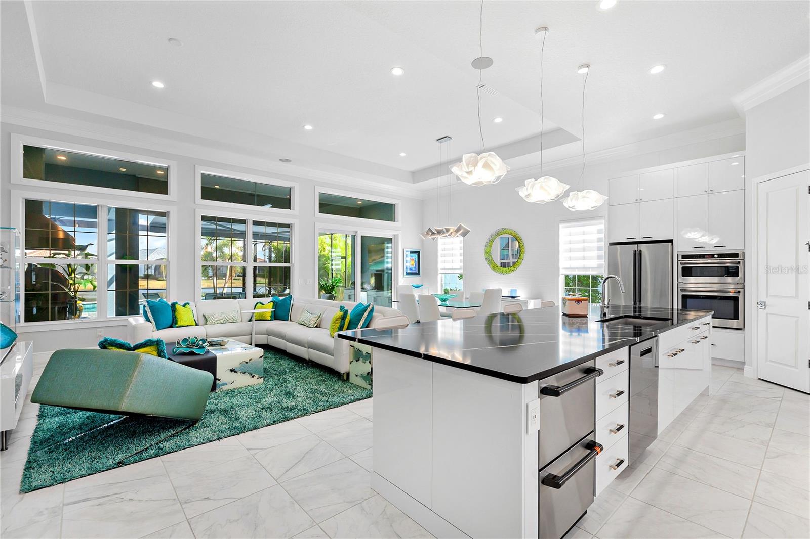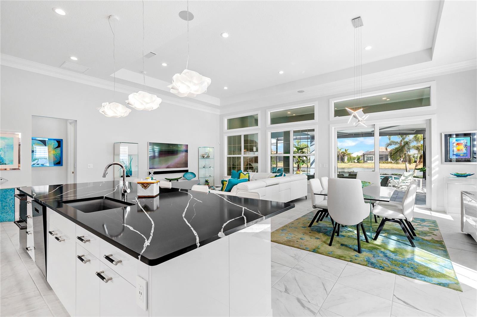 Luxury meets sophistication!! Designed for refined living and seamless entertaining, this expanded and customized Carlotta model by Neal Signature Homes is set within the gated enclave of Country Club East. Positioned on a premier lakefront homesite, the residence captures sweeping, uninterrupted views of a tranquil private lake and surrounding natural habitat. The outdoor living area is a private retreat, featuring a fully equipped summer kitchen with a grill and pizza oven, fireplace, projector screen, multiple televisions, and dedicated lounge zones--all oriented to overlook the winding waters of Lakewood Ranch. Every detail of this masterpiece has been meticulously curated, with over $200,000 in upgrades and aftermarket enhancements. The open and thoughtfully designed floor plan includes a 2-foot extension in the great room, dining room, primary bedroom, and a versatile club/bonus room, three bedrooms, and a chef's dream kitchen. The gourmet kitchen serves as the heart of the home, featuring a grand 13-foot extended Cambria designer island, sleek Italian-style cabinetry, top-of-the-line Caf appliances, and a custom-organized walk-in pantry. Seamlessly flowing into the great room and dining area, this space is perfect for entertaining while showcasing stunning lake vistas. The owner's retreat is a sanctuary of modern luxury, boasting a spa-inspired bathroom with split vanities, a Smart Moen shower system, and an oversized walk-in closet outfitted with custom built-ins. Two additional guest bedrooms, one includes a private en suite, ensuring comfort and privacy for visitors. Outdoor living reaches new heights on the extended lanai, a true resort-style escape. Enjoy a large heated swimming pool with multiple waterfalls, a panoramic screen overlooking the long winding lake, and a fully equipped outdoor kitchen with a grill, double burners, pizza oven, a separate serving buffet, retractable awning, an outdoor fireplace and three Storm Smart sun screens giving you rest and enjoyment. For unforgettable evenings, gather under the stars with the outdoor movie projection system featuring a 120-inch screen and additional speakers. This state-of-the-art smart home integrates Lutron lighting, security cameras, remote-controlled garage and door systems, Sonos sound system both indoors and out, EV charging station and motorized Hunter Douglas zebra blinds, TVs, and an iPad for easy controlling of this high tech home. Other upgrades include tray ceilings, crown moldings, extensive landscaping with modern outdoor lighting, multi-color changing pool lighting, and custom Closet Tech systems for optimal storage in all closets, the pantry, laundry room, and garages. Additional highlights include all impact windows and doors, designer light fixtures and ceiling fans, porcelain tile flooring throughout, a spacious laundry room with ample storage cabinets, a dedicated folding area, and custom organizers. Indulge in the lifestyle you've been dreaming of in the marvelous home. Residents of Country Club East enjoy a resort lifestyle with access to The Retreat an amenity center offering a resort-style pool, fitness facility, social spaces, an outdoor kitchen, nature trails for biking and walking. Optional memberships available at the LWR Golf and Country Club: golf, fitness and social. Conveniently located near shopping and restaurants, dining, cultural venues and renowned beaches.