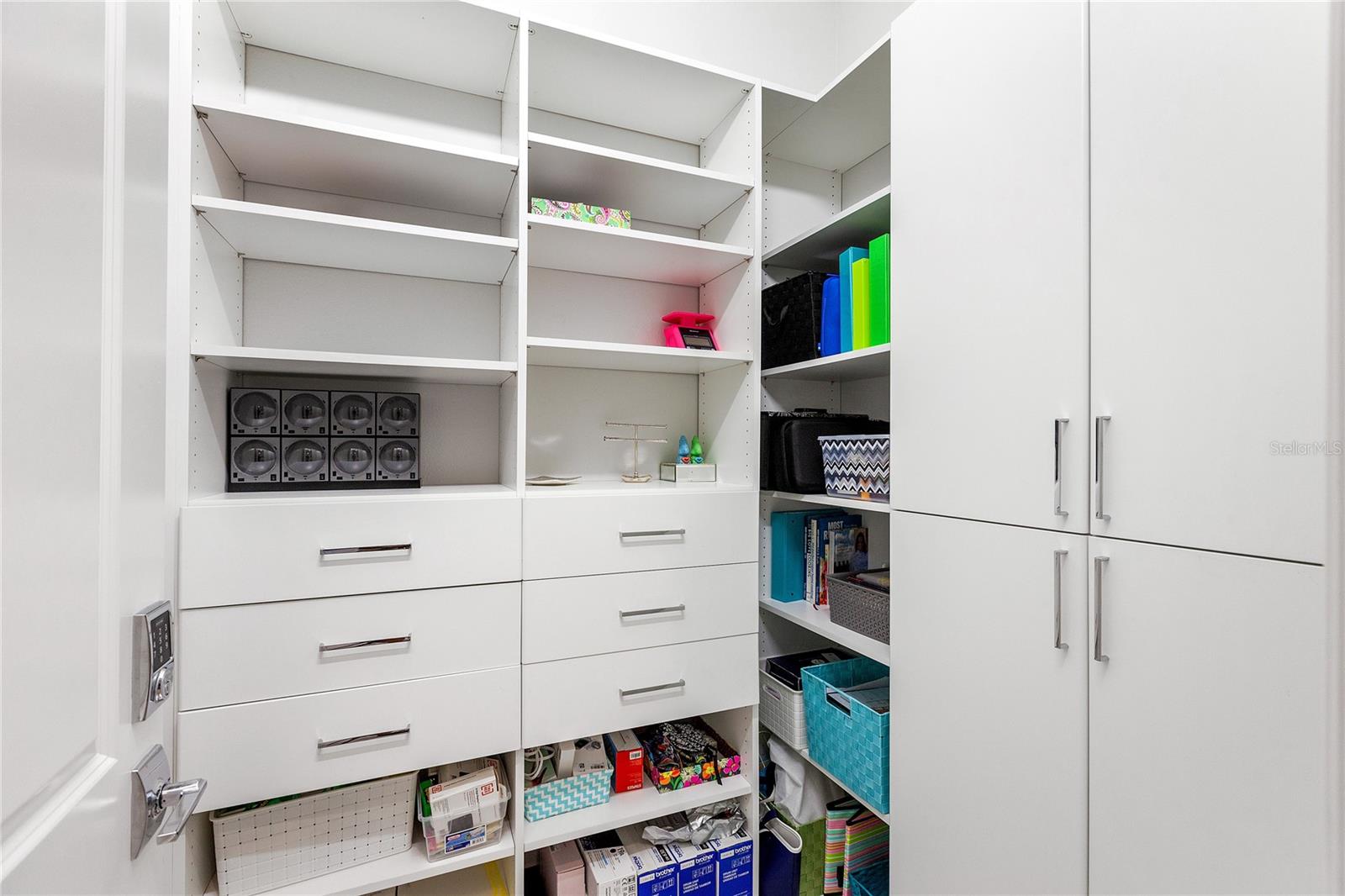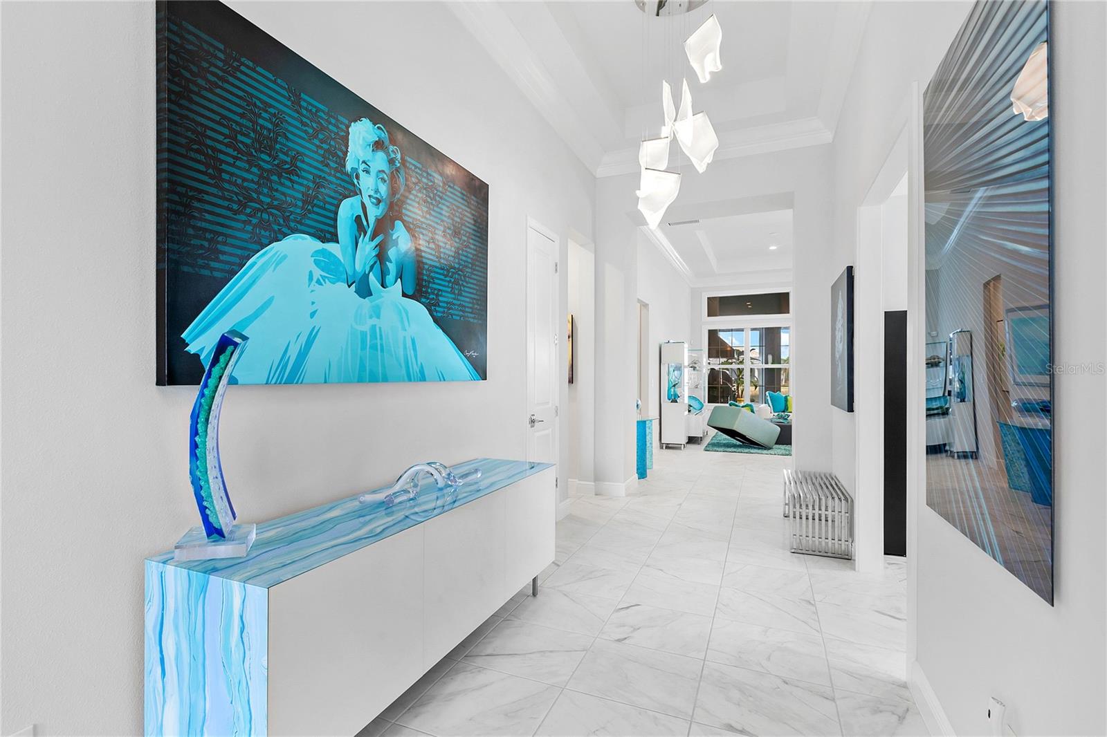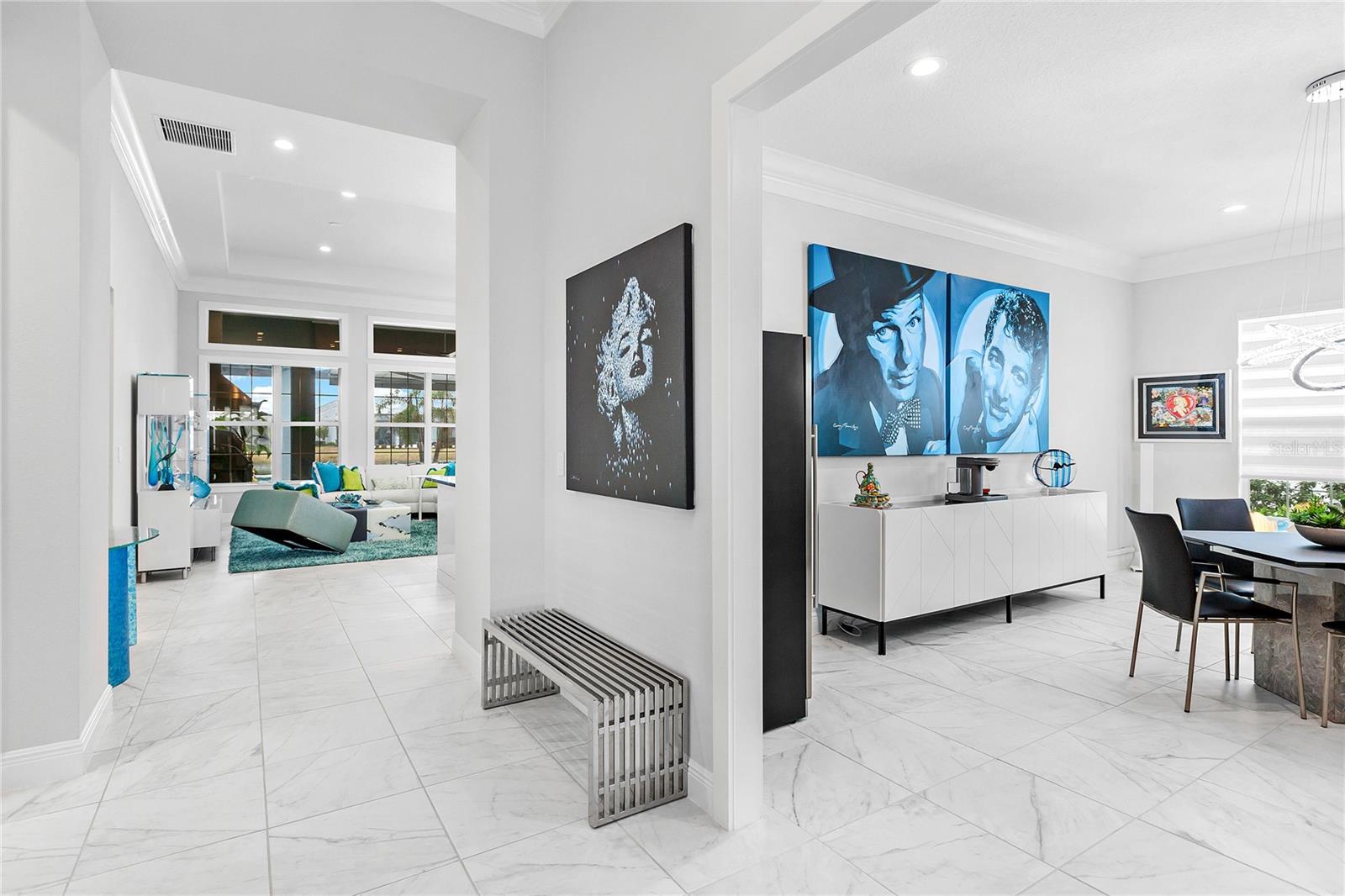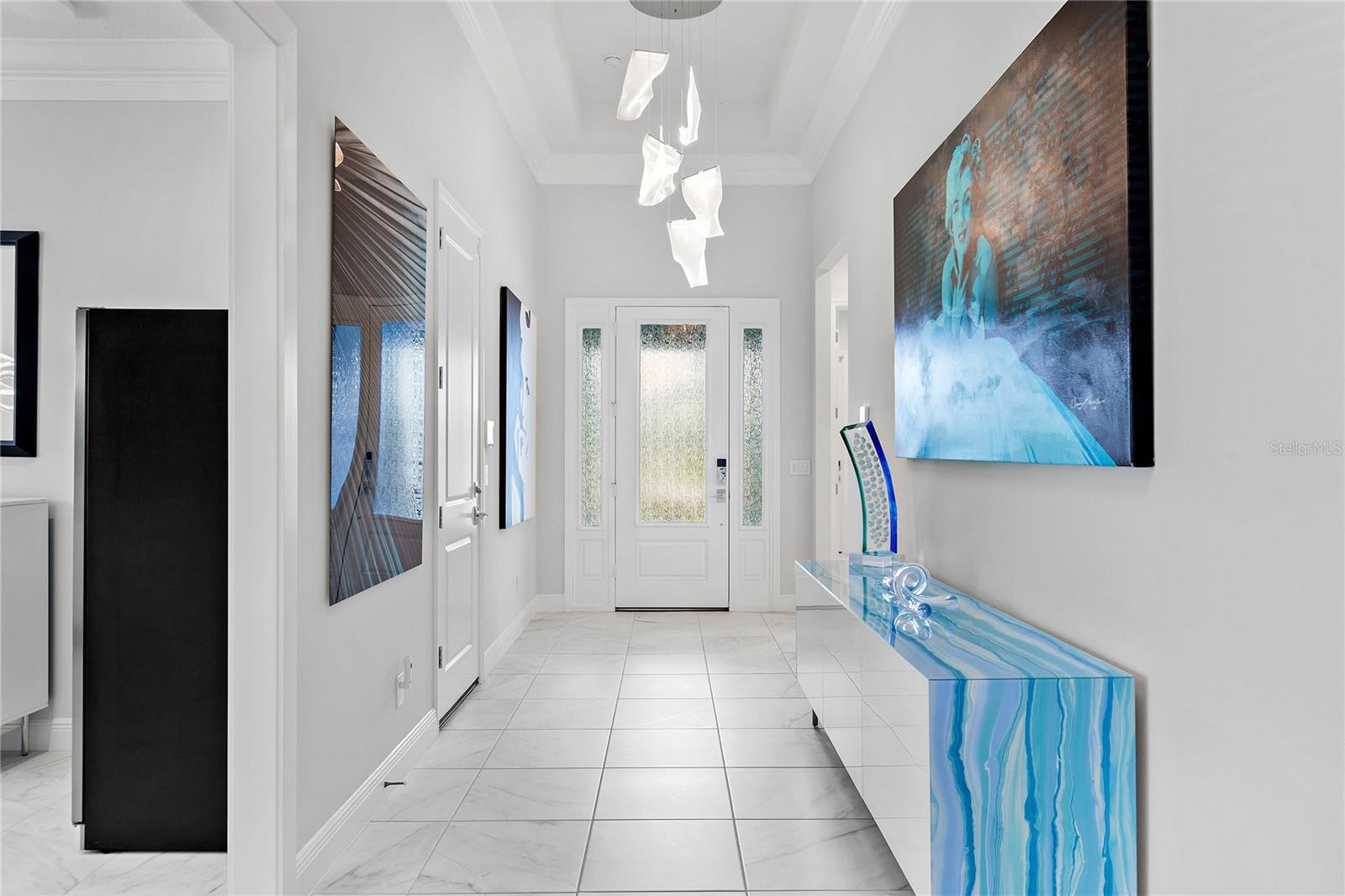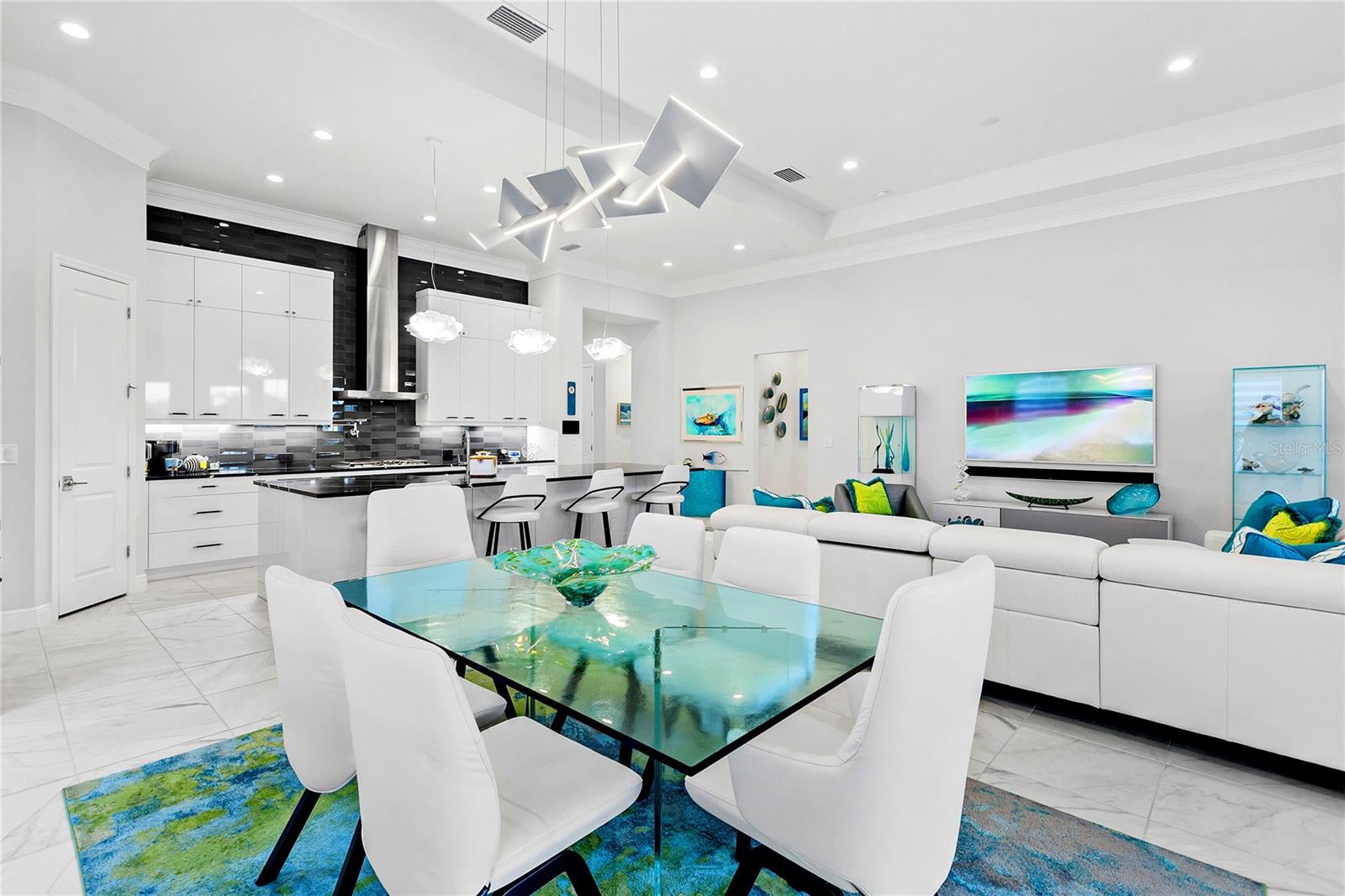Luxury meets sophistication!! Designed for refined living and seamless entertaining, this expanded and customized Carlotta model by Neal Signature Homes is set within the gated enclave of Country Club East. Positioned on a premier lakefront homesite, the residence captures sweeping, uninterrupted views of a tranquil private lake and surrounding natural habitat. The outdoor living area is a private retreat, featuring a fully equipped summer kitchen with a grill and pizza oven, fireplace, projector screen, multiple televisions, and dedicated lounge zones--all oriented to overlook the winding waters of Lakewood Ranch. Every detail of this masterpiece has been meticulously curated, with over $200,000 in upgrades and aftermarket enhancements. The open and thoughtfully designed floor plan includes a 2-foot extension in the great room, dining room, primary bedroom, and a versatile club/bonus room, three bedrooms, and a chef's dream kitchen. The gourmet kitchen serves as the heart of the home, featuring a grand 13-foot extended Cambria designer island, sleek Italian-style cabinetry, top-of-the-line Caf appliances, and a custom-organized walk-in pantry. Seamlessly flowing into the great room and dining area, this space is perfect for entertaining while showcasing stunning lake vistas. The owner's retreat is a sanctuary of modern luxury, boasting a spa-inspired bathroom with split vanities, a Smart Moen shower system, and an oversized walk-in closet outfitted with custom built-ins. Two additional guest bedrooms, one includes a private en suite, ensuring comfort and privacy for visitors. Outdoor living reaches new heights on the extended lanai, a true resort-style escape. Enjoy a large heated swimming pool with multiple waterfalls, a panoramic screen overlooking the long winding lake, and a fully equipped outdoor kitchen with a grill, double burners, pizza oven, a separate serving buffet, retractable awning, an outdoor fireplace and three Storm Smart sun screens giving you rest and enjoyment. For unforgettable evenings, gather under the stars with the outdoor movie projection system featuring a 120-inch screen and additional speakers. This state-of-the-art smart home integrates Lutron lighting, security cameras, remote-controlled garage and door systems, Sonos sound system both indoors and out, EV charging station and motorized Hunter Douglas zebra blinds, TVs, and an iPad for easy controlling of this high tech home. Other upgrades include tray ceilings, crown moldings, extensive landscaping with modern outdoor lighting, multi-color changing pool lighting, and custom Closet Tech systems for optimal storage in all closets, the pantry, laundry room, and garages. Additional highlights include all impact windows and doors, designer light fixtures and ceiling fans, porcelain tile flooring throughout, a spacious laundry room with ample storage cabinets, a dedicated folding area, and custom organizers. Indulge in the lifestyle you've been dreaming of in the marvelous home. Residents of Country Club East enjoy a resort lifestyle with access to The Retreat an amenity center offering a resort-style pool, fitness facility, social spaces, an outdoor kitchen, nature trails for biking and walking. Optional memberships available at the LWR Golf and Country Club: golf, fitness and social. Conveniently located near shopping and restaurants, dining, cultural venues and renowned beaches.