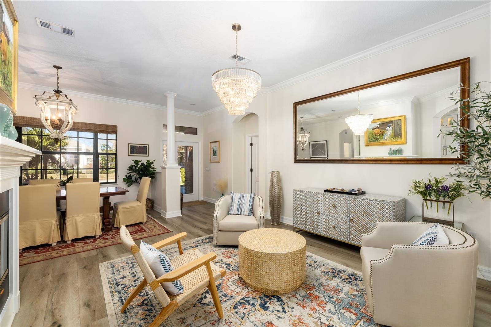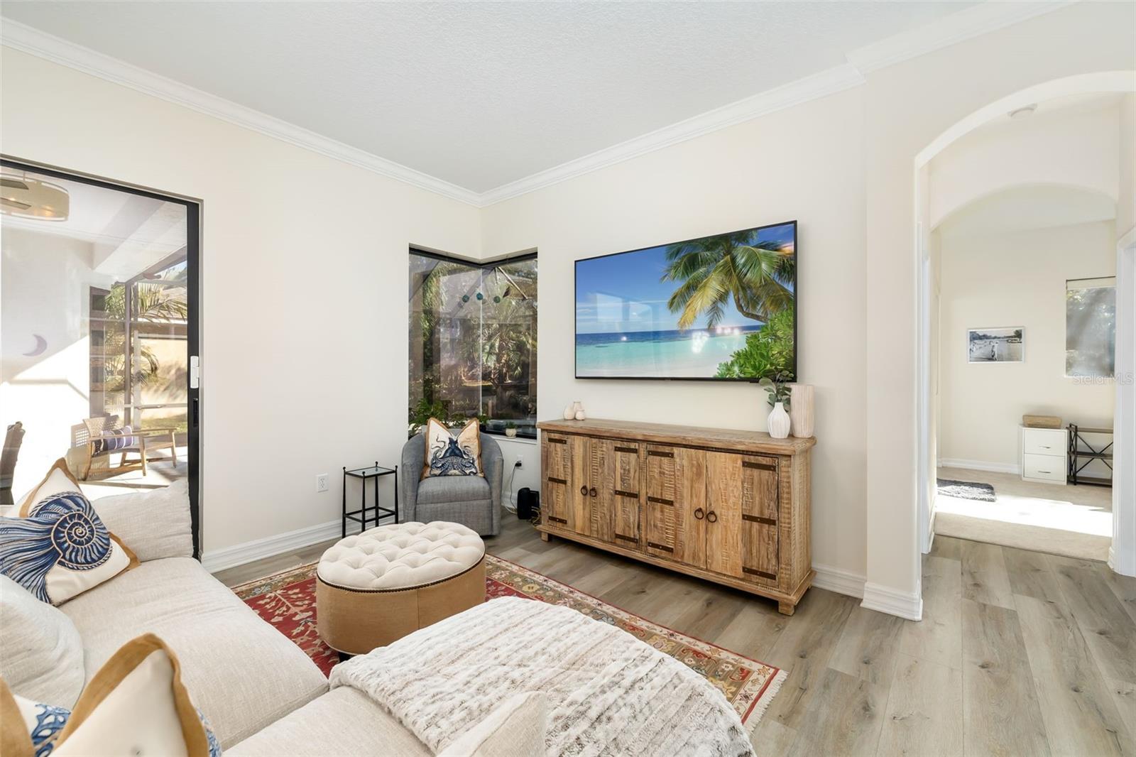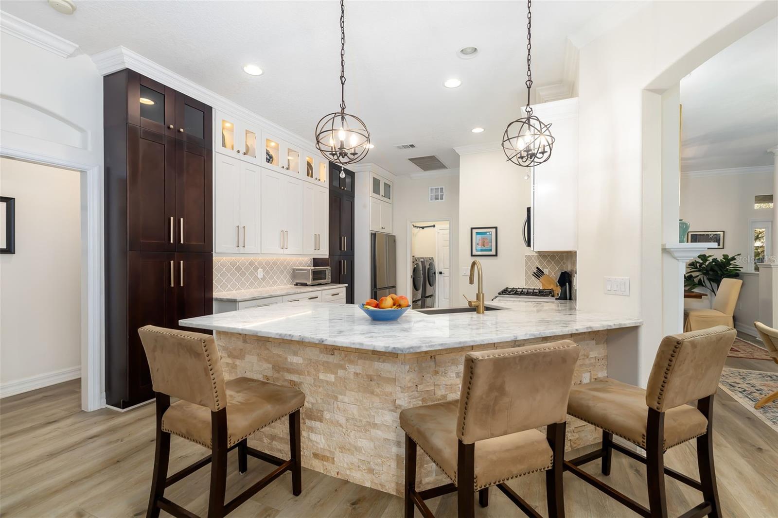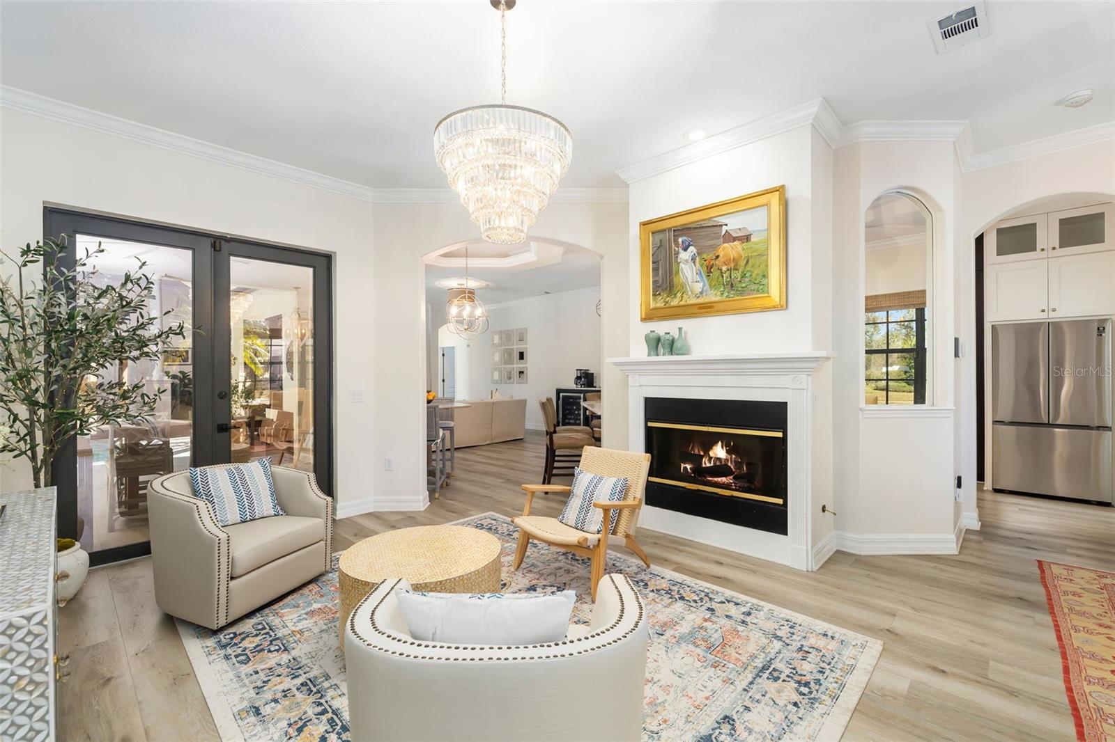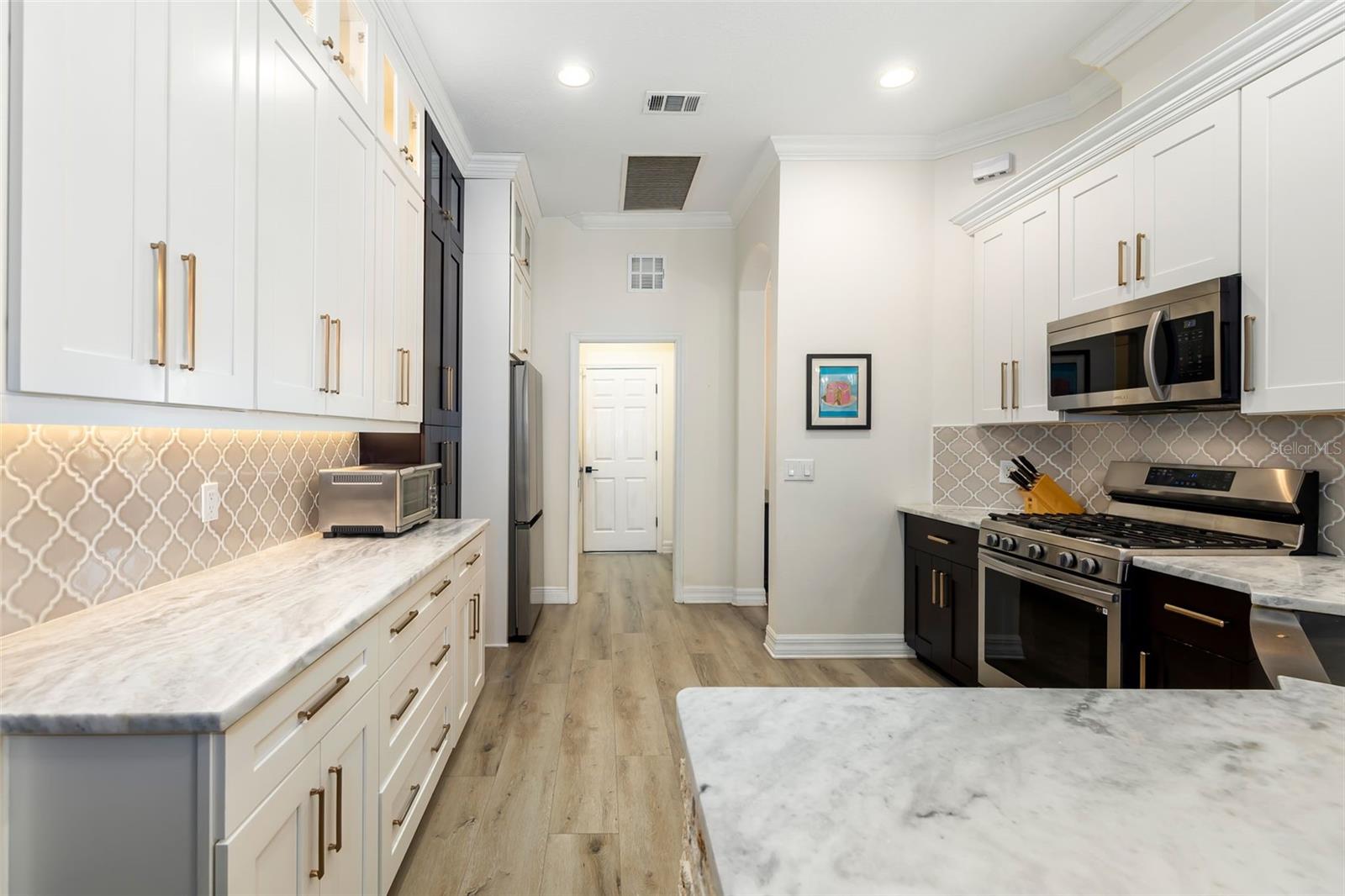 This impeccably maintained Greenbrook home features a side-entry oversized garage, a paver driveway, a charming front porch, and a stacked stone faade. The property also boasts a 2-year-old roof with full-house gutters and a new 6-camera ADT security system with Alert 360. The peaceful rear lanai is home to a heated saltwater pool with a new filter, a freestanding therapy spa, and a Southern rear exposure.Inside, you'll find luxury vinyl plank flooring throughout the living areas, custom light fixtures, an electric wall fireplace in the living room, 5 " baseboards, and an abundance of crown molding and architectural details. The kitchen is a chef's dream with white and cherry cabinetry, granite countertops, 42" upper cabinets with additional stacked glass-front lit cabinets reaching the ceiling, pull-out drawers in the base cabinets, a stainless steel gas stove and appliances, a farmhouse sink, and a built-in wine and coffee bar. The home also includes a whole-house water filter and softener.All four bedrooms feature built-in closet systems, along with a spacious home office. Double-pane bronze windows add energy efficiency, while the garage offers extra storage above the car space and built-ins. The garage door opener comes with a transferable 3-year warranty. The laundry room is fully equipped with ample cabinets and storage space.The exterior showcases genuine curb appeal with upgraded landscaping and lighting.Greenbrook is a fantastic community within walking distance to A-rated McNeal and Nolan Elementary & Middle Schools. The Greenbrook Adventure Park offers ball fields, inline skating, dog parks, walking trails, playgrounds, pickleball/tennis courts, and a Pavilion. The neighborhood has incredibly low HOA fees--less than $10 per month--and is conveniently located within Lakewood Ranch, close to Lakewood Ranch Main Street, Waterside, restaurants, shopping, and just a short drive to Sarasota's crystal-clear beaches, including Siesta Key, Bradenton, and Anna Maria Island.Some furniture may be available for purchase via a separate bill of sale.