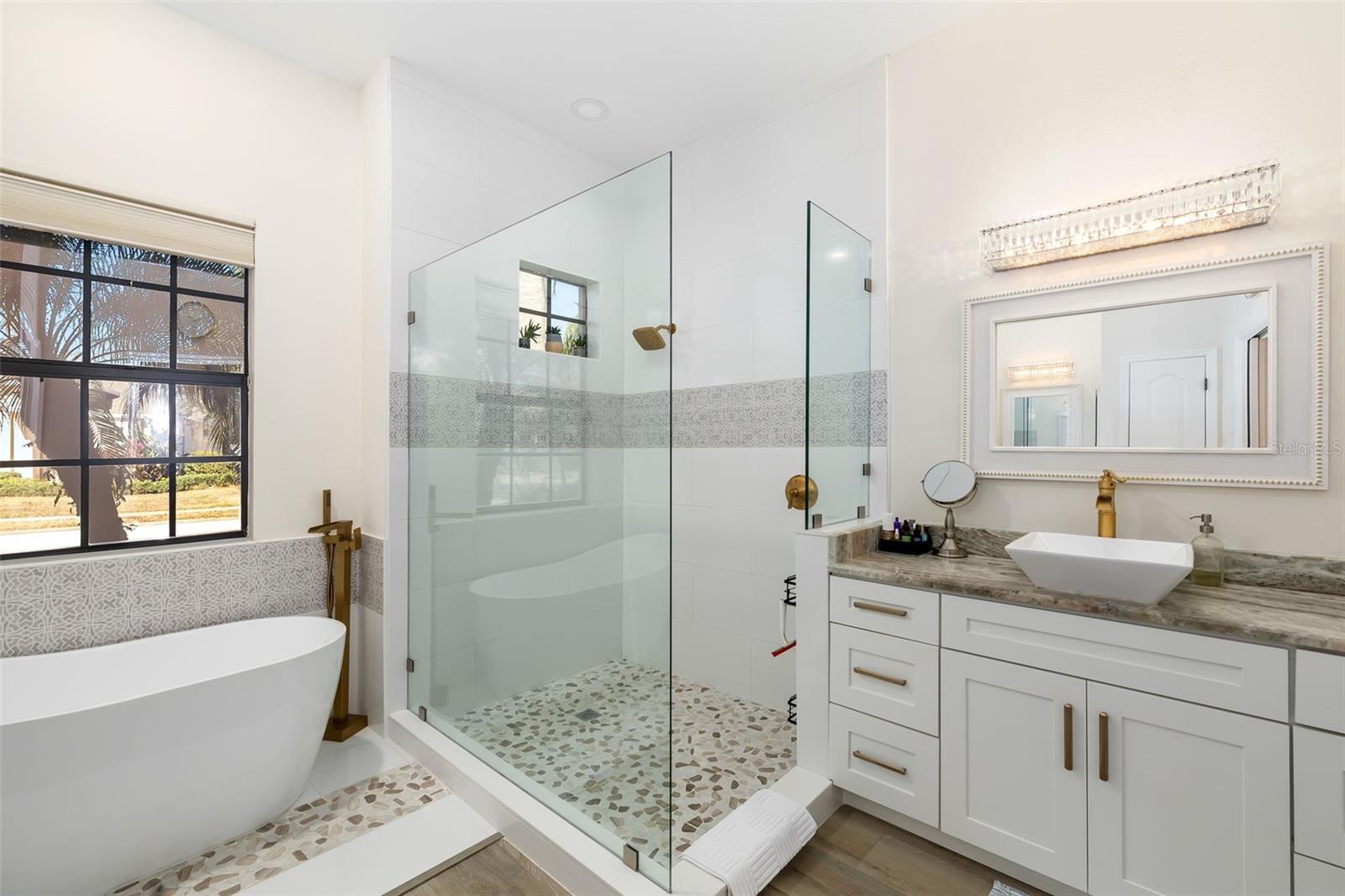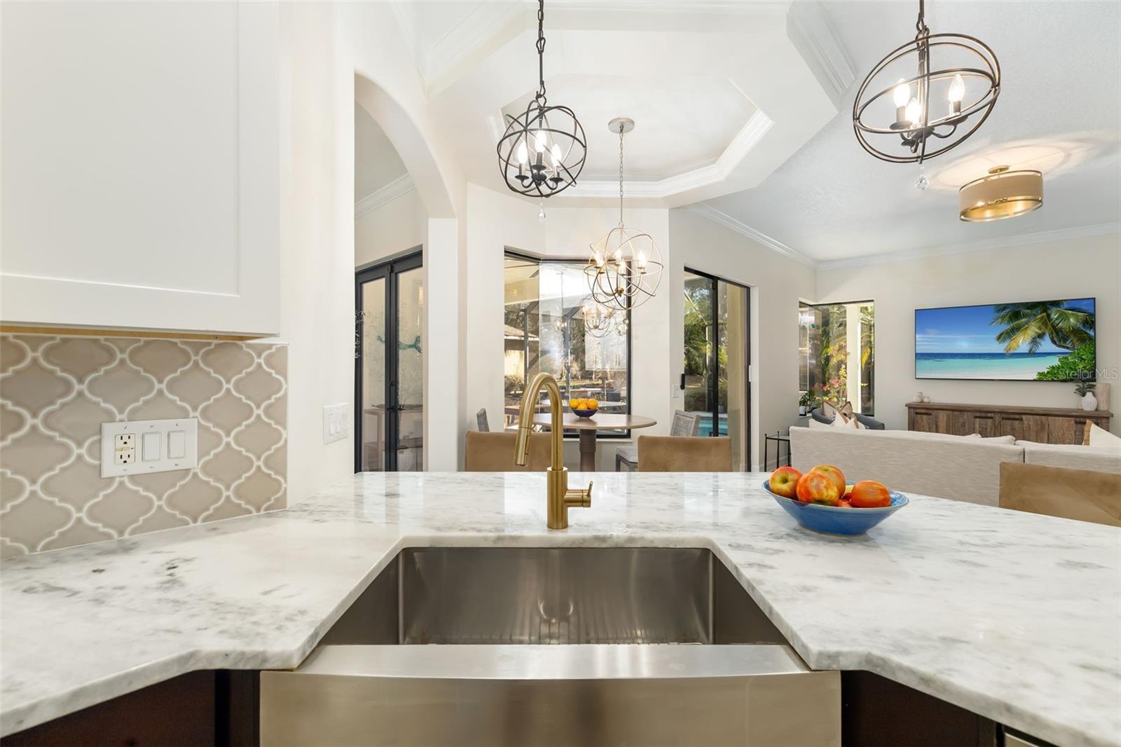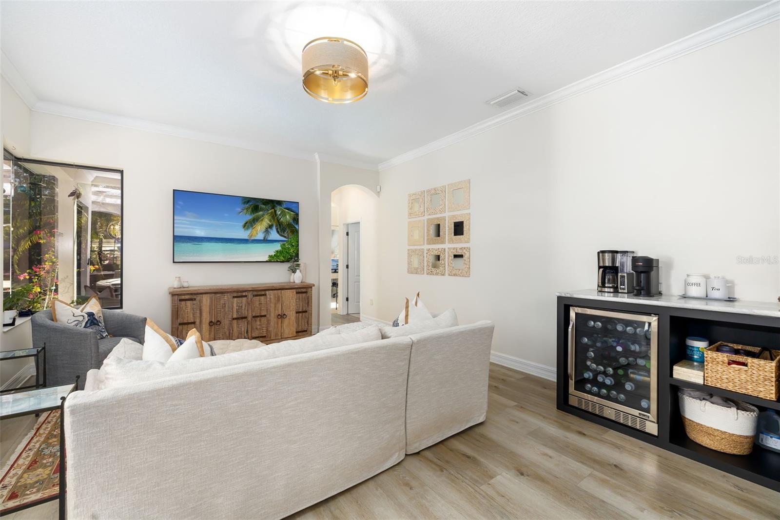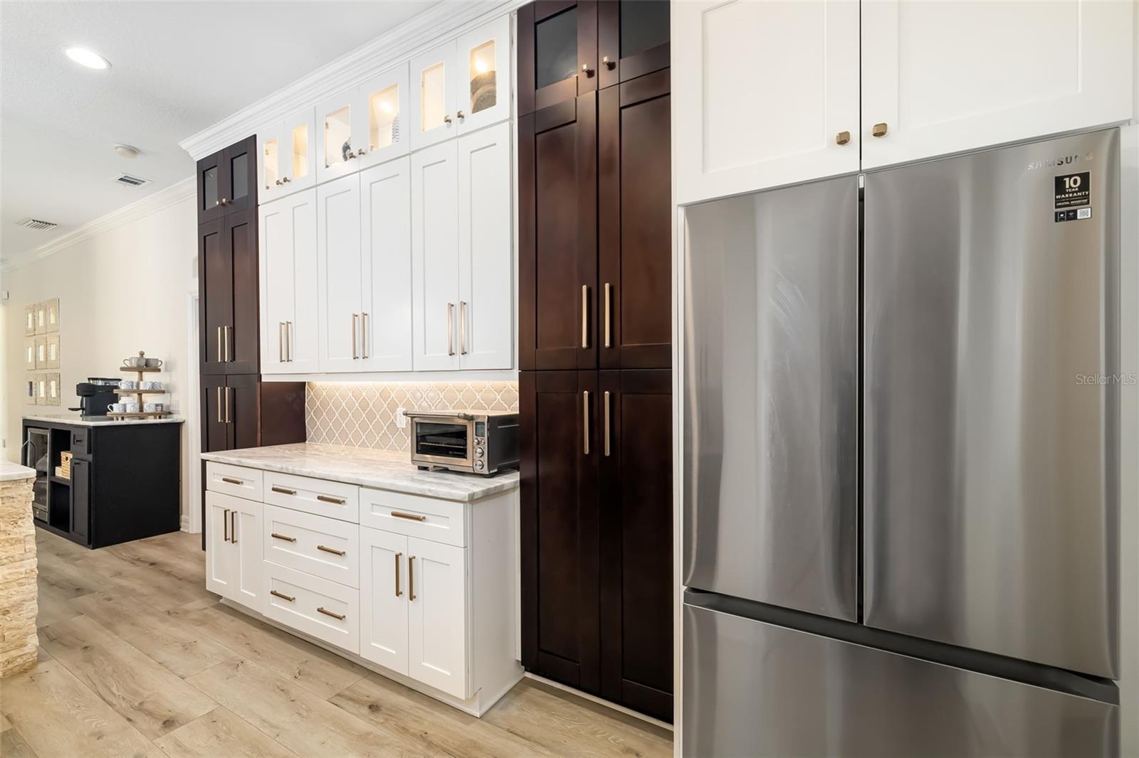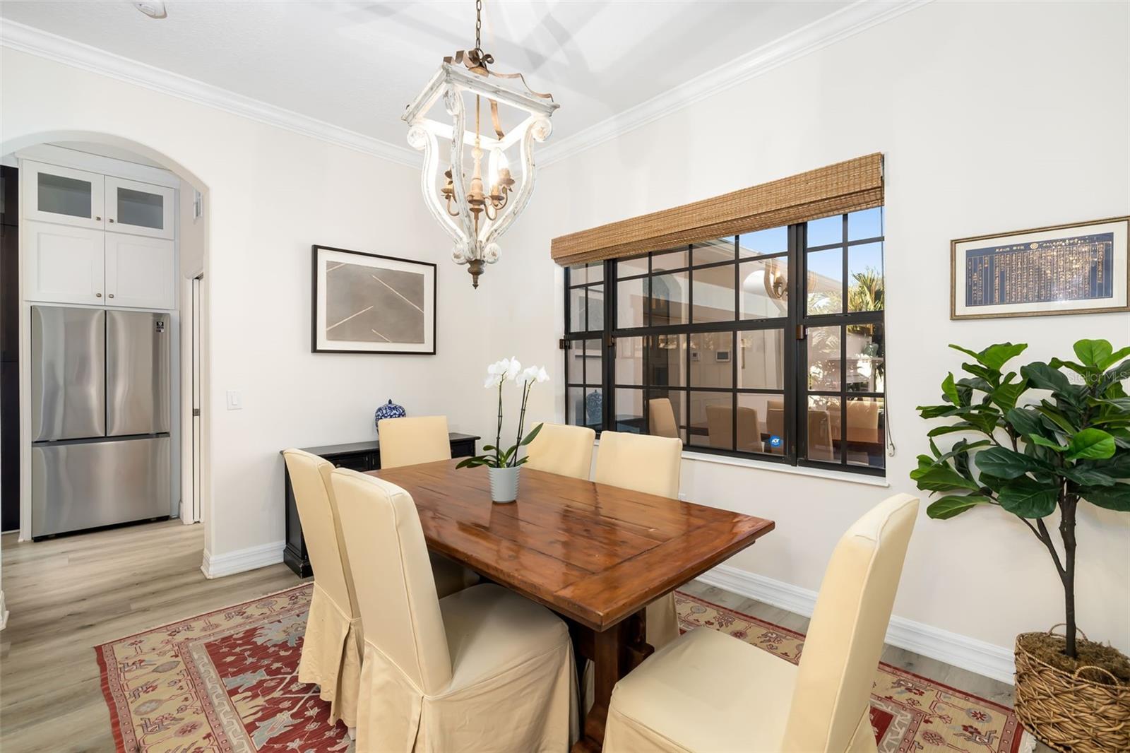 This impeccably maintained Greenbrook home features a side-entry oversized garage, a paver driveway, a charming front porch, and a stacked stone faade. The property also boasts a 2-year-old roof with full-house gutters and a new 6-camera ADT security system with Alert 360. The peaceful rear lanai is home to a heated saltwater pool with a new filter, a freestanding therapy spa, and a Southern rear exposure.Inside, you'll find luxury vinyl plank flooring throughout the living areas, custom light fixtures, an electric wall fireplace in the living room, 5 " baseboards, and an abundance of crown molding and architectural details. The kitchen is a chef's dream with white and cherry cabinetry, granite countertops, 42" upper cabinets with additional stacked glass-front lit cabinets reaching the ceiling, pull-out drawers in the base cabinets, a stainless steel gas stove and appliances, a farmhouse sink, and a built-in wine and coffee bar. The home also includes a whole-house water filter and softener.All four bedrooms feature built-in closet systems, along with a spacious home office. Double-pane bronze windows add energy efficiency, while the garage offers extra storage above the car space and built-ins. The garage door opener comes with a transferable 3-year warranty. The laundry room is fully equipped with ample cabinets and storage space.The exterior showcases genuine curb appeal with upgraded landscaping and lighting.Greenbrook is a fantastic community within walking distance to A-rated McNeal and Nolan Elementary & Middle Schools. The Greenbrook Adventure Park offers ball fields, inline skating, dog parks, walking trails, playgrounds, pickleball/tennis courts, and a Pavilion. The neighborhood has incredibly low HOA fees--less than $10 per month--and is conveniently located within Lakewood Ranch, close to Lakewood Ranch Main Street, Waterside, restaurants, shopping, and just a short drive to Sarasota's crystal-clear beaches, including Siesta Key, Bradenton, and Anna Maria Island.Some furniture may be available for purchase via a separate bill of sale.