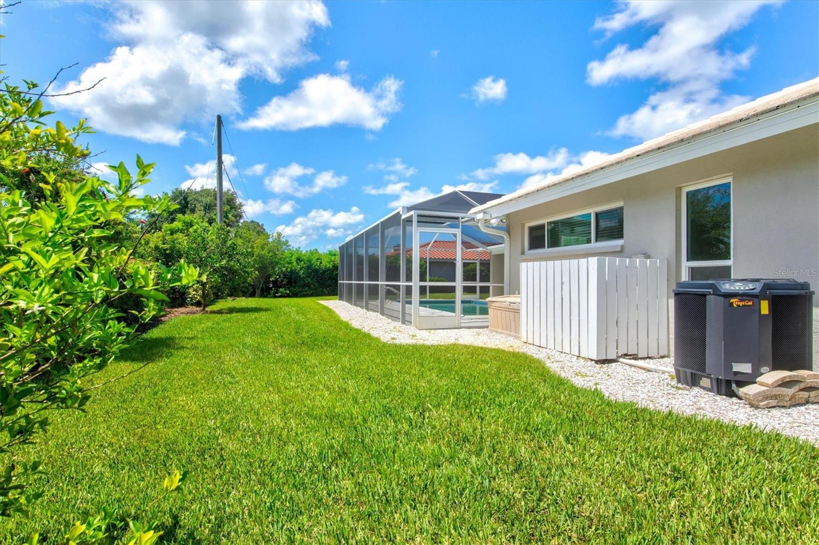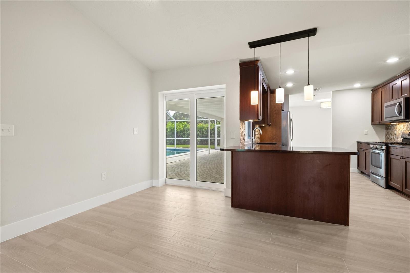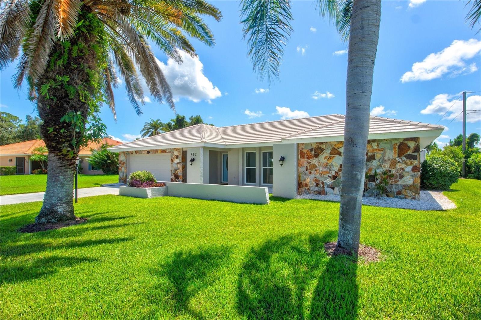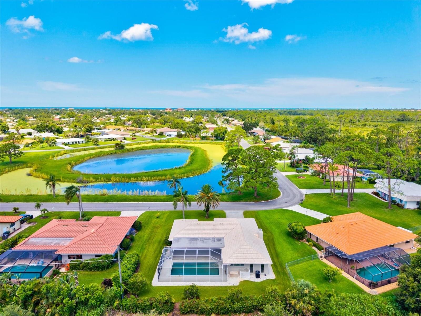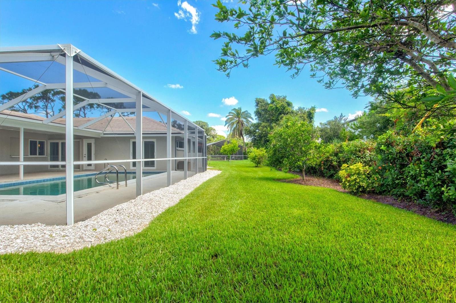 One or more photo(s) has been virtually staged. WOW FACTOR! Welcome to Sorrento East, one of the area's most sought-after neighborhoods! This beautifully updated 3-bedroom, 2-bathroom residence boasts nearly 1,800 sq. ft. of modern comfort, perfectly designed with a desirable split floor plan for ultimate privacy. Step inside to find soaring vaulted ceilings and Brand New 8" x 48" porcelain plank tile floors, creating a sleek, light-filled atmosphere. The spacious open-concept living and dining areas flow effortlessly into a true chef's kitchen--complete with rich wood cabinetry, gas range, sparkling granite countertops and premium stainless steel appliances. Retreat to the private primary suite, complete with an en-suite bath and cedar-lined closets. Both bathrooms shine with Brand New shaker-style vanities, quartz countertops, and elegant plumbing finishes. Peace of mind comes with hurricane-impact windows and sliding glass doors and a Brand New 2025 HVAC system ensuring security and energy efficiency! Step outside and discover your private backyard paradise--a refreshing inground pool, lush mature landscaping, and decorative shell accents set the scene for relaxation. The covered lanai, with its striking tongue-and-groove wood ceiling, makes this the ultimate year-round entertaining space. Best of all, you're just minutes from A-rated schools, fabulous dining, endless shopping, and only 4 miles from the sugar-white sands of Nokomis Beach!