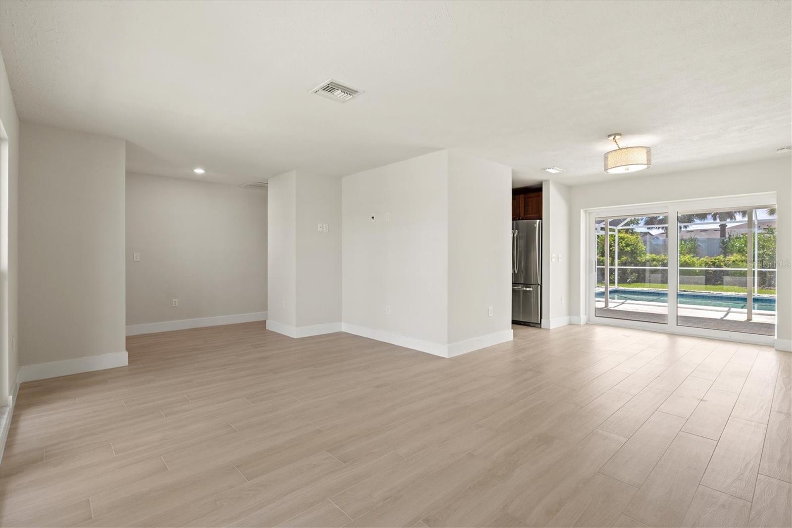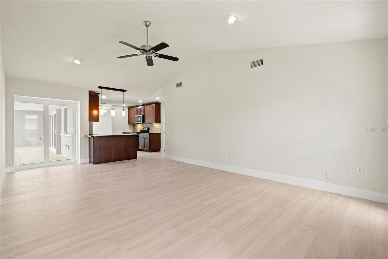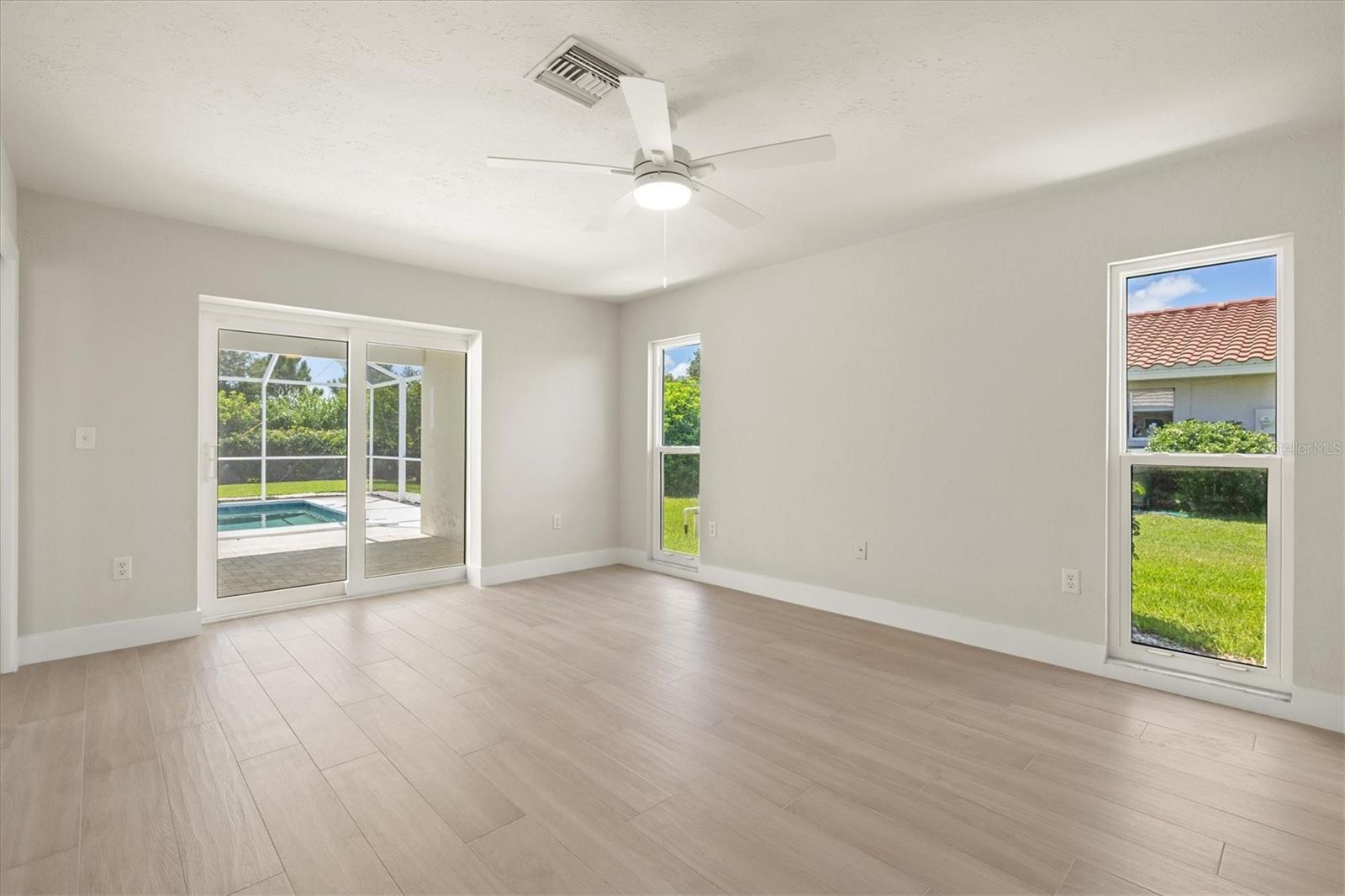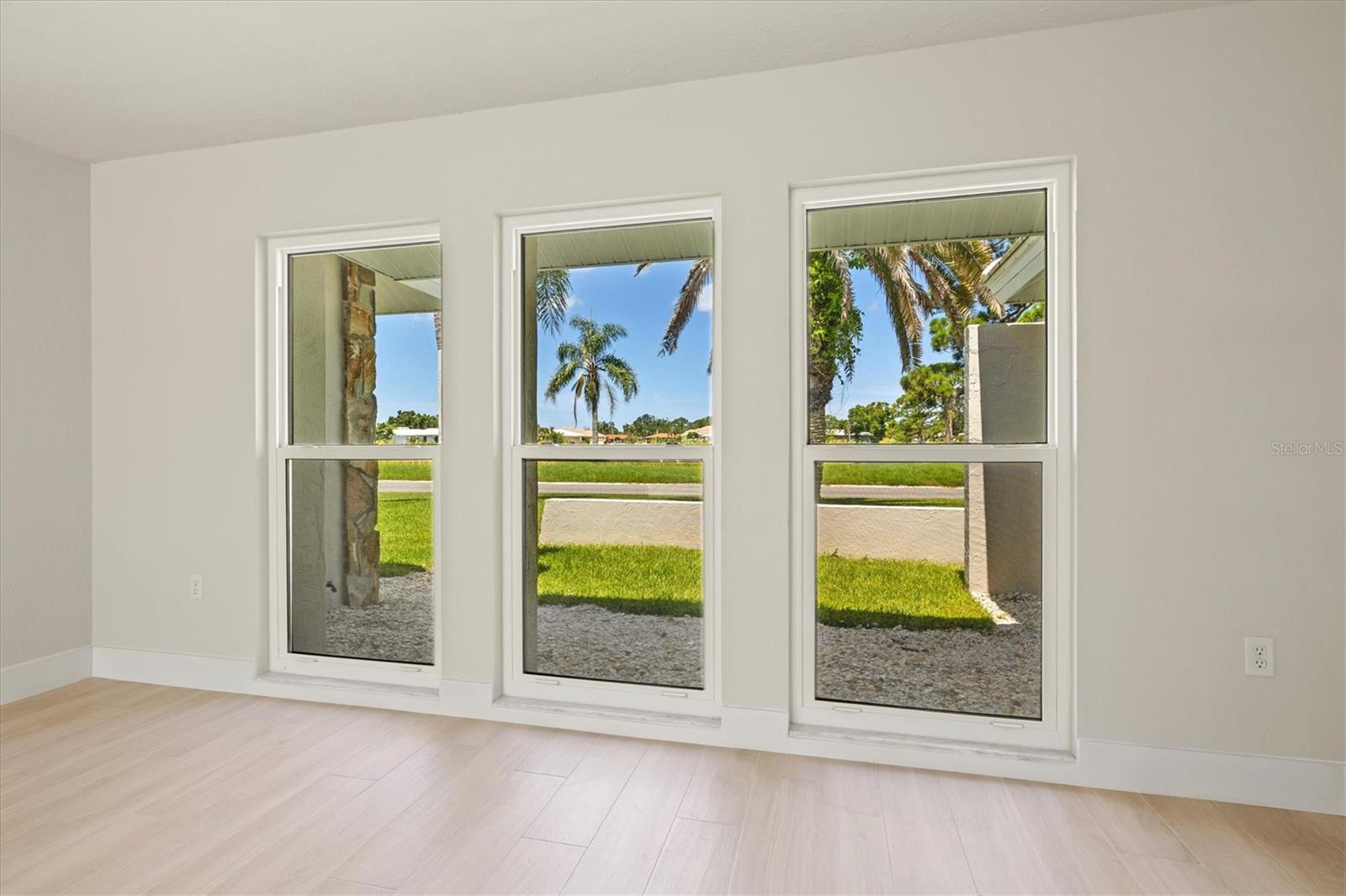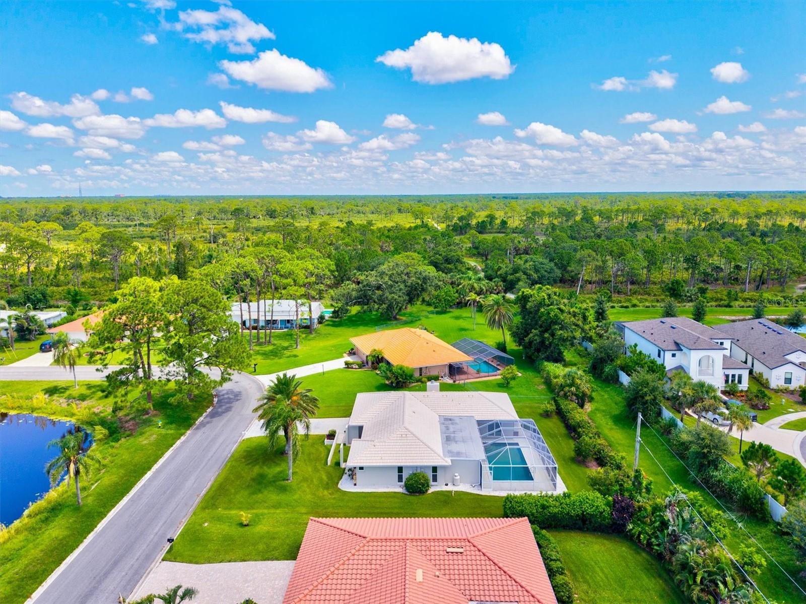 One or more photo(s) has been virtually staged. WOW FACTOR! Welcome to Sorrento East, one of the area's most sought-after neighborhoods! This beautifully updated 3-bedroom, 2-bathroom residence boasts nearly 1,800 sq. ft. of modern comfort, perfectly designed with a desirable split floor plan for ultimate privacy. Step inside to find soaring vaulted ceilings and Brand New 8" x 48" porcelain plank tile floors, creating a sleek, light-filled atmosphere. The spacious open-concept living and dining areas flow effortlessly into a true chef's kitchen--complete with rich wood cabinetry, gas range, sparkling granite countertops and premium stainless steel appliances. Retreat to the private primary suite, complete with an en-suite bath and cedar-lined closets. Both bathrooms shine with Brand New shaker-style vanities, quartz countertops, and elegant plumbing finishes. Peace of mind comes with hurricane-impact windows and sliding glass doors and a Brand New 2025 HVAC system ensuring security and energy efficiency! Step outside and discover your private backyard paradise--a refreshing inground pool, lush mature landscaping, and decorative shell accents set the scene for relaxation. The covered lanai, with its striking tongue-and-groove wood ceiling, makes this the ultimate year-round entertaining space. Best of all, you're just minutes from A-rated schools, fabulous dining, endless shopping, and only 4 miles from the sugar-white sands of Nokomis Beach!