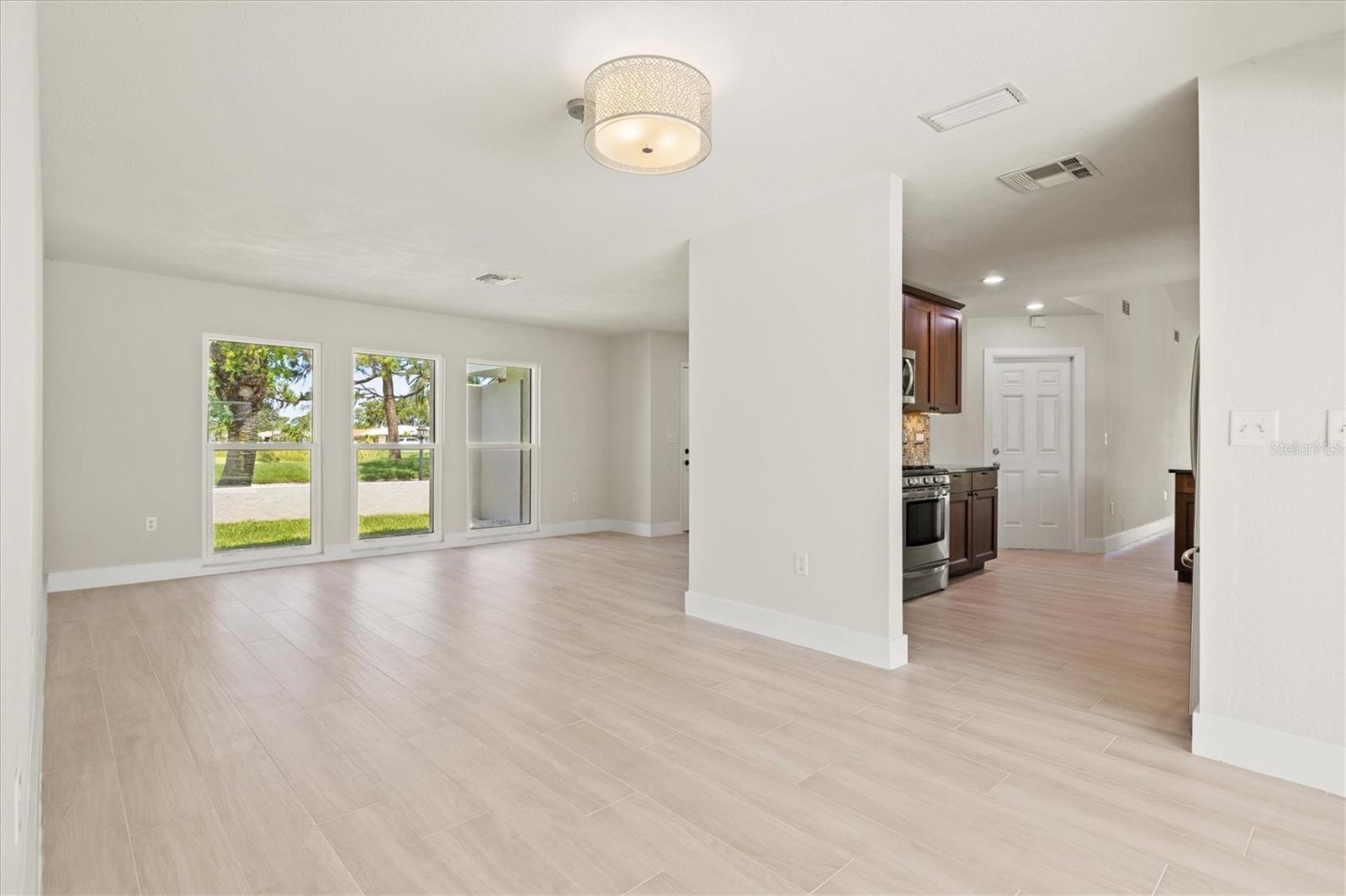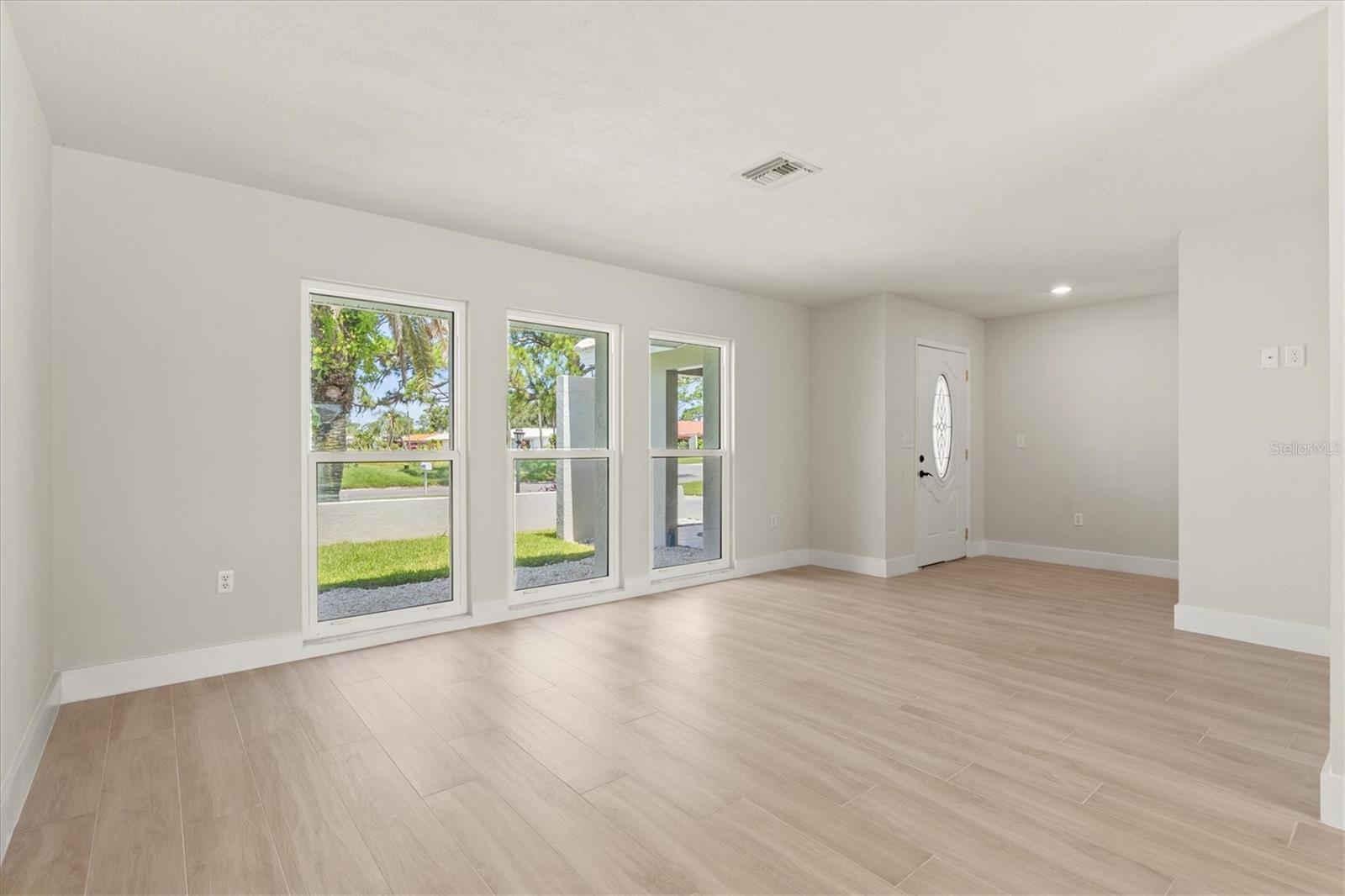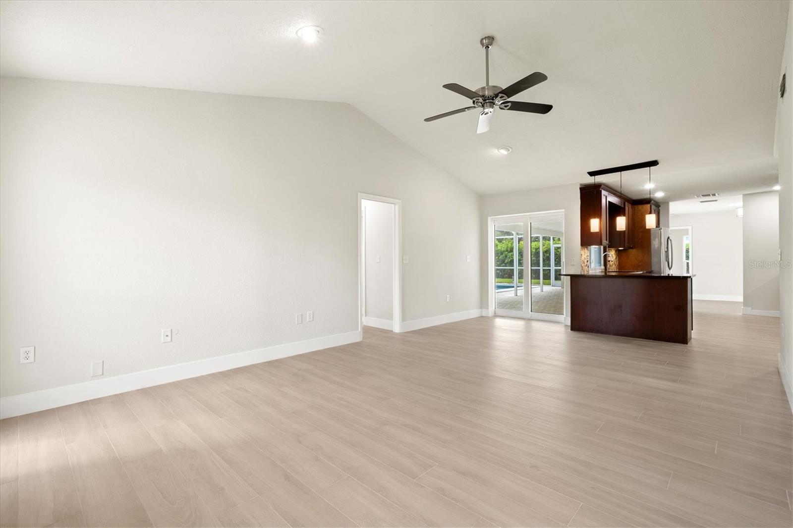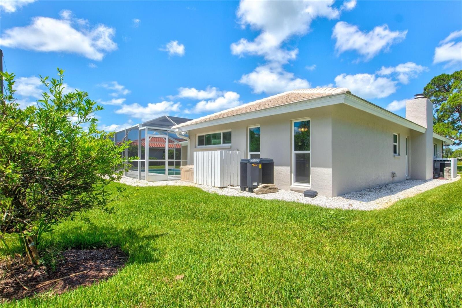 One or more photo(s) has been virtually staged. WOW FACTOR! Welcome to Sorrento East, one of the area's most sought-after neighborhoods! This beautifully updated 3-bedroom, 2-bathroom residence boasts nearly 1,800 sq. ft. of modern comfort, perfectly designed with a desirable split floor plan for ultimate privacy. Step inside to find soaring vaulted ceilings and Brand New 8" x 48" porcelain plank tile floors, creating a sleek, light-filled atmosphere. The spacious open-concept living and dining areas flow effortlessly into a true chef's kitchen--complete with rich wood cabinetry, gas range, sparkling granite countertops and premium stainless steel appliances. Retreat to the private primary suite, complete with an en-suite bath and cedar-lined closets. Both bathrooms shine with Brand New shaker-style vanities, quartz countertops, and elegant plumbing finishes. Peace of mind comes with hurricane-impact windows and sliding glass doors and a Brand New 2025 HVAC system ensuring security and energy efficiency! Step outside and discover your private backyard paradise--a refreshing inground pool, lush mature landscaping, and decorative shell accents set the scene for relaxation. The covered lanai, with its striking tongue-and-groove wood ceiling, makes this the ultimate year-round entertaining space. Best of all, you're just minutes from A-rated schools, fabulous dining, endless shopping, and only 4 miles from the sugar-white sands of Nokomis Beach!