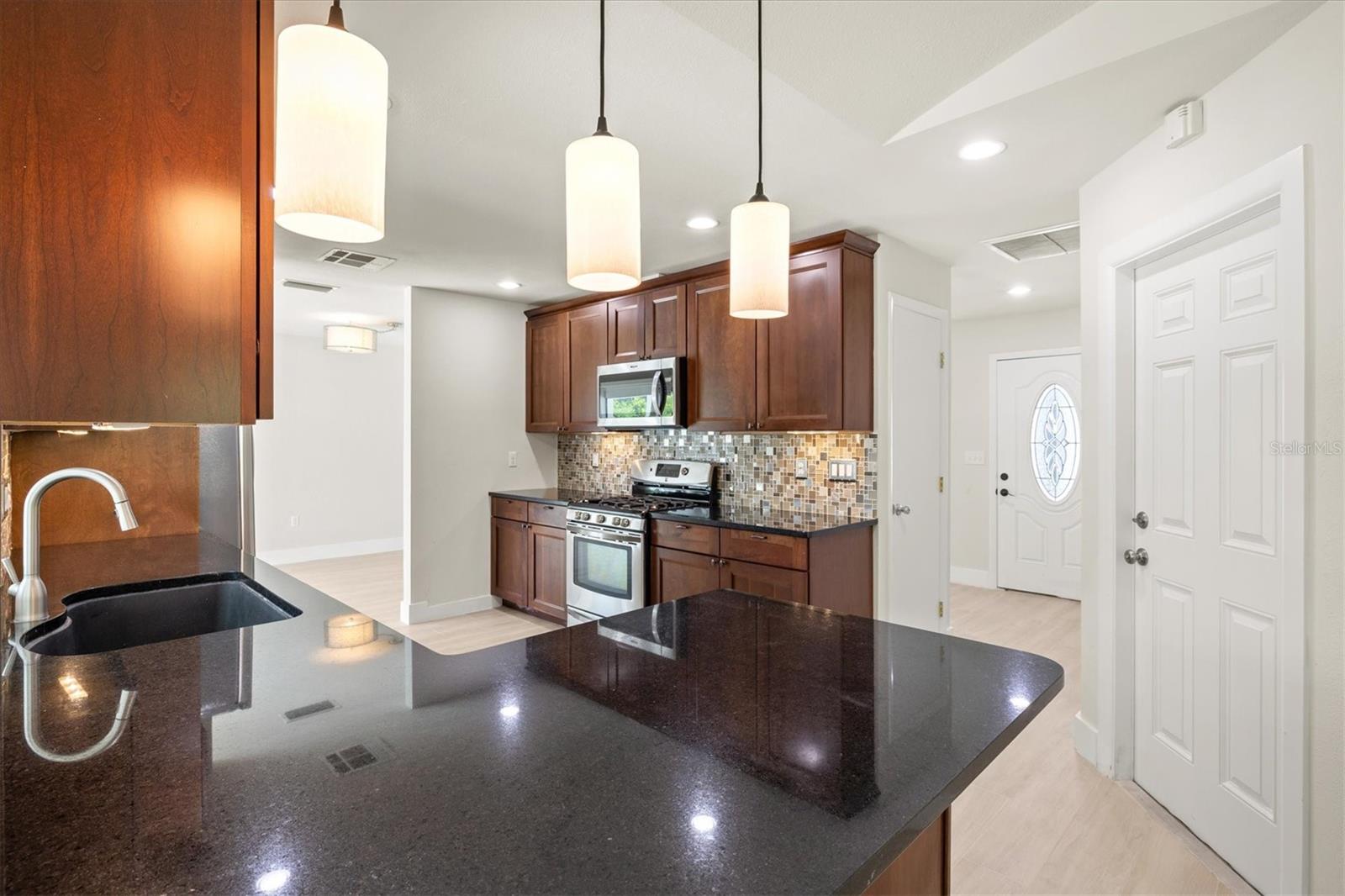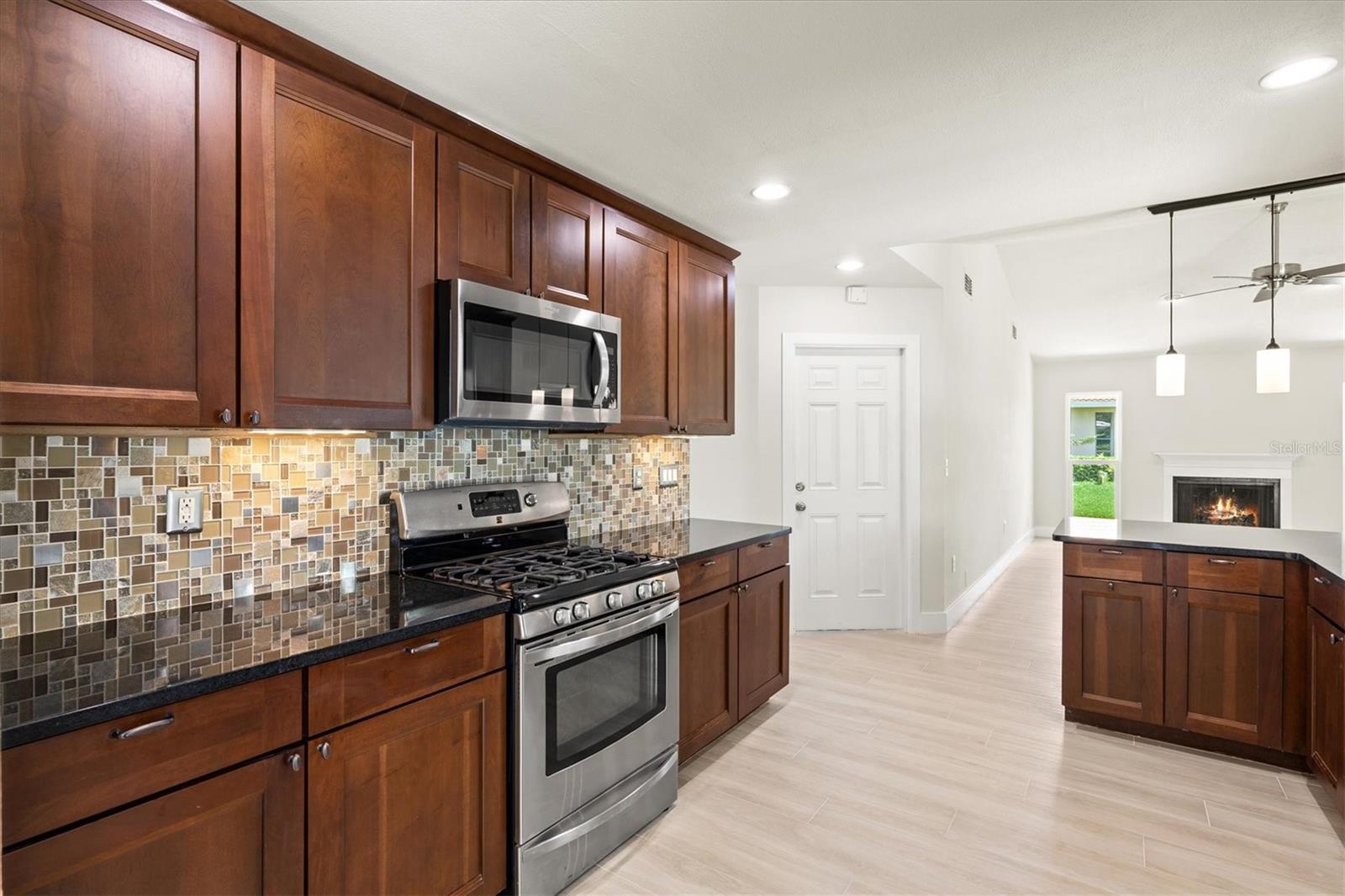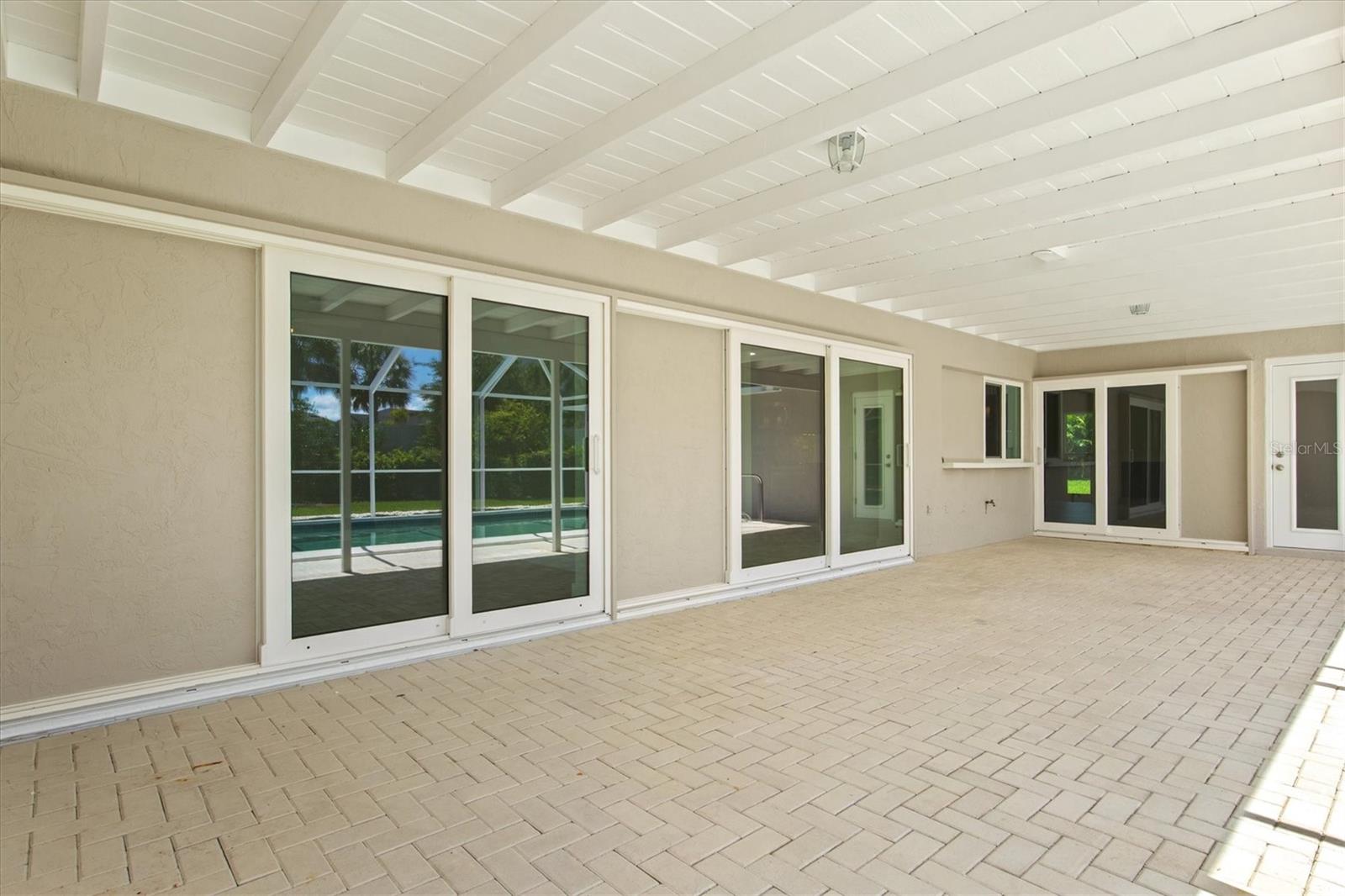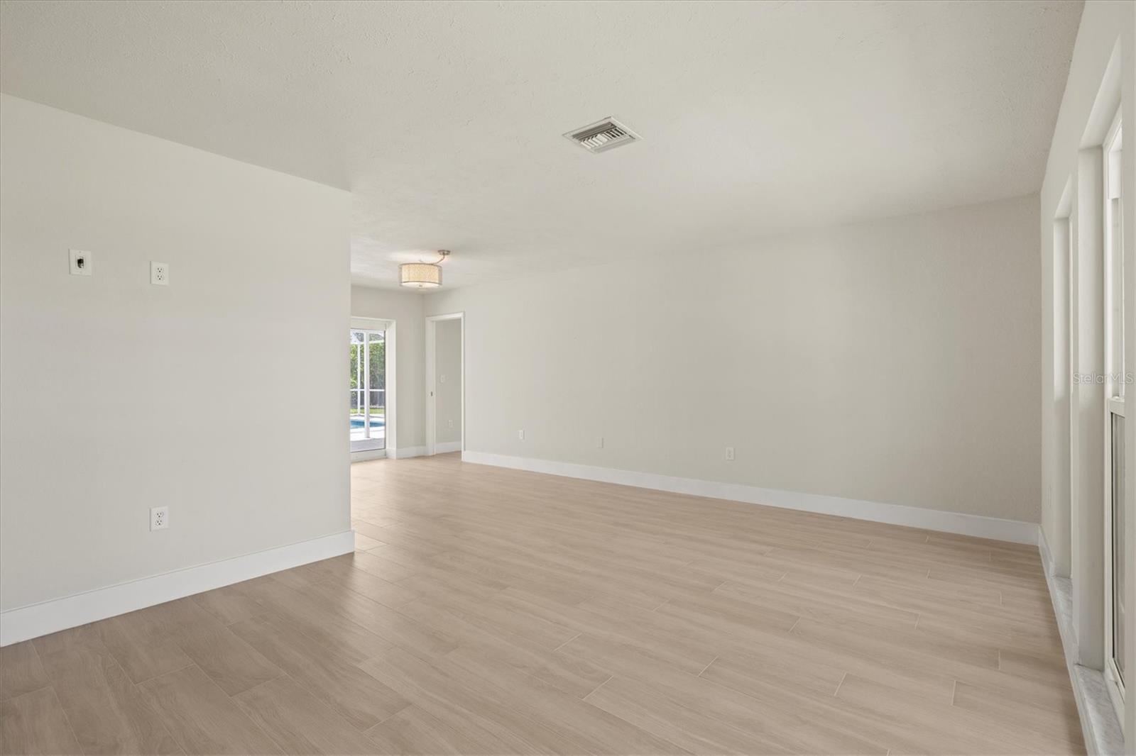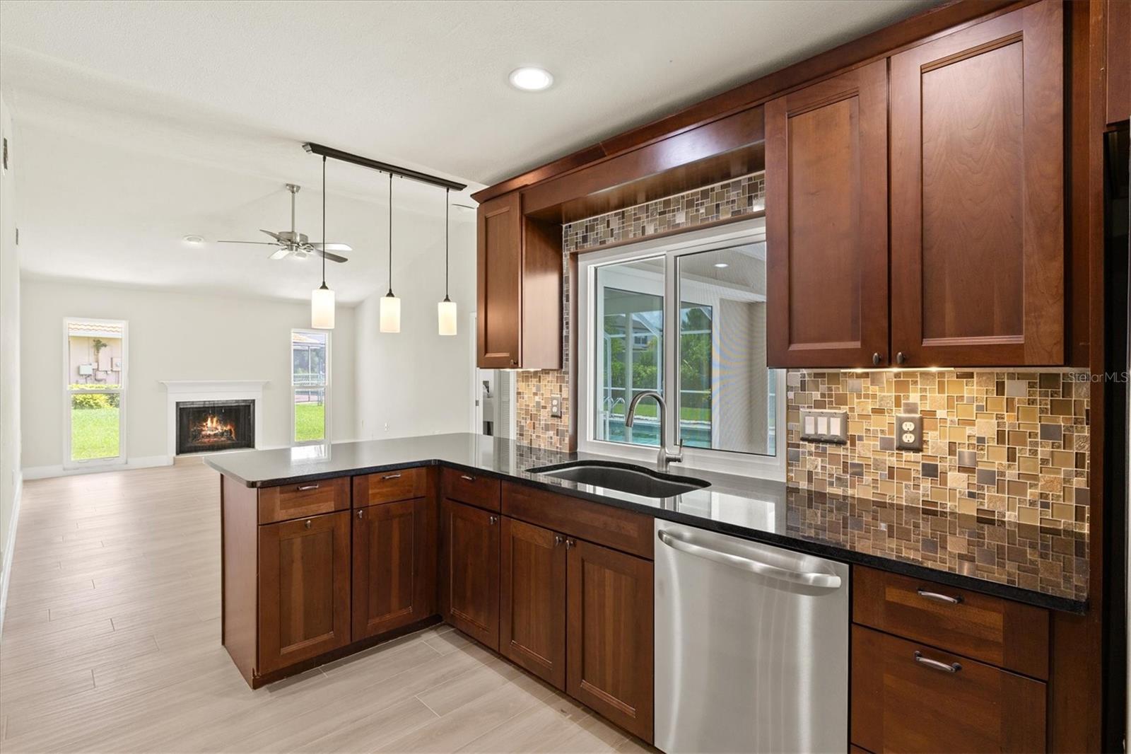 One or more photo(s) has been virtually staged. WOW FACTOR! Welcome to Sorrento East, one of the area's most sought-after neighborhoods! This beautifully updated 3-bedroom, 2-bathroom residence boasts nearly 1,800 sq. ft. of modern comfort, perfectly designed with a desirable split floor plan for ultimate privacy. Step inside to find soaring vaulted ceilings and Brand New 8" x 48" porcelain plank tile floors, creating a sleek, light-filled atmosphere. The spacious open-concept living and dining areas flow effortlessly into a true chef's kitchen--complete with rich wood cabinetry, gas range, sparkling granite countertops and premium stainless steel appliances. Retreat to the private primary suite, complete with an en-suite bath and cedar-lined closets. Both bathrooms shine with Brand New shaker-style vanities, quartz countertops, and elegant plumbing finishes. Peace of mind comes with hurricane-impact windows and sliding glass doors and a Brand New 2025 HVAC system ensuring security and energy efficiency! Step outside and discover your private backyard paradise--a refreshing inground pool, lush mature landscaping, and decorative shell accents set the scene for relaxation. The covered lanai, with its striking tongue-and-groove wood ceiling, makes this the ultimate year-round entertaining space. Best of all, you're just minutes from A-rated schools, fabulous dining, endless shopping, and only 4 miles from the sugar-white sands of Nokomis Beach!