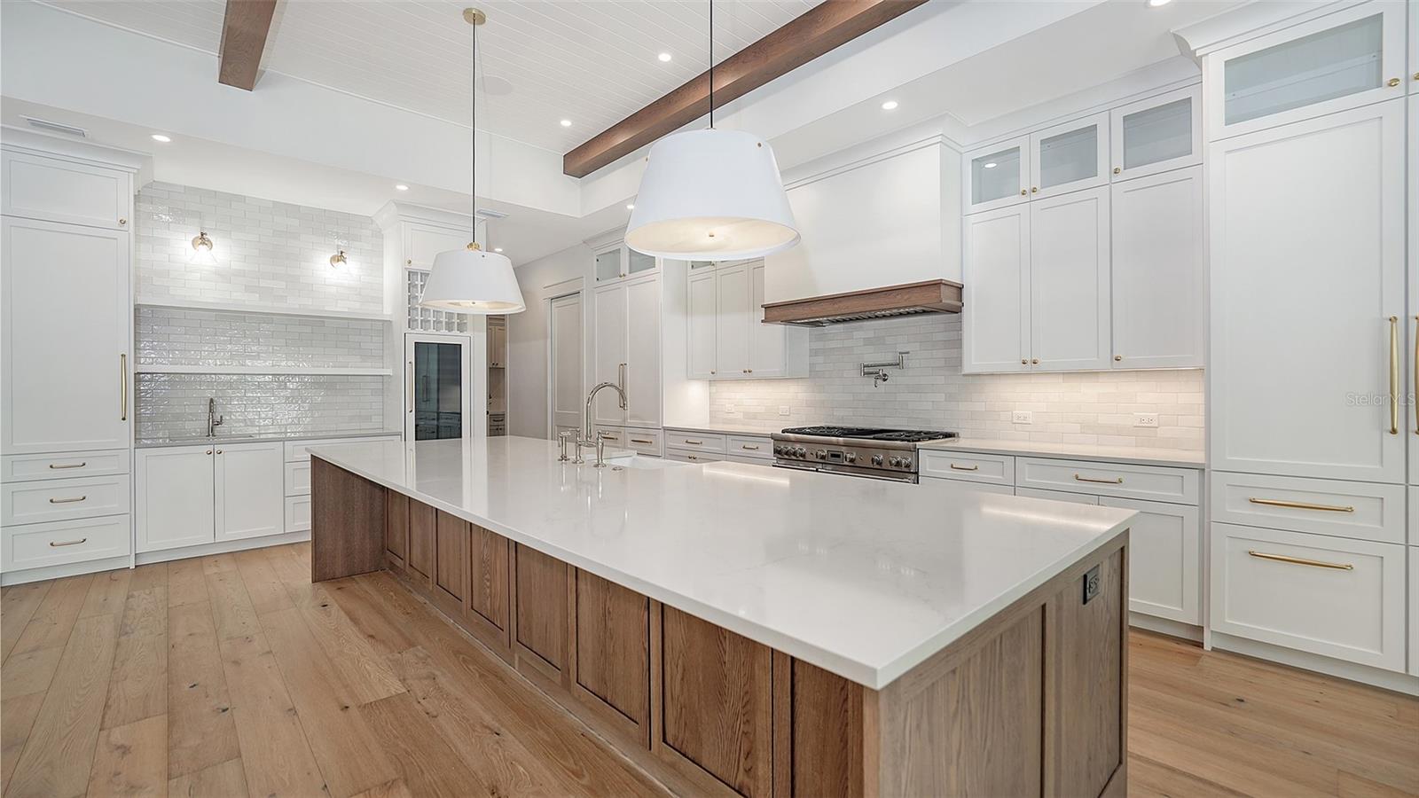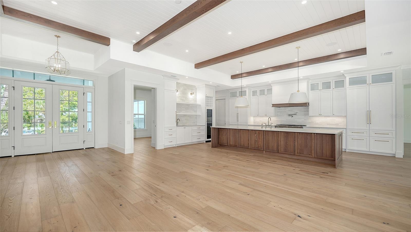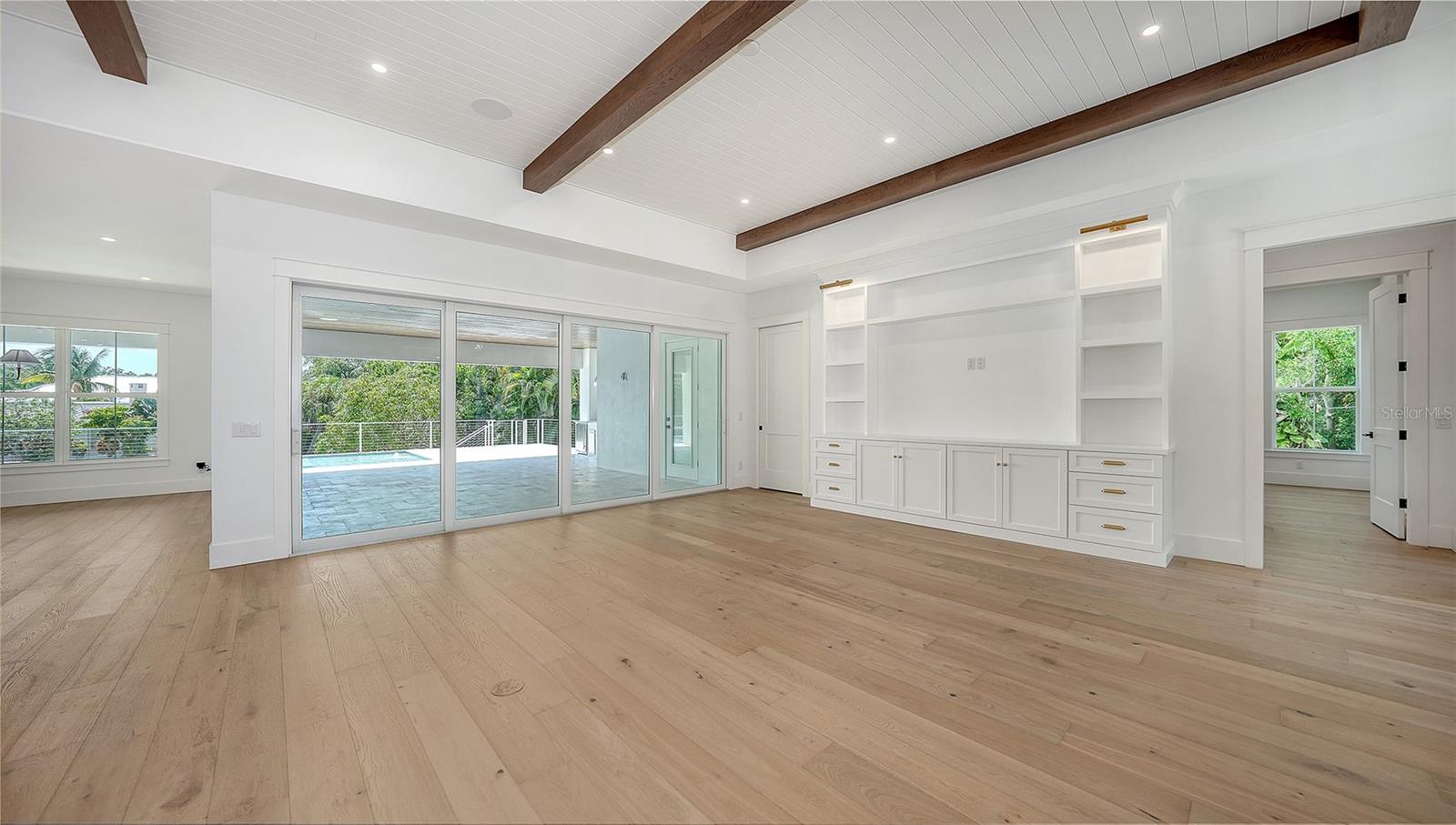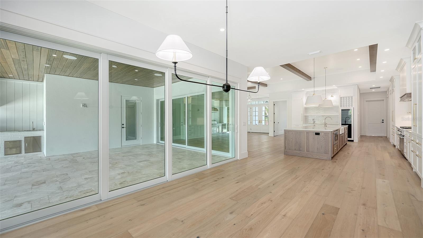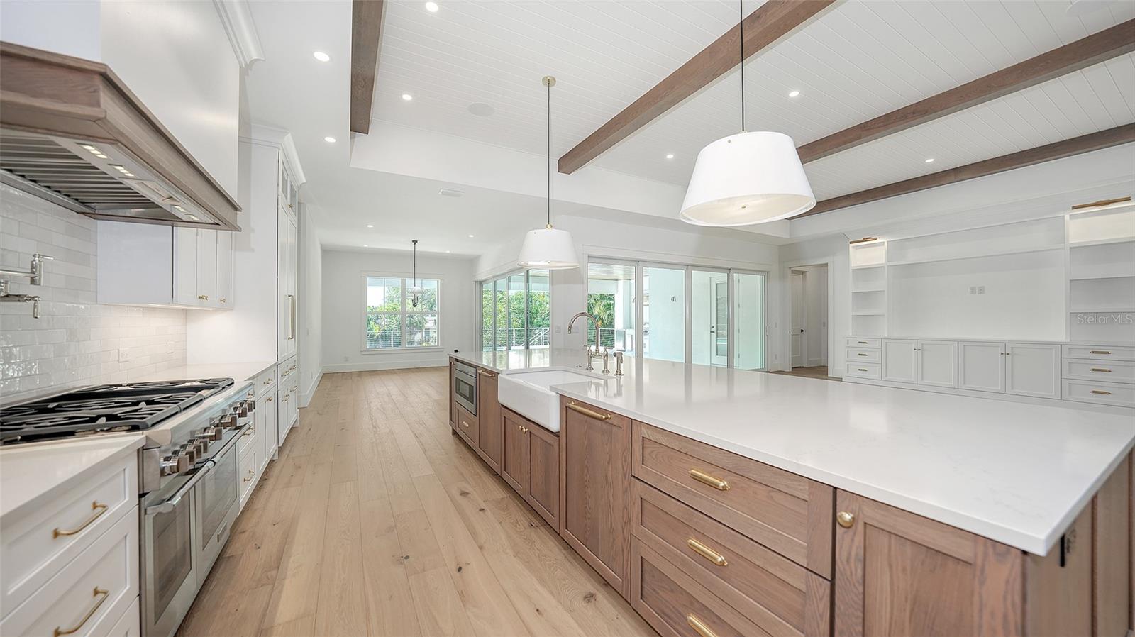 Just Completed! This brand-new, custom waterfront home on Siesta Key is now move-in ready, built above current elevation code with a brand-new raised seawall and dock, offering an unparalleled display of high-end, designer finishes throughout. The home features a spacious, open-floor plan with 5 bedrooms, 4 full bathrooms, and a sizable chef's kitchen complete with custom-designed cabinetry, an oversized cooking island, panel-ready Thermador appliances, and under-cabinet lighting. A custom wine bar with a dual-temperature wine fridge adds to the kitchen's appeal, while the large dining area provides stunning water views. Every inch of this home reflects meticulous attention to detail, including engineered hardwood floors throughout, solid core 8' interior doors, and high-impact windows and doors. The living room and primary bedroom boast 12-foot ceilings with tongue & groove and custom beam accents and expansive glass sliders leading out to the pool patio, providing seamless indoor-outdoor living. The external living space is enhanced by an elevated pool patio, a heated saltwater pool and spa, a shallow sun shelf, and a full outdoor kitchen--all with panoramic canal views, perfect for embracing the Florida lifestyle. The home is equipped with the latest technology and conveniences, including Cat 6 wiring at all TV locations, pre-wiring for security cameras, and a built-in indoor/outdoor speaker system. Located in the heart of Siesta Key, this home is within walking or biking distance to the famous white sand beaches and the vibrant shopping and dining district of "The Village." Don't miss this opportunity to own this exquisite new construction--contact us today for more information!