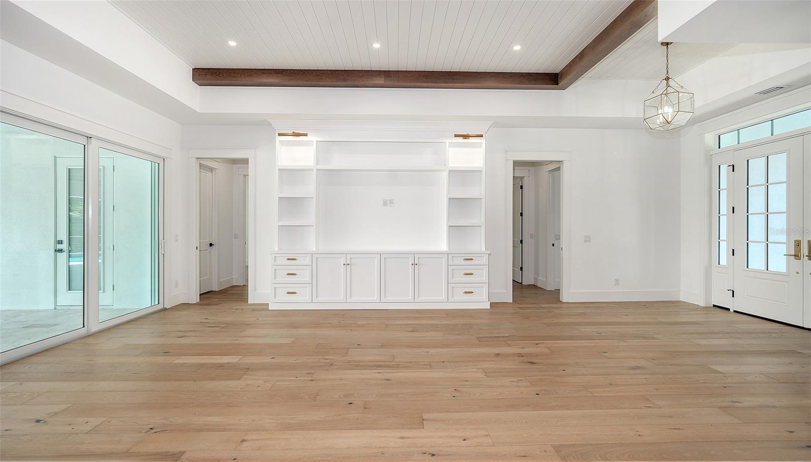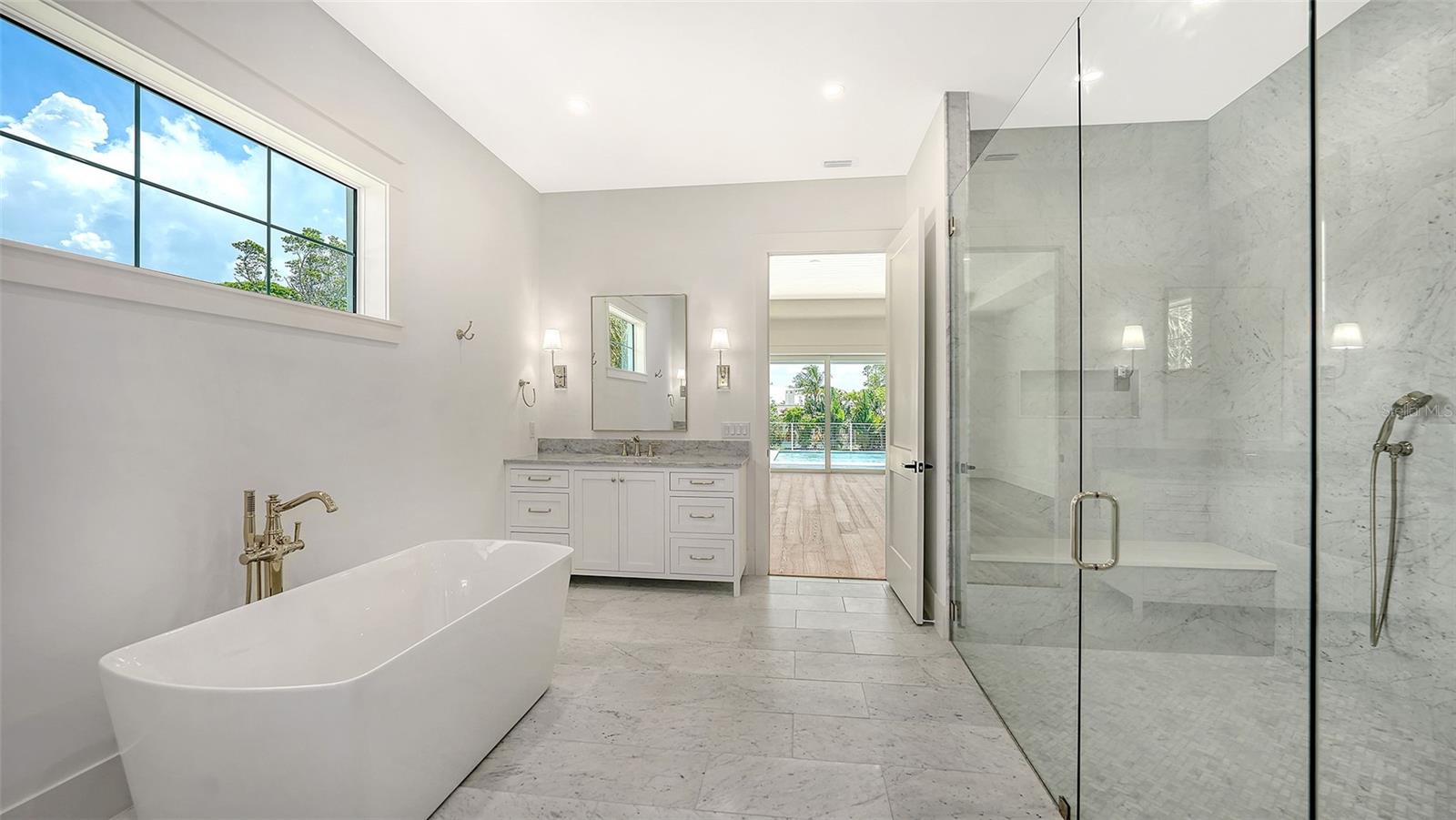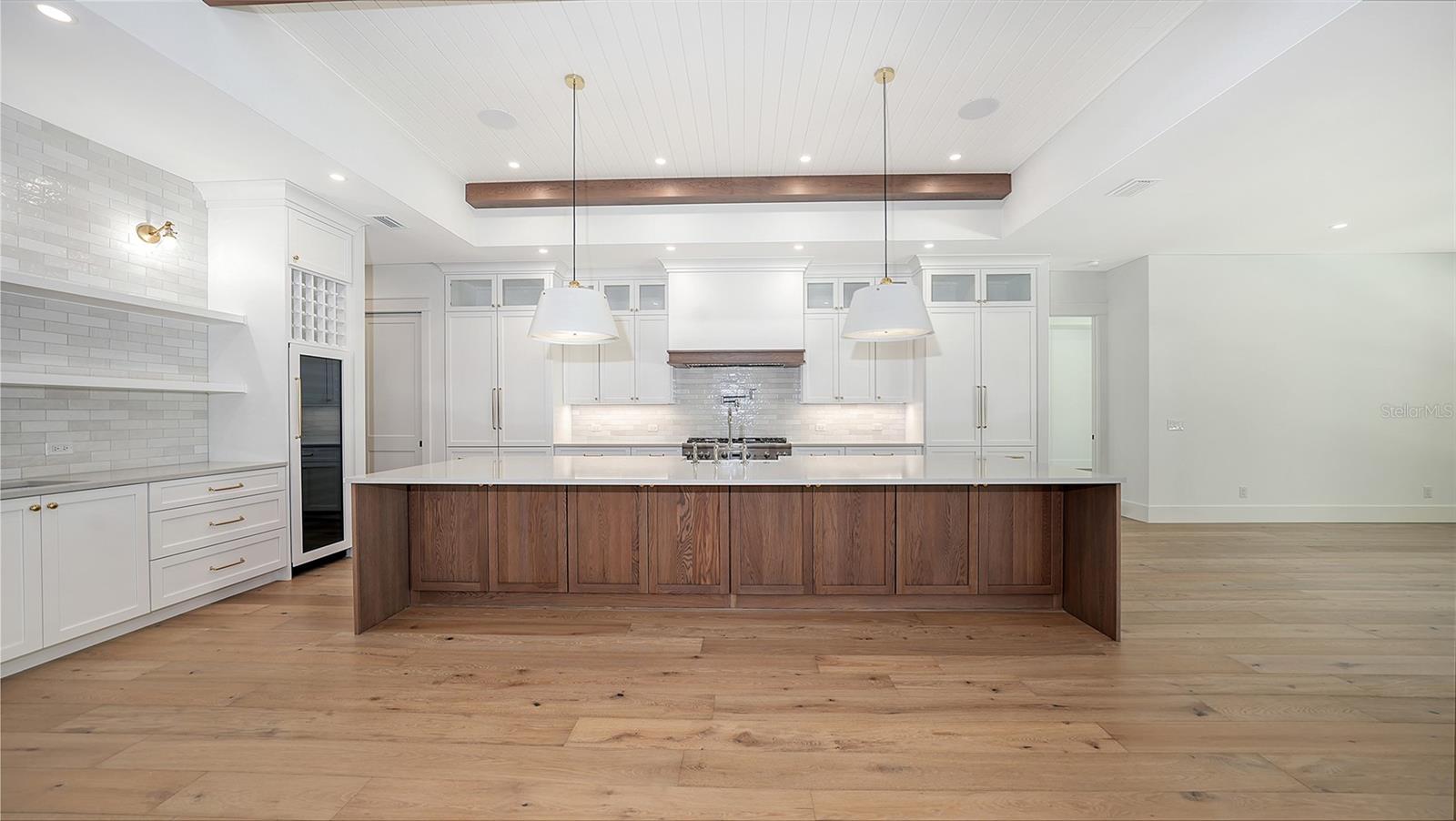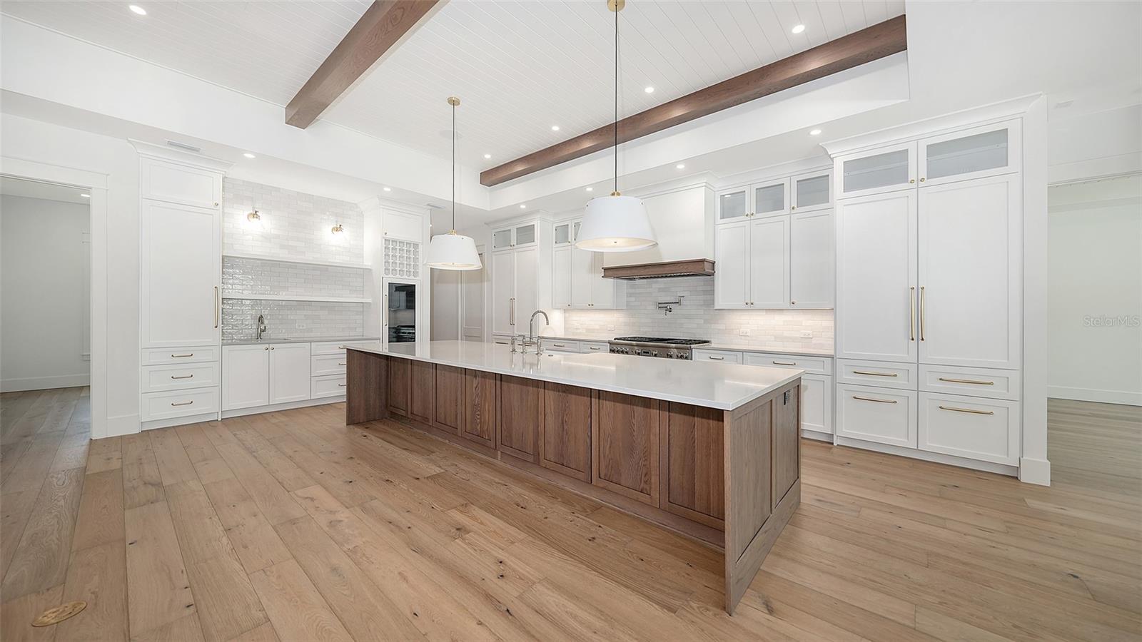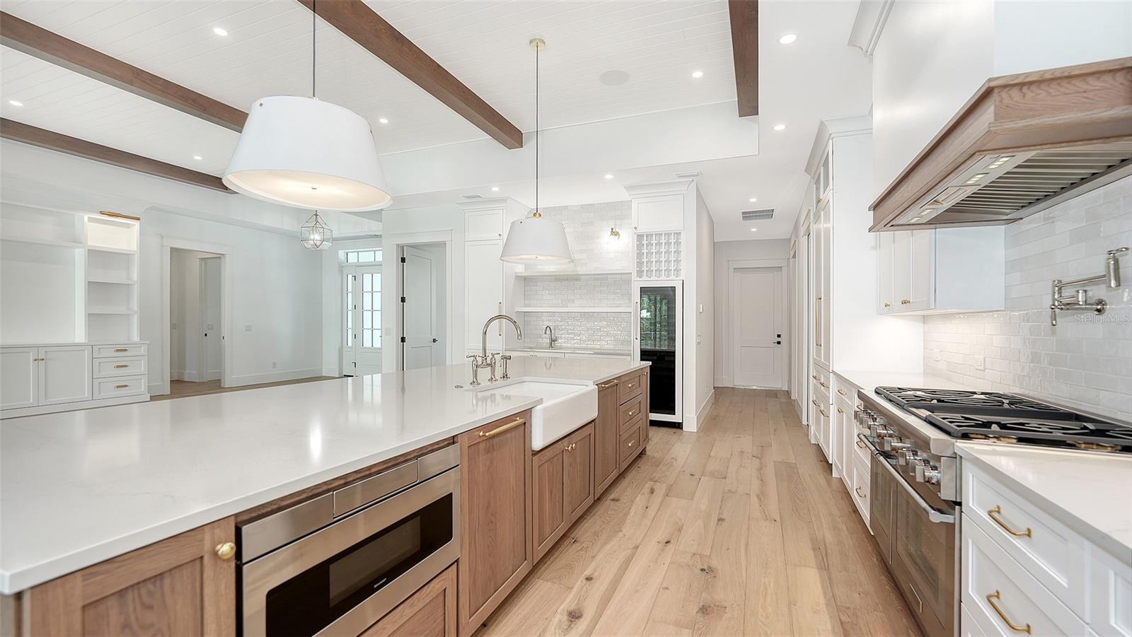 Just Completed! This brand-new, custom waterfront home on Siesta Key is now move-in ready, built above current elevation code with a brand-new raised seawall and dock, offering an unparalleled display of high-end, designer finishes throughout. The home features a spacious, open-floor plan with 5 bedrooms, 4 full bathrooms, and a sizable chef's kitchen complete with custom-designed cabinetry, an oversized cooking island, panel-ready Thermador appliances, and under-cabinet lighting. A custom wine bar with a dual-temperature wine fridge adds to the kitchen's appeal, while the large dining area provides stunning water views. Every inch of this home reflects meticulous attention to detail, including engineered hardwood floors throughout, solid core 8' interior doors, and high-impact windows and doors. The living room and primary bedroom boast 12-foot ceilings with tongue & groove and custom beam accents and expansive glass sliders leading out to the pool patio, providing seamless indoor-outdoor living. The external living space is enhanced by an elevated pool patio, a heated saltwater pool and spa, a shallow sun shelf, and a full outdoor kitchen--all with panoramic canal views, perfect for embracing the Florida lifestyle. The home is equipped with the latest technology and conveniences, including Cat 6 wiring at all TV locations, pre-wiring for security cameras, and a built-in indoor/outdoor speaker system. Located in the heart of Siesta Key, this home is within walking or biking distance to the famous white sand beaches and the vibrant shopping and dining district of "The Village." Don't miss this opportunity to own this exquisite new construction--contact us today for more information!