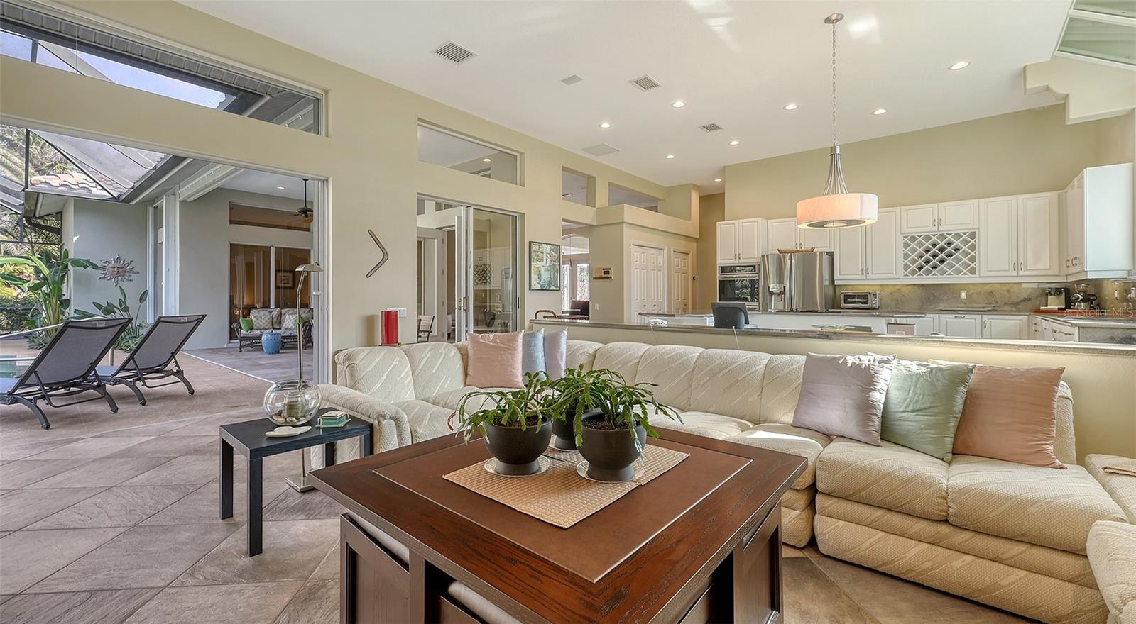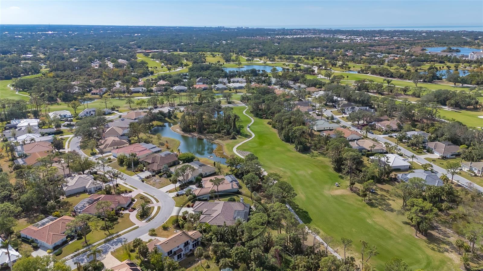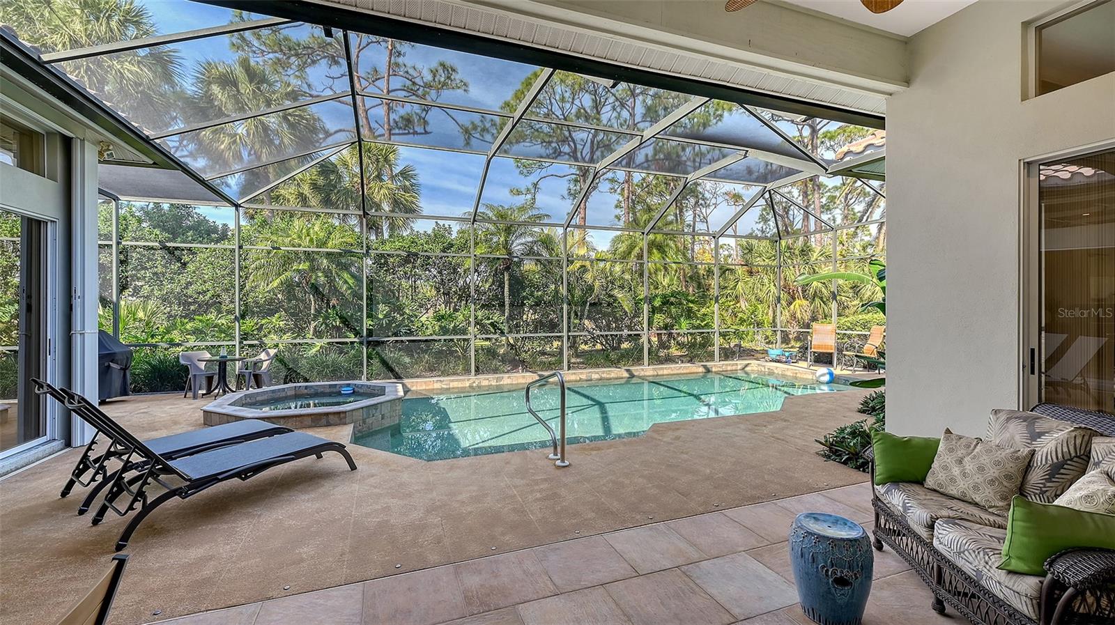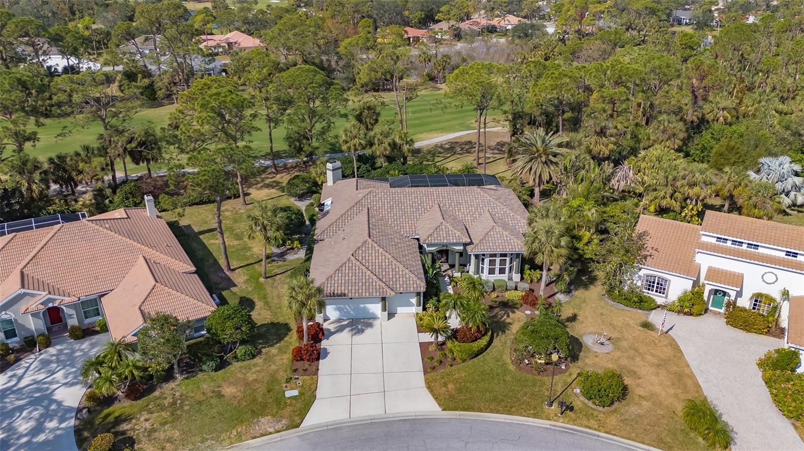 Experience luxurious Florida living in this updated Arthur Rutenberg custom home overlooking Calusa Lakes golf course.Designed with timeless appeal, this spacious residence features a captivating floorplan: 3022 sq. ft. of living space; 3 bedrooms (2 are en-suites); 3 full baths plus 1/2 cabana bath; modern kitchen featuring 42-inch cabinets and granite countertops; flex room/den; family room with wood-burning fireplace; dining room; living room; crown molding; 12-ft ceilings; swimming pool with spa; hot/cold outdoor shower; screened cage; 3 car garage; whole house storm protection; abundant natural light; lush landscaping; 1/4 acre plus lot; "x" flood zone designation.Split layout showcases generously proportioned spaces while ensuring privacy; secluded roomy owner's suite on one side boasting a HUGE walk-in closet; expansive en-suite bathroom featuring private water closet, dual sinks, granite finishes, jetted tub, and large walk-in shower with 2 individually controlled shower heads.Separate wing of the home provides ample space and comfortable accommodations, featuring another en-suite.Expansive screened-in lanai and pool deck, where you can enjoy the beauty of the golf course setting.Enjoy peace of mind with 2 new 2023 water heaters; 2023 electrical system upgrades; 2022 - 2 complete high efficiency HVAC systems with 2 wi-fi thermostats; 2020 double wall ovens; vented cook top; 2020 refrigerator; 2022 high-efficiency washer and dryer; 2016 roof with TRANSFERRABLE 30-year warranty on material and LIFETIME workmanship warranty; resurfaced pebble tech pool; whole house re-pipe; monitored security/fire system.Additionally, furniture is available.Calusa Lakes is a deed-restricted gated community offering: optional membership to an18-hole regulation semi-private golf course; no CDD; low HOA fees ($109/month); tennis and pickleballcourts; access to I-75, airports; and Sarasota Memorial Hospital. Seize the opportunity to make this exquisite home yours.