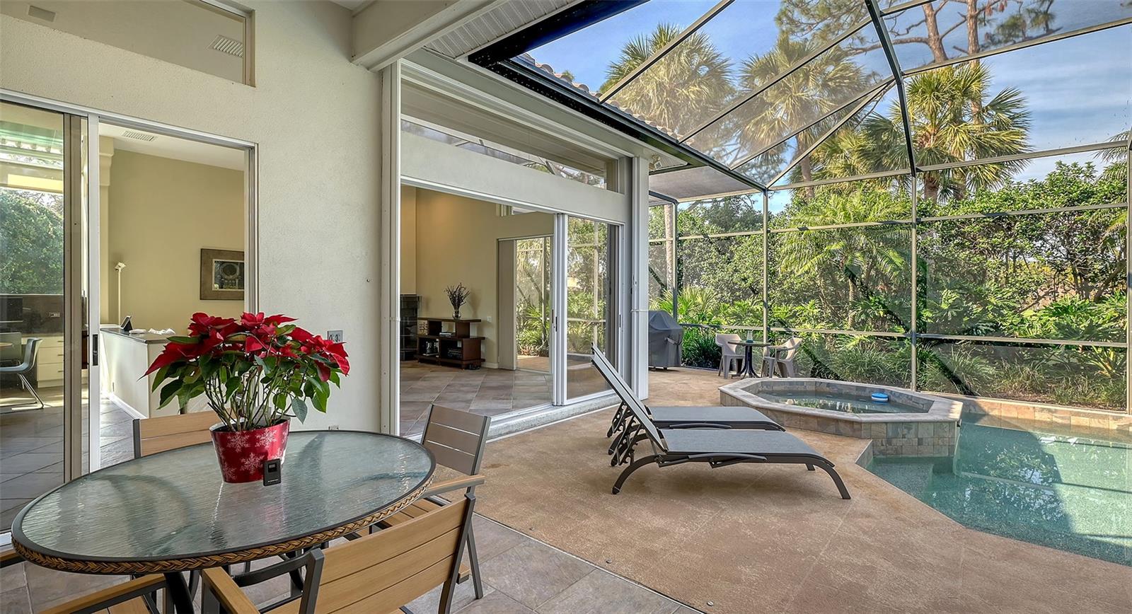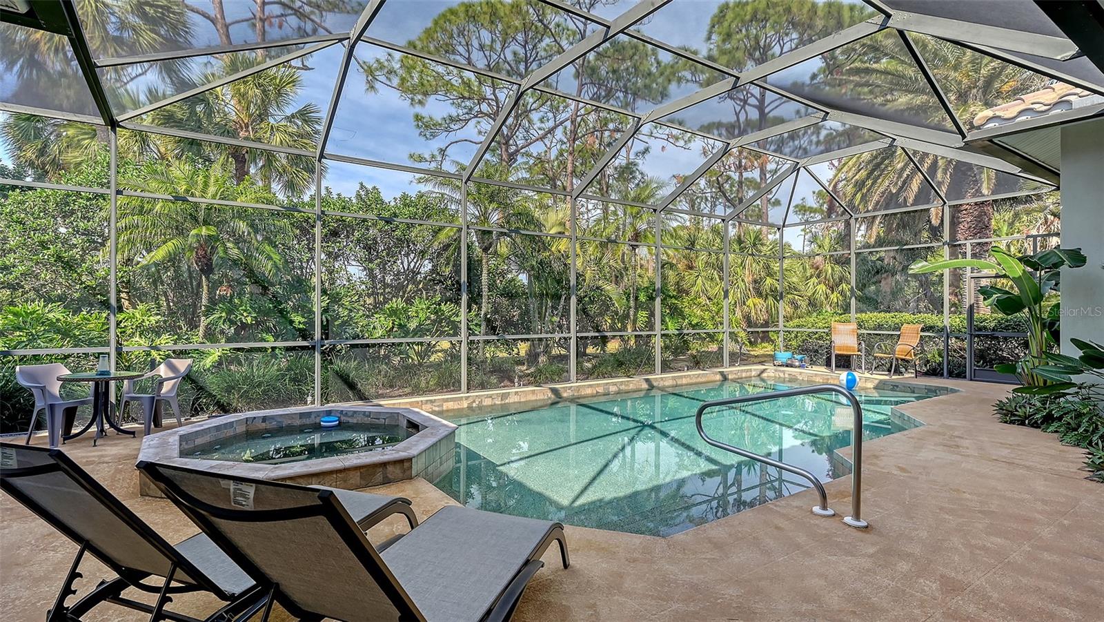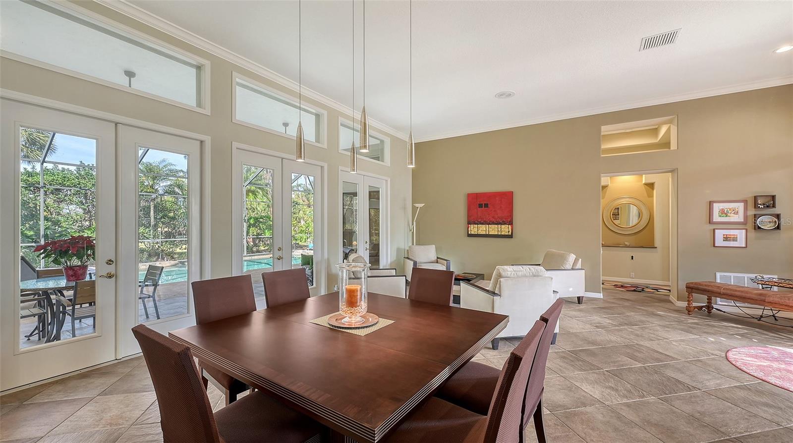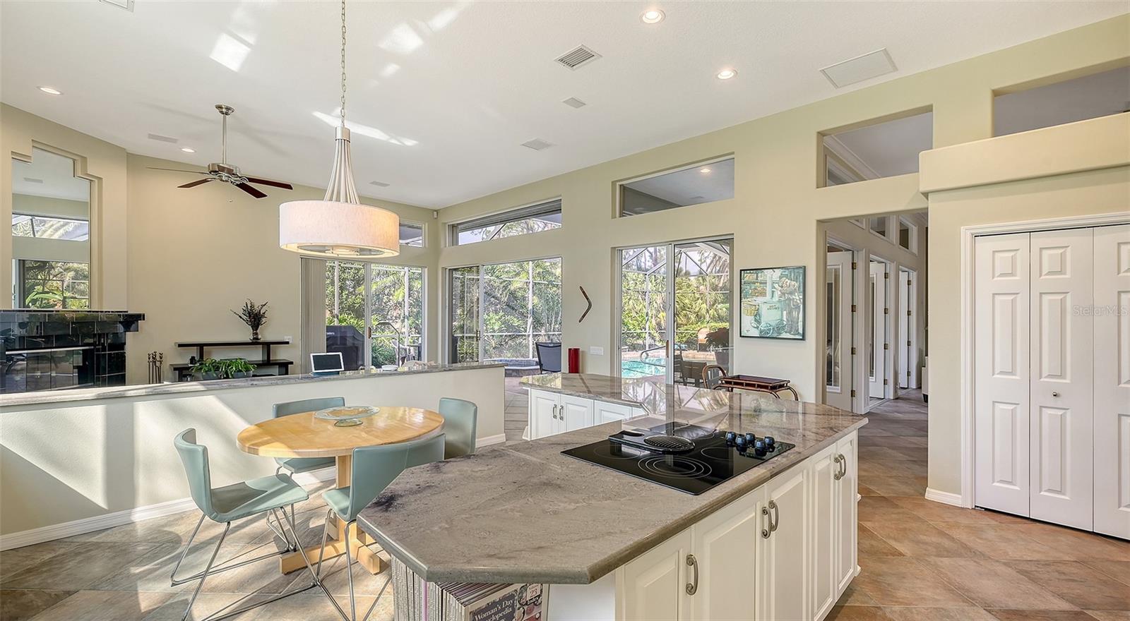 Experience luxurious Florida living in this updated Arthur Rutenberg custom home overlooking Calusa Lakes golf course.Designed with timeless appeal, this spacious residence features a captivating floorplan: 3022 sq. ft. of living space; 3 bedrooms (2 are en-suites); 3 full baths plus 1/2 cabana bath; modern kitchen featuring 42-inch cabinets and granite countertops; flex room/den; family room with wood-burning fireplace; dining room; living room; crown molding; 12-ft ceilings; swimming pool with spa; hot/cold outdoor shower; screened cage; 3 car garage; whole house storm protection; abundant natural light; lush landscaping; 1/4 acre plus lot; "x" flood zone designation.Split layout showcases generously proportioned spaces while ensuring privacy; secluded roomy owner's suite on one side boasting a HUGE walk-in closet; expansive en-suite bathroom featuring private water closet, dual sinks, granite finishes, jetted tub, and large walk-in shower with 2 individually controlled shower heads.Separate wing of the home provides ample space and comfortable accommodations, featuring another en-suite.Expansive screened-in lanai and pool deck, where you can enjoy the beauty of the golf course setting.Enjoy peace of mind with 2 new 2023 water heaters; 2023 electrical system upgrades; 2022 - 2 complete high efficiency HVAC systems with 2 wi-fi thermostats; 2020 double wall ovens; vented cook top; 2020 refrigerator; 2022 high-efficiency washer and dryer; 2016 roof with TRANSFERRABLE 30-year warranty on material and LIFETIME workmanship warranty; resurfaced pebble tech pool; whole house re-pipe; monitored security/fire system.Additionally, furniture is available.Calusa Lakes is a deed-restricted gated community offering: optional membership to an18-hole regulation semi-private golf course; no CDD; low HOA fees ($109/month); tennis and pickleballcourts; access to I-75, airports; and Sarasota Memorial Hospital. Seize the opportunity to make this exquisite home yours.
