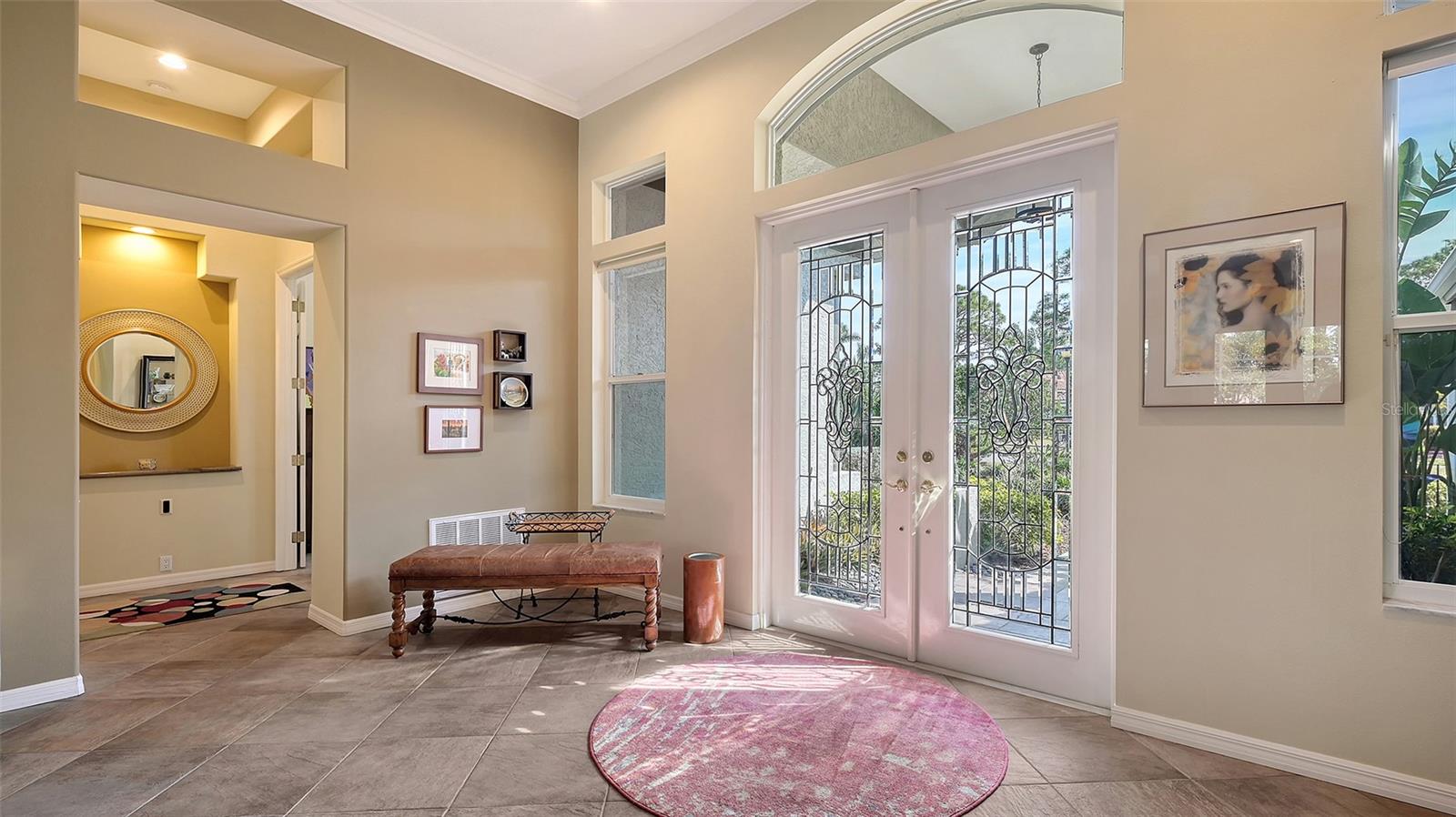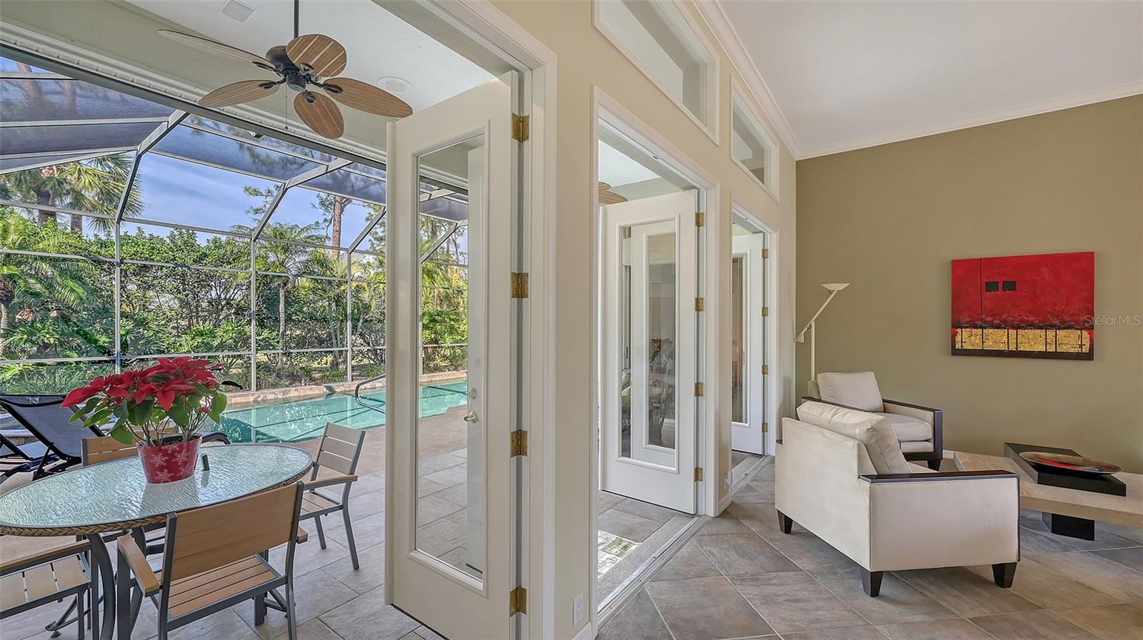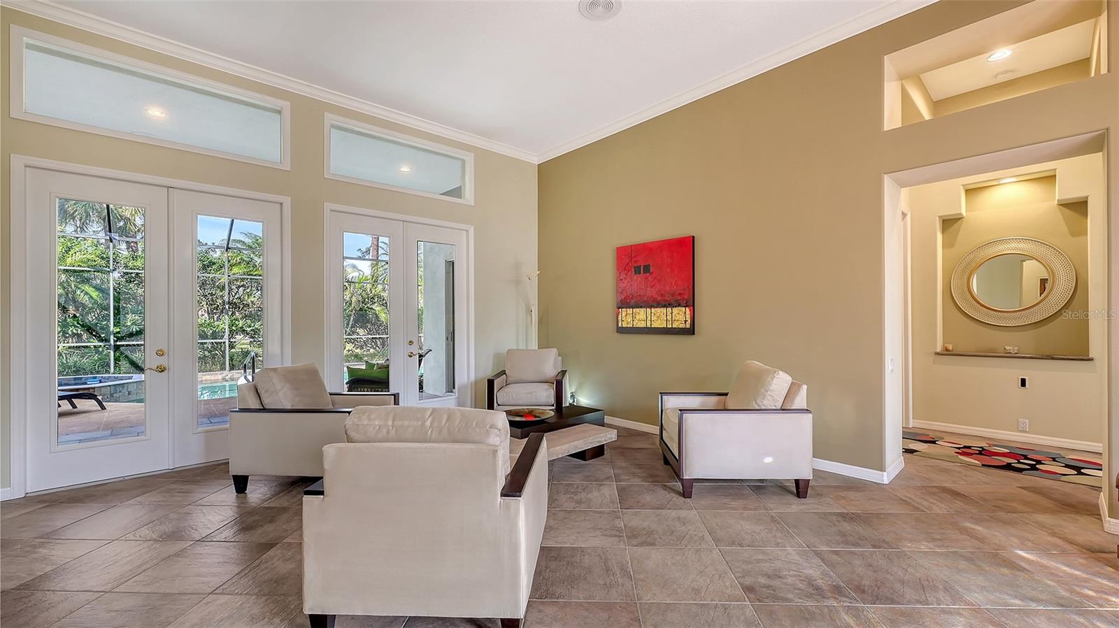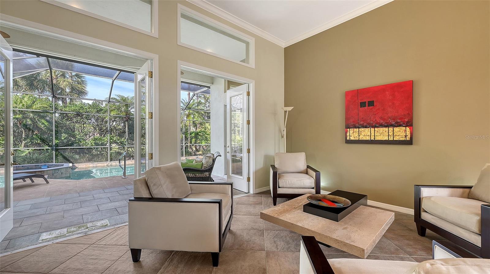 Experience luxurious Florida living in this updated Arthur Rutenberg custom home overlooking Calusa Lakes golf course.Designed with timeless appeal, this spacious residence features a captivating floorplan: 3022 sq. ft. of living space; 3 bedrooms (2 are en-suites); 3 full baths plus 1/2 cabana bath; modern kitchen featuring 42-inch cabinets and granite countertops; flex room/den; family room with wood-burning fireplace; dining room; living room; crown molding; 12-ft ceilings; swimming pool with spa; hot/cold outdoor shower; screened cage; 3 car garage; whole house storm protection; abundant natural light; lush landscaping; 1/4 acre plus lot; "x" flood zone designation.Split layout showcases generously proportioned spaces while ensuring privacy; secluded roomy owner's suite on one side boasting a HUGE walk-in closet; expansive en-suite bathroom featuring private water closet, dual sinks, granite finishes, jetted tub, and large walk-in shower with 2 individually controlled shower heads.Separate wing of the home provides ample space and comfortable accommodations, featuring another en-suite.Expansive screened-in lanai and pool deck, where you can enjoy the beauty of the golf course setting.Enjoy peace of mind with 2 new 2023 water heaters; 2023 electrical system upgrades; 2022 - 2 complete high efficiency HVAC systems with 2 wi-fi thermostats; 2020 double wall ovens; vented cook top; 2020 refrigerator; 2022 high-efficiency washer and dryer; 2016 roof with TRANSFERRABLE 30-year warranty on material and LIFETIME workmanship warranty; resurfaced pebble tech pool; whole house re-pipe; monitored security/fire system.Additionally, furniture is available.Calusa Lakes is a deed-restricted gated community offering: optional membership to an18-hole regulation semi-private golf course; no CDD; low HOA fees ($109/month); tennis and pickleballcourts; access to I-75, airports; and Sarasota Memorial Hospital. Seize the opportunity to make this exquisite home yours.