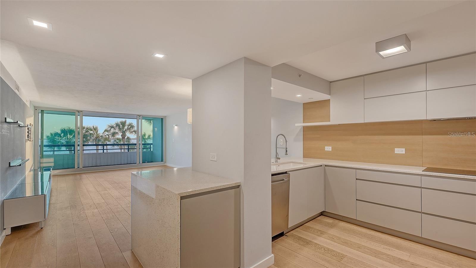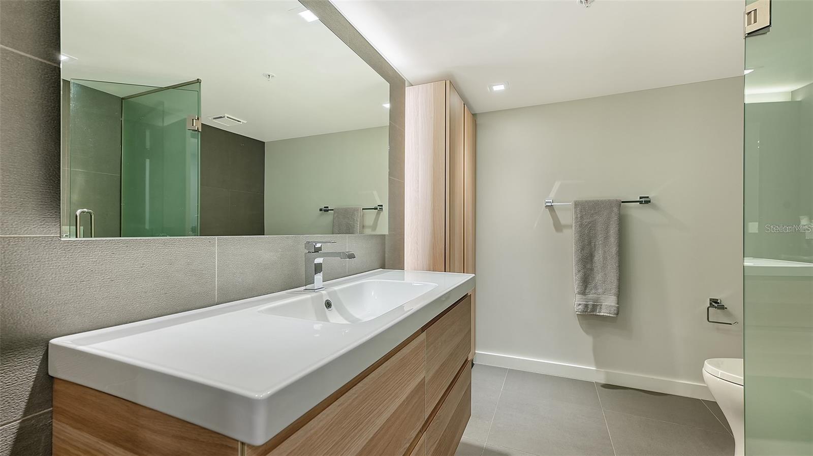 One or more photo(s) has been virtually staged. Direct Bayfront living in the heart of Sarasota at Condo on the Bay. This fully renovated 2 bed/2 bath residence features beautiful panoramic views of the Sarasota Bayfront with breathtaking sunsets over LBK and Ringling Bridge. Step into the inviting Great Room - greeted by a wall of impact glass floor-to-ceiling sliding doors that seamlessly blend the outdoors in, opening to a spacious balcony overlooking one of two residents pools, just steps from one of the long piers and boat slips. Interior features include White Oak engineered hardwood flooring flowing throughout the Main Living space, complemented by custom built-in cabinetry and a dry bar with a wine refrigerator for easy entertaining. A chef's delight, the modern kitchen features Elite Woodwork of Sarasota Cabinetry, stainless steel appliances including an induction cooktop and built-in wall oven and microwave, quartz countertops, Walnut wood backsplash, built-in pantry, and breakfast bar for casual dining. A conveniently located laundry closet with full-size stackable front-loading washer and dryer completes the kitchen. A true oasis, the master suite has serene water views, remote controlled Hunter Douglas shades, and plenty of storage space with a large walk-in customized closet plus a full entry wall of built-in cabinetry. The updated en-suite bathroom features dual floating vanities, modern floor-to-ceiling tile, a walk-in shower with frameless glass enclosure and multiple shower heads. The generously sized secondary bedroom boasts double built-in closets and a secondary bathroom with a floating vanity, walk-in shower with a frameless glass enclosure, and a built-in linen closet. New Ruud A/C in March 2023. Set directly on Sarasota Bay, the highly sought after community offers a lifestyle of sophistication and serenity. A range of amenities include staffed 24-hour security gated guardhouse, "sky lobbies" located on a number of floors throughout, two resort-style pools overlooking the bay, two fitness centers, tennis courts, pickleball courts, concierge services and boat/kayak docks with a fishing pier. This pet-friendly Tower II residence includes one assigned under-building parking space with secure access and storage. Just steps away from Sarasota Bay Park and the vibrant culture and arts scene of Downtown Sarasota, world-class dining, shopping and entertainment. A short drive to St. Armand's Circle and Lido Beach. Don't wait - it is time to experience a luxurious urban life from the 3rd floor of Tower II, in the Bayfront heart of Downtown Sarasota!