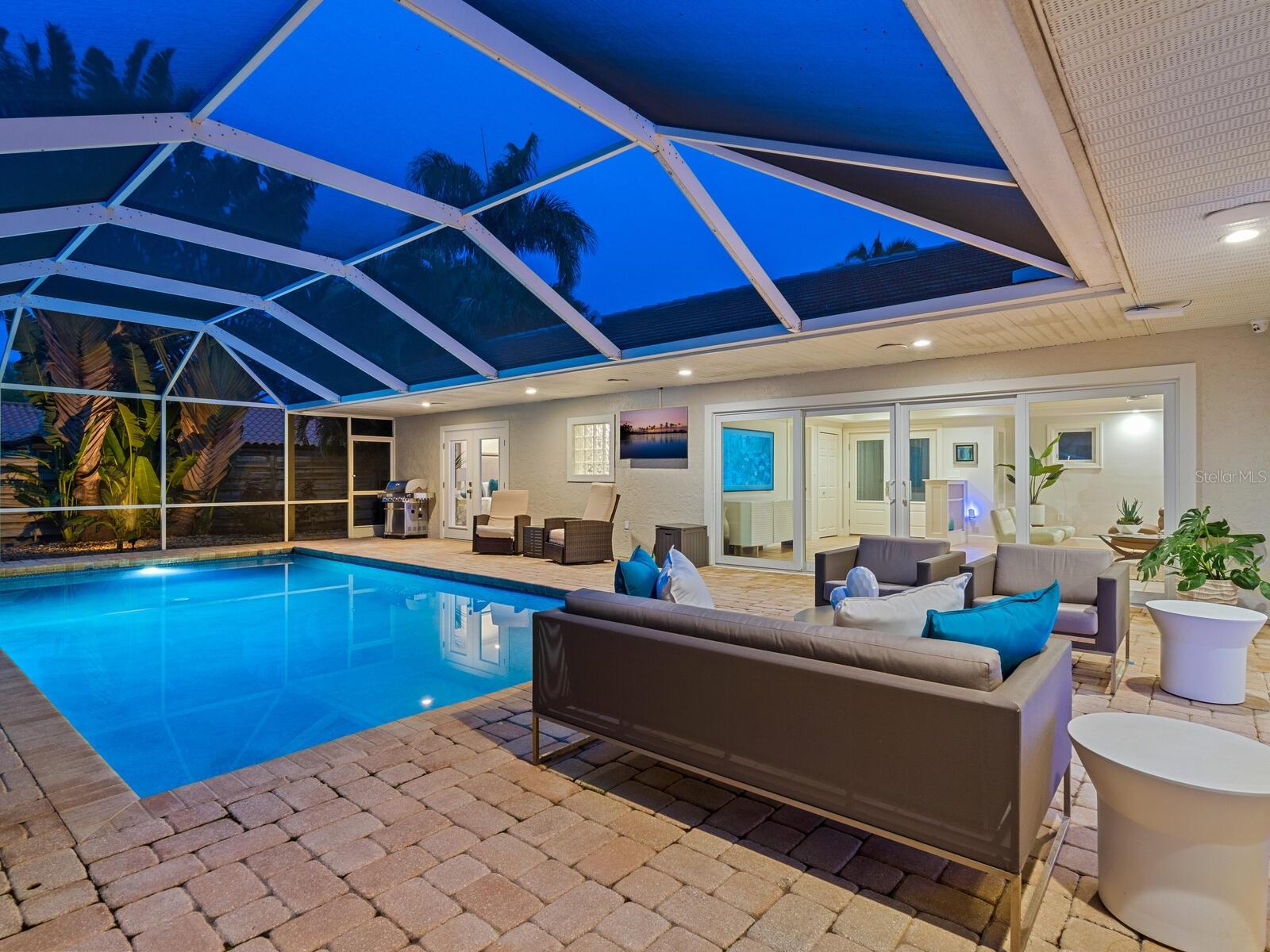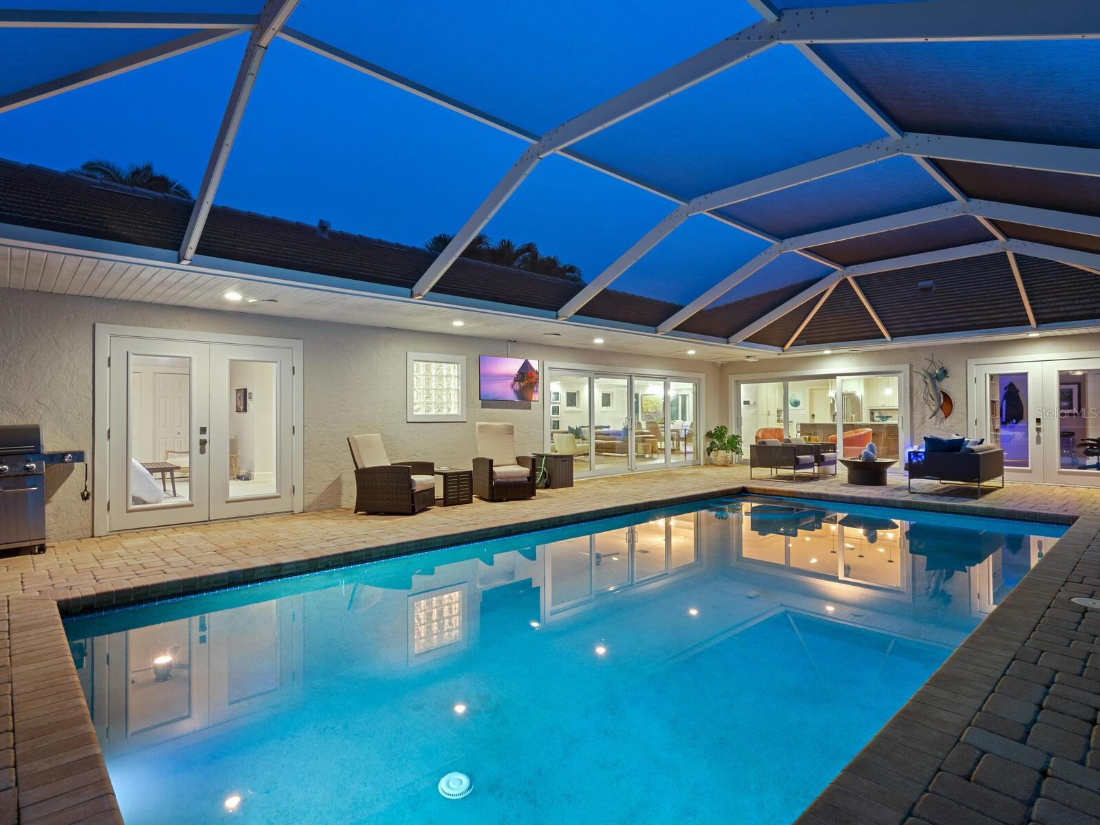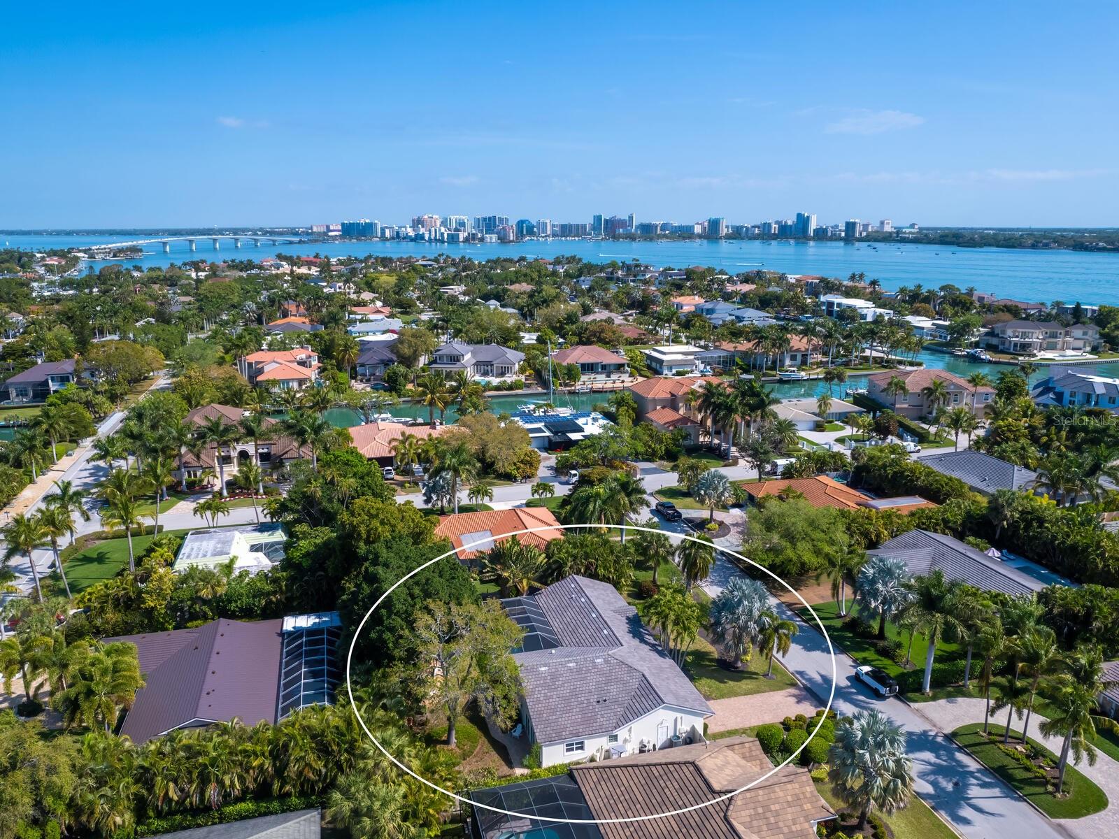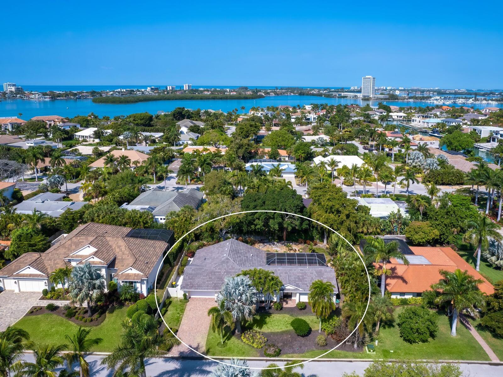 This move-in ready three-bedroom, three-bath home with office rests on almost a third of an acre beyond the gates on Bird Key, Sarasota's pinnacle of luxury living and experienced no damage nor flooding from the recent storms. Home is in X500 and flood insurance is not required. Between the chic St. Armands Circle and vibrant downtown Sarasota, this exquisite home offers unmatched convenience and sophistication. With the pristine Lido Beach, SRQ airport, Sarasota Memorial Hospital and the newly revamped Selby Gardens all within easy reach, you'll wonder how you ever lived anywhere else. Prepare to be captivated by this impeccably maintained residence, where pride of ownership is as evident as the Florida sunshine streaming through every window. The open floor plan is an entertainer's dream, featuring sliders that lead seamlessly from the living room and kitchen to the pool area. Imagine hosting soires with your gourmet kitchen as a backdrop, boasting an oversized center island, induction cooktop, stainless steel appliances, and custom wood cabinetry with bar and secondary sink. The primary suite is a haven of tranquility, complete with an updated bath featuring a soaking tub and separate shower, a walk-in closet that rivals a boutique, three additional double closets and French doors that open directly to the pool. The second bedroom is generously sized with a built-in Murphy bed disguised as bookshelves with French doors to the pool. The third bedroom, with its cathedral ceiling and private bath, features additional sets of French doors to an outdoor paver patio and is so grand it might just convert your guests into permanent residents. Recent updates include impact windows and sliding doors, tile roof in 2013, crown molding, plantation shutters, fresh interior and exterior paint, a new tightly woven no-see-um pool screen, and cutting-edge smart home features that ensure modern convenience and a dash of futuristic flair. The split floor plan ensures privacy for all, with a positioned office and den featuring stunning pocket doors and built-in shelving ideal for working from home or escaping into a good book. Step outside to your private oasis, where the backyard is framed by a magnificent tree that transforms into a living piece of art when illuminated at night. The fenced yard offers serenity and security, while majestic trees create a peaceful retreat. For those who appreciate the finer things in life, Bird Key Yacht Club offers optional membership with access to tennis courts, a swimming pool, a fitness room, a lively social scene, boat slips, a marina, and indoor and outdoor dining. This Bird Key residence is not just a home, it's a lifestyle, one that promises luxury, laughter and unforgettable moments. Make this lifestyle yours today!