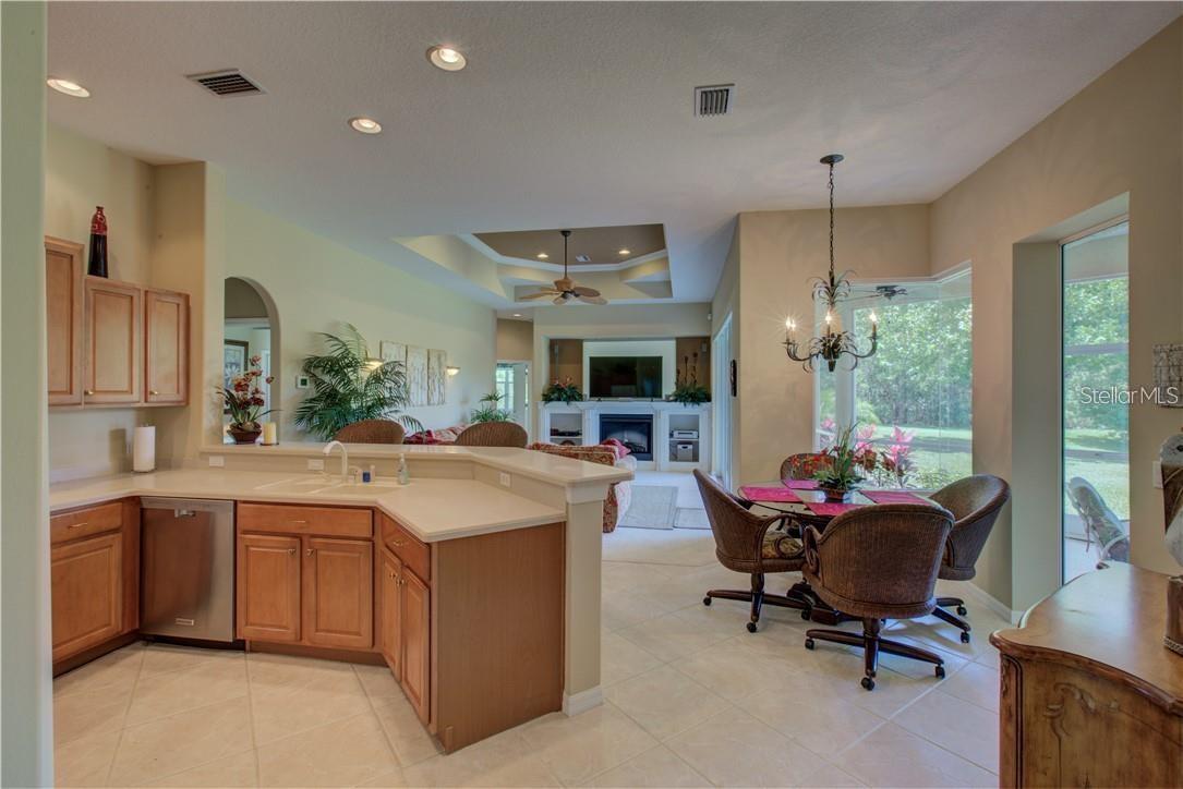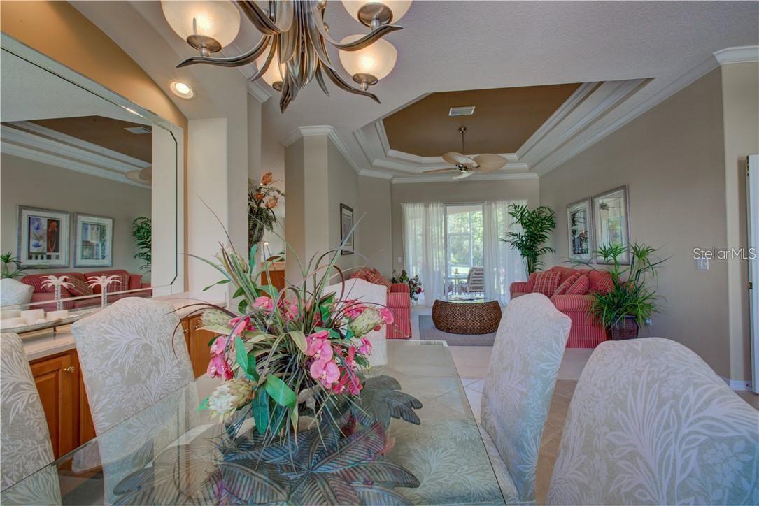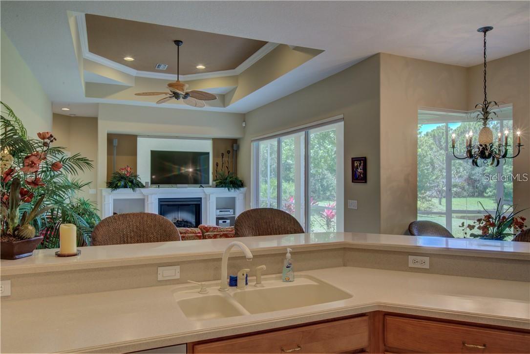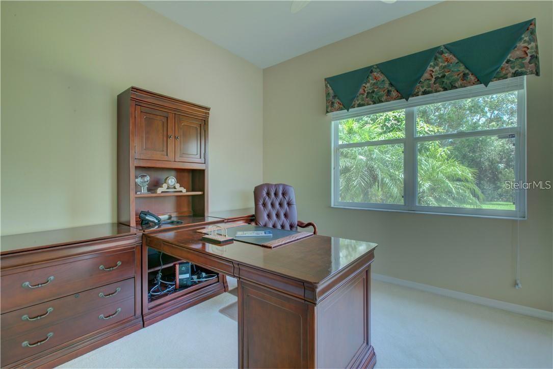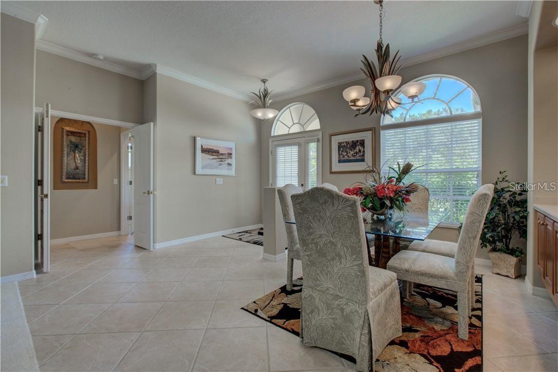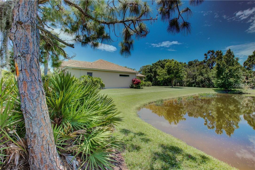 Built by Rutenberg Homes, this residence offers high tray ceilings and a smart, open layout. The formal living and family rooms, along with the en-suite primary bedroom, open to the lanai. The dining room features custom built-ins, two guest bedrooms share a bath, and a private in-law suite/office includes its own bath and lanai access. The kitchen, with newer appliances, a breakfast bar, and an eat-in nook, connects to the family room with an electric fireplace. The lot backs to a wooded preserve with a pond on one side. A heated community pool is just a 3-minute walk away. Additional features include a drilled well for sprinklers, exterior taps, a three-car garage with EV charger, and new central heating/AC (March 2025). Walk to Pine View School for the Gifted, close to the Legacy Trail, Gulf beaches, Oscar Scherer State Park, and boating. Optional Turnkey. Seller will consider all offers.