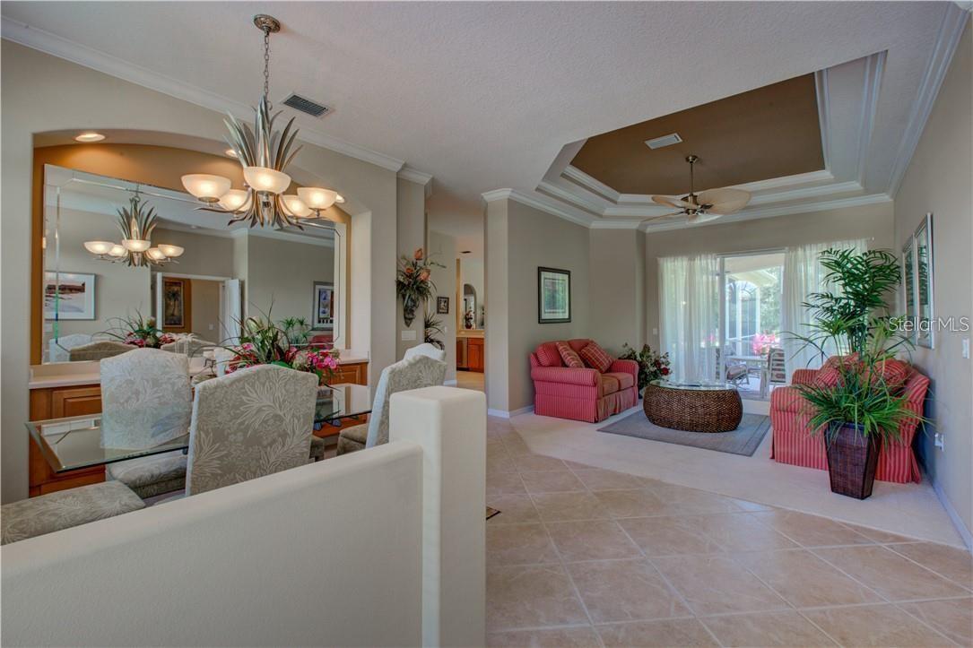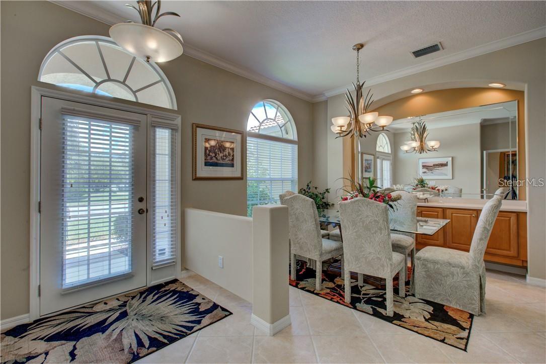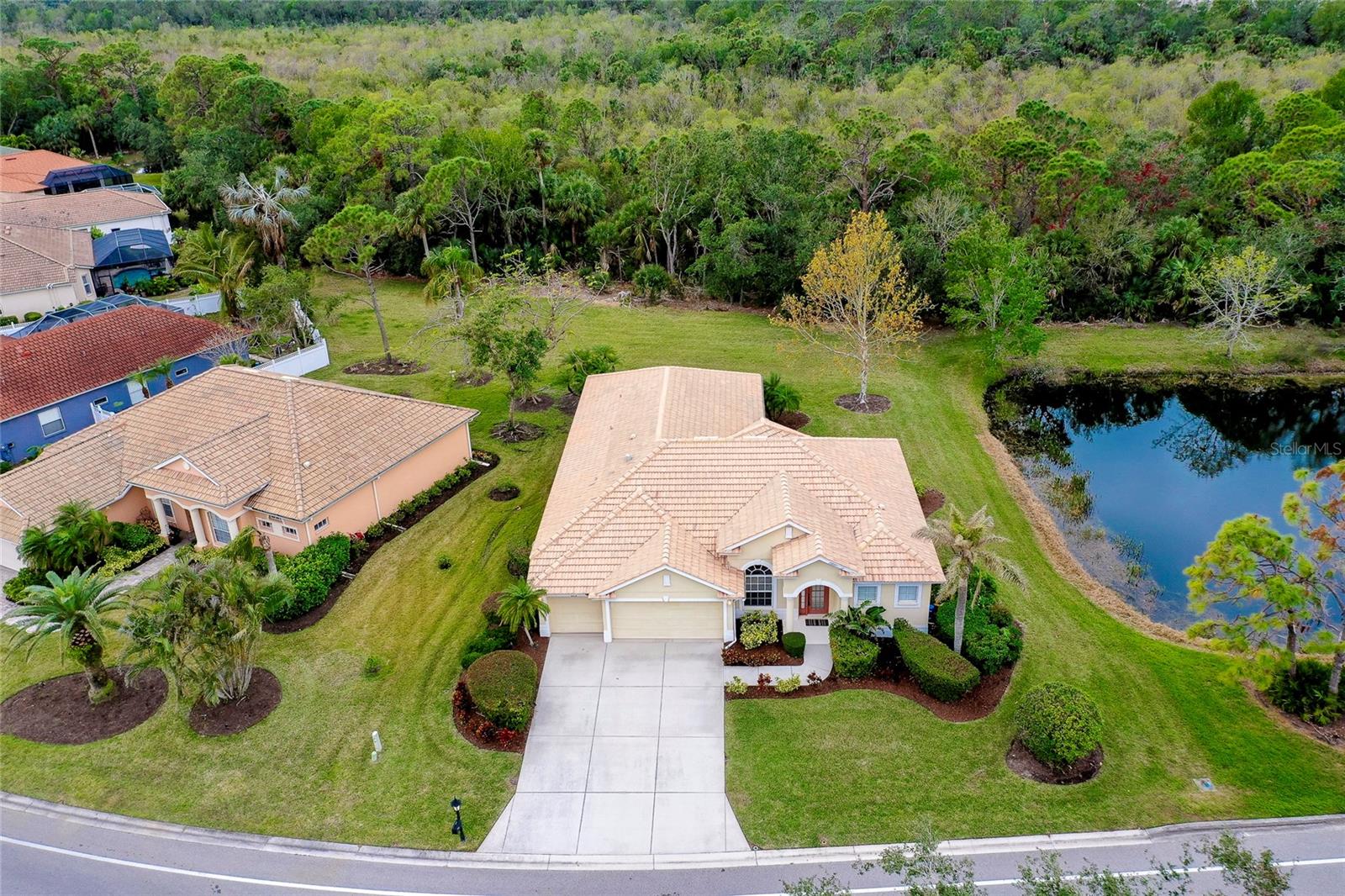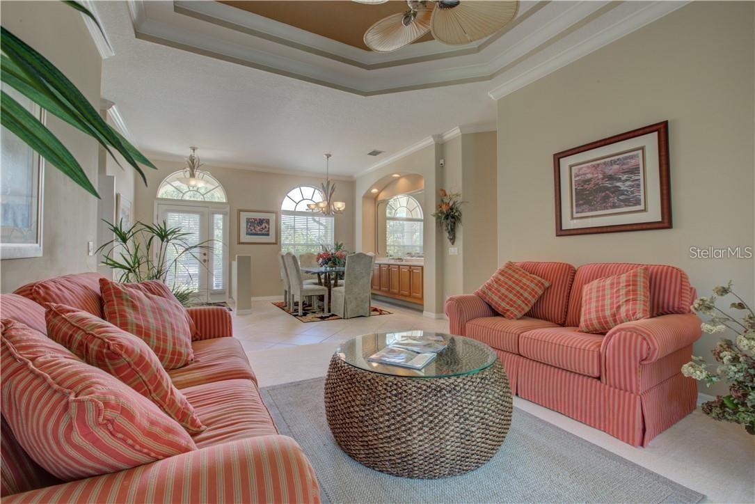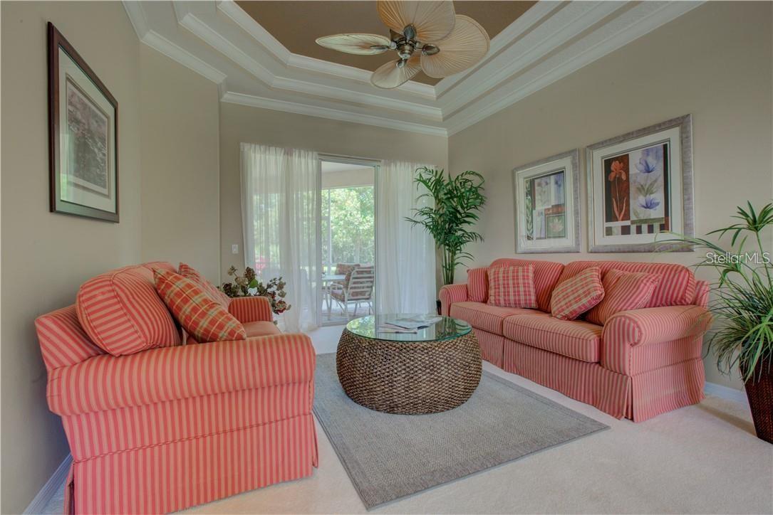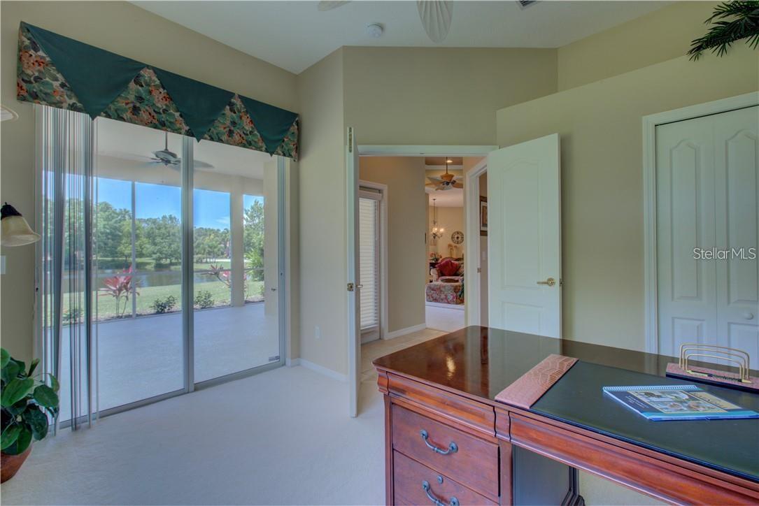 Built by Rutenberg Homes, this residence offers high tray ceilings and a smart, open layout. The formal living and family rooms, along with the en-suite primary bedroom, open to the lanai. The dining room features custom built-ins, two guest bedrooms share a bath, and a private in-law suite/office includes its own bath and lanai access. The kitchen, with newer appliances, a breakfast bar, and an eat-in nook, connects to the family room with an electric fireplace. The lot backs to a wooded preserve with a pond on one side. A heated community pool is just a 3-minute walk away. Additional features include a drilled well for sprinklers, exterior taps, a three-car garage with EV charger, and new central heating/AC (March 2025). Walk to Pine View School for the Gifted, close to the Legacy Trail, Gulf beaches, Oscar Scherer State Park, and boating. Optional Turnkey. Seller will consider all offers.