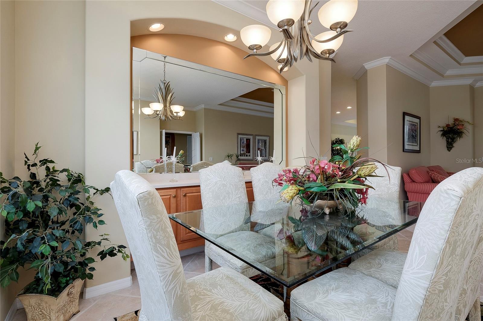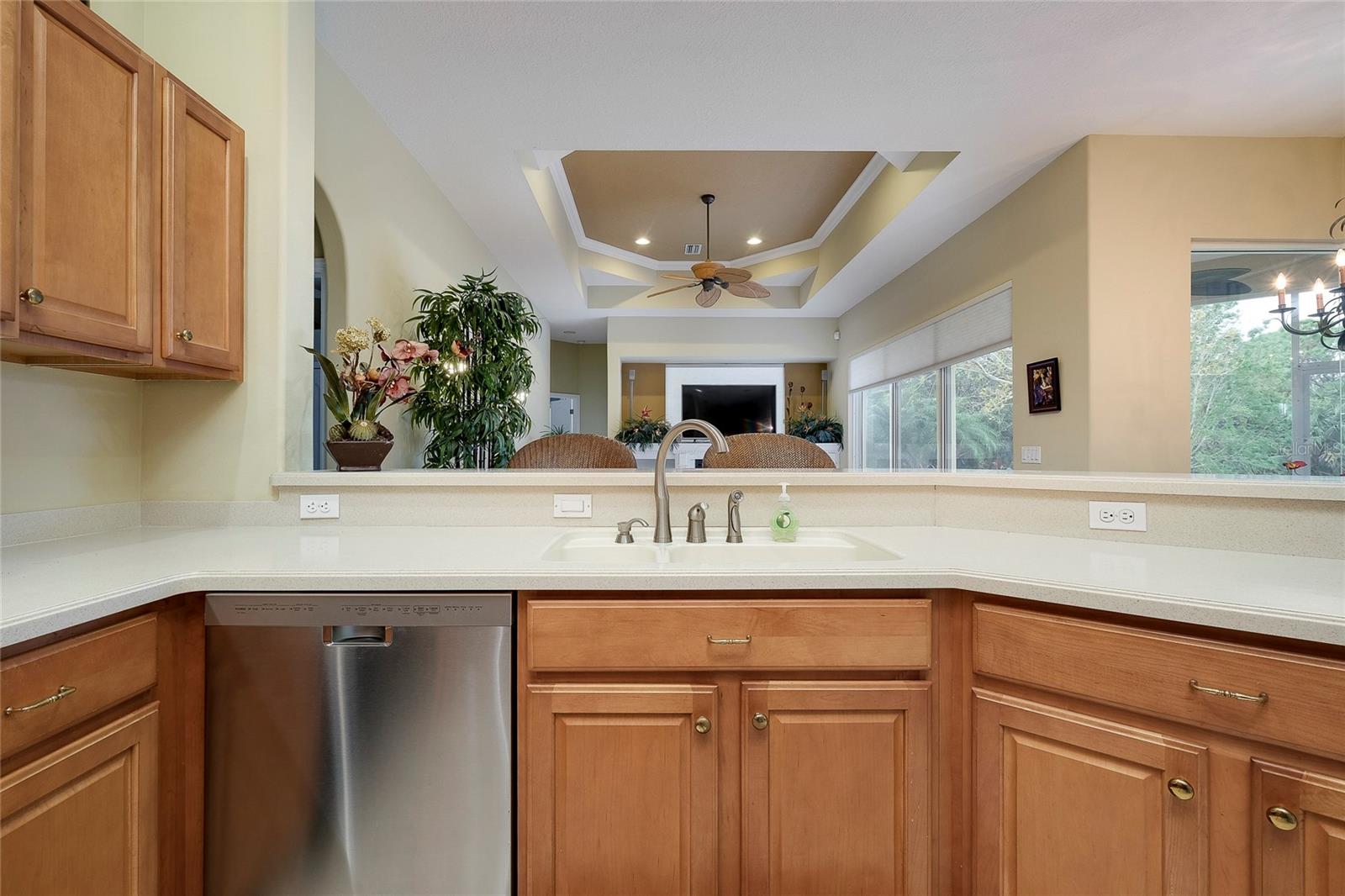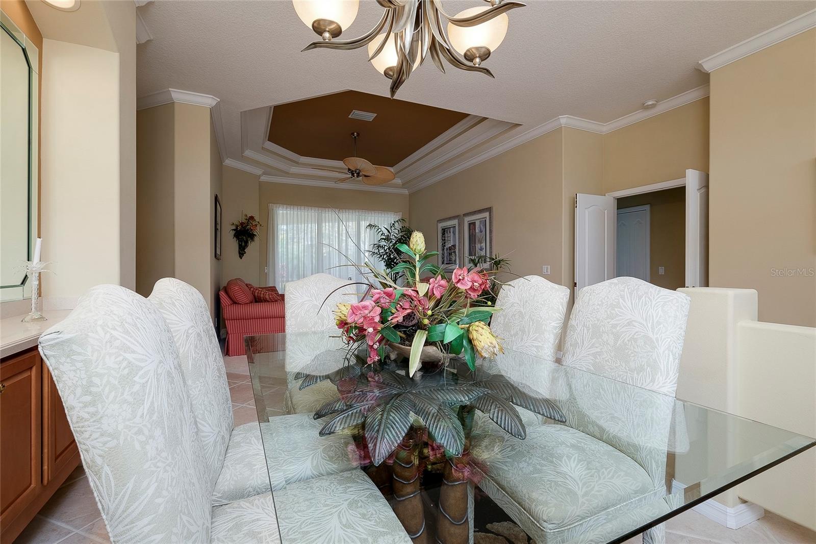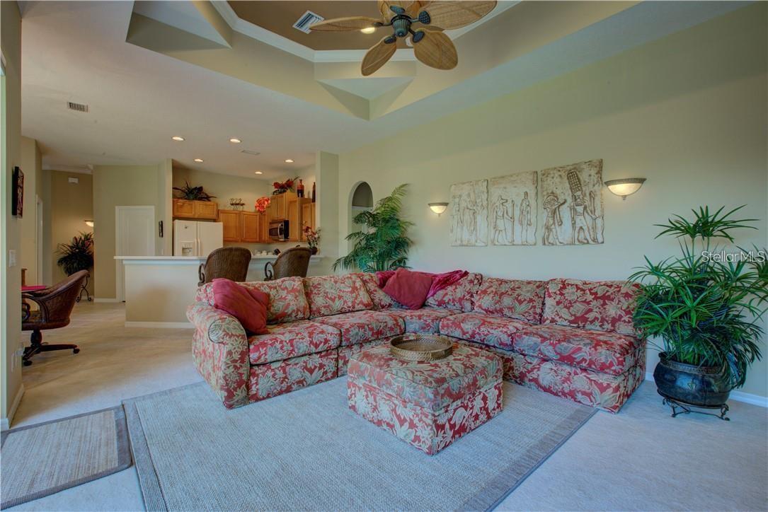 Built by Rutenberg Homes, this residence offers high tray ceilings and a smart, open layout. The formal living and family rooms, along with the en-suite primary bedroom, open to the lanai. The dining room features custom built-ins, two guest bedrooms share a bath, and a private in-law suite/office includes its own bath and lanai access. The kitchen, with newer appliances, a breakfast bar, and an eat-in nook, connects to the family room with an electric fireplace. The lot backs to a wooded preserve with a pond on one side. A heated community pool is just a 3-minute walk away. Additional features include a drilled well for sprinklers, exterior taps, a three-car garage with EV charger, and new central heating/AC (March 2025). Walk to Pine View School for the Gifted, close to the Legacy Trail, Gulf beaches, Oscar Scherer State Park, and boating. Optional Turnkey. Seller will consider all offers.
