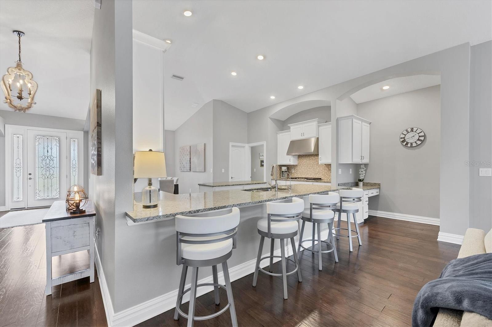 BACK ON THE MARKET, BUYER DEFAULTED***HUGE PRICE REDUCTION OF $70,000***Exceptional value located in Country Club East's premiere Collingtree neighborhood, this stunning lake view, maintenance free home offers an open floor plan with 4 bedrooms, 3 full baths, a spacious room meant for an office/bonus/flex room and a 3-car garage. The gourmet kitchen boasts beautiful wood cabinetry, GE stainless steel appliances, timeless granite countertops, neutral tile backsplash and large island great for entertaining with seating. The great room features sliders that blend seamlessly to the outdoor entertaining areas with an inviting resort style pool and peaceful and private lake views. The spa-like master suite is situated for complete privacy with an elegant ensuite bathroom featuring deep soaking tub, double vanities, walk-in shower and huge master closet. Notable and unique features of this home include brand new carpeting in all bedrooms, AQUA water filtration system and water softener with insta hot water at the sink, tankless hot water heater, hurricane shutters and newer LG washer and dryer that convey with the home. Residents of Country Club East enjoy exclusive access to The Retreat, a resident-only amenity center featuring a resort-style lap pool, state of the art fitness facility, social gathering space, and outdoor kitchen. Additionally, the community offers two additional pools and numerous nature trails for outdoor recreation. Optional membership to the award-winning Lakewood Ranch Golf and Country Club provides access to four championship golf courses, three clubhouses with dining, recently updated fitness and aquatics centers, 22 hard-tru tennis courts, 20 pickleball courts, and bocce ball. Lakewood Ranch has been the Nation's Best-Selling Master-Planned Community for All Ages for the past 7 years in a row!! Don't miss this amazing opportunity! Call for your private showing today and start living the ultimate Florida lifestyle.