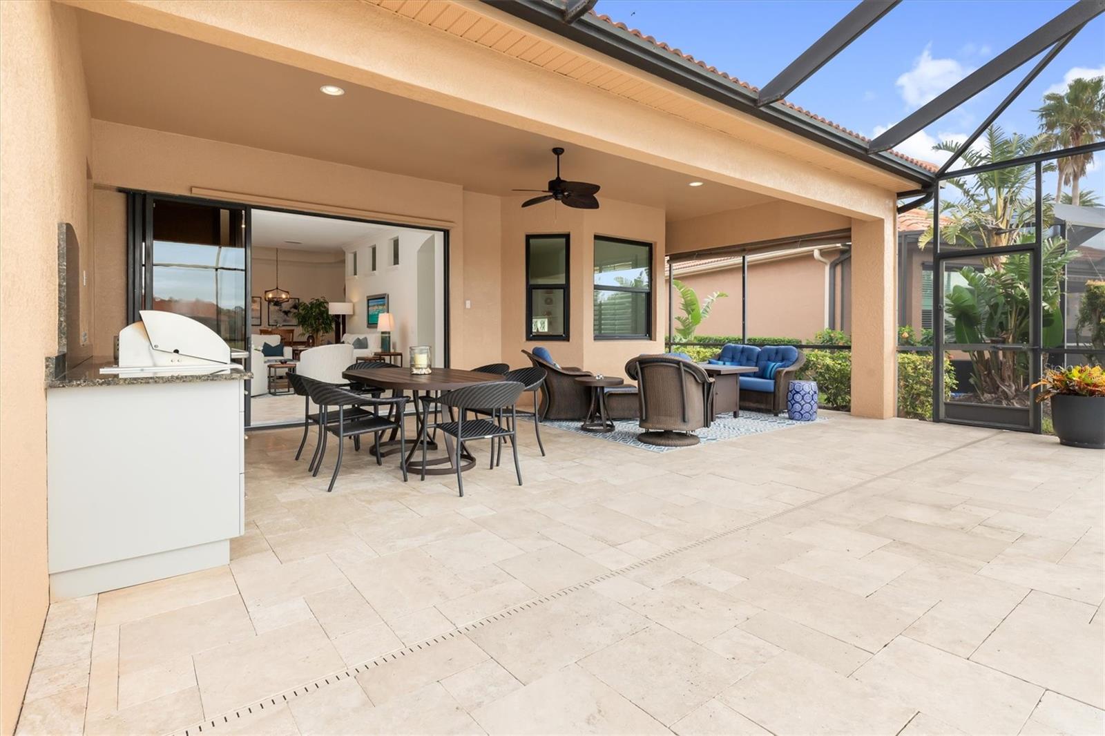 Incredible Price Reduction and Value! Best LOT, BEST PRICE in Silver Oak!This exquisite home located in the gated and maintenance-free community of the Vineyards at Silver Oak is the absolute best of the best! Starting from the prime A-plus lot, this home has a southern exposure featuring sunny views daily from the pool area, long lake views, and is located just a few lots away from the coveted community amenities. This Madeira floorplan is designed around the open concept and offers all the right spaces. Upgrades include diagonally laid tile, custom summer kitchen with natural gas powered stainless steel grill and Sub Zero refrigerator, built-in wine bar with refrigeration, all upgraded stainless steel kitchen appliances, full hurricane shutter system and much more. The owner's retreat features upgraded plantation shutters, pool access, an oversized suite with sitting area, a bathroom with dual granite-topped vanities, as well as dual walk-in closets. The outdoor living area features an ultra-luxury travertine deck, a pebble finished pool and spa, as well as natural gas heat. The Vineyards amenity area features a heated pool, fitness room, meeting area and community room as well as restrooms. You will love the location of this fine home with convenient access to the Legacy Trail, major shopping areas, great dining, and of course Siesta Key and Nokomis beaches. Silver Oak is truly a great retreat from it all, schedule your private showing today to take the first step towards living the Sarasota lifestyle.