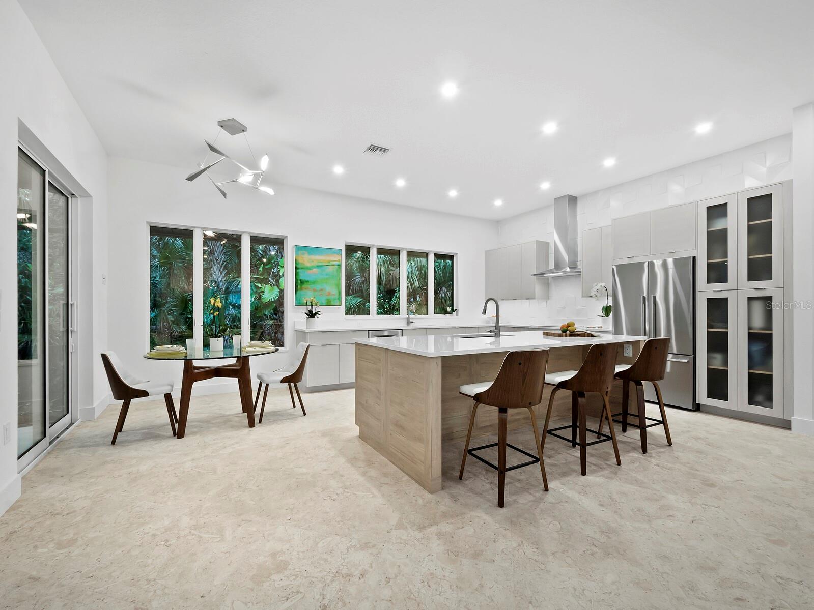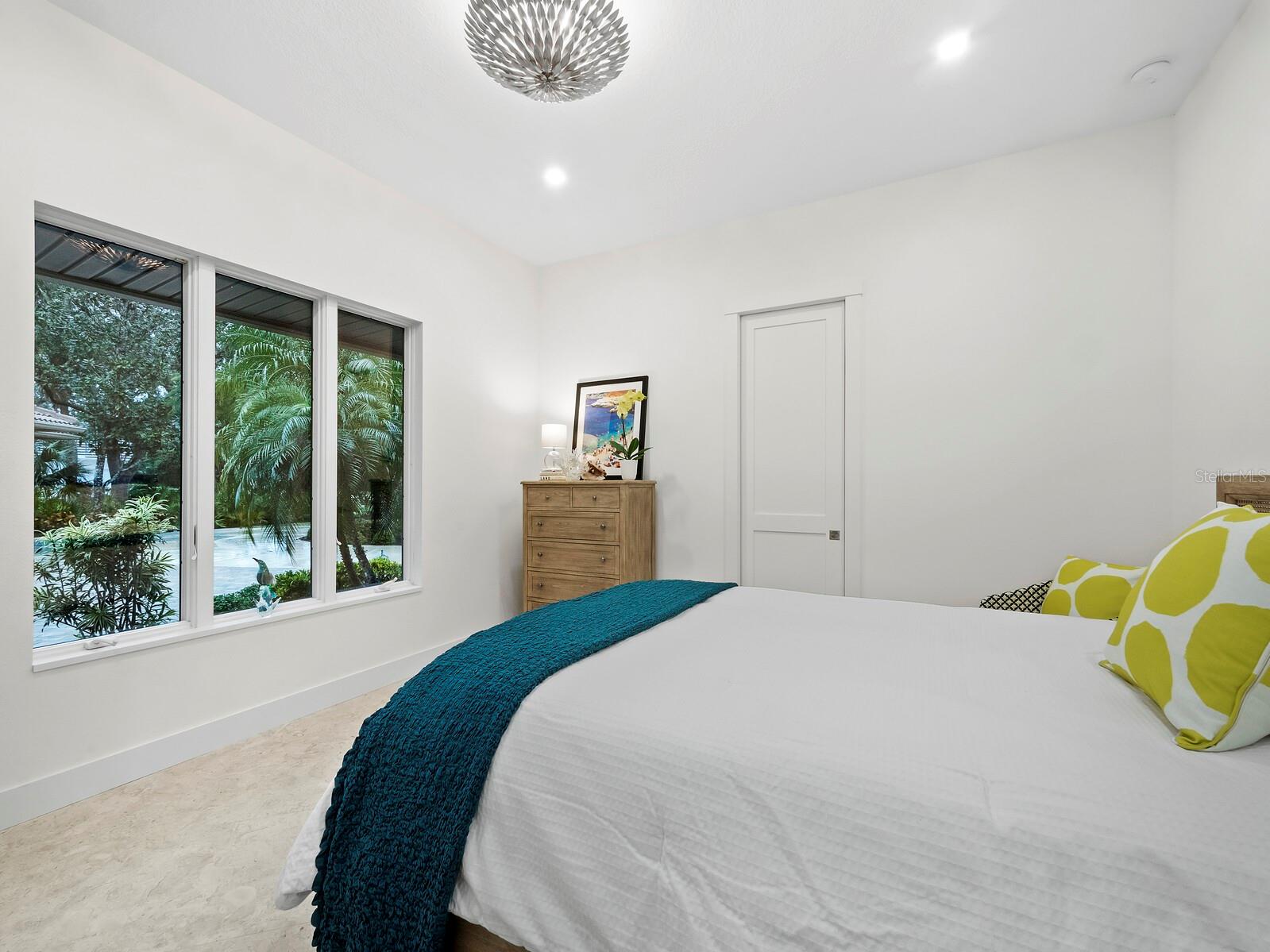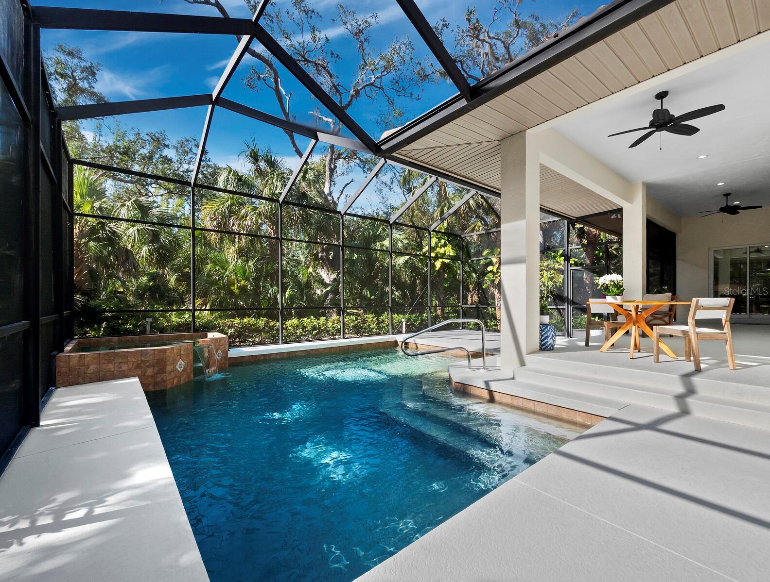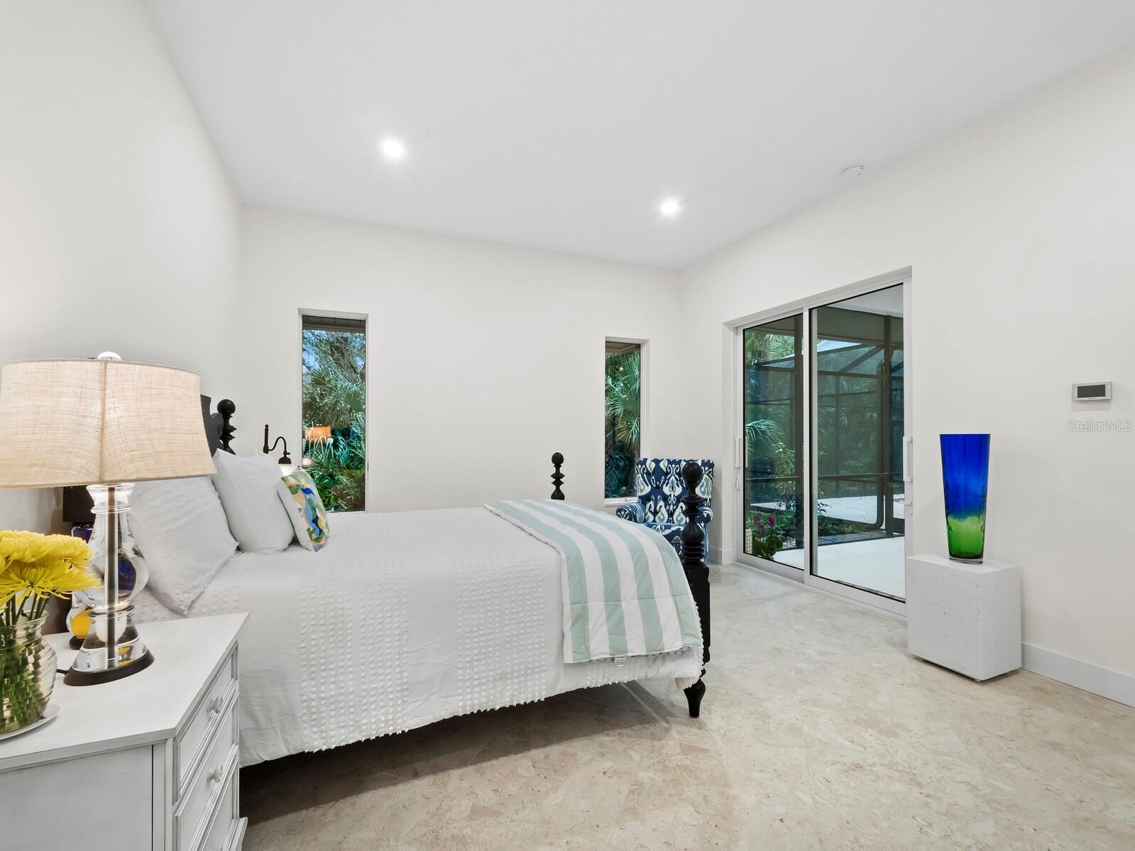 COMPLETELY RENOVATED and BETTER THAN NEW, this elegant executive home was taken down to the studs and rebuilt by Sarasota's premier builder, Jonas Yoder Custom Homes (2021-2022). No expense was spared in this full-scale transformation. Situated on nearly ONE ACRE of lush private preserve with xeriscape gardens and native Florida hammock, this home is a rare sanctuary in a high-demand, gated community--designed to offer protection from wind, rain, and drought. With nearly 3,000 sq. ft. under air and 4,293 sq. ft. under roof, this 4-bedroom, 3-bath split floorplan features soaring 12-ft ceilings, open-concept living, and top-tier finishes throughout. Highlights include Cambria Quartz countertops, custom solid wood cabinetry, trim, and doors, brand-new Bosch stainless steel appliances, imported 24" porcelain tile floors, new Trane AC/HVAC with heat pump, and a luxurious heated pool and spa with an extended screened patio and full outdoor kitchen. The renovation covered everything: studs, insulation, plumbing, electrical, subfloor, hurricane-rated doors and garage doors, impact-resistant windows, and roof deck. A whole-house liquid-cooled KOHLER GENERATOR with automatic transfer switch and 500-gallon propane tank ensures peace of mind during any storm. Other upgrades include a new concrete driveway with custom pavers, updated irrigation system and pump, low-voltage path lighting, and new stone walkways--all designed for durability and function. Thoughtfully re-engineered for modern living and efficiency, the home includes 10-ft hurricane-rated sliding glass doors, steel-reinforced entry and garage doors, clear Lexan storm shutters, open-cell spray foam insulation in attic and garage, new ductwork and breaker panels, and a complete re-pipe using PEX plumbing. Bathrooms were rebuilt with porcelain-tiled walk-in showers, Moen fixtures, and updated vanities. Energy efficiency and comfort are ensured with 3-zone smart thermostats, LED recessed lighting, and new attic ductwork. A moisture barrier under the new porcelain floors adds further protection and longevity. Even the drainage, gutters, and downspouts were redesigned for optimal performance. The 2018 roof replacement and structural fortifications make this home truly storm-season ready. Unlike superficial flips, this renovation was executed to the highest standards, with long-term value, safety, and low operating costs in mind. Located in the 24/7 guard-gated community of Laurel Oak Estates & Country Club--one of Sarasota's most prestigious neighborhoods--residents enjoy large estate lots, walkable sidewalks, mature landscaping, and optional social, tennis, and golf memberships. This home is PRICED BELOW REPLACEMENT COST and located in a non-evacuation zone. It's ready for immediate occupancy--no hidden costs, no delays, and nothing left to do but move in. Schedule your private tour today and experience modern luxury, total peace of mind, and the comfort of a truly turnkey home.