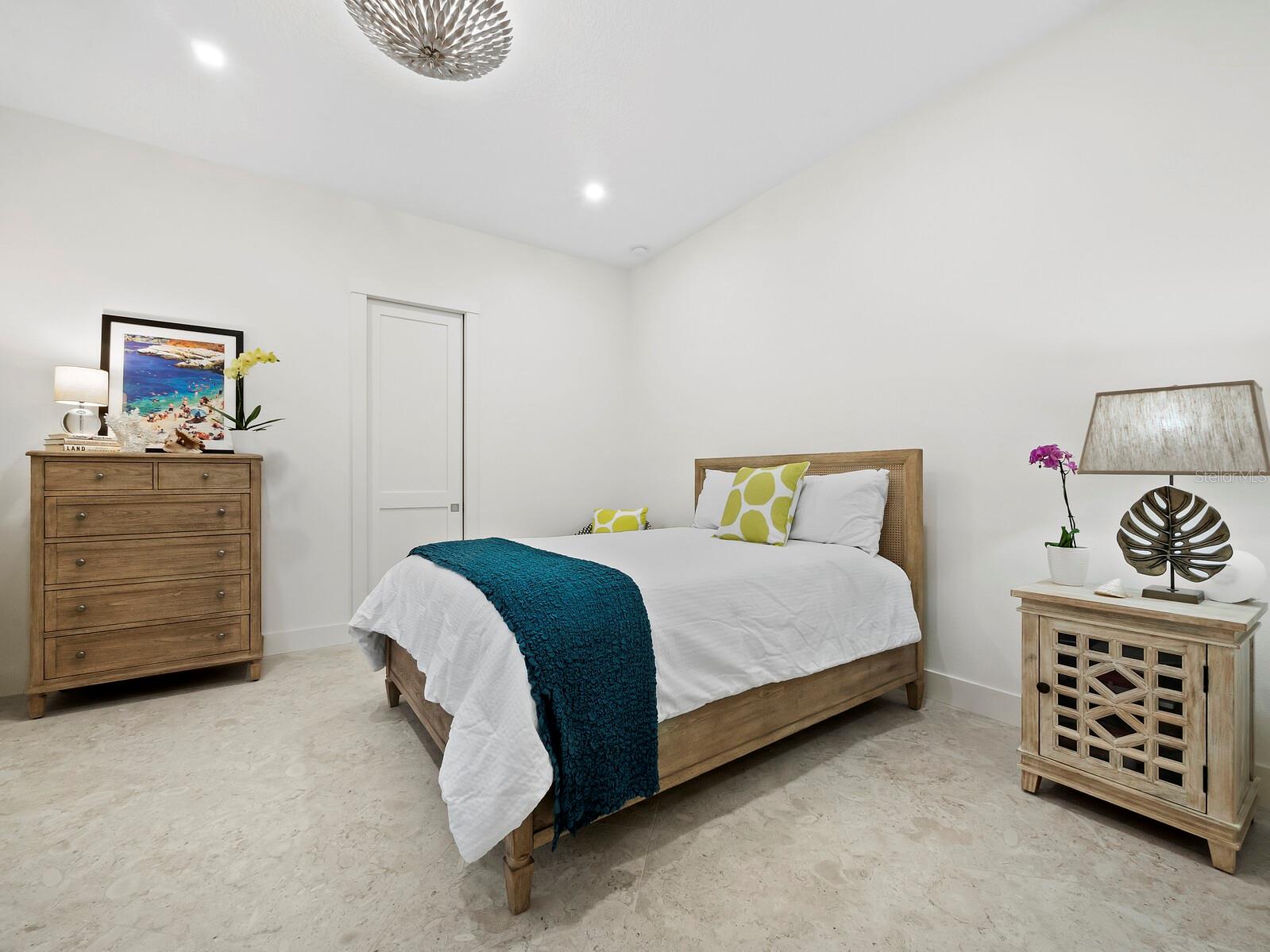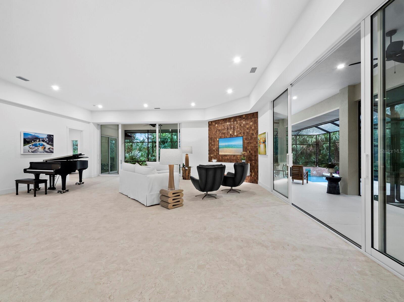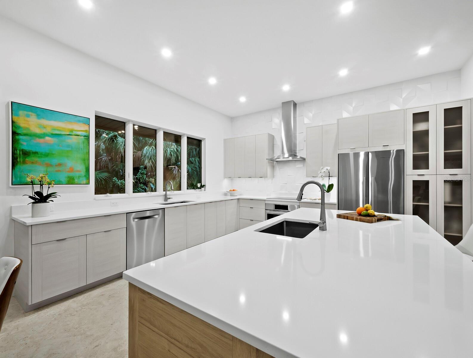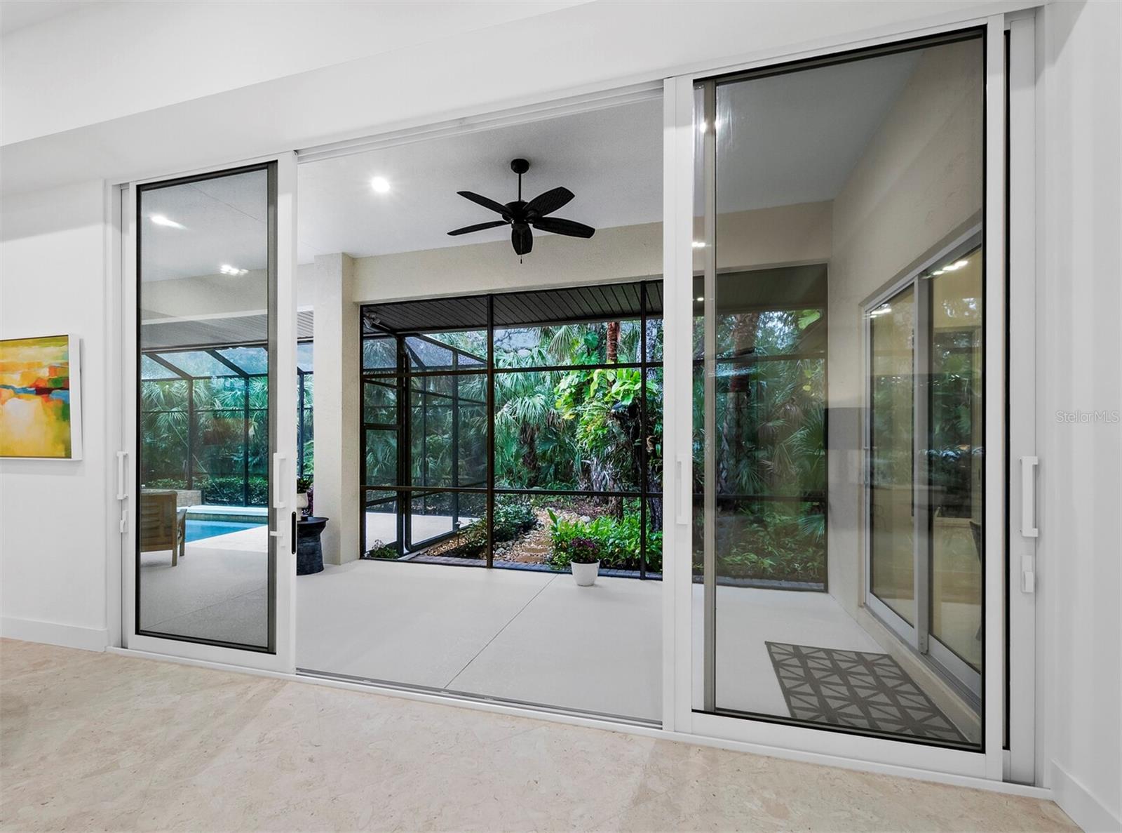 COMPLETELY RENOVATED and BETTER THAN NEW, this elegant executive home was taken down to the studs and rebuilt by Sarasota's premier builder, Jonas Yoder Custom Homes (2021-2022). No expense was spared in this full-scale transformation. Situated on nearly ONE ACRE of lush private preserve with xeriscape gardens and native Florida hammock, this home is a rare sanctuary in a high-demand, gated community--designed to offer protection from wind, rain, and drought. With nearly 3,000 sq. ft. under air and 4,293 sq. ft. under roof, this 4-bedroom, 3-bath split floorplan features soaring 12-ft ceilings, open-concept living, and top-tier finishes throughout. Highlights include Cambria Quartz countertops, custom solid wood cabinetry, trim, and doors, brand-new Bosch stainless steel appliances, imported 24" porcelain tile floors, new Trane AC/HVAC with heat pump, and a luxurious heated pool and spa with an extended screened patio and full outdoor kitchen. The renovation covered everything: studs, insulation, plumbing, electrical, subfloor, hurricane-rated doors and garage doors, impact-resistant windows, and roof deck. A whole-house liquid-cooled KOHLER GENERATOR with automatic transfer switch and 500-gallon propane tank ensures peace of mind during any storm. Other upgrades include a new concrete driveway with custom pavers, updated irrigation system and pump, low-voltage path lighting, and new stone walkways--all designed for durability and function. Thoughtfully re-engineered for modern living and efficiency, the home includes 10-ft hurricane-rated sliding glass doors, steel-reinforced entry and garage doors, clear Lexan storm shutters, open-cell spray foam insulation in attic and garage, new ductwork and breaker panels, and a complete re-pipe using PEX plumbing. Bathrooms were rebuilt with porcelain-tiled walk-in showers, Moen fixtures, and updated vanities. Energy efficiency and comfort are ensured with 3-zone smart thermostats, LED recessed lighting, and new attic ductwork. A moisture barrier under the new porcelain floors adds further protection and longevity. Even the drainage, gutters, and downspouts were redesigned for optimal performance. The 2018 roof replacement and structural fortifications make this home truly storm-season ready. Unlike superficial flips, this renovation was executed to the highest standards, with long-term value, safety, and low operating costs in mind. Located in the 24/7 guard-gated community of Laurel Oak Estates & Country Club--one of Sarasota's most prestigious neighborhoods--residents enjoy large estate lots, walkable sidewalks, mature landscaping, and optional social, tennis, and golf memberships. This home is PRICED BELOW REPLACEMENT COST and located in a non-evacuation zone. It's ready for immediate occupancy--no hidden costs, no delays, and nothing left to do but move in. Schedule your private tour today and experience modern luxury, total peace of mind, and the comfort of a truly turnkey home.
