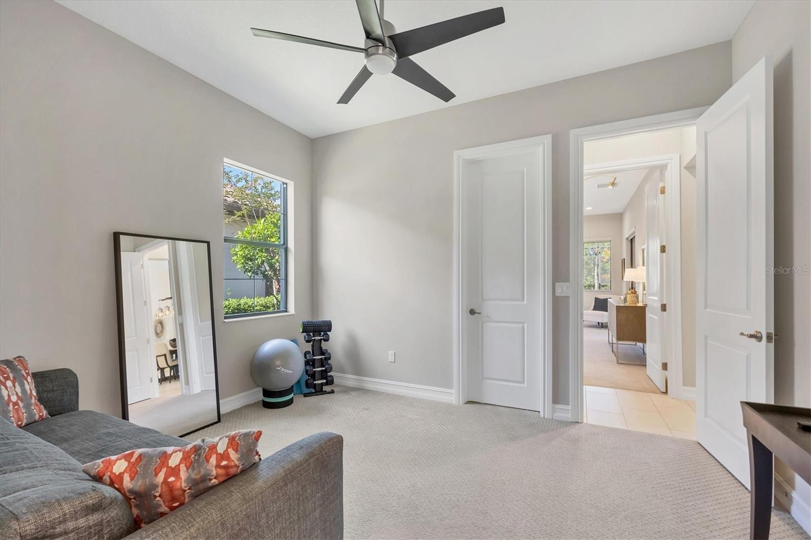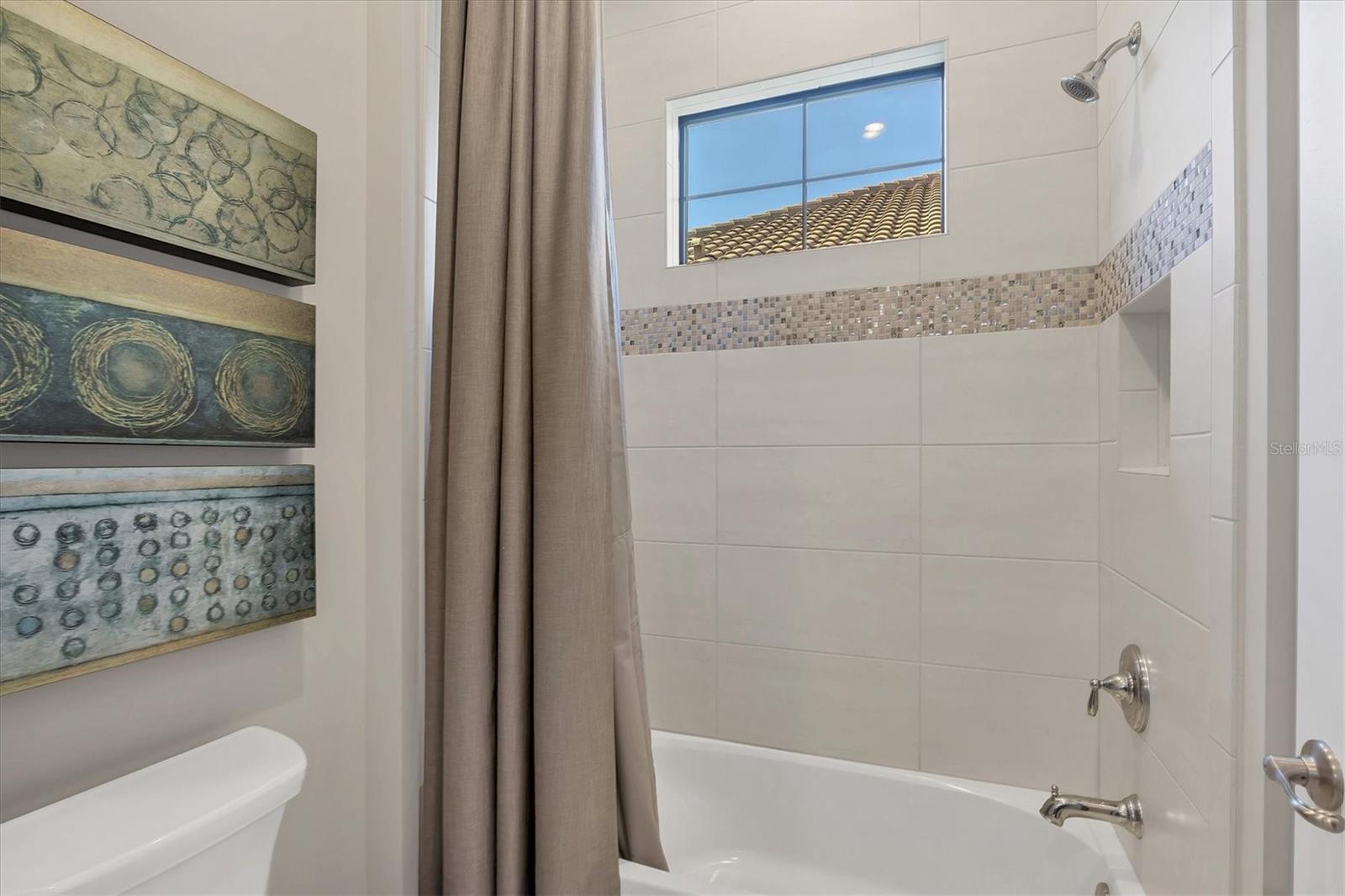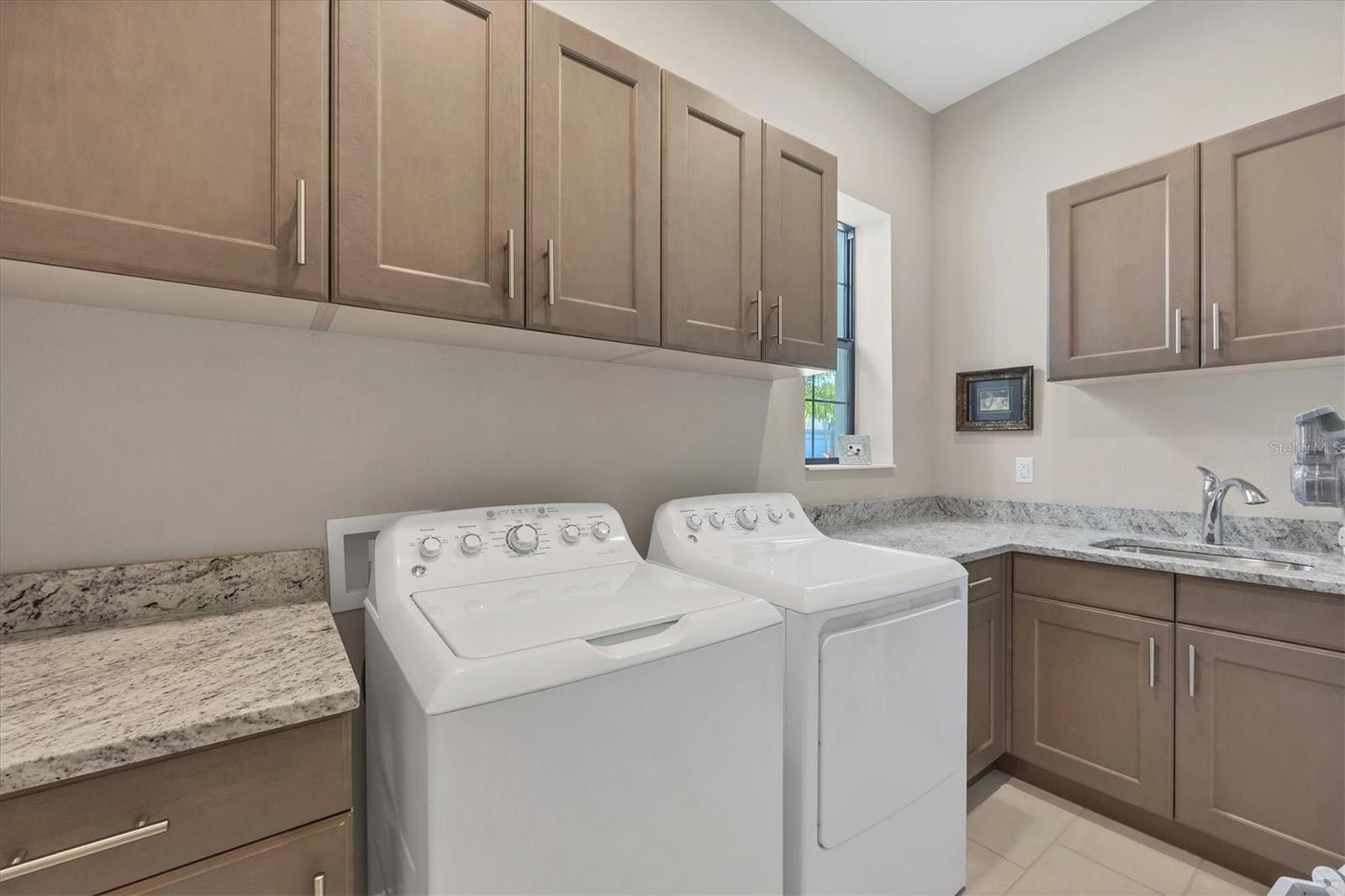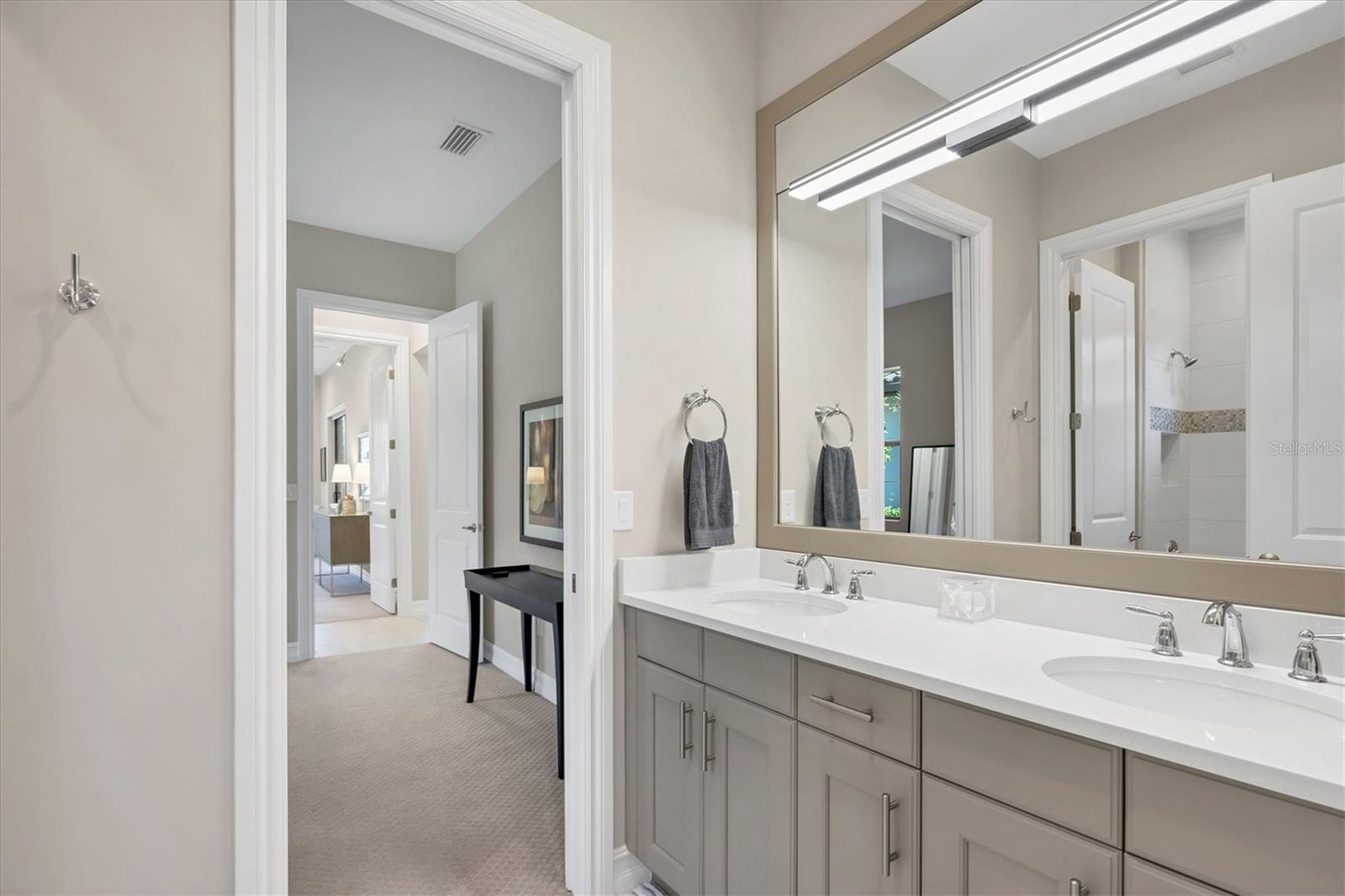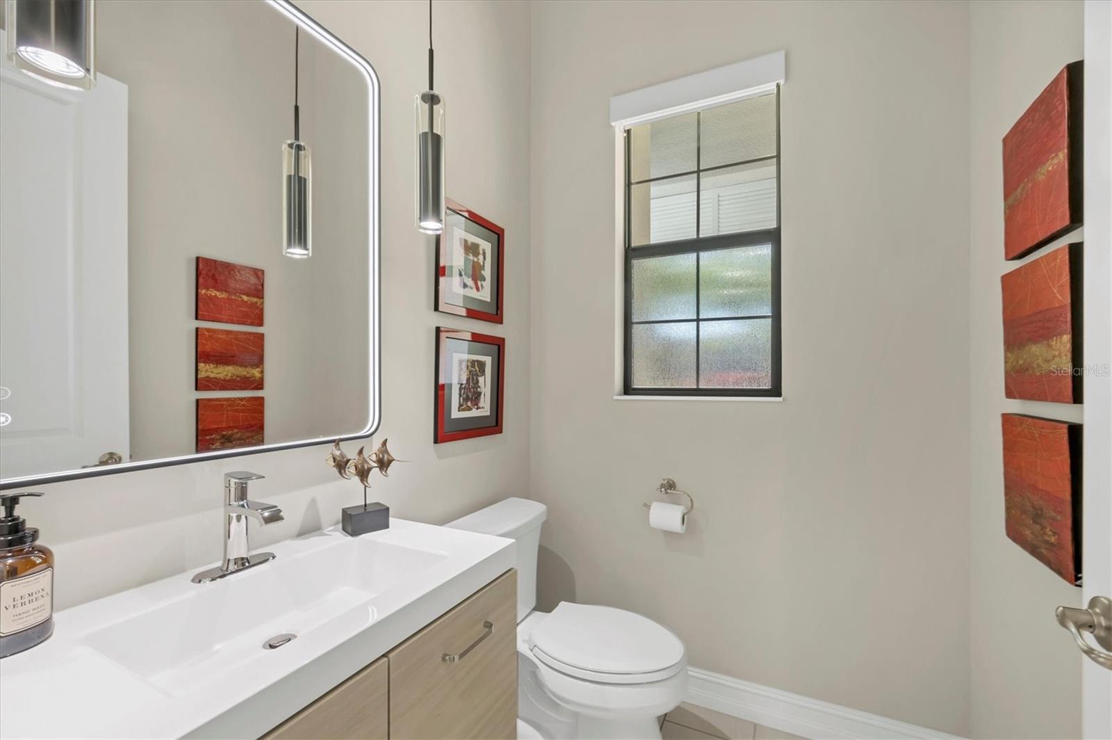 Welcome to the Captiva II model by Stock Signature Homes, a stunning low-maintenance Country Club East residence that combines contemporary design with exceptional functionality. This beautiful home sits on a private, wooded lot with an easement next door, ensuring privacy and breathtaking views of a serene pond. The home's striking modern black iron and frosted glass doors invite you into a spacious foyer, where a mirrored wall treatment adds an elegant touch. Inside, you'll find an open floor plan that allows natural light to flood the space. The expansive great room features 12-foot ceilings, pocketing sliders that open to the lanai, and modern white ceiling beams that enhance the room's airy feel. Off the great room is the kitchen, offering a large island with additional storage, quartz countertops, and high-end appliances such as a Fulgor Milano refrigerator and dishwasher, GE Profile five-burner cooktop, oven and convection microwave. Adjacent to the kitchen is an eat-in dining area, perfect for casual meals and family gatherings. A spacious walk-in butler's pantry with modern cabinetry makes it easy to store culinary essentials. This home offers four bedrooms and three-and-a-half baths. The primary suite is a true sanctuary, featuring a 12-foot tray ceiling, two walk-in closets with built-in organizers, and French doors that open to the lanai, bringing the beauty of the outdoors in. The en-suite bath includes dual sinks, a freestanding tub and a walk-in shower. The home's design also includes a flexible fourth bedroom, perfect as a secondary primary suite or bonus room, complete with an en-suite bath and pool access. Bedrooms two and three share a Jack-and-Jill bath with dual sinks and a tub/shower combo, the perfect space for family or guests. The den with a 15-foot ceilings and wooden feature wall is the perfect space for a quiet retreat. A convenient powder room with stylish lighting and a lit vanity is also available for guests. The large laundry room provides abundant storage and counterspace, while the oversized three-car garage features durable epoxy floors. The home also boasts impact windows and doors for added security and energy efficiency. The large lanai features a heated pool and spa, complete with a waterfall feature, sun shelf, colorful pool lighting and built-in lanai cage lighting. The spacious outdoor space includes an outdoor grill with an exhaust fan for alfresco dining. Additional details include a gas water heater with a hot water recirculation system for instant hot water, low-voltage landscape lighting, and a recently updated irrigation system. Country Club East residents enjoy exclusive access to The Retreat, a neighborhood amenity center boasting a resort-style pool, fitness center, and billiards room. Additionally, The Residents Club offers another pool, spa, and a volleyball court for residents to indulge in leisure and recreation. For those seeking more recreational options, just a few streets away lies the Lakewood Ranch Golf & Country Club, featuring 54 holes of golf, 20 Har-Tru tennis courts, 20 pickleball courts, multiple pools, Grand Clubhouse, and The Lodge bar/restaurant. Residents have the option to avail themselves of these facilities through various membership packages. Discover this gem in Lakewood Ranch, America's top best-selling, master-planned multigenerational community.