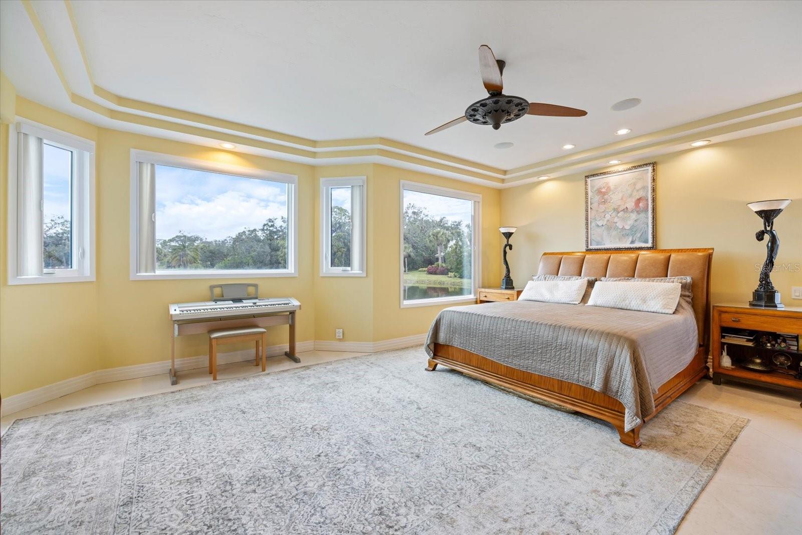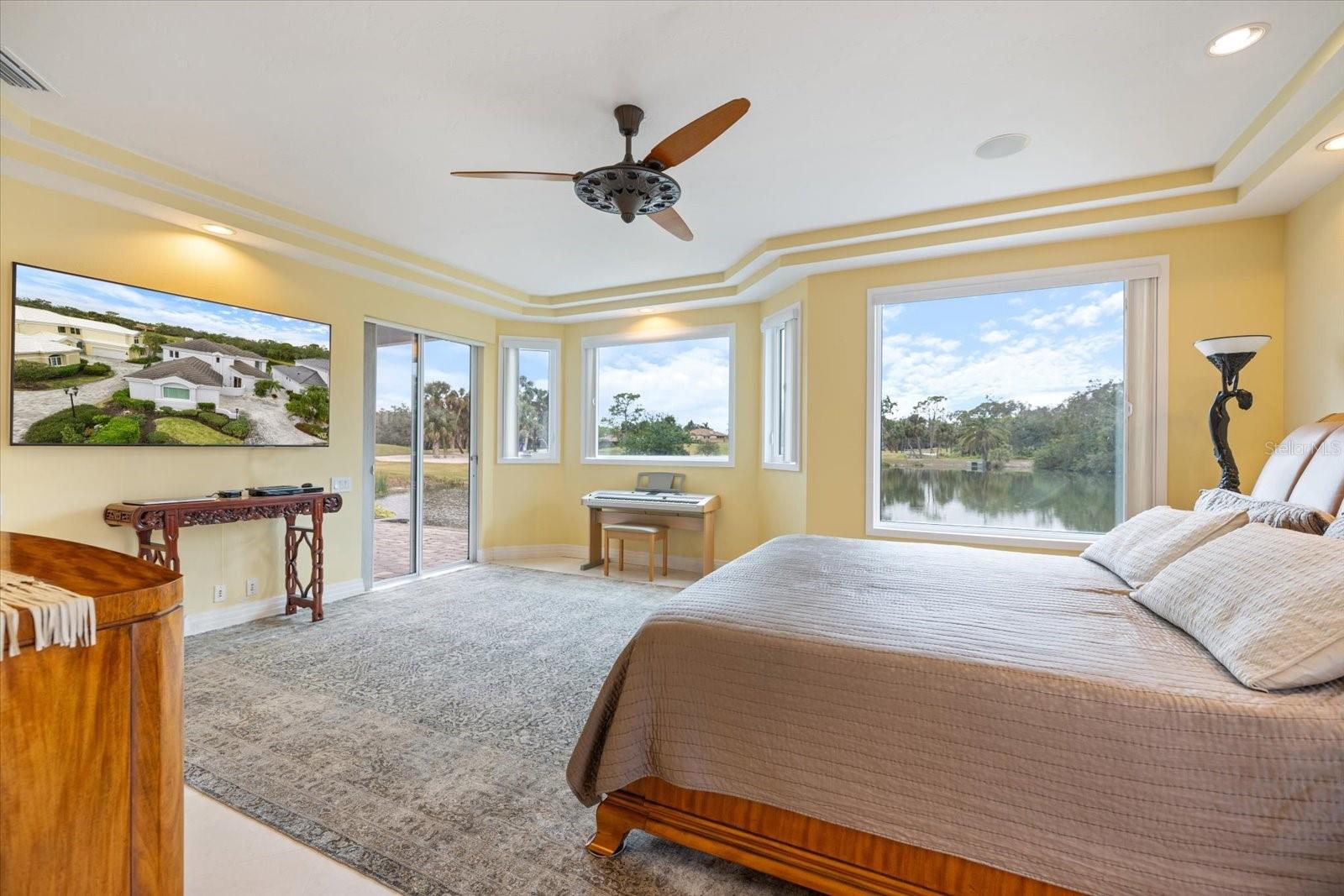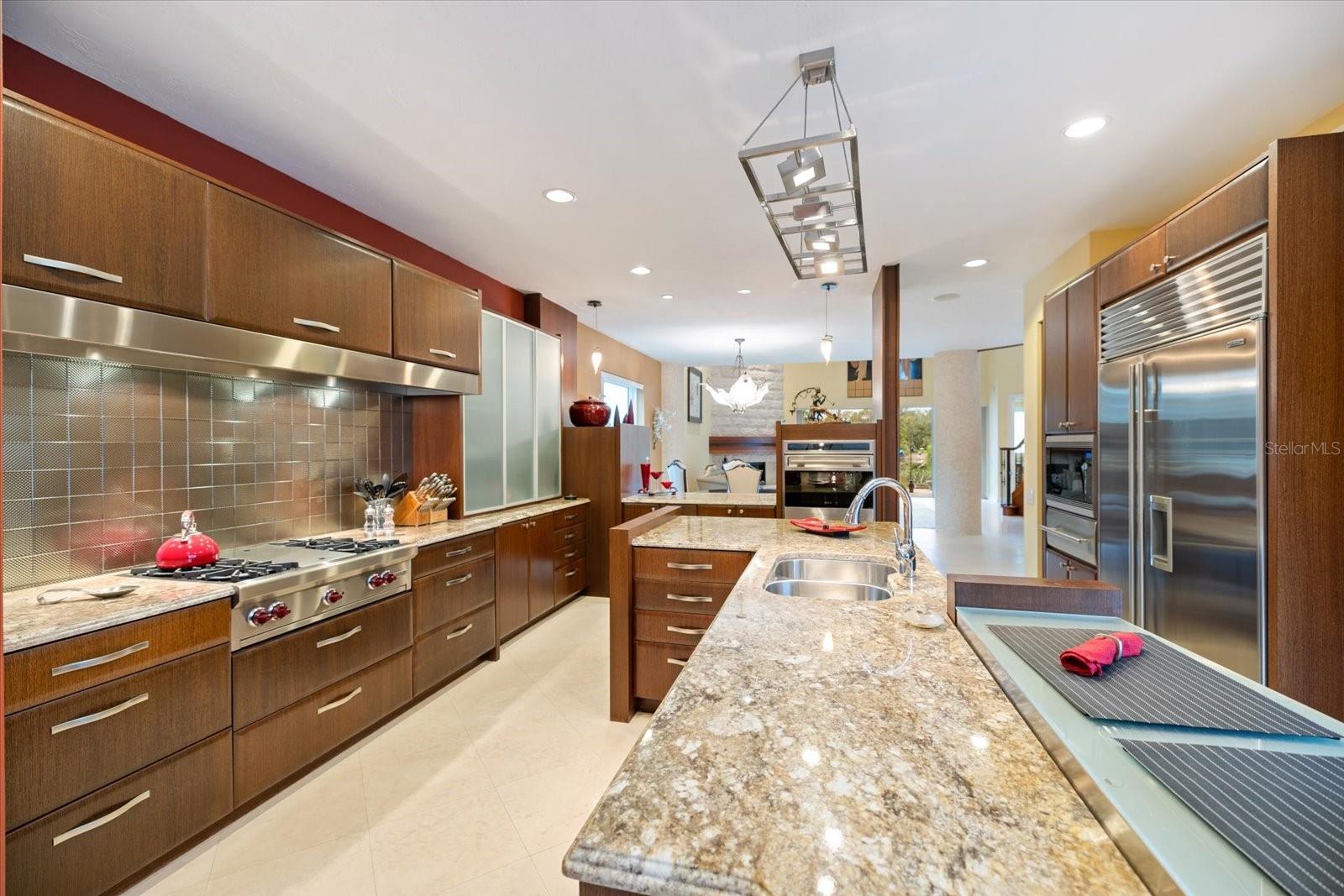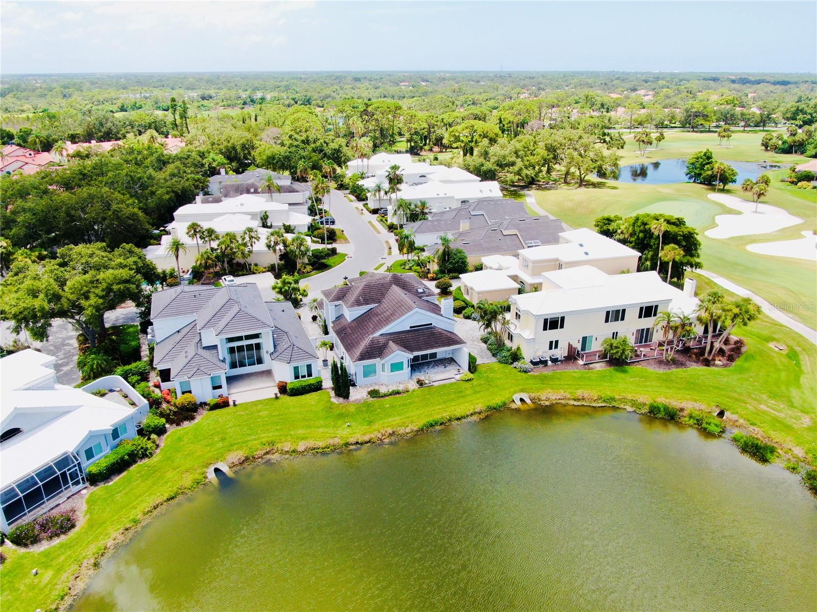 Modern Elegance with Golf Course Views in TPC PrestanciaSet within the gated community of TPC Prestancia, home to Sarasota's only TPC golf course, this custom two-story residence offers refined design and serene views along the 10th fairway. The home welcomes you with soaring ceilings, a graceful mahogany staircase, and Wenge hardwood floors. A 20-foot Jerusalem-stone fireplace anchors the main living area, framed by expansive windows overlooking the golf course and lake.The chef's kitchen features Sub-Zero and Wolf appliances, double ovens, wine cooler, custom cabinetry, and a butler's pantry with coffee bar. The primary suite includes a spa-style bath with dual vanities, soaking tub, body-spray shower, bidet, and custom walk-in closet with direct patio access. Two additional ensuite bedrooms provide comfort and privacy, including a main-level suite ideal for an office or guest room. Upstairs, a bonus/media room with wet bar expands the living space.Outdoor living includes a private courtyard with fountain and convenient access to the community pool across the street. Optional golf and social memberships available. Located minutes from Siesta Key Beach, Legacy Trail, and Sarasota's cultural, dining, and shopping destinations.