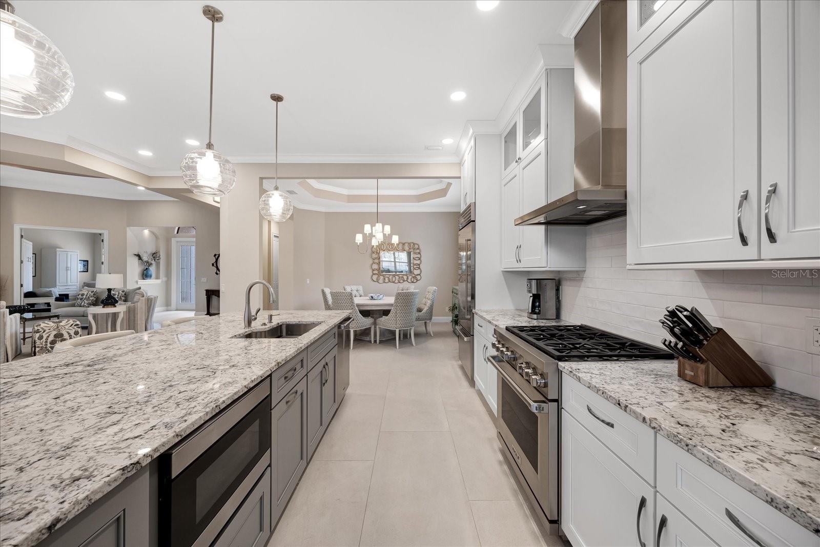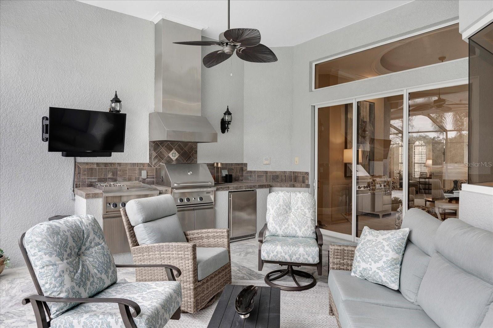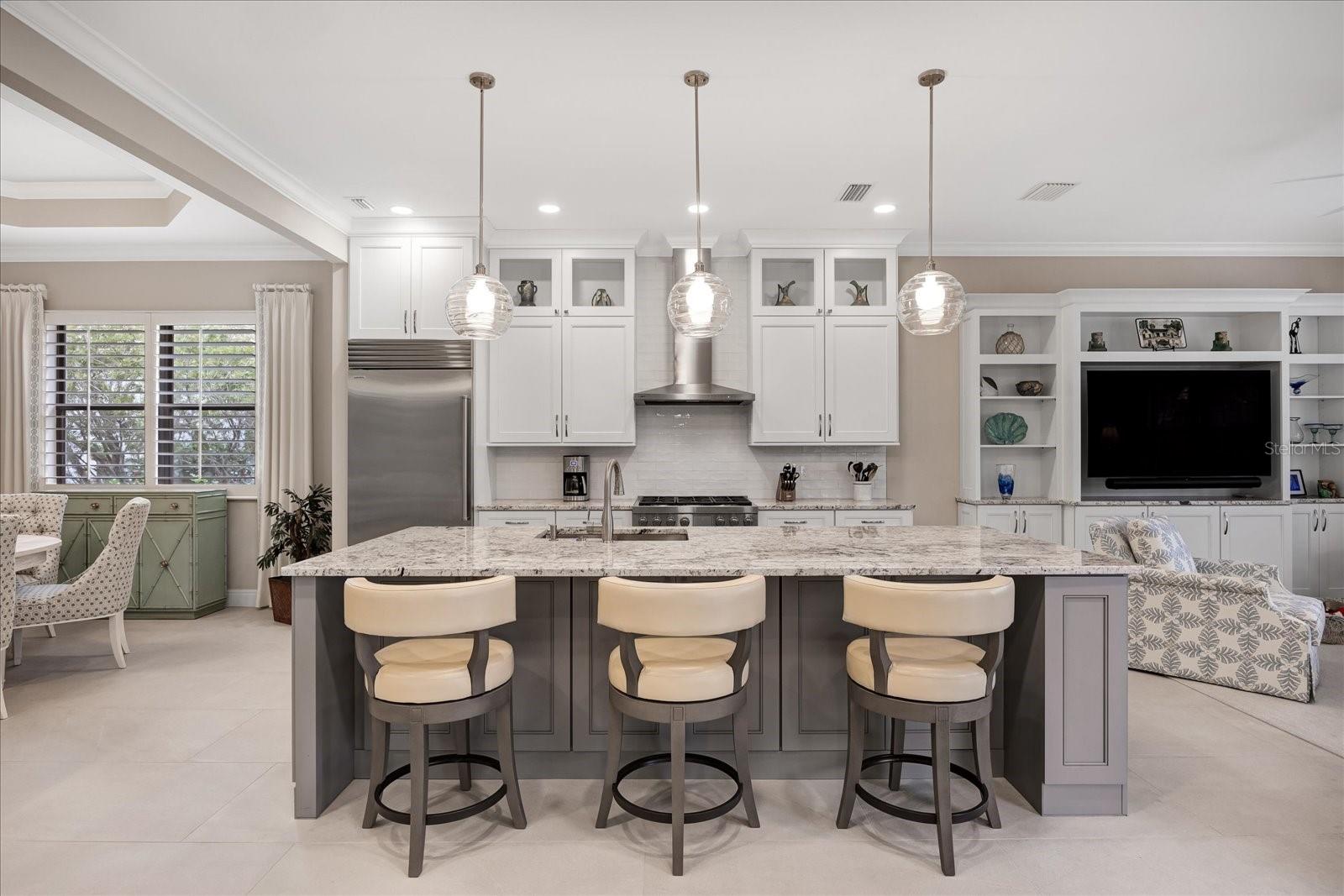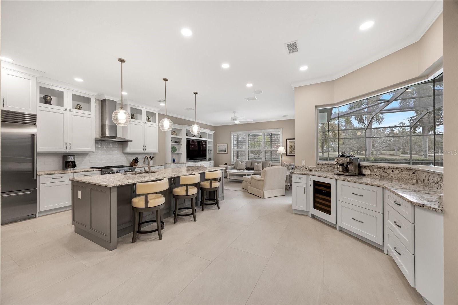 Discover the pinnacle of luxury living with this premium custom-built home, boasting all the modern updates you desire. This pool home offers pond and GOLF COURSE views. For those familiar with The Lakewood Ranch Golf and Country Club, you can easily walk to the first tee of Cypress Links, optional memberships available. From the moment you arrive, you'll be captivated by the curb appeal, featuring a spacious paver driveway and walkway that leads to the double glass door entry. Step inside to an open floor plan that effortlessly flows from the central gathering room to the custom-designed chef's kitchen, dry bar, and family room--perfect for entertaining. The home is adorned with new large porcelain tile flooring, and freshly painted, interior and exterior, in light hues, complemented by wood moldings throughout, giving it a brand-new feel. The updated kitchen is a culinary dream, equipped with new light cabinetry, Sub Zero refrigerator and beverage drawers, Wolf dual fuel range, and a Cove dishwasher. The air conditioning system is also new, ensuring year-round comfort. The garage also has a Whynter air conditioning system. The bathrooms have been elegantly updated with light tile and finishes, and the bedrooms exude freshness and coziness. Custom window plantation shutters add a touch of sophistication throughout the home. Cleaning has been made easier with a central vacuum system. Outdoor enthusiasts will love the outdoor kitchen, complete with a large natural-gas grill, range hood, and refrigerator--ideal for serious grill masters. The lanai features beautiful, new marble tile, the pool features new pool coping and trim tile, a Pebble-Tec finish, self-cleaning system, a salt-water sanitizing system, and pool heater - all making outdoor entertaining a highlight of this home. Located in the gated, golf cart-friendly community of Lakewood Ranch Country Club, known for its expansive golf course views and beautifully preserved natural landscapes. Optional country club golf memberships offer access to 4 golf courses, 3 clubhouses with dining options, tennis and pickleball courts, a deluxe fitness center with classes and professional trainers, spa services, swimming pools, and a full calendar of events. Experience the ultimate in refined living!