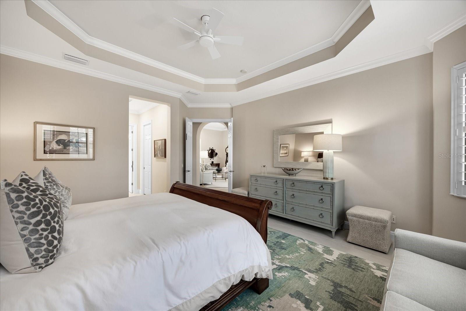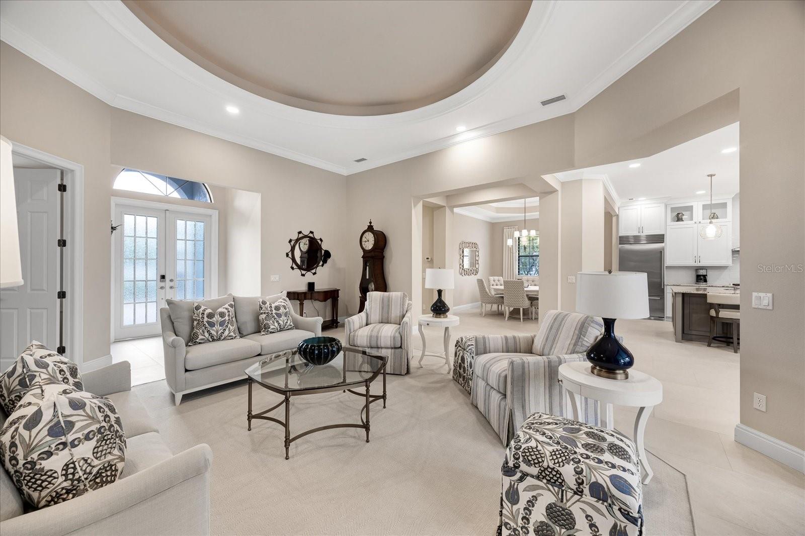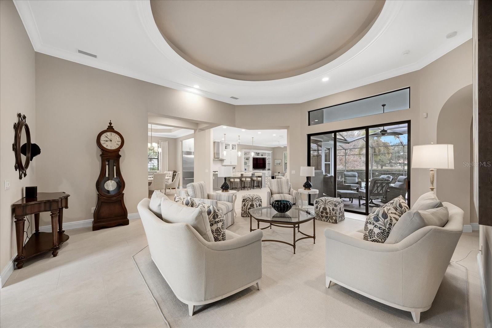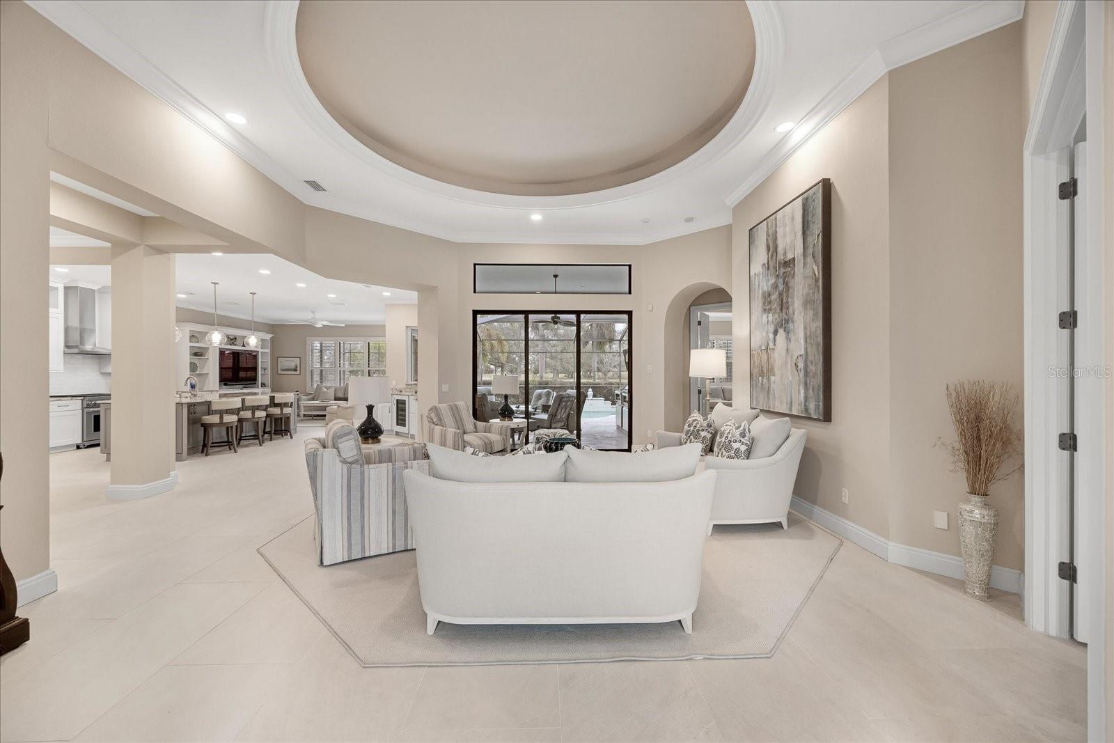 Discover the pinnacle of luxury living with this premium custom-built home, boasting all the modern updates you desire. This pool home offers pond and GOLF COURSE views. For those familiar with The Lakewood Ranch Golf and Country Club, you can easily walk to the first tee of Cypress Links, optional memberships available. From the moment you arrive, you'll be captivated by the curb appeal, featuring a spacious paver driveway and walkway that leads to the double glass door entry. Step inside to an open floor plan that effortlessly flows from the central gathering room to the custom-designed chef's kitchen, dry bar, and family room--perfect for entertaining. The home is adorned with new large porcelain tile flooring, and freshly painted, interior and exterior, in light hues, complemented by wood moldings throughout, giving it a brand-new feel. The updated kitchen is a culinary dream, equipped with new light cabinetry, Sub Zero refrigerator and beverage drawers, Wolf dual fuel range, and a Cove dishwasher. The air conditioning system is also new, ensuring year-round comfort. The garage also has a Whynter air conditioning system. The bathrooms have been elegantly updated with light tile and finishes, and the bedrooms exude freshness and coziness. Custom window plantation shutters add a touch of sophistication throughout the home. Cleaning has been made easier with a central vacuum system. Outdoor enthusiasts will love the outdoor kitchen, complete with a large natural-gas grill, range hood, and refrigerator--ideal for serious grill masters. The lanai features beautiful, new marble tile, the pool features new pool coping and trim tile, a Pebble-Tec finish, self-cleaning system, a salt-water sanitizing system, and pool heater - all making outdoor entertaining a highlight of this home. Located in the gated, golf cart-friendly community of Lakewood Ranch Country Club, known for its expansive golf course views and beautifully preserved natural landscapes. Optional country club golf memberships offer access to 4 golf courses, 3 clubhouses with dining options, tennis and pickleball courts, a deluxe fitness center with classes and professional trainers, spa services, swimming pools, and a full calendar of events. Experience the ultimate in refined living!