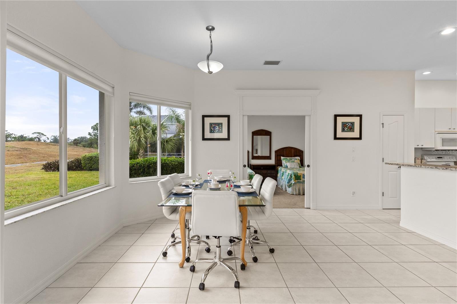 PRICE & LOCATION! LOCATION & PRICE $339,000. This Meticulously maintained 1845 sq ft home, comes fully furnished, turn key! In the esteemed gated community of Bobcat trail. Individuality is "stamped out" with this gorgeous concrete driveway. Practicality meets peace of mind with all the upgrades including but not limited to the new tile roof installed in 2023 entering the home though elegant 8ft glass front door. An open concept; split floor plan comprising of 3 bedrooms and 2 bathroom. Designer Hunter Douglas Arch panel plantation shutters provide a polished, cohesive aesthetic. Escape through the 90-degree slider that effortlessly merges indoor and outdoor living onto the extended screened lanai, Accentuated by the calming sounds of the waterfall feature, set against the back drop of the golf course. a perfect spot for enjoying those stunning Florida sunsets while either gathering and entertaining friends and family or relaxing and enjoying the peace and tranquility that is Bobcat Trail.Bobcat Trail's prime location ensures easy access to I-75 and US 41, connecting you effortlessly to shopping, healthcare, restaurants, and the spring training facilities of the Rays and Braves. Enjoy a variety of community amenities, including a swimming pool, tennis and pickleball courts, a fitness center, and a community center hosting numerous events.