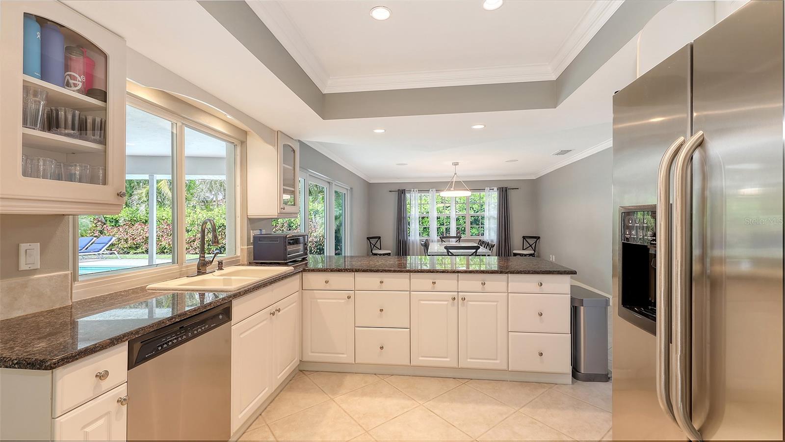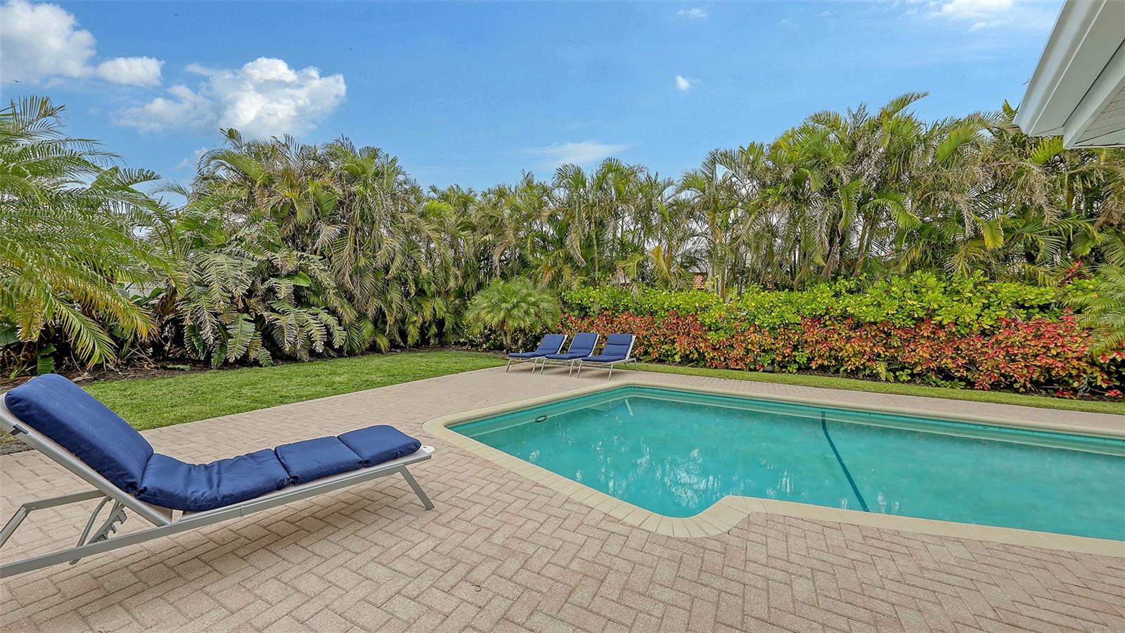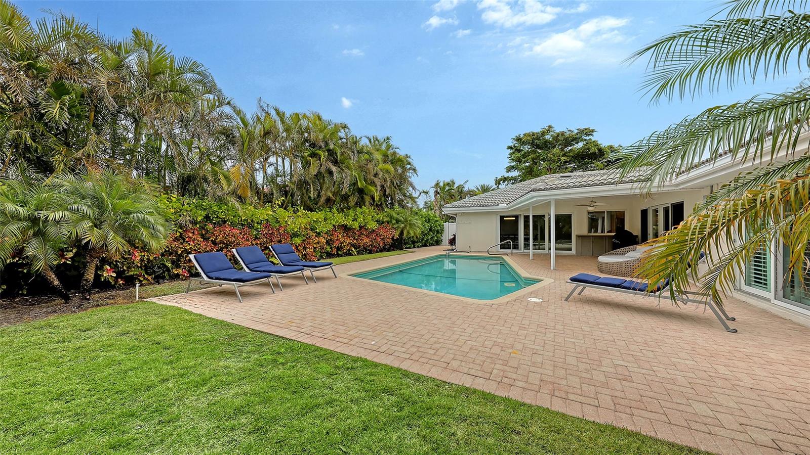 This lovely Bird Key garden home resides on a corner lot with a large circular paver driveway and beautiful landscaping that leads to the front door with the 2 car garage located on the side of the house. Inside, you will find abundant natural light with many windows and glass sliders that afford a splendid view of the large yard and pool area with a private garden wall. This three-bedroom residence has a split floor plan offering a private master suite, complete with 2 walk-in closets, an en-suite bathroom, and sliding doors to the pool deck. The two guest bedrooms and a second bathroom complete the other end of the house. A powder room and an oversized laundry room with a sink and loads of storage are a bonus not found in many garden homes. The kitchen overlooks the large backyard and pool area, with granite countertops, stainless steel appliances, and a breakfast bar overlooking the family/dining room. The house has high-impact windows & sliding doors, a heated pool, a well for irrigation, and mature lush landscaping that provide privacy and a large fenced back yard. The most recent upgrades and improvements from the interior to the exterior include re-ling the plumbing under the slab. The garage was gutted, painted and the floor epoxied. Updated interior baseboards and stunning interior lighting were installed throughout the home, giving it an updated, sleek look. This home is move-in ready. Live the comfortable Florida dream by opening large sliders to the pool area, with neutral tile throughout and a spacious flowing floorplan that makes the indoor-outdoor lifestyle easy. This residential island has its own optional Bird Key Yacht Club, tennis courts, swimming pool, fitness room, social scene, boat slips, marina, indoor and outdoor dining. These are the perfect ingredients for making this your private island retreat, complete with nearby beaches, dining, shopping, excellent schools, and the beautiful downtown area.