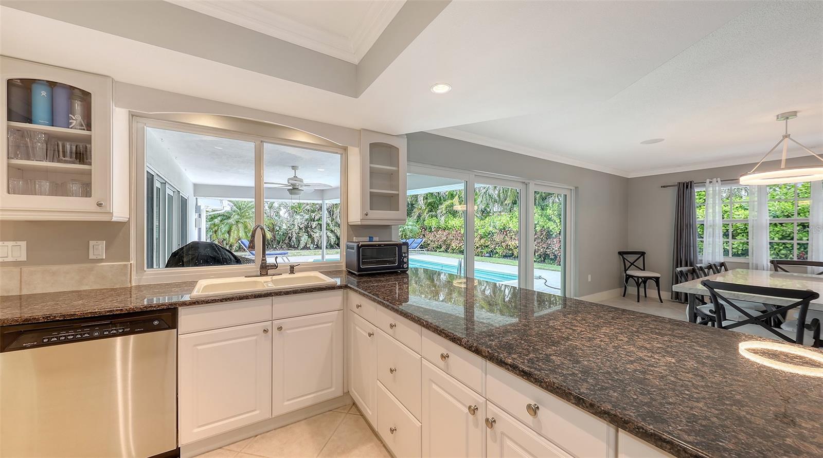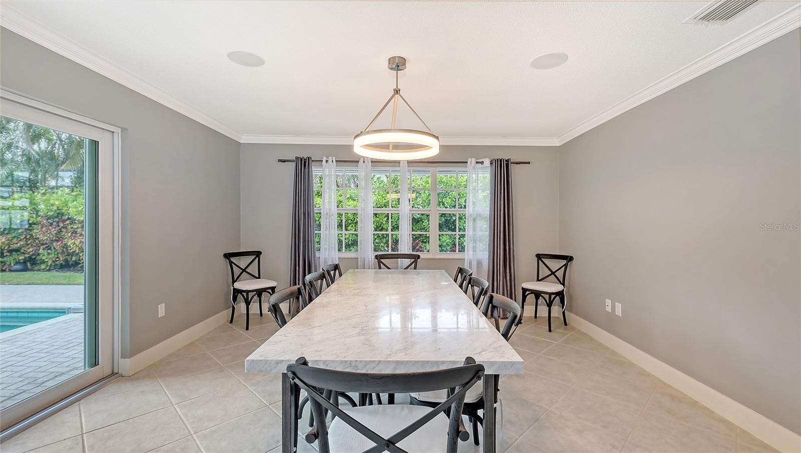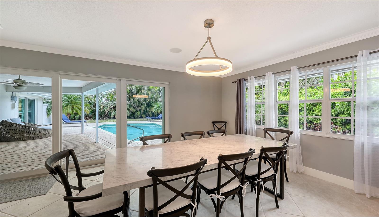 This lovely Bird Key garden home resides on a corner lot with a large circular paver driveway and beautiful landscaping that leads to the front door with the 2 car garage located on the side of the house. Inside, you will find abundant natural light with many windows and glass sliders that afford a splendid view of the large yard and pool area with a private garden wall. This three-bedroom residence has a split floor plan offering a private master suite, complete with 2 walk-in closets, an en-suite bathroom, and sliding doors to the pool deck. The two guest bedrooms and a second bathroom complete the other end of the house. A powder room and an oversized laundry room with a sink and loads of storage are a bonus not found in many garden homes. The kitchen overlooks the large backyard and pool area, with granite countertops, stainless steel appliances, and a breakfast bar overlooking the family/dining room. The house has high-impact windows & sliding doors, a heated pool, a well for irrigation, and mature lush landscaping that provide privacy and a large fenced back yard. The most recent upgrades and improvements from the interior to the exterior include re-ling the plumbing under the slab. The garage was gutted, painted and the floor epoxied. Updated interior baseboards and stunning interior lighting were installed throughout the home, giving it an updated, sleek look. This home is move-in ready. Live the comfortable Florida dream by opening large sliders to the pool area, with neutral tile throughout and a spacious flowing floorplan that makes the indoor-outdoor lifestyle easy. This residential island has its own optional Bird Key Yacht Club, tennis courts, swimming pool, fitness room, social scene, boat slips, marina, indoor and outdoor dining. These are the perfect ingredients for making this your private island retreat, complete with nearby beaches, dining, shopping, excellent schools, and the beautiful downtown area.