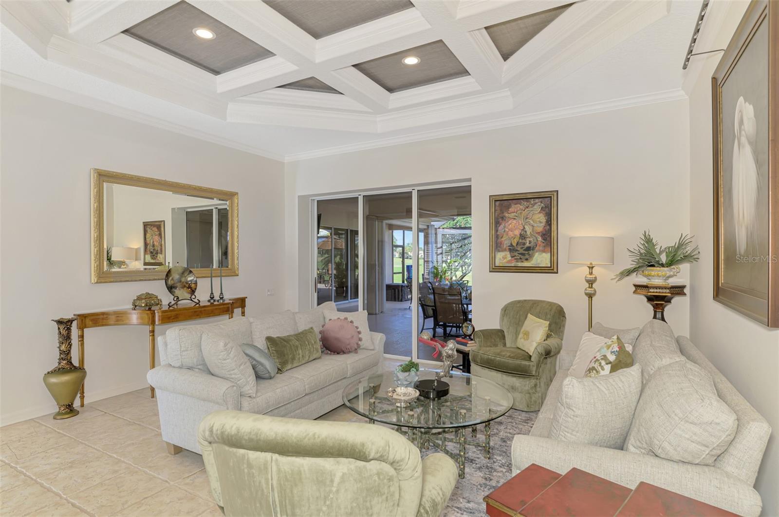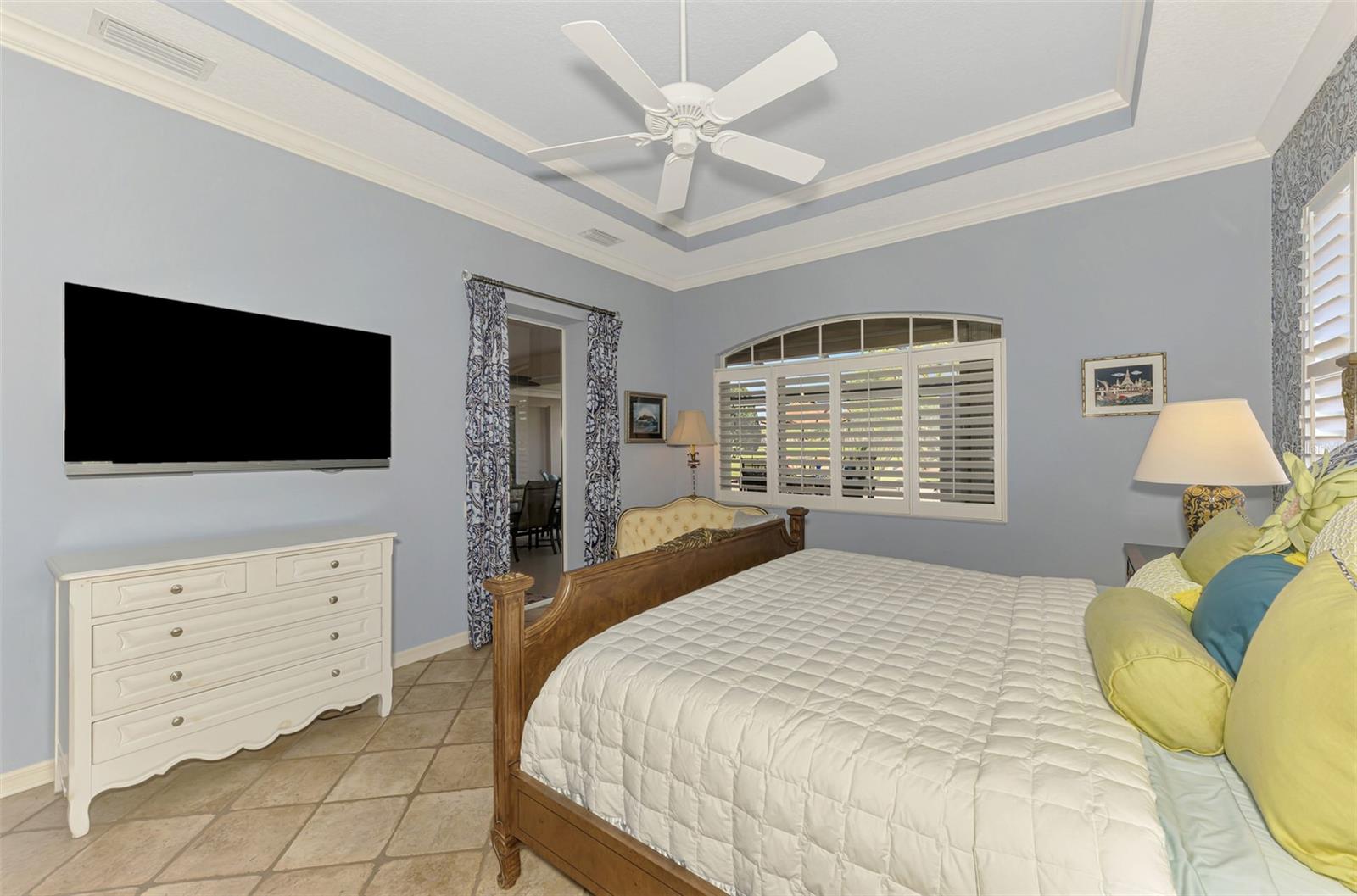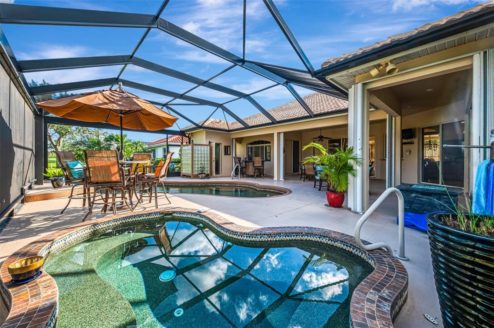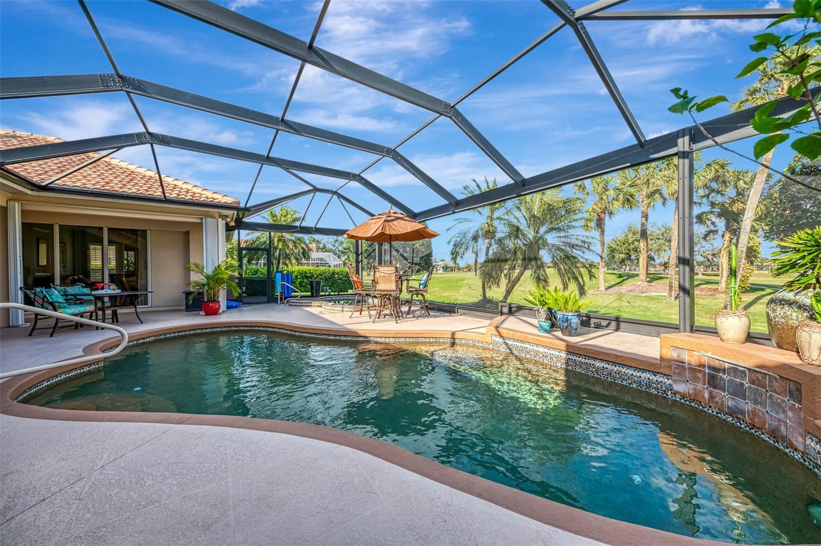 OWNER WANTS IT GONE, HUGE PRICE ADJUSTMENT! Welcome to 124 Ventana Drive located on one of the most sought out streets of VGCC. Executive home offers resort style living w/out leaving the property. You will feel as if you are in you are in your own personal mini resort w/the fabulous views and amazing lifestyle provided by this home. Special home features first class upgrades that that only a refined buyer's eye will recognize; coffered ceilings in MULTIPLE rooms, crown molding throughout, an abundance of custom wood features, a gorgeous relaxing fireplace in the family room, custom fans & lighting, natural lighting throughout this home you cannot replace. OVERSIZED GARAGE! Walking into this home you know you have entered into luxury at its finest. Views of the golf course are amazing from the foyer as you look across the oversized lanai. Property will please even the pickiest w/its robust curb appeal to the HUGE lanai that will make you feel as if you are at your own personal resort w/a separate pool & oversized hot tub! Both systems have their own heaters making them efficient accordingly! Spa is on a propane heat system & pool is on an electric system. Home is phenomenal w/plenty of room for everyone! This split floor plan provides a Primary bedroom that is extraordinary w/high end designer wallpaper & gorgeous matching drapes, recently renovated primary bath w/upgraded fixtures, walk-in shower & beautiful stand-alone hydro tub, double vanities & double walk-in closets! Primary bthrm will spoil the new owners w/an updated bright & airy space complimented w/natural lighting & elegance at its finest. Two spacious guest bdrms & nicely appointed guest bath. Separate guest quarters provides privacy on the other side of the home; the perfect layout. Well-appointed den/office is as special as the rest of the home & has been totally renovated w/custom lighting, a custom ceiling, an electric window shade for ease & custom cabinetry & desk for plenty of storage & organizing for the working person or provides a great den for personal space. The room features rich wood paneling on the walls & ceiling, enhancing its elegant appearance. Coffered ceiling w/an integrated ceiling fan adds a touch of sophistication. The kitchen is centrally located & provides a pass-through window for entertaining on the amazing lanai w/so much room & an outside kitchen area for entertaining. This home was built for entertaining & is looking forward to welcoming many years of happy memories to come w/its new owners. Invite friends & family for lunch & enjoy a round of golf or hit the Bocce courts where the action never stops! Private, member-owned country club offers an 18-hole championship golf course that is as challenging as it is beautiful. But it's not just about golf! The club also boasts top-notch Har-tru tennis courts, a State of the Art "Wellness Center" that offers equipment that can track your workout, an onsite physical therapist, an onsite massage therapist, onsite personal trainer, an Olympic Jr. sized pool & spa area. Dining options are exquisite, w/a variety of cuisines to satisfy every palate, newly expanded outside dining. Community spirit here is strong with members often gathering for social events & activities. Whether you're a golf enthusiast or someone who enjoys a leisurely lifestyle in a luxurious setting, Venice Golf & Country Club is the place to be! Location is ideal, close proximity to shopping, dining, & the beautiful beaches of Venice.