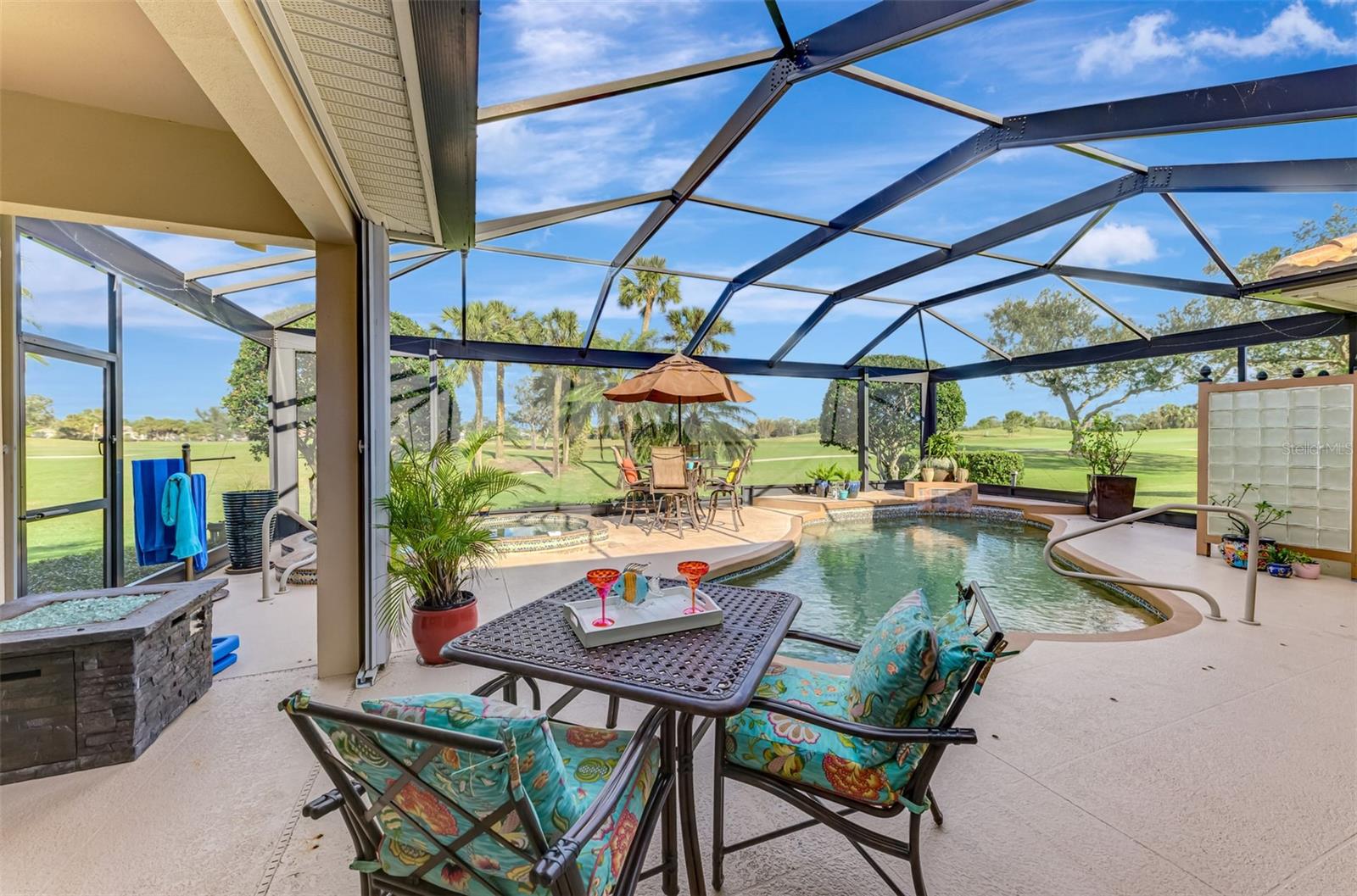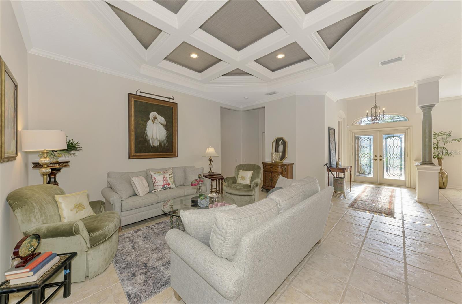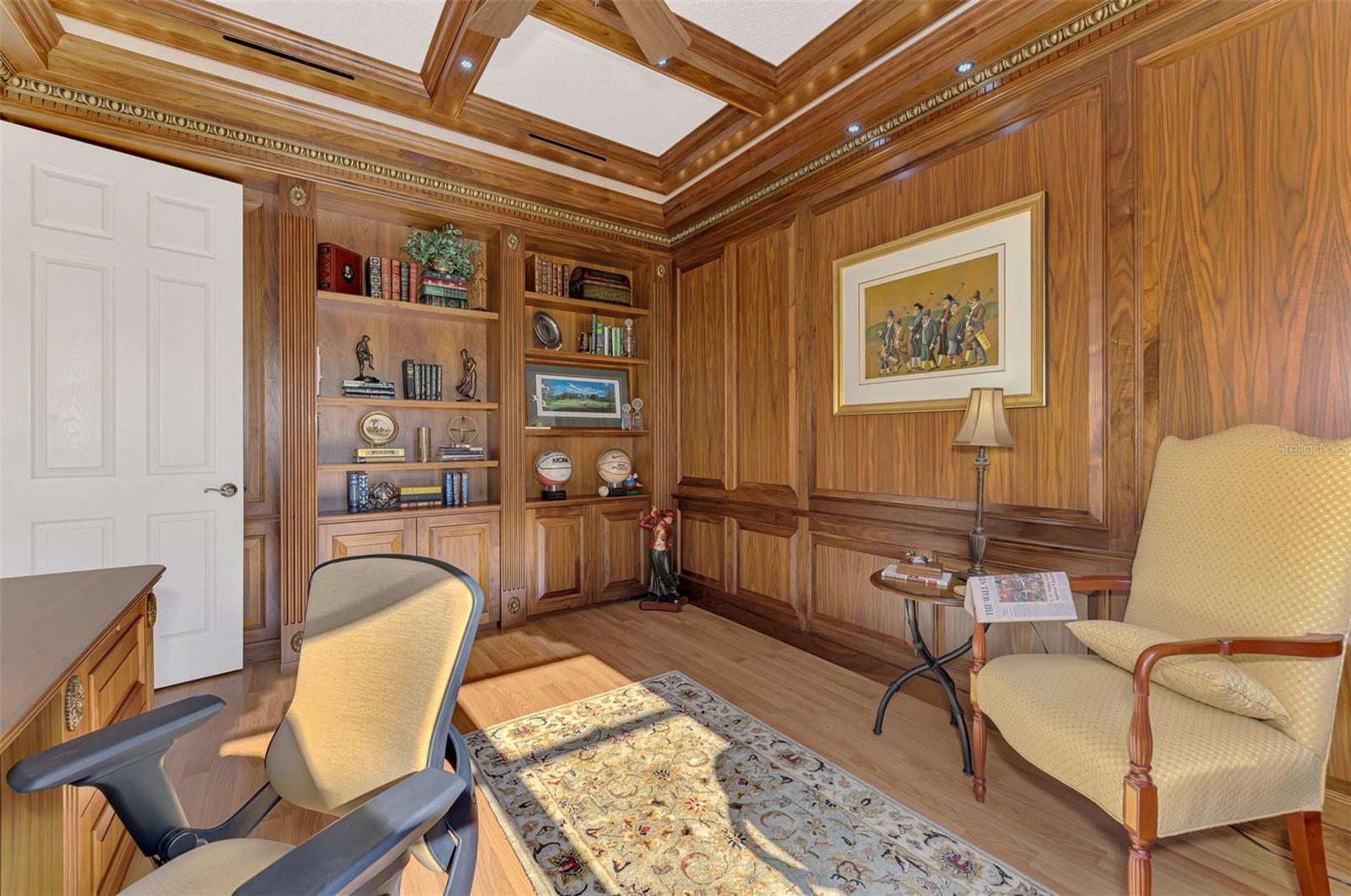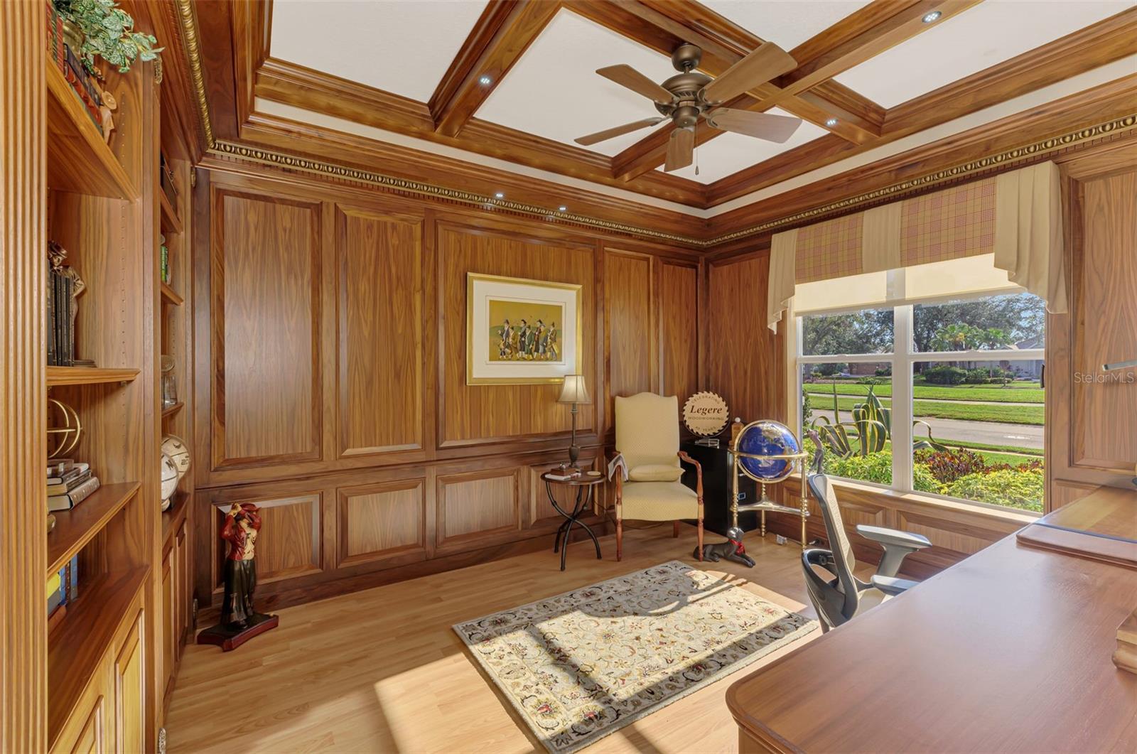 OWNER WANTS IT GONE, HUGE PRICE ADJUSTMENT! Welcome to 124 Ventana Drive located on one of the most sought out streets of VGCC. Executive home offers resort style living w/out leaving the property. You will feel as if you are in you are in your own personal mini resort w/the fabulous views and amazing lifestyle provided by this home. Special home features first class upgrades that that only a refined buyer's eye will recognize; coffered ceilings in MULTIPLE rooms, crown molding throughout, an abundance of custom wood features, a gorgeous relaxing fireplace in the family room, custom fans & lighting, natural lighting throughout this home you cannot replace. OVERSIZED GARAGE! Walking into this home you know you have entered into luxury at its finest. Views of the golf course are amazing from the foyer as you look across the oversized lanai. Property will please even the pickiest w/its robust curb appeal to the HUGE lanai that will make you feel as if you are at your own personal resort w/a separate pool & oversized hot tub! Both systems have their own heaters making them efficient accordingly! Spa is on a propane heat system & pool is on an electric system. Home is phenomenal w/plenty of room for everyone! This split floor plan provides a Primary bedroom that is extraordinary w/high end designer wallpaper & gorgeous matching drapes, recently renovated primary bath w/upgraded fixtures, walk-in shower & beautiful stand-alone hydro tub, double vanities & double walk-in closets! Primary bthrm will spoil the new owners w/an updated bright & airy space complimented w/natural lighting & elegance at its finest. Two spacious guest bdrms & nicely appointed guest bath. Separate guest quarters provides privacy on the other side of the home; the perfect layout. Well-appointed den/office is as special as the rest of the home & has been totally renovated w/custom lighting, a custom ceiling, an electric window shade for ease & custom cabinetry & desk for plenty of storage & organizing for the working person or provides a great den for personal space. The room features rich wood paneling on the walls & ceiling, enhancing its elegant appearance. Coffered ceiling w/an integrated ceiling fan adds a touch of sophistication. The kitchen is centrally located & provides a pass-through window for entertaining on the amazing lanai w/so much room & an outside kitchen area for entertaining. This home was built for entertaining & is looking forward to welcoming many years of happy memories to come w/its new owners. Invite friends & family for lunch & enjoy a round of golf or hit the Bocce courts where the action never stops! Private, member-owned country club offers an 18-hole championship golf course that is as challenging as it is beautiful. But it's not just about golf! The club also boasts top-notch Har-tru tennis courts, a State of the Art "Wellness Center" that offers equipment that can track your workout, an onsite physical therapist, an onsite massage therapist, onsite personal trainer, an Olympic Jr. sized pool & spa area. Dining options are exquisite, w/a variety of cuisines to satisfy every palate, newly expanded outside dining. Community spirit here is strong with members often gathering for social events & activities. Whether you're a golf enthusiast or someone who enjoys a leisurely lifestyle in a luxurious setting, Venice Golf & Country Club is the place to be! Location is ideal, close proximity to shopping, dining, & the beautiful beaches of Venice.