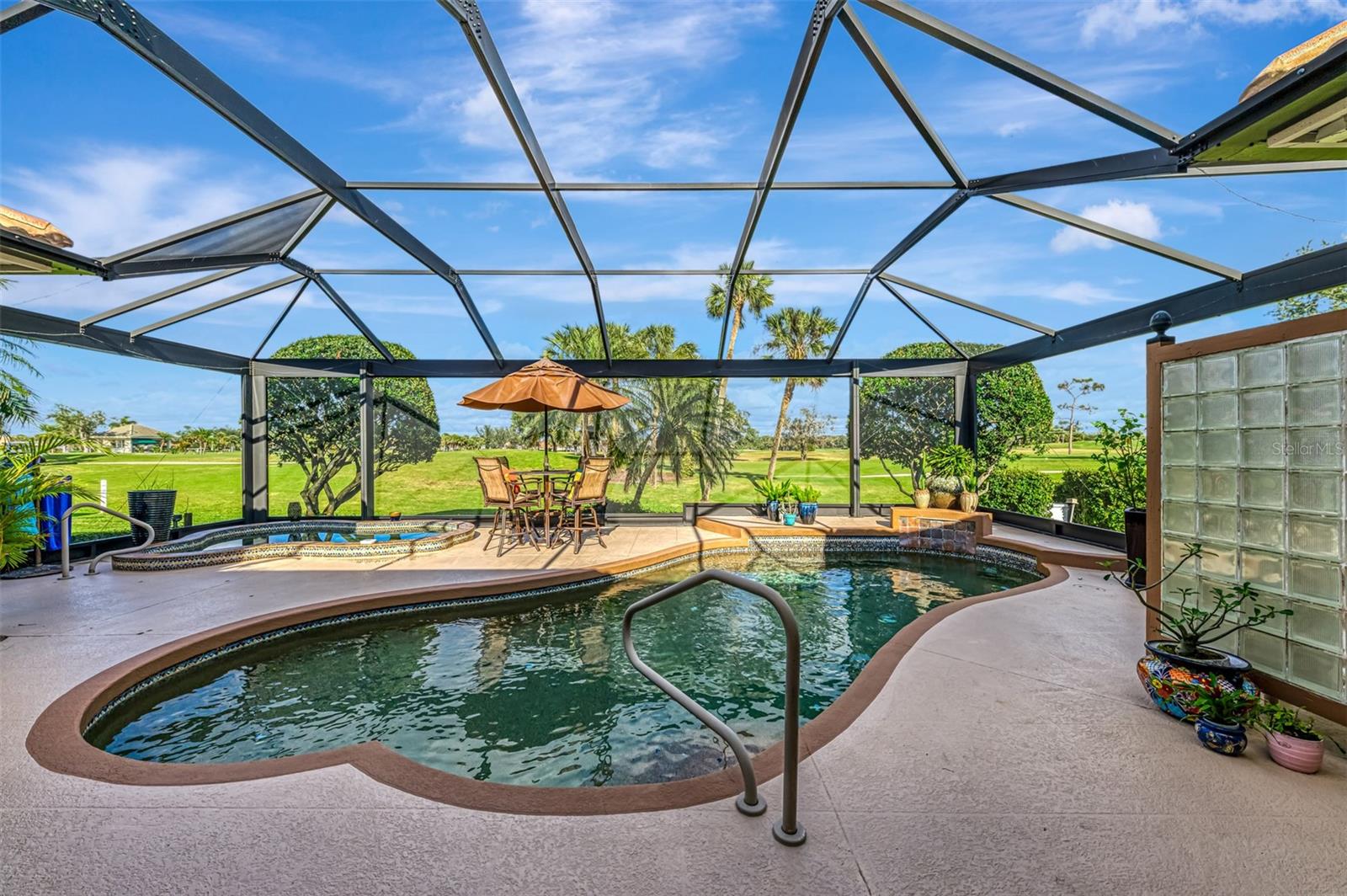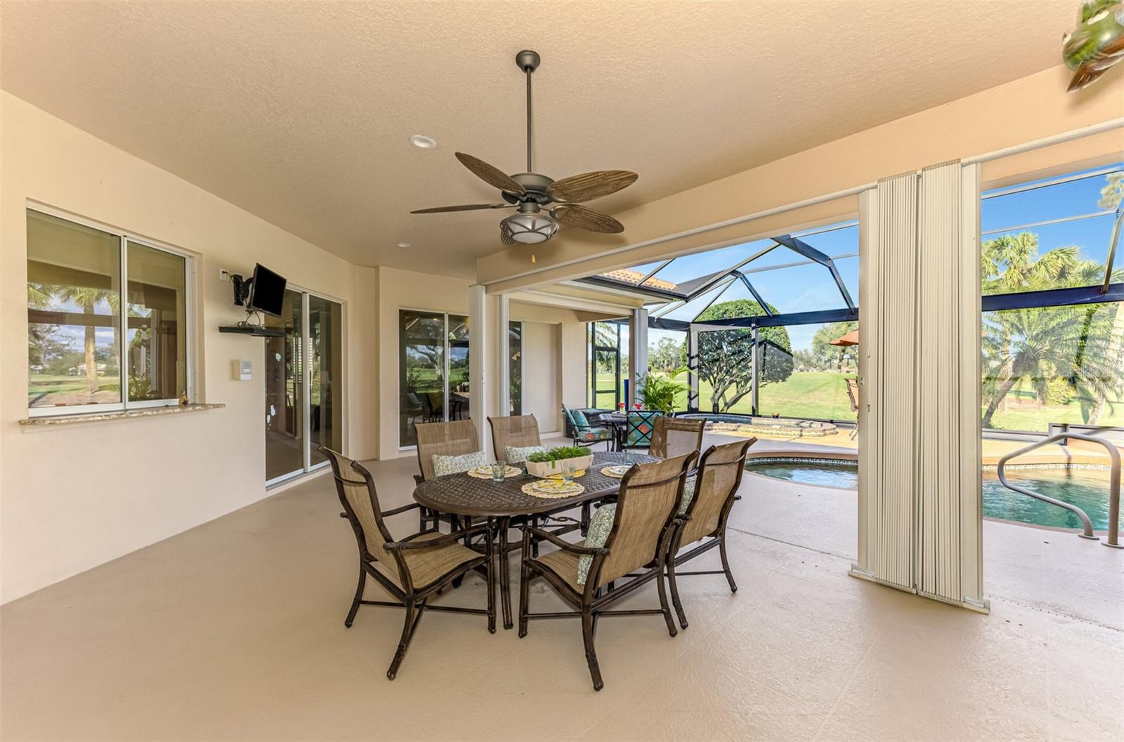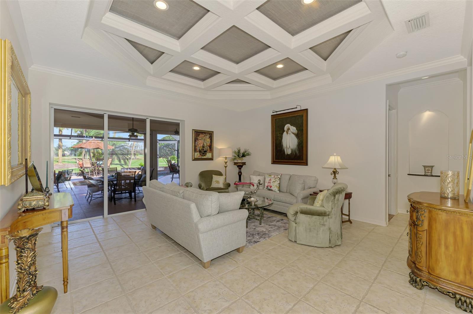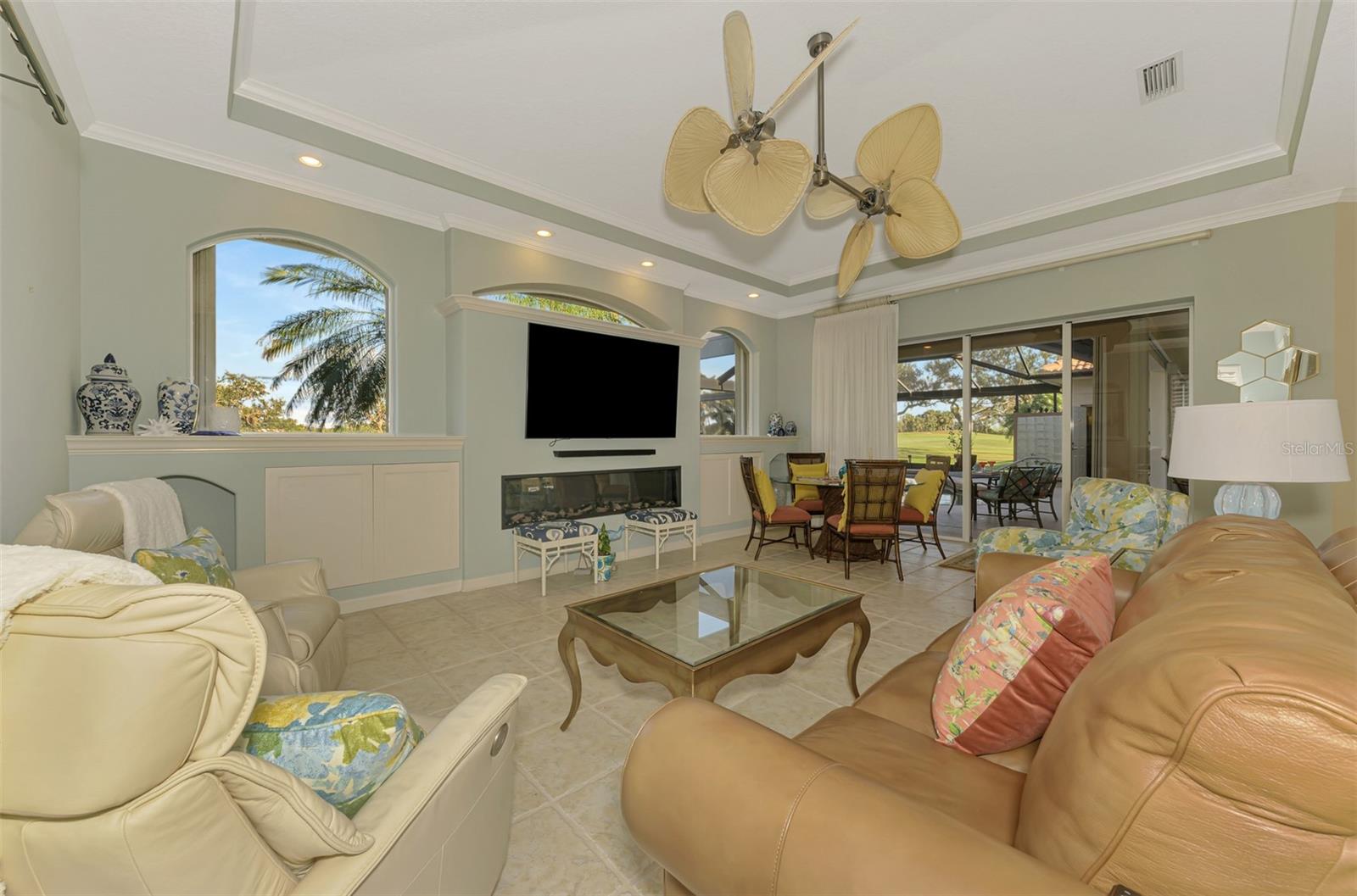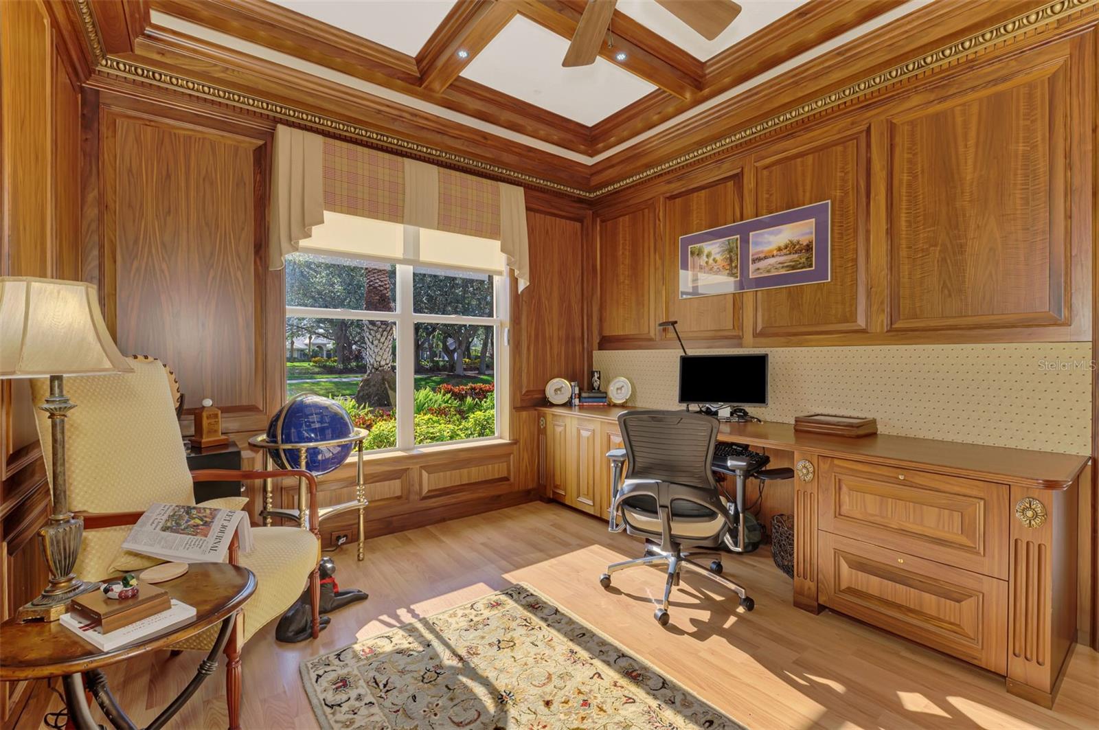 OWNER WANTS IT GONE, HUGE PRICE ADJUSTMENT! Welcome to 124 Ventana Drive located on one of the most sought out streets of VGCC. Executive home offers resort style living w/out leaving the property. You will feel as if you are in you are in your own personal mini resort w/the fabulous views and amazing lifestyle provided by this home. Special home features first class upgrades that that only a refined buyer's eye will recognize; coffered ceilings in MULTIPLE rooms, crown molding throughout, an abundance of custom wood features, a gorgeous relaxing fireplace in the family room, custom fans & lighting, natural lighting throughout this home you cannot replace. OVERSIZED GARAGE! Walking into this home you know you have entered into luxury at its finest. Views of the golf course are amazing from the foyer as you look across the oversized lanai. Property will please even the pickiest w/its robust curb appeal to the HUGE lanai that will make you feel as if you are at your own personal resort w/a separate pool & oversized hot tub! Both systems have their own heaters making them efficient accordingly! Spa is on a propane heat system & pool is on an electric system. Home is phenomenal w/plenty of room for everyone! This split floor plan provides a Primary bedroom that is extraordinary w/high end designer wallpaper & gorgeous matching drapes, recently renovated primary bath w/upgraded fixtures, walk-in shower & beautiful stand-alone hydro tub, double vanities & double walk-in closets! Primary bthrm will spoil the new owners w/an updated bright & airy space complimented w/natural lighting & elegance at its finest. Two spacious guest bdrms & nicely appointed guest bath. Separate guest quarters provides privacy on the other side of the home; the perfect layout. Well-appointed den/office is as special as the rest of the home & has been totally renovated w/custom lighting, a custom ceiling, an electric window shade for ease & custom cabinetry & desk for plenty of storage & organizing for the working person or provides a great den for personal space. The room features rich wood paneling on the walls & ceiling, enhancing its elegant appearance. Coffered ceiling w/an integrated ceiling fan adds a touch of sophistication. The kitchen is centrally located & provides a pass-through window for entertaining on the amazing lanai w/so much room & an outside kitchen area for entertaining. This home was built for entertaining & is looking forward to welcoming many years of happy memories to come w/its new owners. Invite friends & family for lunch & enjoy a round of golf or hit the Bocce courts where the action never stops! Private, member-owned country club offers an 18-hole championship golf course that is as challenging as it is beautiful. But it's not just about golf! The club also boasts top-notch Har-tru tennis courts, a State of the Art "Wellness Center" that offers equipment that can track your workout, an onsite physical therapist, an onsite massage therapist, onsite personal trainer, an Olympic Jr. sized pool & spa area. Dining options are exquisite, w/a variety of cuisines to satisfy every palate, newly expanded outside dining. Community spirit here is strong with members often gathering for social events & activities. Whether you're a golf enthusiast or someone who enjoys a leisurely lifestyle in a luxurious setting, Venice Golf & Country Club is the place to be! Location is ideal, close proximity to shopping, dining, & the beautiful beaches of Venice.