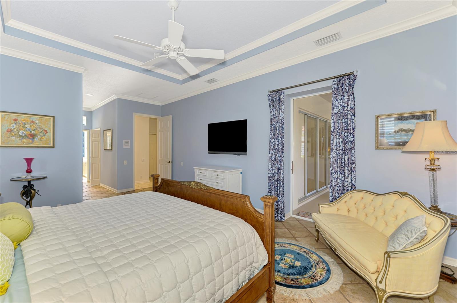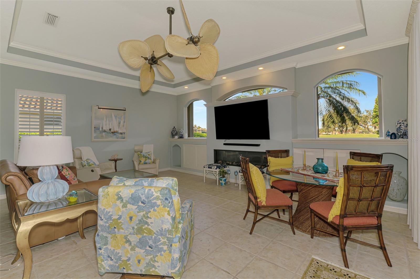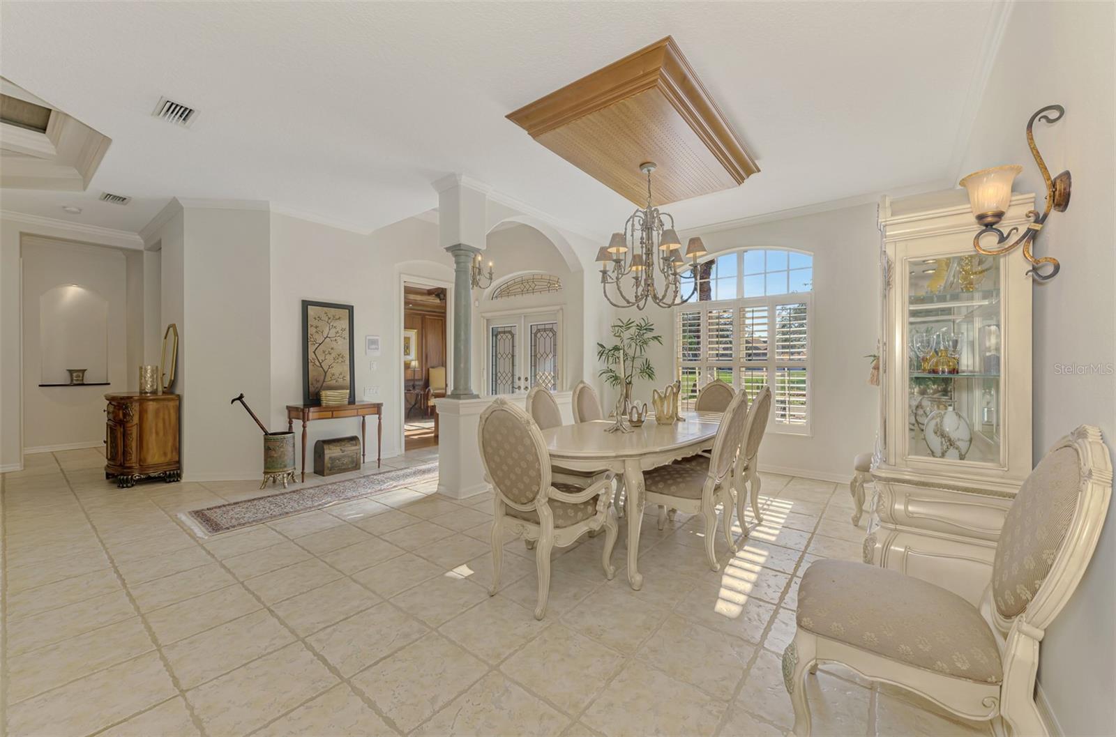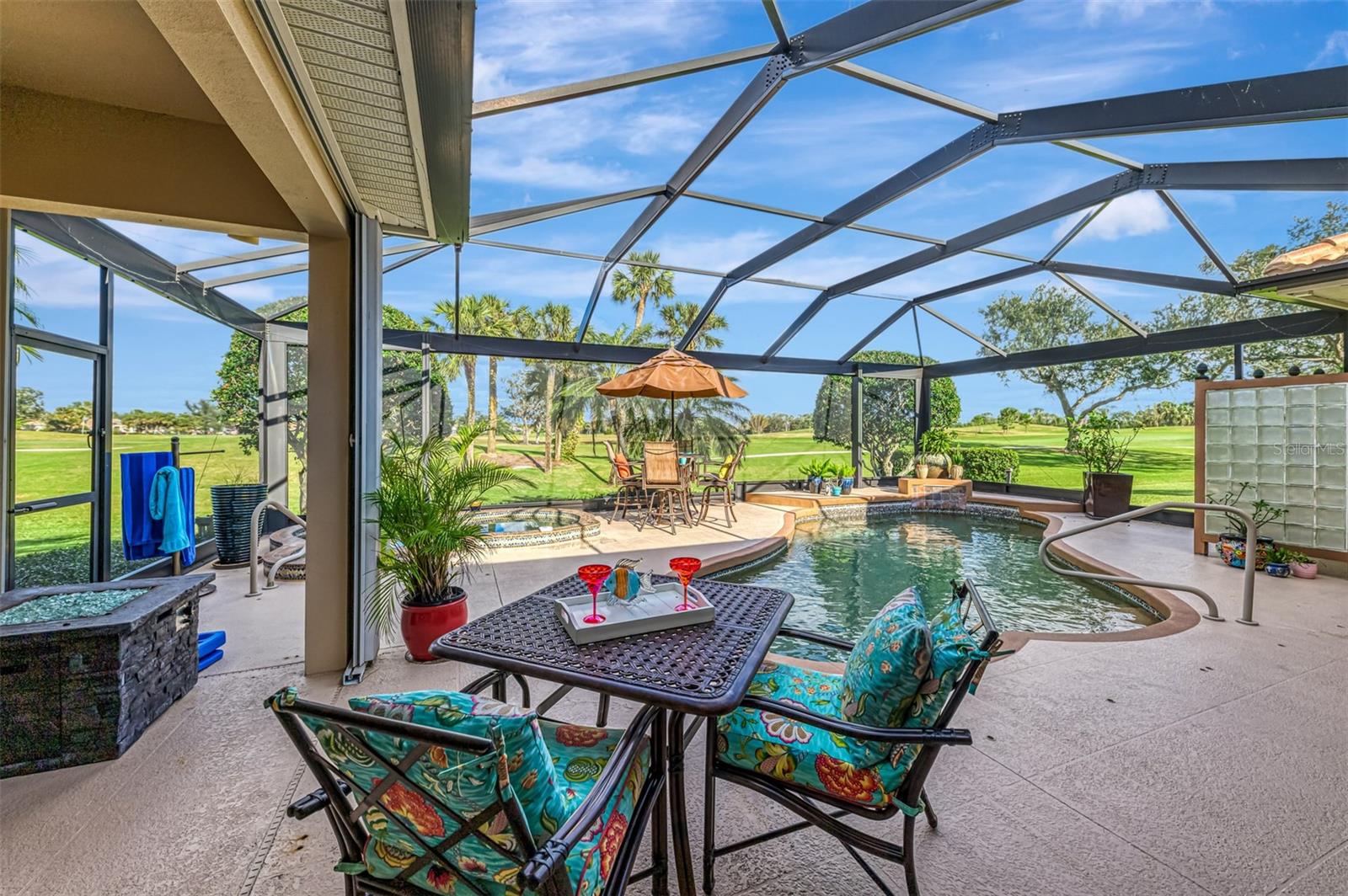 OWNER WANTS IT GONE, HUGE PRICE ADJUSTMENT! Welcome to 124 Ventana Drive located on one of the most sought out streets of VGCC. Executive home offers resort style living w/out leaving the property. You will feel as if you are in you are in your own personal mini resort w/the fabulous views and amazing lifestyle provided by this home. Special home features first class upgrades that that only a refined buyer's eye will recognize; coffered ceilings in MULTIPLE rooms, crown molding throughout, an abundance of custom wood features, a gorgeous relaxing fireplace in the family room, custom fans & lighting, natural lighting throughout this home you cannot replace. OVERSIZED GARAGE! Walking into this home you know you have entered into luxury at its finest. Views of the golf course are amazing from the foyer as you look across the oversized lanai. Property will please even the pickiest w/its robust curb appeal to the HUGE lanai that will make you feel as if you are at your own personal resort w/a separate pool & oversized hot tub! Both systems have their own heaters making them efficient accordingly! Spa is on a propane heat system & pool is on an electric system. Home is phenomenal w/plenty of room for everyone! This split floor plan provides a Primary bedroom that is extraordinary w/high end designer wallpaper & gorgeous matching drapes, recently renovated primary bath w/upgraded fixtures, walk-in shower & beautiful stand-alone hydro tub, double vanities & double walk-in closets! Primary bthrm will spoil the new owners w/an updated bright & airy space complimented w/natural lighting & elegance at its finest. Two spacious guest bdrms & nicely appointed guest bath. Separate guest quarters provides privacy on the other side of the home; the perfect layout. Well-appointed den/office is as special as the rest of the home & has been totally renovated w/custom lighting, a custom ceiling, an electric window shade for ease & custom cabinetry & desk for plenty of storage & organizing for the working person or provides a great den for personal space. The room features rich wood paneling on the walls & ceiling, enhancing its elegant appearance. Coffered ceiling w/an integrated ceiling fan adds a touch of sophistication. The kitchen is centrally located & provides a pass-through window for entertaining on the amazing lanai w/so much room & an outside kitchen area for entertaining. This home was built for entertaining & is looking forward to welcoming many years of happy memories to come w/its new owners. Invite friends & family for lunch & enjoy a round of golf or hit the Bocce courts where the action never stops! Private, member-owned country club offers an 18-hole championship golf course that is as challenging as it is beautiful. But it's not just about golf! The club also boasts top-notch Har-tru tennis courts, a State of the Art "Wellness Center" that offers equipment that can track your workout, an onsite physical therapist, an onsite massage therapist, onsite personal trainer, an Olympic Jr. sized pool & spa area. Dining options are exquisite, w/a variety of cuisines to satisfy every palate, newly expanded outside dining. Community spirit here is strong with members often gathering for social events & activities. Whether you're a golf enthusiast or someone who enjoys a leisurely lifestyle in a luxurious setting, Venice Golf & Country Club is the place to be! Location is ideal, close proximity to shopping, dining, & the beautiful beaches of Venice.