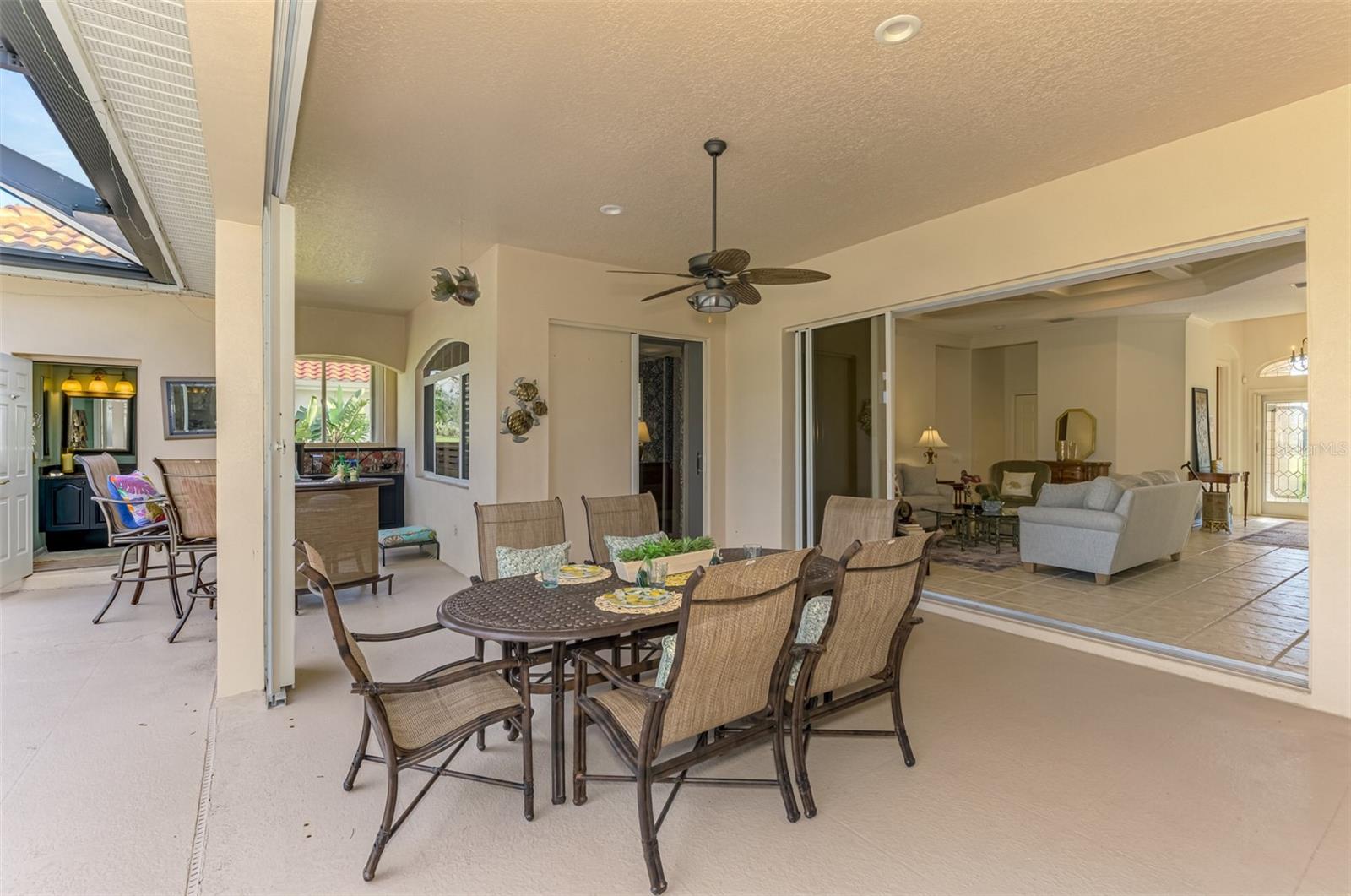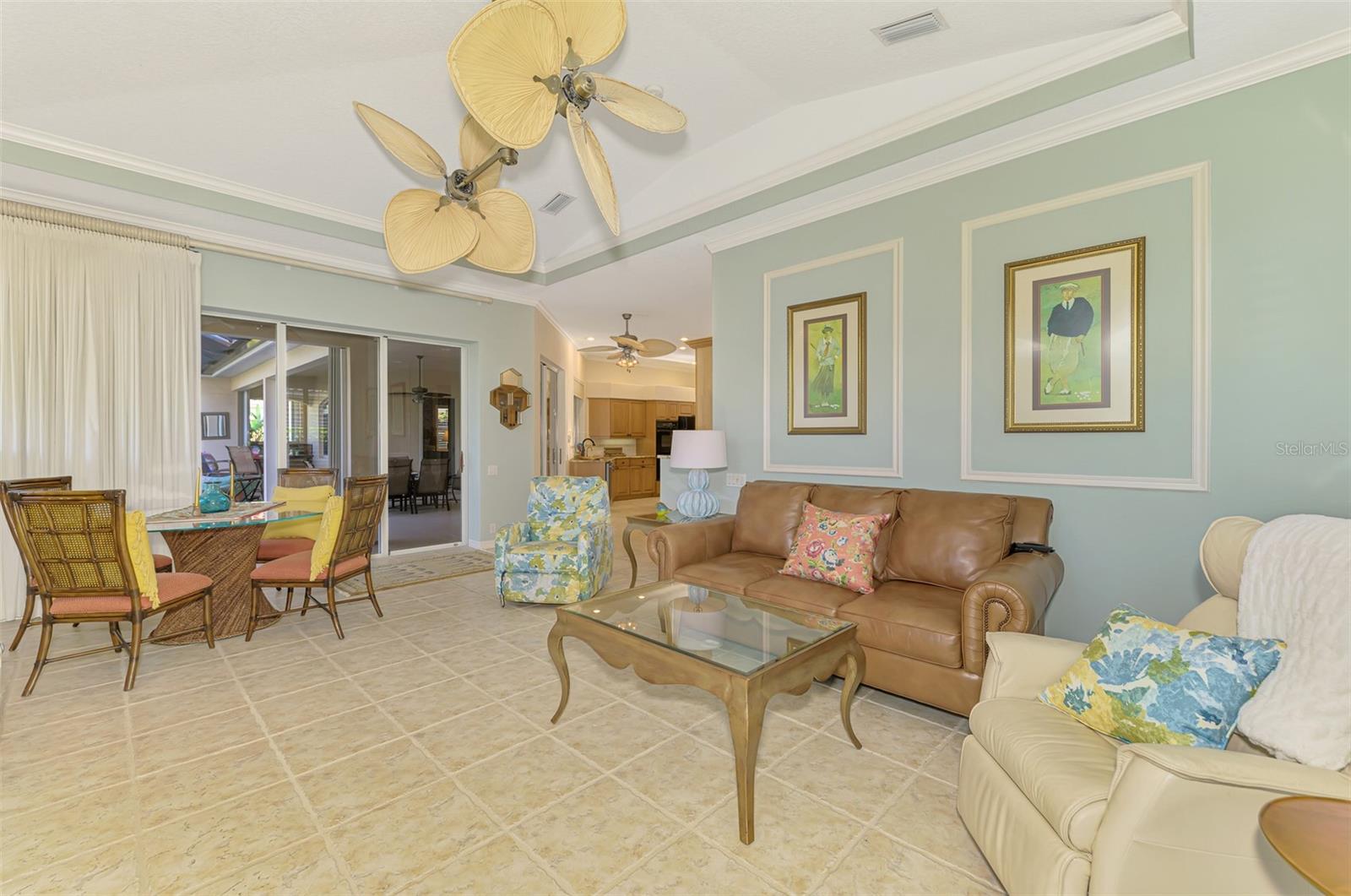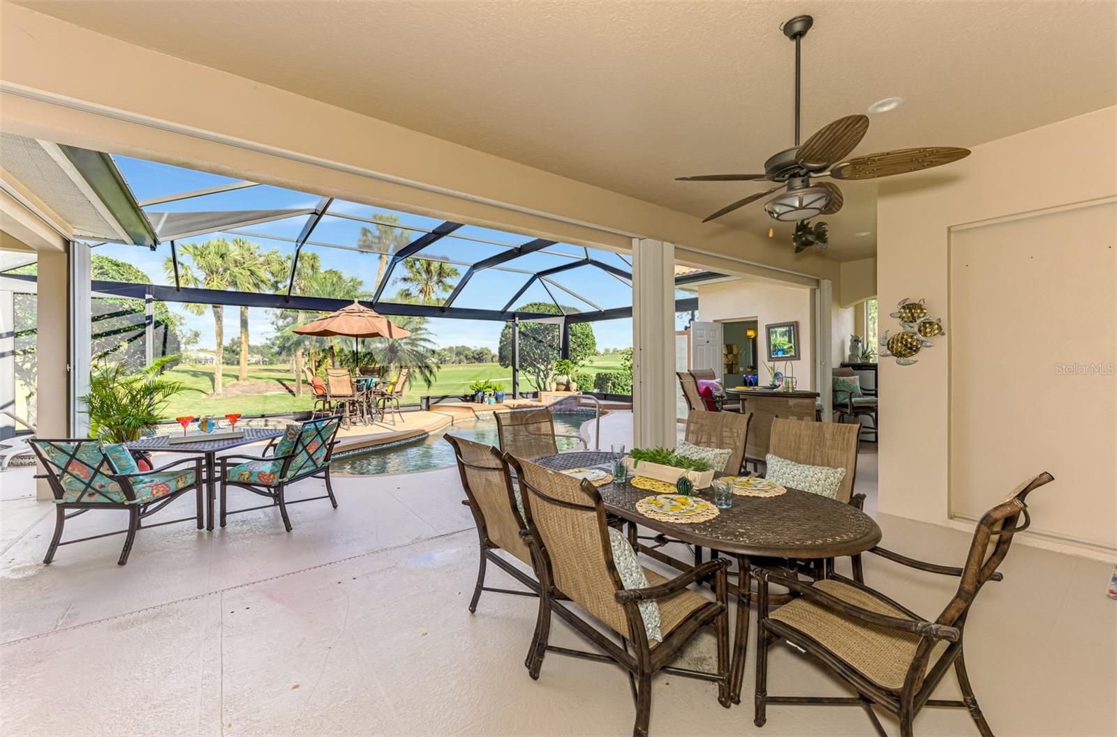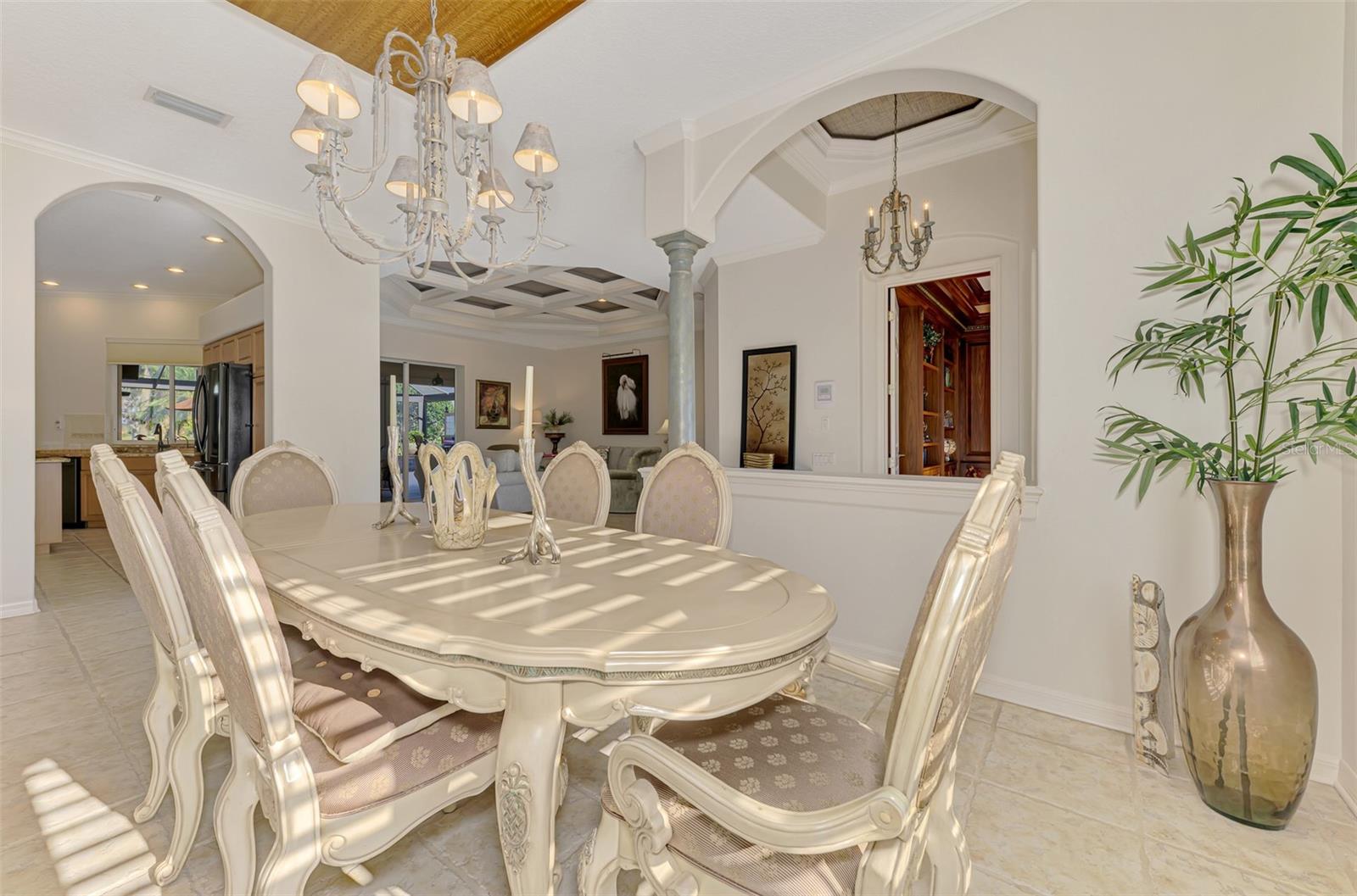 OWNER WANTS IT GONE, HUGE PRICE ADJUSTMENT! Welcome to 124 Ventana Drive located on one of the most sought out streets of VGCC. Executive home offers resort style living w/out leaving the property. You will feel as if you are in you are in your own personal mini resort w/the fabulous views and amazing lifestyle provided by this home. Special home features first class upgrades that that only a refined buyer's eye will recognize; coffered ceilings in MULTIPLE rooms, crown molding throughout, an abundance of custom wood features, a gorgeous relaxing fireplace in the family room, custom fans & lighting, natural lighting throughout this home you cannot replace. OVERSIZED GARAGE! Walking into this home you know you have entered into luxury at its finest. Views of the golf course are amazing from the foyer as you look across the oversized lanai. Property will please even the pickiest w/its robust curb appeal to the HUGE lanai that will make you feel as if you are at your own personal resort w/a separate pool & oversized hot tub! Both systems have their own heaters making them efficient accordingly! Spa is on a propane heat system & pool is on an electric system. Home is phenomenal w/plenty of room for everyone! This split floor plan provides a Primary bedroom that is extraordinary w/high end designer wallpaper & gorgeous matching drapes, recently renovated primary bath w/upgraded fixtures, walk-in shower & beautiful stand-alone hydro tub, double vanities & double walk-in closets! Primary bthrm will spoil the new owners w/an updated bright & airy space complimented w/natural lighting & elegance at its finest. Two spacious guest bdrms & nicely appointed guest bath. Separate guest quarters provides privacy on the other side of the home; the perfect layout. Well-appointed den/office is as special as the rest of the home & has been totally renovated w/custom lighting, a custom ceiling, an electric window shade for ease & custom cabinetry & desk for plenty of storage & organizing for the working person or provides a great den for personal space. The room features rich wood paneling on the walls & ceiling, enhancing its elegant appearance. Coffered ceiling w/an integrated ceiling fan adds a touch of sophistication. The kitchen is centrally located & provides a pass-through window for entertaining on the amazing lanai w/so much room & an outside kitchen area for entertaining. This home was built for entertaining & is looking forward to welcoming many years of happy memories to come w/its new owners. Invite friends & family for lunch & enjoy a round of golf or hit the Bocce courts where the action never stops! Private, member-owned country club offers an 18-hole championship golf course that is as challenging as it is beautiful. But it's not just about golf! The club also boasts top-notch Har-tru tennis courts, a State of the Art "Wellness Center" that offers equipment that can track your workout, an onsite physical therapist, an onsite massage therapist, onsite personal trainer, an Olympic Jr. sized pool & spa area. Dining options are exquisite, w/a variety of cuisines to satisfy every palate, newly expanded outside dining. Community spirit here is strong with members often gathering for social events & activities. Whether you're a golf enthusiast or someone who enjoys a leisurely lifestyle in a luxurious setting, Venice Golf & Country Club is the place to be! Location is ideal, close proximity to shopping, dining, & the beautiful beaches of Venice.
