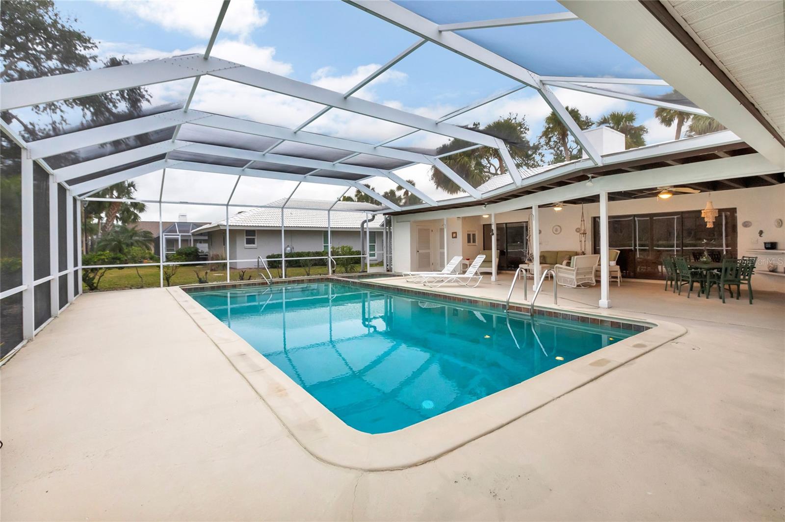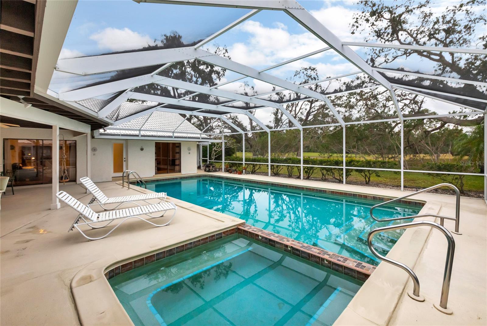 Gorgeous and expansive TPC Players Golf Course views framed by oaks provide the setting for this elegant home in one of the most established gated communities-The County Club of Sarasota. The new price reflects a "steal" in this market for a beautiful home as it is the lowest price per sq. ft. in years in CCoS! This new low price allows a new owner to make some personal changes and still be well under market value! Step inside to the warm living room with a woodburning fireplace and views out to the heated pool and golf course. The home features beautiful oak flooring, an updated custom kitchen with granite tops, custom light maple cabinetry, loads of storage, and stainless appliances. The roof was replaced in 2020, 2024 water heater, newer pool heat pump, and the home was re-piped. All four bathrooms were mostly or totally recently updated. There is a rear bedroom with an added ensuite bathroom that is perfect for an in-law suite. This exceptional home features ample room to entertain or relax with oversized rooms throughout creating an air of grandeur making this residence perfect for those who appreciate a stately living environment. There is a separate dining room, living room with vaulted ceiling, two pool baths, loads of storage, and a huge laundry room. Step out to the 50'x40' covered and screened patio and pool area and enjoy nature with views out to the TPC Prestancia Golf Course and relax in the heated swimming pool or hot tub. The Country Club of Sarasota is a 24-hour gated and staffed community and contains The Sarasota Sports Club within its gates. It has 20 Har-Tru tennis courts, 3,600s.f. fitness center, junior Olympic heated pool, meeting rooms, and more. The community is only 1 mile from the to-be-built Sarasota Square retail & restaurants, and 4.5 miles to both I-75 and to Siesta Key. Don't miss this beautiful home with plenty of space and many updates.