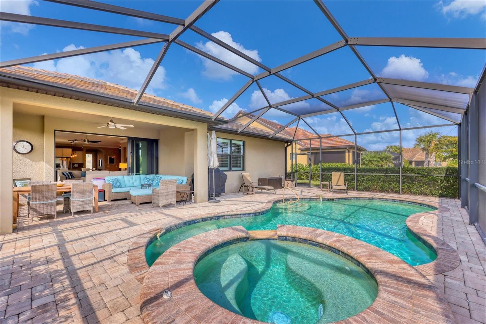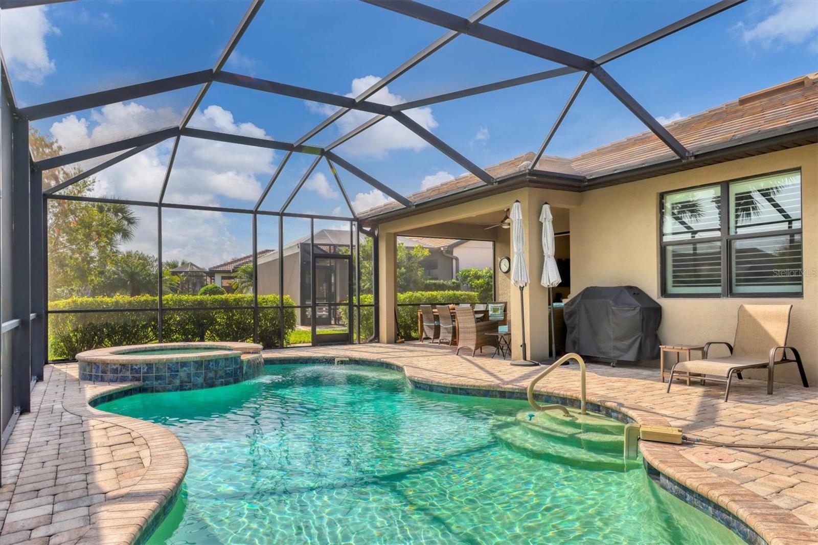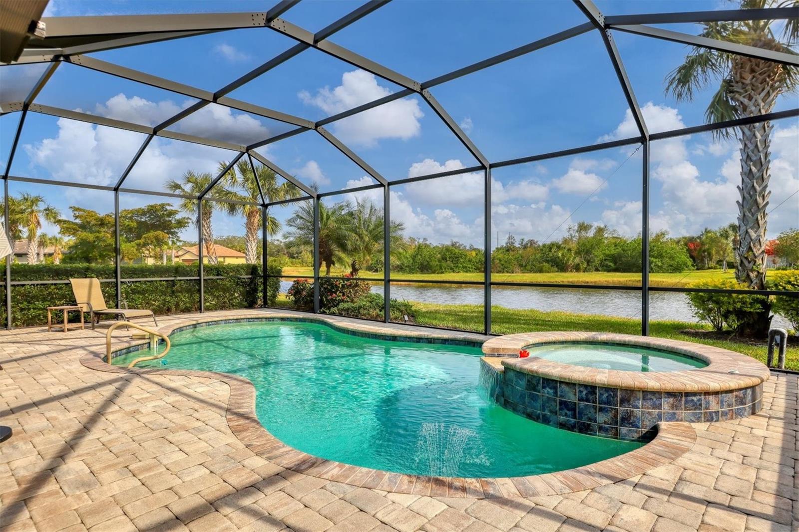 3 BED + DEN / 2 BATH POOL HOME w/STUNNING LAKE VIEW IN SANDHILL PRESERVE ON PALMER RANCH! If you have been looking for a newer pool home close to the beach in a great community with top notch amenities, you may have found your perfect match. You will LOVE the curb appeal on this 2015 quality-built DIVOSTA home. The flat TILE ROOF, BRICK PAVER DRIVE AND WALKWAY, and STONE ACCENT faade details, and mature tropical landscaping warmly greets guests as they arrive. The IMPACT GLASS WINDOWS provide additional security, peace of mind, and energy savings. Upon entering this home, the first thing you notice is the OPEN CONCEPT design that blends the kitchen dining, and great room areas in a way that makes both entertaining and everyday living a dream. The LARGE GREAT ROOM has POCKETING SLIDERS that open all the way and connect the COVERED LANAI where family and friends can relax in the shade and enjoy lunch overlooking the LAKE TO PRESERVE VIEW to the rear of the home. The HEATED POOL/SPA features PEBBLETEC finish and brick pavers and a pool deck which extends the full length across the back of the home providing additional space. Back inside you will gravitate to the kitchen with its LUXURIOUS OVERSIZED CENTER ISLAND featuring GRANITE COUNTERTOPS, solid WOOD CABINETRY, and modern STAINLESS STEEL APPLIANCES including GAS COOKTOP. Add the separate BUTLER'S PANTRY complete with BEVERAGE FRIDGE along with a HUGE WALK-IN PANTRY and you have a kitchen that is hard to beat. The 15' x 15' PRIMARY SUITE will impress you with its LARGE WALK-IN CLOSET w/BUILT-INS so you can stay organized. The primary bath has a large vanity with his and hers sinks along with a LARGE ROMAN WALK-IN SHOWER that will make your morning routine a pleasure. The SPLIT FLOOR PLAN places bedrooms and 2 and 3 far away from the primary bedroom providing great privacy. The DEN/OFFICE area is near the front entrance, has privacy doors and could easily serve as a 4th bedroom if needed. SANDHILL PRESERVE in PALMER RANCH is warm and friendly neighborhood featuring a GRAND CLUBHOUSE where residents of ALL AGES enjoy a YEARLY SOCIAL CALENDAR OF EVENTS, FITNESS CENTER, RESORT STYLE POOL, TENNIS/PICKLEBALL COURTS, and GATED ENTRY. Super low HOA FEE OF JUST $433/MO INCL YARD CARE and there are NO CDD FEES. Close to Siesta Key, Historic Island of Venice, Downtown Sarasota, Legacy Bike Trail, A RATED SCHOOLS including nationally ranked PINEVIEW, as well as a brand-new Publix grocery store. This home is an ABSOLUTE MUST SEE!