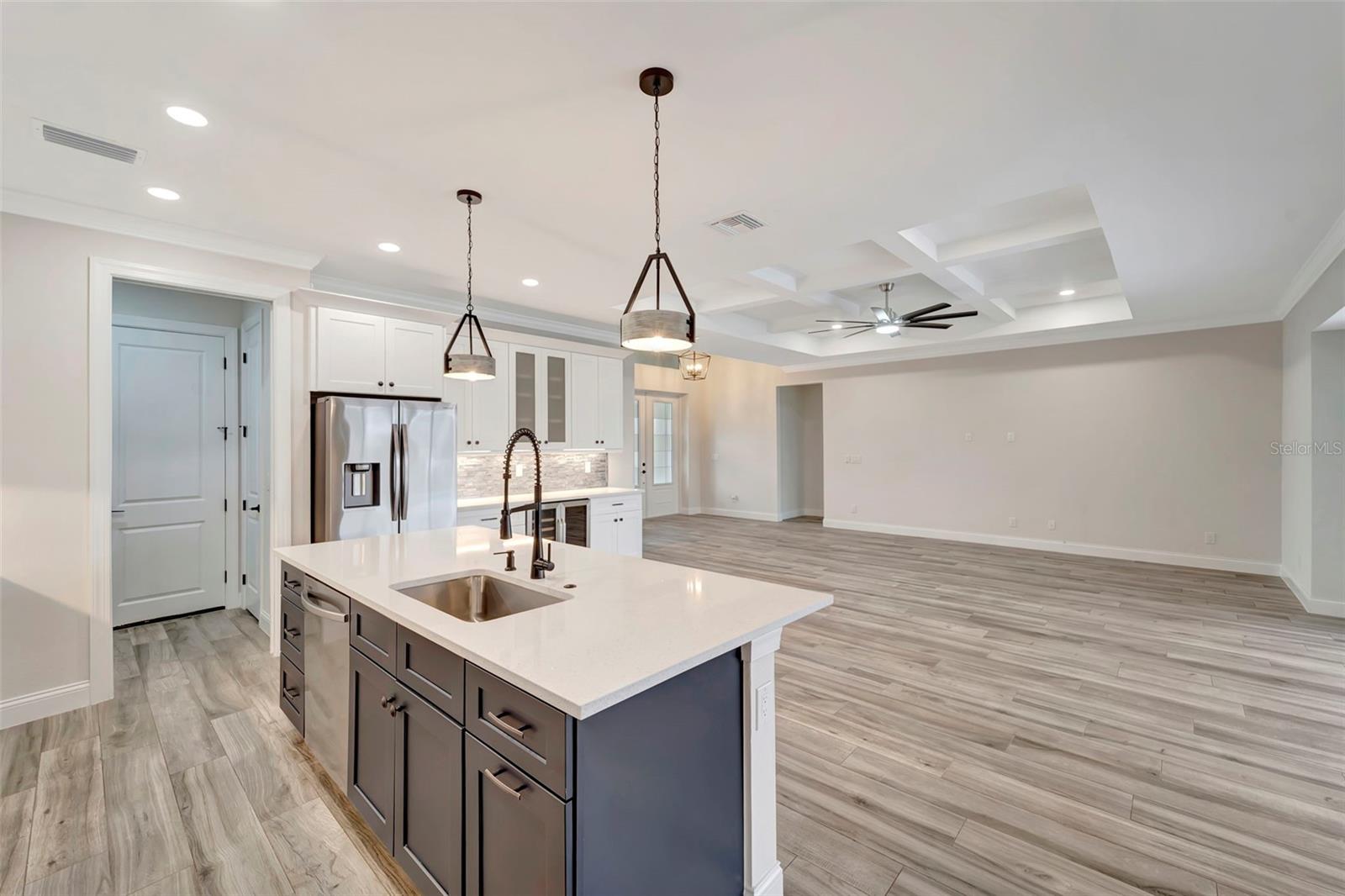- Appliances: Bar Fridge, Built-In Oven, Convection Oven, Cooktop, Dishwasher, Disposal, Electric Water Heater, Exhaust Fan, Ice Maker, Microwave, Range Hood, Refrigerator, Wine Refrigerator