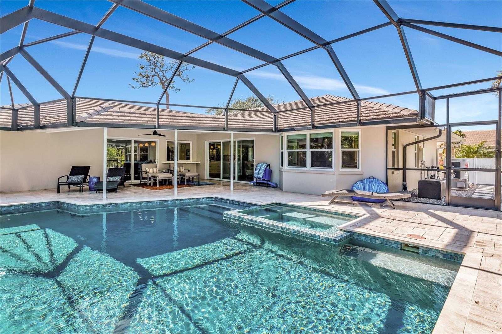 A Southbay Yacht & Racquet Club beauty! This home has been given meticulous care and offers an abundance of updates and upgrades. Popular Southbay community features a boating marina on the Inter coastal Waterway, making this one of the most sought after locations west of the trail! This airy and open floorplan is sure to please! There are so many delightful updates and improvements, I'll try to list them all...here goes! HURRICANE IMPACT WINDOWS, FRONT ENTRY DOOR WITH SIDE GLASS PANELS, SLIDIN GLASS DOORS AND GARAGE DOOR INCLUDING INTERIOR DOOR LEADING TO THE GARAGE AND THE SIDE DOOR LEADING OUT! THE SPACIOUS GREATROOM OPENS TO UPDATED KITCHEN WITH QUARTZ COUNTERTOPS AND OVERSIZED QUARTZ PENINSULA * INDUCTION COOKTOP * RANGEHOOD* CUSTOM BACSPLASH * BUILT-IN STAINLESS STEEL OVEN, MICROWAVE AND WARMING DRAWER * S/S REFRIGERATOR * NEW S/S DISHWASHER IN 2022 * NEW DUAL ZONE WINE REFRIG IN 2022 * KITCHEN SINK EQUIPPED WITH PENTAIR EVERPURE WATER FILTRATION SYSTEM. UPDATED BATHROOMS WITH NEW SINKS, FAUCETS, VANITIES, TOILETS AND MIRRORS * MASTER BATH WITH OVERSIZED SHOWER WITH CUSTOM TILING AND FRAMELESS SHOWER DOOR * GUEST BATHROOM WITH NEW FRAMELESS SHOWER DOOR AND NEW BUILT IN LINEN CABINET * CUSTOM HUNTER DOUGLAS WINDOW TREAMENTS THROUGHT THE HOME WITH ROOM DARKENING SHADES IN THE PRIMARY BEDROOM * MOTORIZED SHADES IN THE GREATROOM * NEW MINKA AIRE REMOTE CONTROLLED CEILING FAN IN THE PRIMAY BEDROOM * NEW CUSTOM CLOSET SYSTEMS * ALL SOLID CORE BEDROOM AND CLOSET DOORS * NEW A/C UNIT IN 2022 WITH ALL AIR VENTS SANITIZED AND ALL NEW VENT REGISTERS INSTALLED * ROOF WAS INSTALLED IN 2005 SO THE SELLER JUST HAD THE ROOF HIPS AND RIDGES REINFORCED WITH TILE ROOF MORTAR IN DECEMBER 2024 WITH A ONE YEAR WOKMANSHIP WARRANTY * NEW ELECTRICAL PANEL INSTALLED 2021 * THE HOME WAS REPLUMBED AND WATER HEATER REPLACED IN 2012 * THE OVERSIZED POOL WAS INSTALLED IN 2021 * CUSTOM HEATED SALT WATER POOL HAS GLASS TILES WITH CASCADING WATER FEATURE AND OVERSIZED SPILL OVER SPA WITH TURBO JETS, REMOTE CONTROLLED HAYWARD POOL EQUIPMENT * TRAVERTINE TILE LANAI FLOOR * POOL CAGE WITH OVERSIZED GUTTERS AND DOWNSPOUT * FRESHLY PAINTED AND NEW MINKA REMOTE CONTROLLED CEIING FAN * PRIVACY LANDSCAPING AND LANDSCAPING STONE, PAVERS AND ACHITECTURAL ROCKS. EPOXY/POLYASPATIC GARAGE FLOOR * BLOWN IN R-38 INSULATION IN HOUSE AND GARAGE ATTIC * 5" SEAMLESS GUTTERS WITH FRENCH DRAINS * NEW LED CEILING LIGHTS WITH DIMMER SWITCHES * STYLISH PORCELAIN TILE THROUGHOUT. Wow! That is a lot of updates making this home ready to move right into and start enjoying the Florida lifestyle and all that Southbay has to offer. Community features include tennis and pickleball courts, clubhouse with fitness center, card room, ballroom, community pool and marina, playground, bocce ball courts, kayak launch. Boat slips and PWC slips are available for residents only with a low lease fee making Southbay a very desirable boating community. No boat - no problem! Southbay is a very active community with many clubs and social events for all ages. Conveniently located between Sarasota and Venice with shopping, dining, beaches and more, close a hand.