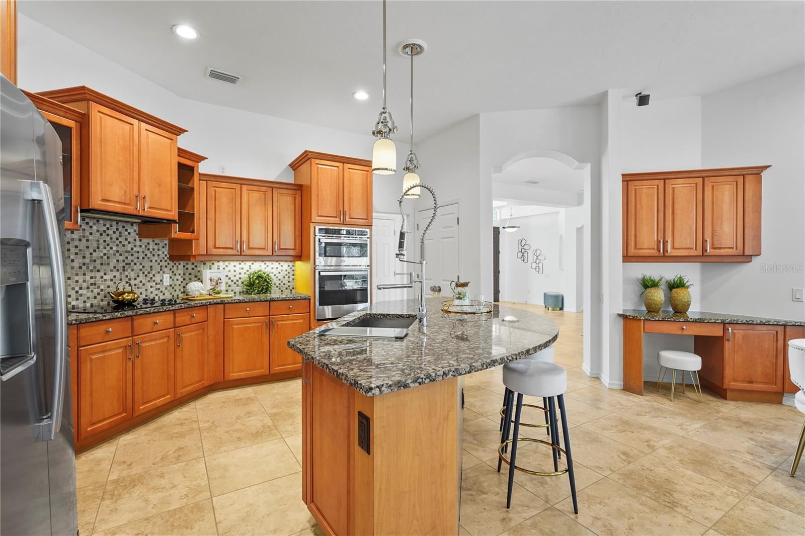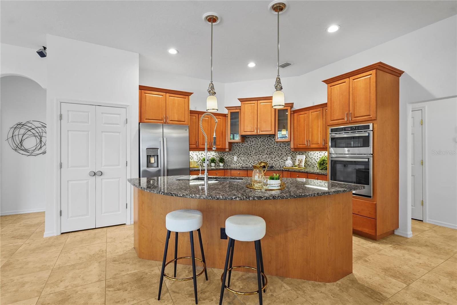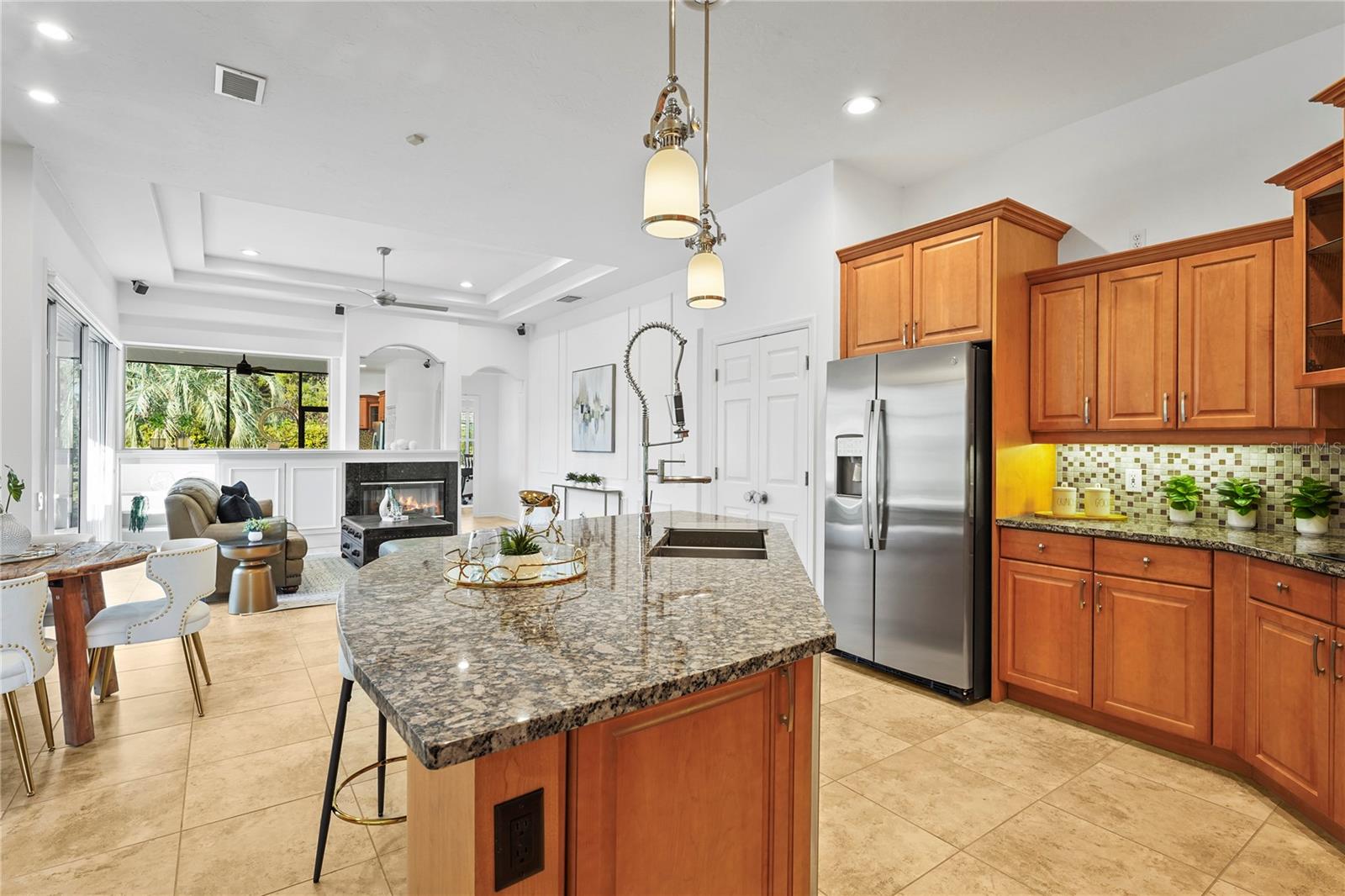Welcome to Lakewood Ranch Country Club! This beautiful Todd Johnston Phoenix custom pool home on a cul-de-sac has a brand-new roof! Step inside through elegant, solid wood double doors where the luxurious primary suite includes direct access to the pool, his-and-hers walk-in closets, and a spa-like bathroom with a double vanity, soaking tub, and large shower. This home has a total of 3 bedrooms and den and 3.5 bathrooms with contemporary European faucets and shower fixtures! The upgraded kitchen features stainless steel appliances, including a new refrigerator, oven, dishwasher and granite countertops. A versatile flex room opens to a large screened lanai with a Pebble Tec saltwater pool and spa with a paver pool deck. Nestled on a landscaped lot, this property also boasts a paver driveway leading to a spacious 3-car garage with epoxy flooring, built-ins and shelving. Don't miss this rare opportunity to own a home that truly has it all - schedule your private tour today!