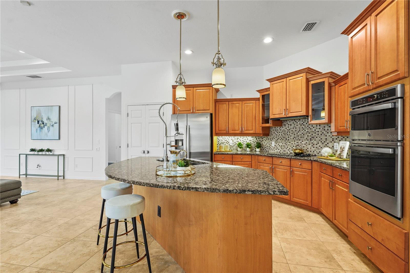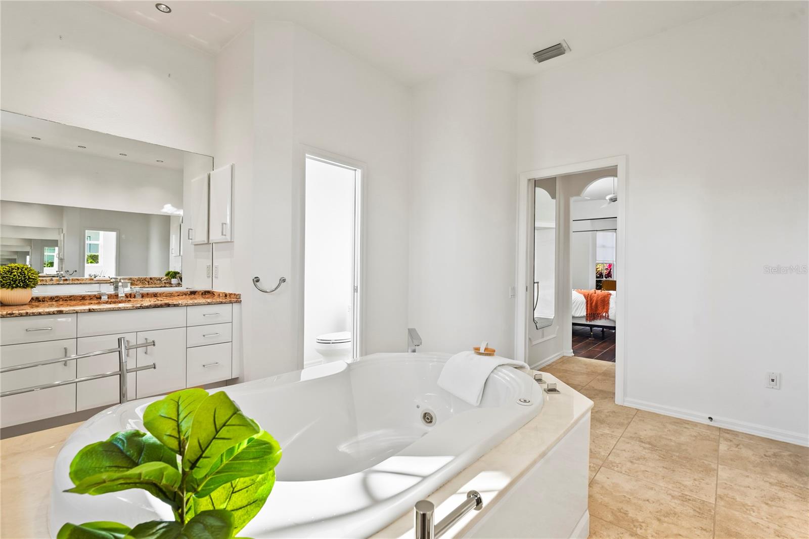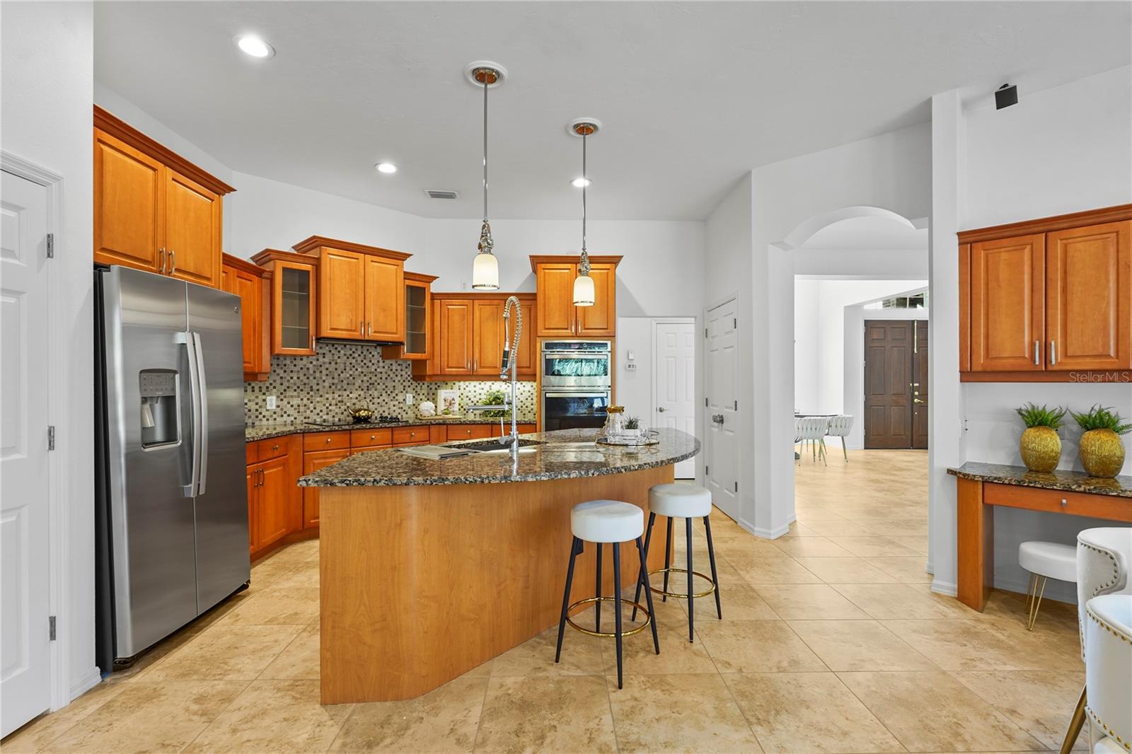 Welcome to Lakewood Ranch Country Club! This beautiful Todd Johnston Phoenix custom pool home on a cul-de-sac has a brand-new roof! Step inside through elegant, solid wood double doors where the luxurious primary suite includes direct access to the pool, his-and-hers walk-in closets, and a spa-like bathroom with a double vanity, soaking tub, and large shower. This home has a total of 3 bedrooms and den and 3.5 bathrooms with contemporary European faucets and shower fixtures! The upgraded kitchen features stainless steel appliances, including a new refrigerator, oven, dishwasher and granite countertops. A versatile flex room opens to a large screened lanai with a Pebble Tec saltwater pool and spa with a paver pool deck. Nestled on a landscaped lot, this property also boasts a paver driveway leading to a spacious 3-car garage with epoxy flooring, built-ins and shelving. Don't miss this rare opportunity to own a home that truly has it all - schedule your private tour today!