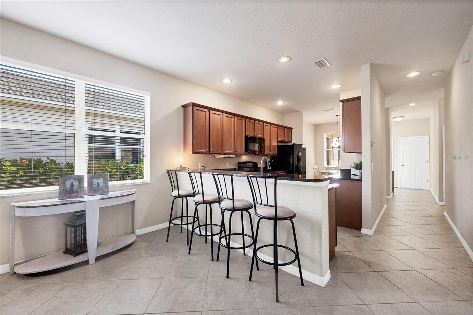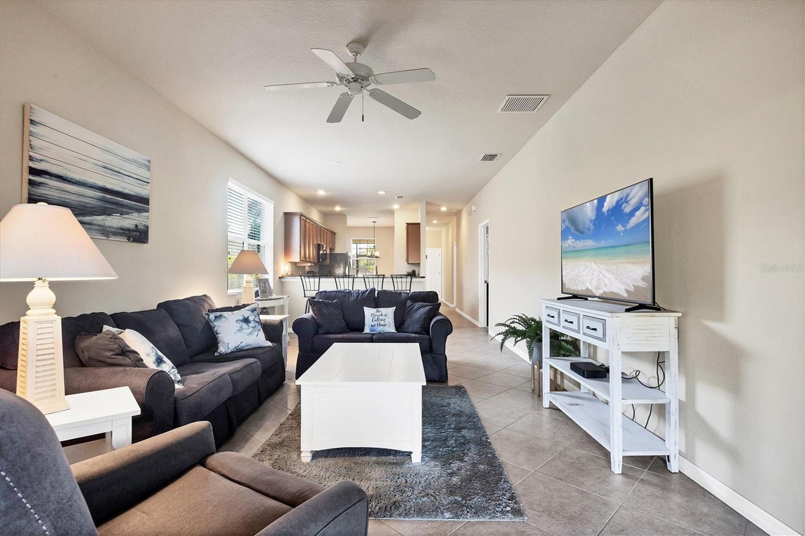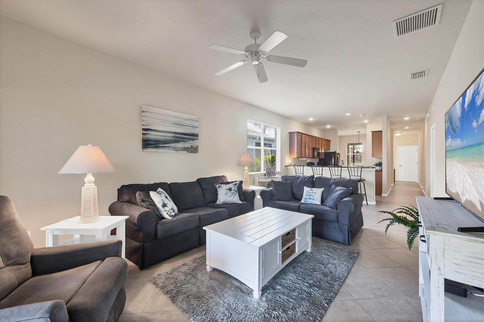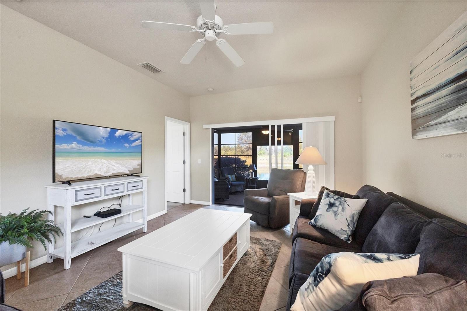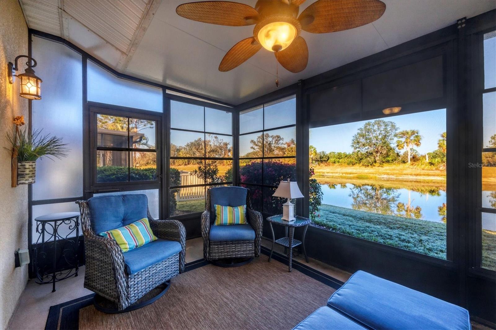 Move-in ready, water lot, 2-car garage, and turn-key furnished with a NEW ROOF in beautiful Stoneybrook at Venice. Owners have only occupied the home 5 months/year for the last 10 years! Beautiful landscaping leads to a screened entry and glass front door. It's sited on an ideal water lot, has a wonderful open floor plan, and it is a short walk to ALL the amenities Stoneybrook at Venice offers. Upon entering, your eyes are drawn to the fabulous water view in the back of the home! The dcor is neutral, there is an abundance of natural light, and the lanai/Florida room is spacious, comfortable, and a perfect spot to share a cocktail and enjoy the wildlife and view! The flooring throughout the common areas is done in a neutral ceramic tile, set on the diagonal, and the bedrooms are covered in a beige carpet. The kitchen is spacious and offers a separate, eat-in breakfast nook with a window, a nice pantry, and a breakfast bar. The cabinets are a warm, medium brown finish with slide-out drawers and the granite countertops compliment the tile flooring. The primary suite is spacious with a double window, a ceiling fan, and a beautiful water view. The en suite bath has a double vanity, granite counters, a large walk-in closet, ceiling fan, and a separate tiled shower. Two additional bedrooms with ceiling fans and roomy closets that share a second bath are perfect for guests and/or offices. Stoneybrook offers a fabulous, active clubhouse for both adult and family functions -- cards, meetings, library, parties, coffee, music, barbecues, holiday entertainment, etc. There's also a kitchen, media room, spa, pool, pool music, splash fountain, fitness center, tennis, pickleball, volleyball, basketball AND . . . just steps away! Additionally, Stoneybrook at Venice is conveniently located close to several beaches and historic, downtown Venice.