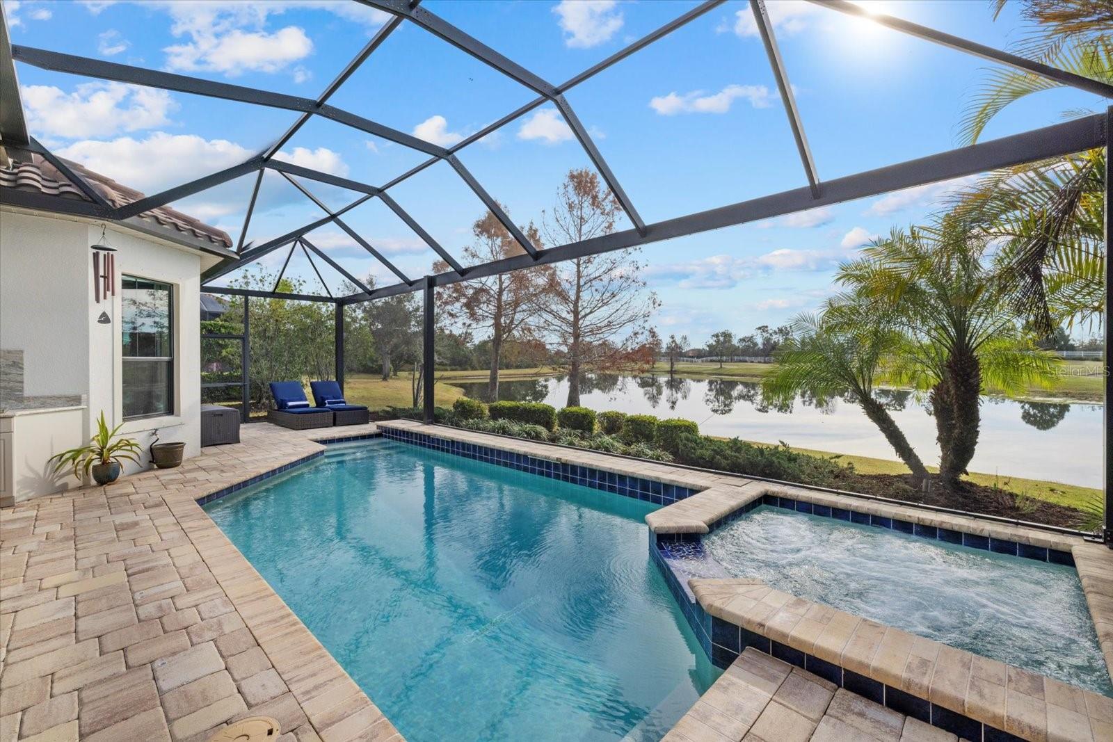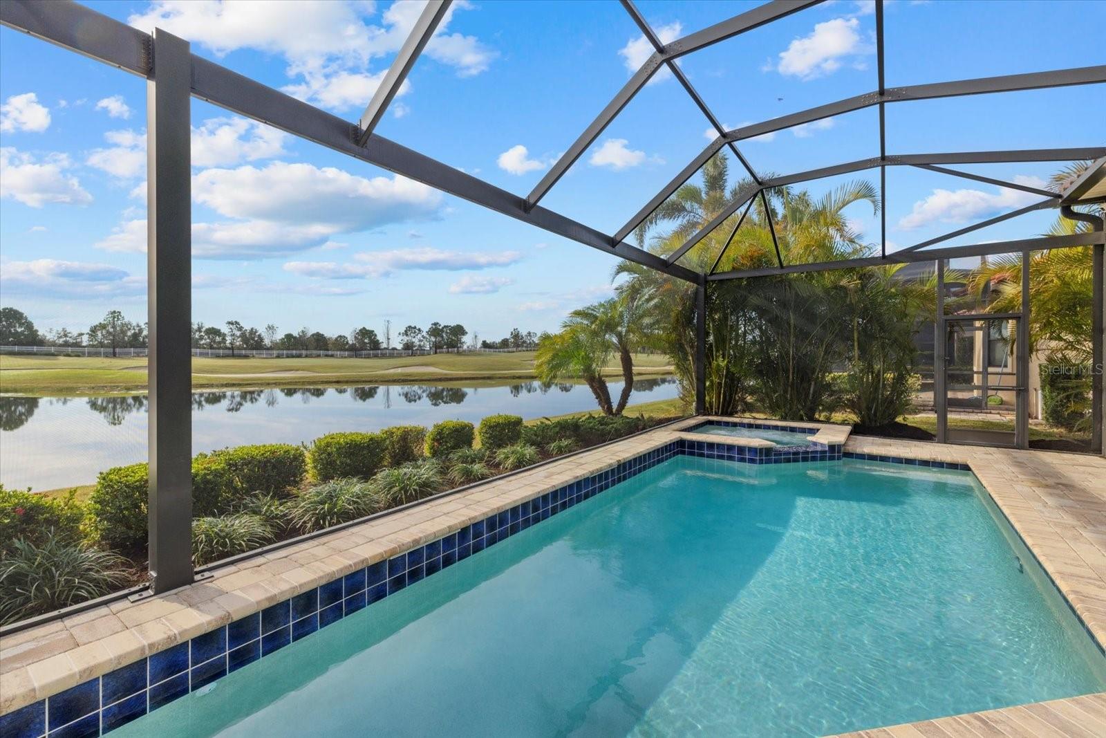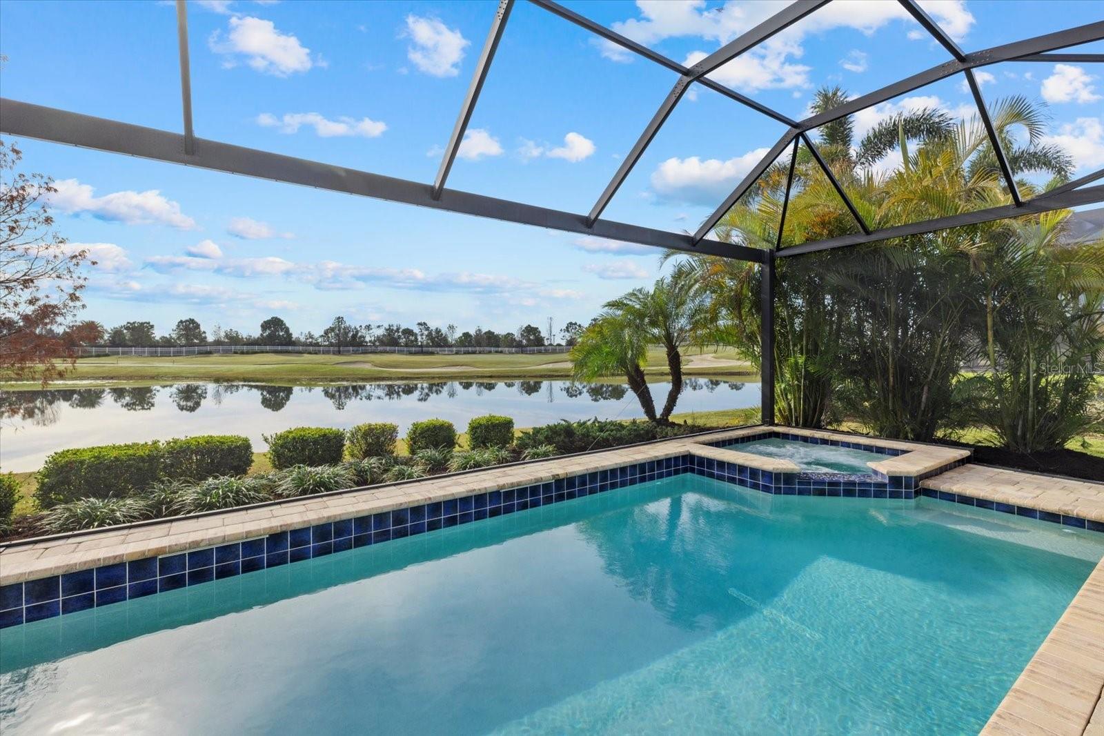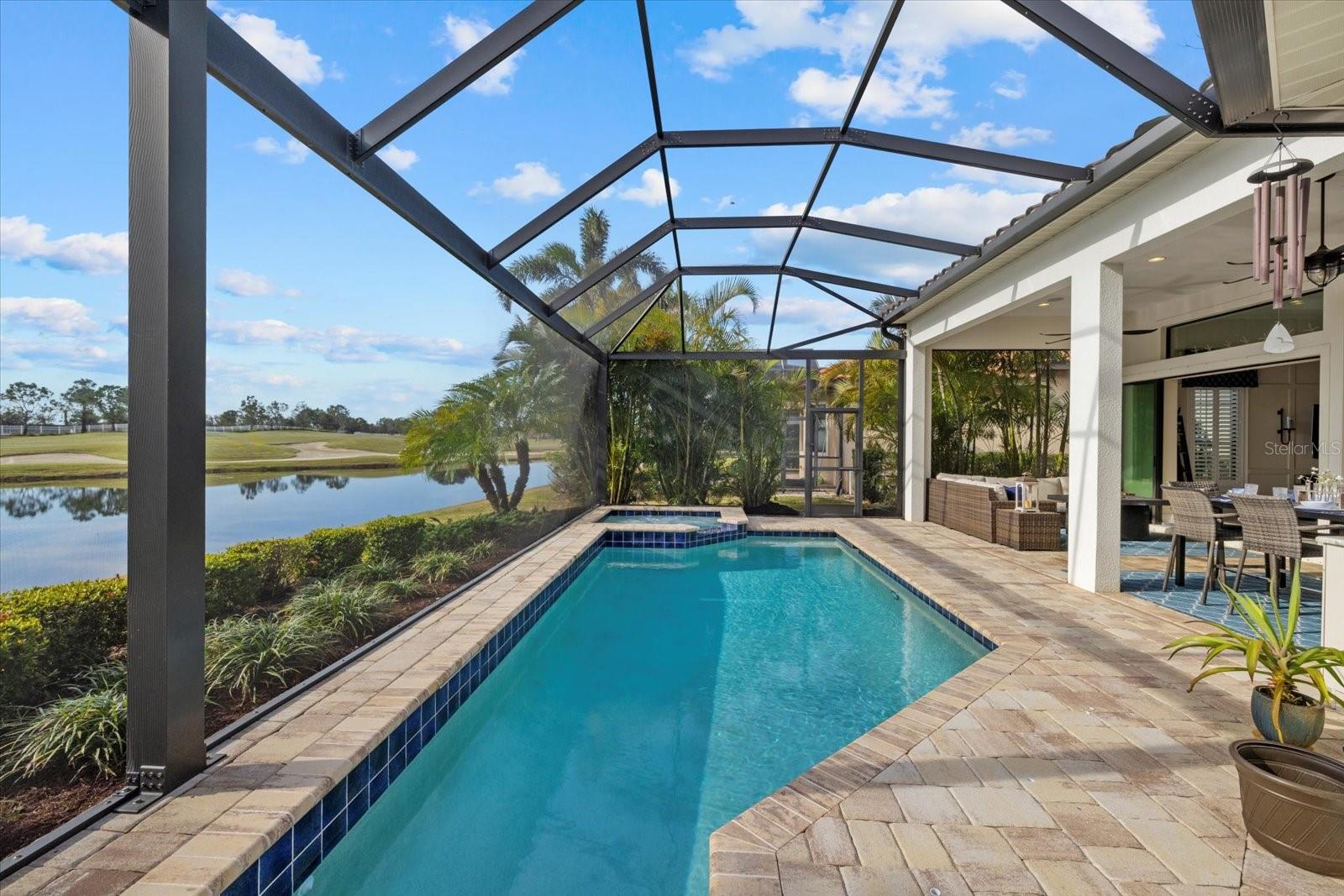 Turn on the lights before arriving home. Adjust the thermostat with a tap. Heat the spa while you're enjoying dinner at the clubhouse--just minutes away. By the time you finish your meal and make the quick 3-minute drive back, your private spa is perfectly warmed and waiting, inviting you to unwind under the stars. This isn't just a home. This is a lifestyle--this is 15608 Leven Links Pl. Nestled in the heart of Country Club East in Lakewood Ranch, this Neal Signature home is a rare blend of elegant design, smart technology, and serene golf course living. Perfectly positioned on a southern exposure lot with unobstructed views of the tranquil pond and 11th fairway, this 3-bedroom, 3-bathroom home plus den offers 2,404 sq ft of thoughtfully designed space. Step through the grand glass entry door and you're immediately greeted by soaring tray ceilings, crown molding, stacked stone accent walls, and an open-concept layout that blends indoor and outdoor living. The gourmet kitchen is both stylish and functional, with an oversized island, soft-close cabinetry (with glass accents and lighting), a built-in convection oven, 5-burner GE gas cooktop, detailed backsplash, and stainless steel appliances. The great room features a full wall of pocketing sliding glass doors that open to a panoramic screened lanai with a heated pool, spa, and fully equipped summer kitchen--perfect for year-round Florida living. It's not just beautiful--it's brilliantly smart. The ClareHome Smart Home System allows you to manage lighting and temperature right from your smartphone, keeping your home in sync with your lifestyle. Imagine dimming the lights and setting the perfect playlist with a tap, thanks to the built-in HEOS sound system that flows effortlessly throughout the home and lanai you are able to set the perfect mode. Planning to relax later? Use the Pentair app to heat the spa before leaving "The Lodge." Heading out? Raise the thermostat and close up the house remotely. Every detail is designed for modern living. The owner's suite is a true retreat, featuring a bay window sitting area with views of the water and golf course, dual walk-in closets, and a spa-like bath with dual vanities, a walk-in shower with dual showerheads and separate temperature controls, and a private water closet. The primary guest suite includes its own en-suite bathroom--ideal for friends or family seeking privacy. The third bedroom is equally spacious, with a full bathroom just steps away across the hall, perfect for additional guests or flexible use as a hobby or media room. A dedicated den/office with custom barn doors adds charm and functionality. Additional highlights include plantation shutters, draperies, and energy-efficient designer lighting. The 3-car garage is equipped with quiet-close and battery backup garage door openers. As a resident of Country Club East, you'll enjoy exclusive access to The Retreat, featuring a resort-style pool, fitness center, outdoor kitchen, community gathering space, and scenic walking and biking trails. Optional memberships are also available to the Lakewood Ranch Golf and Country Club, with championship golf, tennis, dining, fitness, and vibrant social events. Located minutes from Waterside Place, UTC, Benderson Park, top-rated schools, world-famous beaches, and I-75, this home offers an elevated lifestyle in one of Lakewood Ranch's most desirable communities. Why wait to build? This model-quality, smart-enabled home is move-in ready.