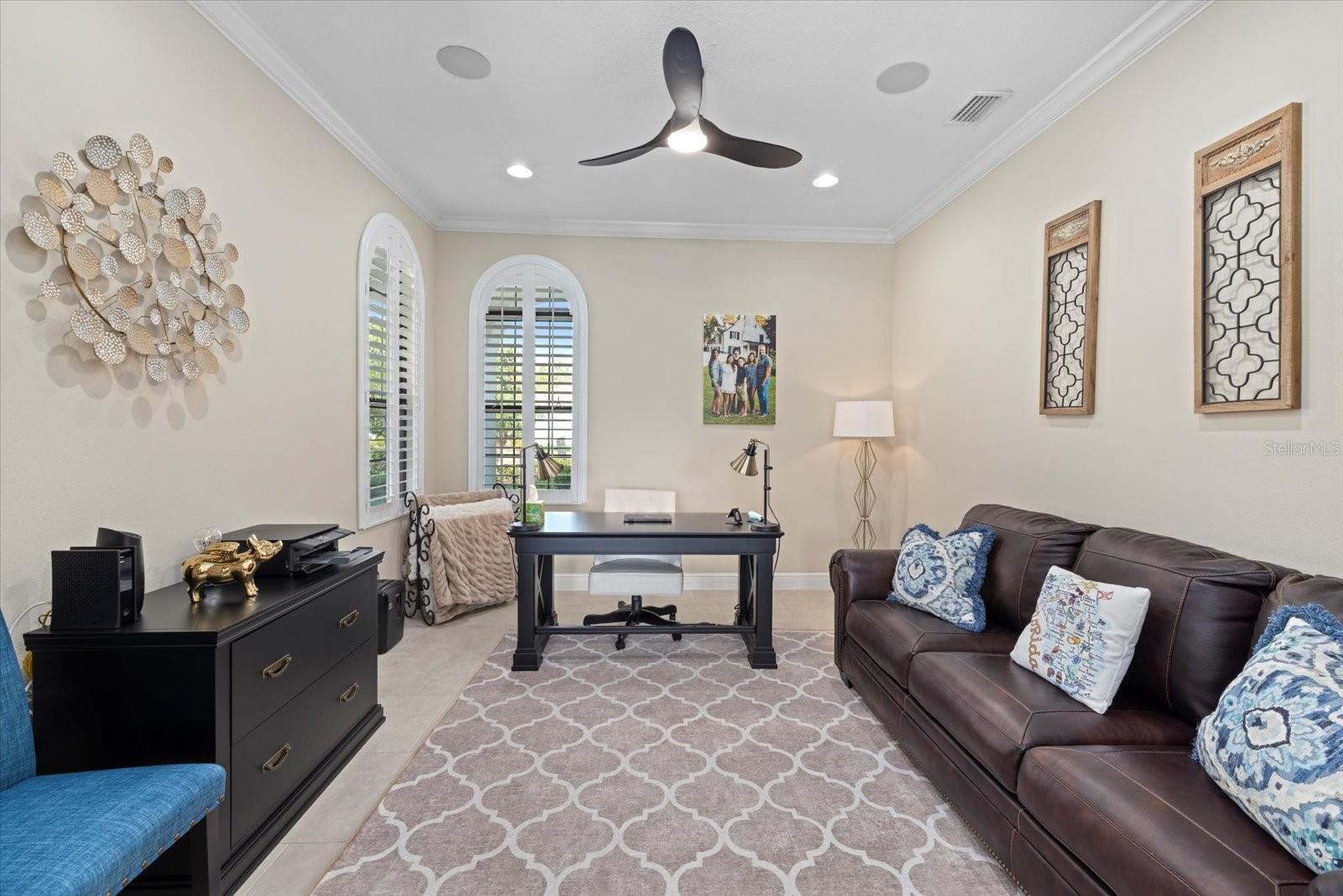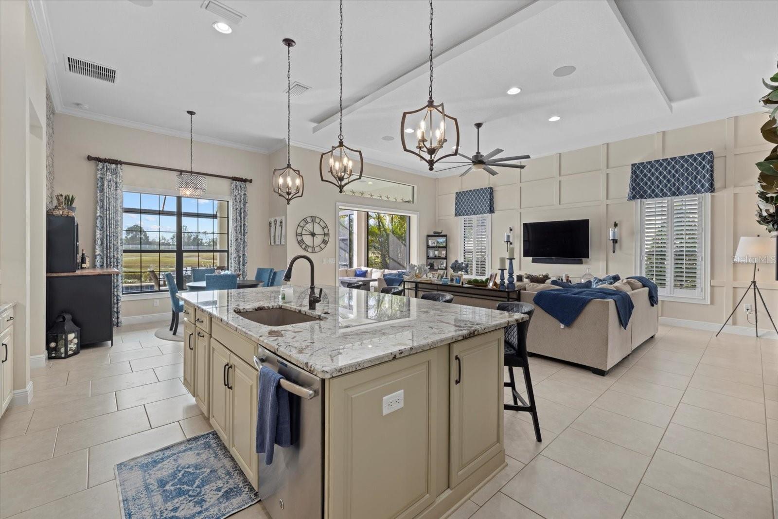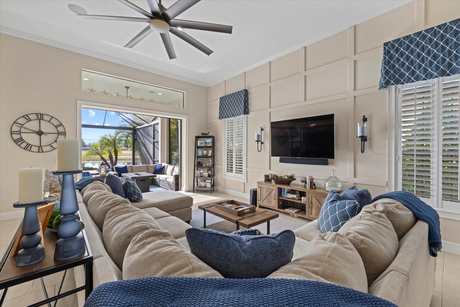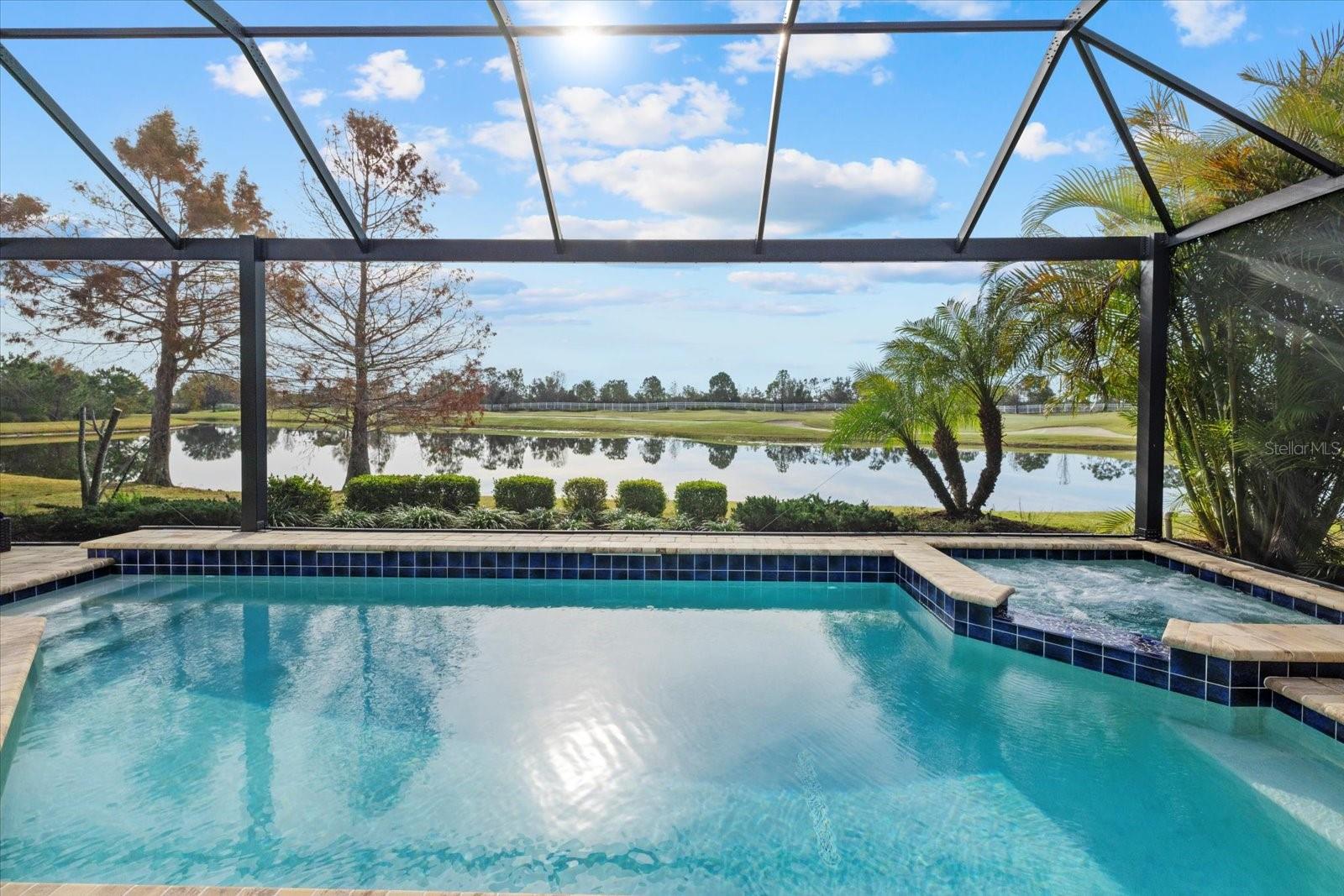 Turn on the lights before arriving home. Adjust the thermostat with a tap. Heat the spa while you're enjoying dinner at the clubhouse--just minutes away. By the time you finish your meal and make the quick 3-minute drive back, your private spa is perfectly warmed and waiting, inviting you to unwind under the stars. This isn't just a home. This is a lifestyle--this is 15608 Leven Links Pl. Nestled in the heart of Country Club East in Lakewood Ranch, this Neal Signature home is a rare blend of elegant design, smart technology, and serene golf course living. Perfectly positioned on a southern exposure lot with unobstructed views of the tranquil pond and 11th fairway, this 3-bedroom, 3-bathroom home plus den offers 2,404 sq ft of thoughtfully designed space. Step through the grand glass entry door and you're immediately greeted by soaring tray ceilings, crown molding, stacked stone accent walls, and an open-concept layout that blends indoor and outdoor living. The gourmet kitchen is both stylish and functional, with an oversized island, soft-close cabinetry (with glass accents and lighting), a built-in convection oven, 5-burner GE gas cooktop, detailed backsplash, and stainless steel appliances. The great room features a full wall of pocketing sliding glass doors that open to a panoramic screened lanai with a heated pool, spa, and fully equipped summer kitchen--perfect for year-round Florida living. It's not just beautiful--it's brilliantly smart. The ClareHome Smart Home System allows you to manage lighting and temperature right from your smartphone, keeping your home in sync with your lifestyle. Imagine dimming the lights and setting the perfect playlist with a tap, thanks to the built-in HEOS sound system that flows effortlessly throughout the home and lanai you are able to set the perfect mode. Planning to relax later? Use the Pentair app to heat the spa before leaving "The Lodge." Heading out? Raise the thermostat and close up the house remotely. Every detail is designed for modern living. The owner's suite is a true retreat, featuring a bay window sitting area with views of the water and golf course, dual walk-in closets, and a spa-like bath with dual vanities, a walk-in shower with dual showerheads and separate temperature controls, and a private water closet. The primary guest suite includes its own en-suite bathroom--ideal for friends or family seeking privacy. The third bedroom is equally spacious, with a full bathroom just steps away across the hall, perfect for additional guests or flexible use as a hobby or media room. A dedicated den/office with custom barn doors adds charm and functionality. Additional highlights include plantation shutters, draperies, and energy-efficient designer lighting. The 3-car garage is equipped with quiet-close and battery backup garage door openers. As a resident of Country Club East, you'll enjoy exclusive access to The Retreat, featuring a resort-style pool, fitness center, outdoor kitchen, community gathering space, and scenic walking and biking trails. Optional memberships are also available to the Lakewood Ranch Golf and Country Club, with championship golf, tennis, dining, fitness, and vibrant social events. Located minutes from Waterside Place, UTC, Benderson Park, top-rated schools, world-famous beaches, and I-75, this home offers an elevated lifestyle in one of Lakewood Ranch's most desirable communities. Why wait to build? This model-quality, smart-enabled home is move-in ready.