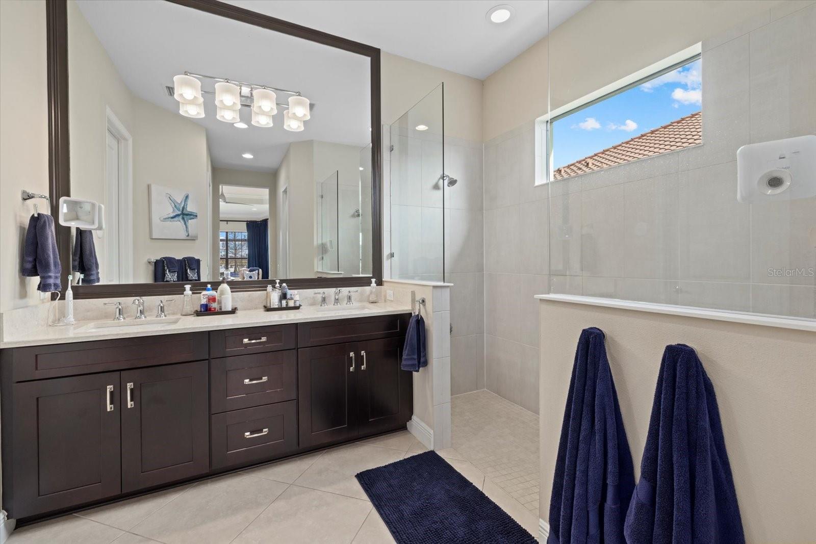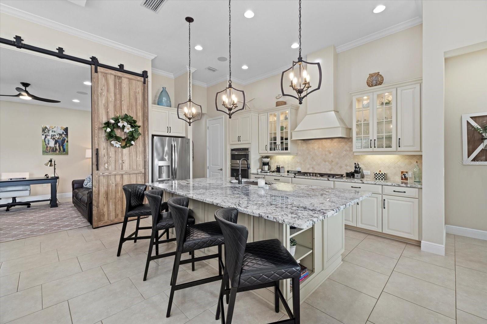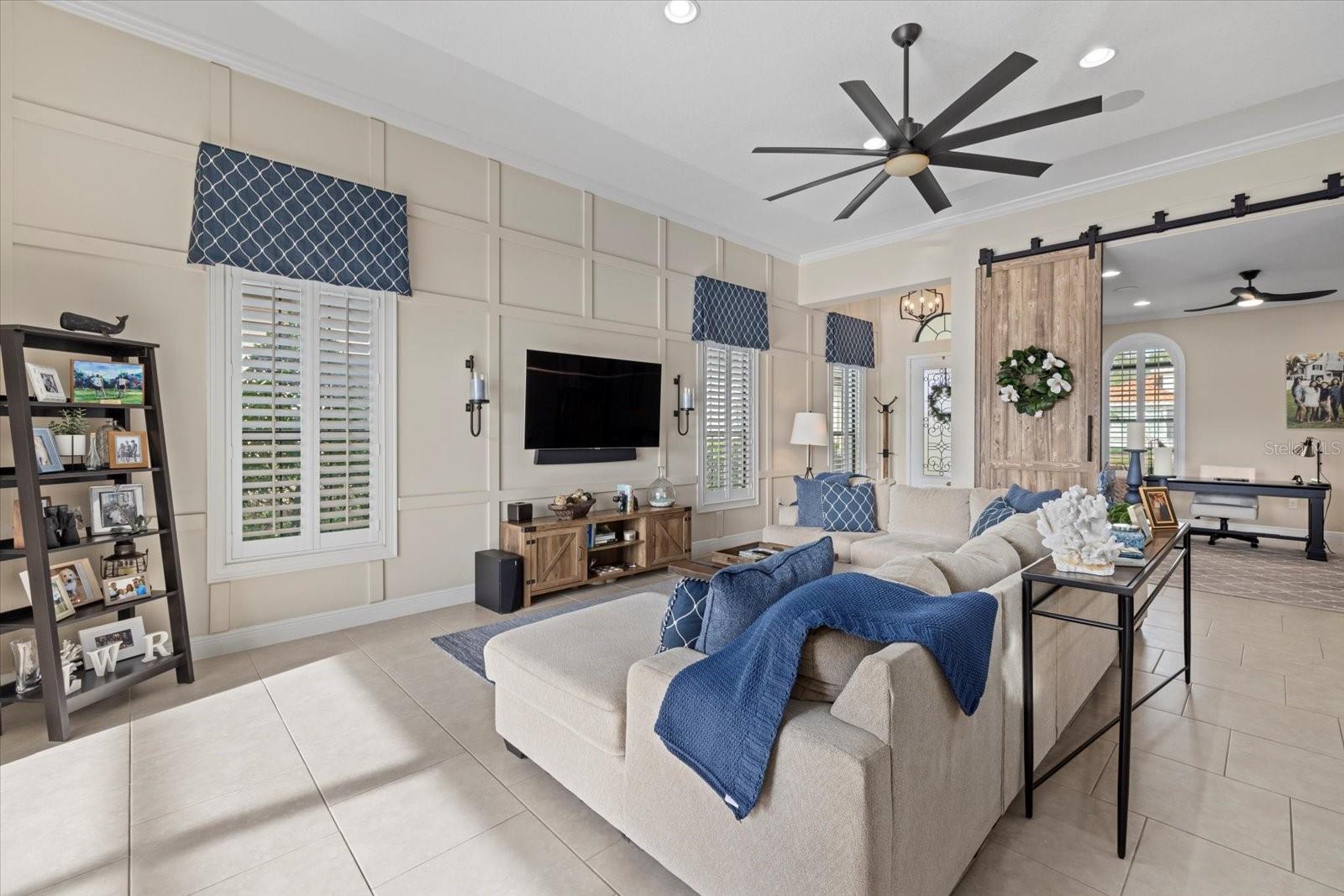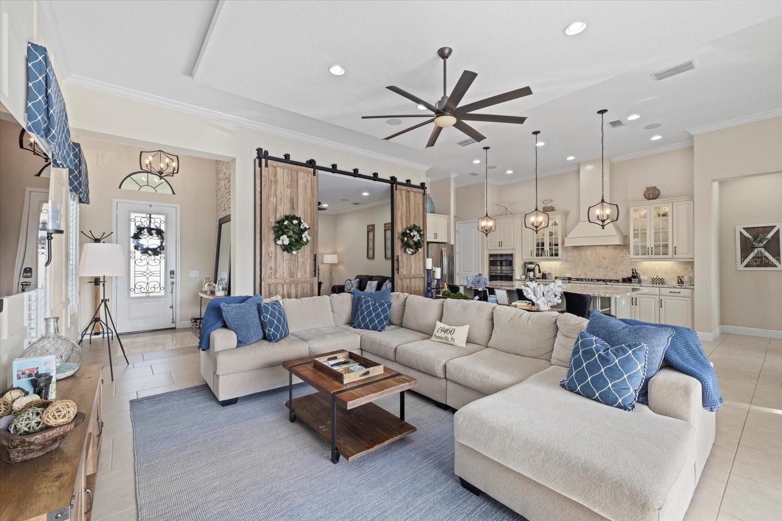 Turn on the lights before arriving home. Adjust the thermostat with a tap. Heat the spa while you're enjoying dinner at the clubhouse--just minutes away. By the time you finish your meal and make the quick 3-minute drive back, your private spa is perfectly warmed and waiting, inviting you to unwind under the stars. This isn't just a home. This is a lifestyle--this is 15608 Leven Links Pl. Nestled in the heart of Country Club East in Lakewood Ranch, this Neal Signature home is a rare blend of elegant design, smart technology, and serene golf course living. Perfectly positioned on a southern exposure lot with unobstructed views of the tranquil pond and 11th fairway, this 3-bedroom, 3-bathroom home plus den offers 2,404 sq ft of thoughtfully designed space. Step through the grand glass entry door and you're immediately greeted by soaring tray ceilings, crown molding, stacked stone accent walls, and an open-concept layout that blends indoor and outdoor living. The gourmet kitchen is both stylish and functional, with an oversized island, soft-close cabinetry (with glass accents and lighting), a built-in convection oven, 5-burner GE gas cooktop, detailed backsplash, and stainless steel appliances. The great room features a full wall of pocketing sliding glass doors that open to a panoramic screened lanai with a heated pool, spa, and fully equipped summer kitchen--perfect for year-round Florida living. It's not just beautiful--it's brilliantly smart. The ClareHome Smart Home System allows you to manage lighting and temperature right from your smartphone, keeping your home in sync with your lifestyle. Imagine dimming the lights and setting the perfect playlist with a tap, thanks to the built-in HEOS sound system that flows effortlessly throughout the home and lanai you are able to set the perfect mode. Planning to relax later? Use the Pentair app to heat the spa before leaving "The Lodge." Heading out? Raise the thermostat and close up the house remotely. Every detail is designed for modern living. The owner's suite is a true retreat, featuring a bay window sitting area with views of the water and golf course, dual walk-in closets, and a spa-like bath with dual vanities, a walk-in shower with dual showerheads and separate temperature controls, and a private water closet. The primary guest suite includes its own en-suite bathroom--ideal for friends or family seeking privacy. The third bedroom is equally spacious, with a full bathroom just steps away across the hall, perfect for additional guests or flexible use as a hobby or media room. A dedicated den/office with custom barn doors adds charm and functionality. Additional highlights include plantation shutters, draperies, and energy-efficient designer lighting. The 3-car garage is equipped with quiet-close and battery backup garage door openers. As a resident of Country Club East, you'll enjoy exclusive access to The Retreat, featuring a resort-style pool, fitness center, outdoor kitchen, community gathering space, and scenic walking and biking trails. Optional memberships are also available to the Lakewood Ranch Golf and Country Club, with championship golf, tennis, dining, fitness, and vibrant social events. Located minutes from Waterside Place, UTC, Benderson Park, top-rated schools, world-famous beaches, and I-75, this home offers an elevated lifestyle in one of Lakewood Ranch's most desirable communities. Why wait to build? This model-quality, smart-enabled home is move-in ready.